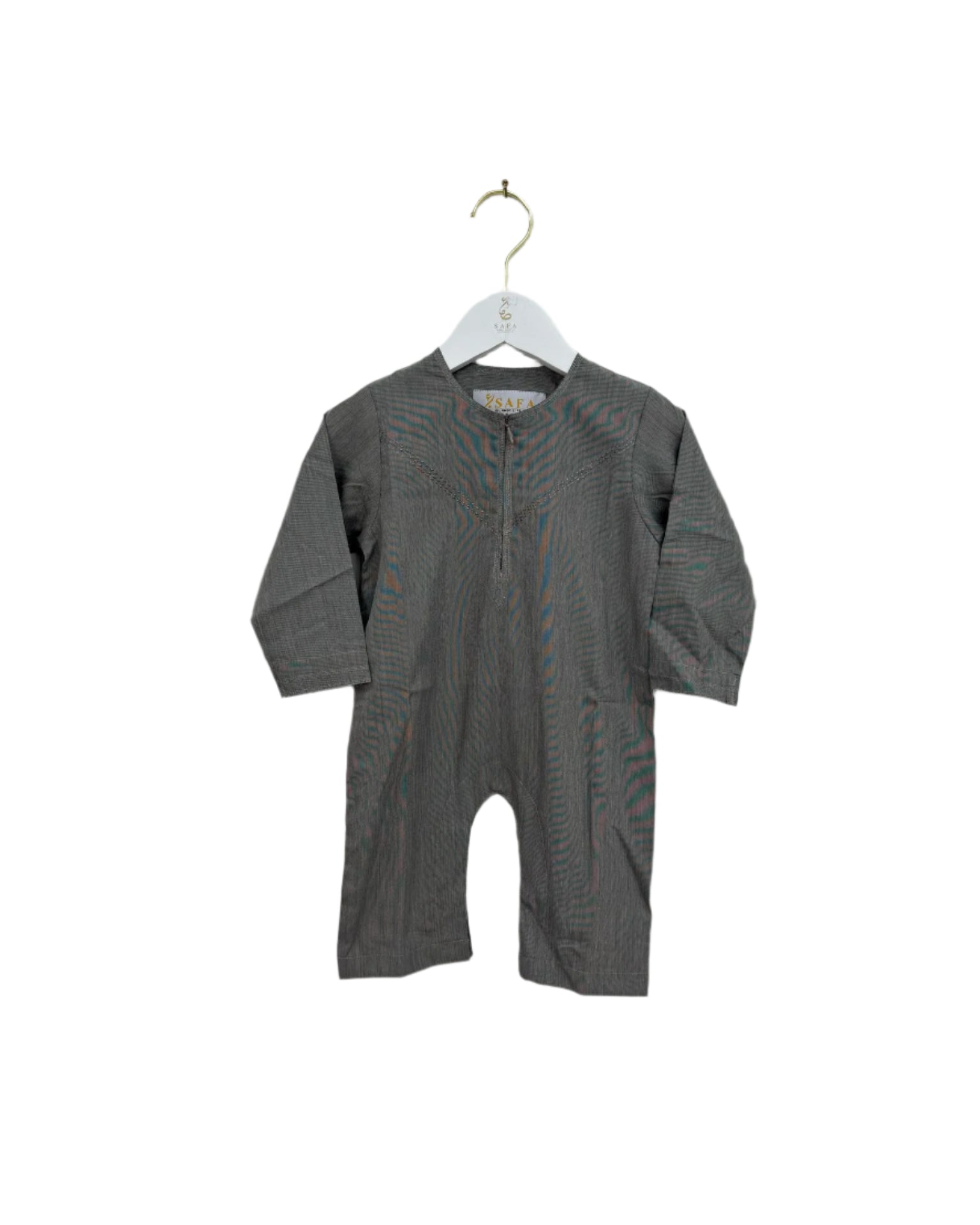 White Omani Round Neck Long Sleeve Jubba with Stitched Embroidery Design