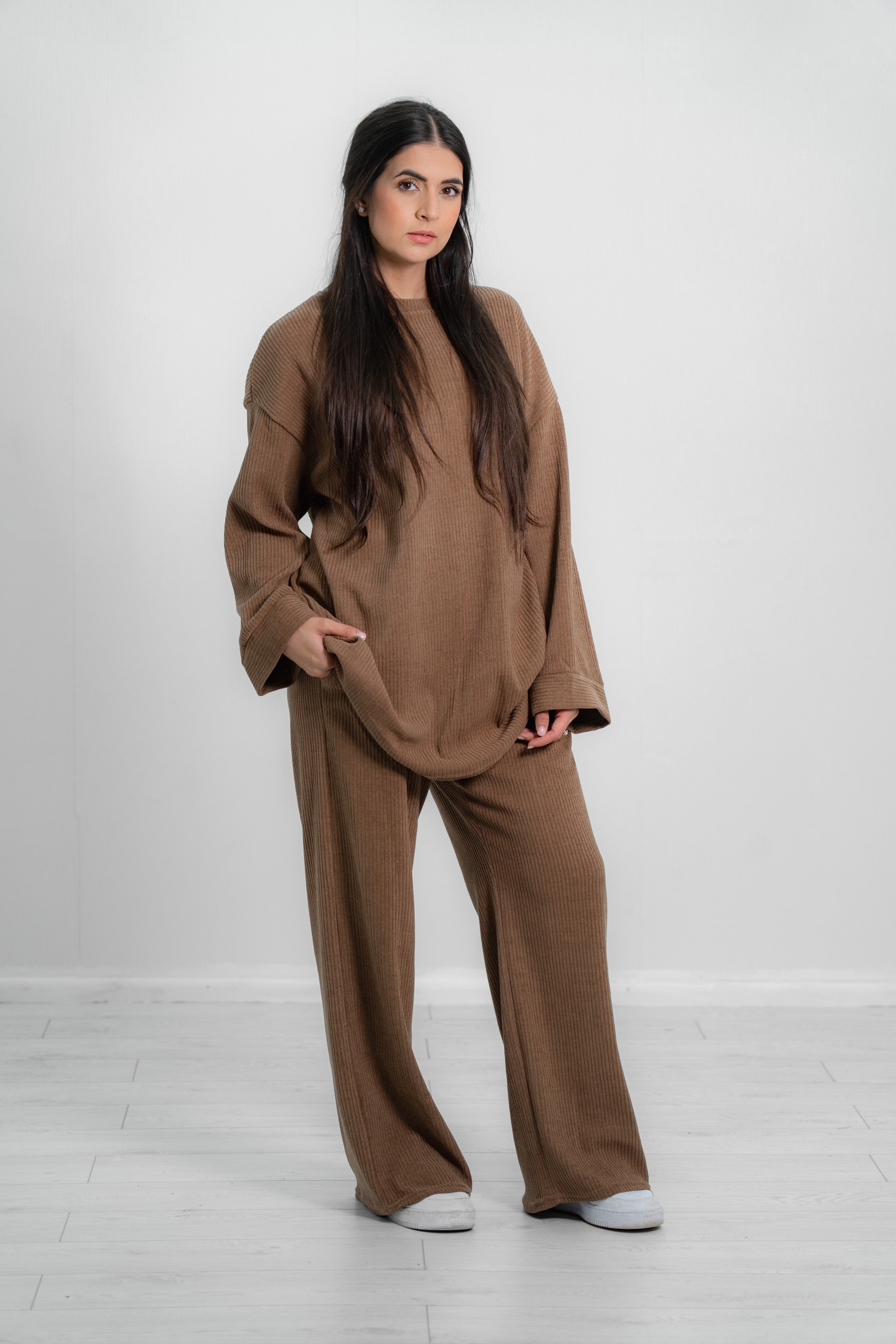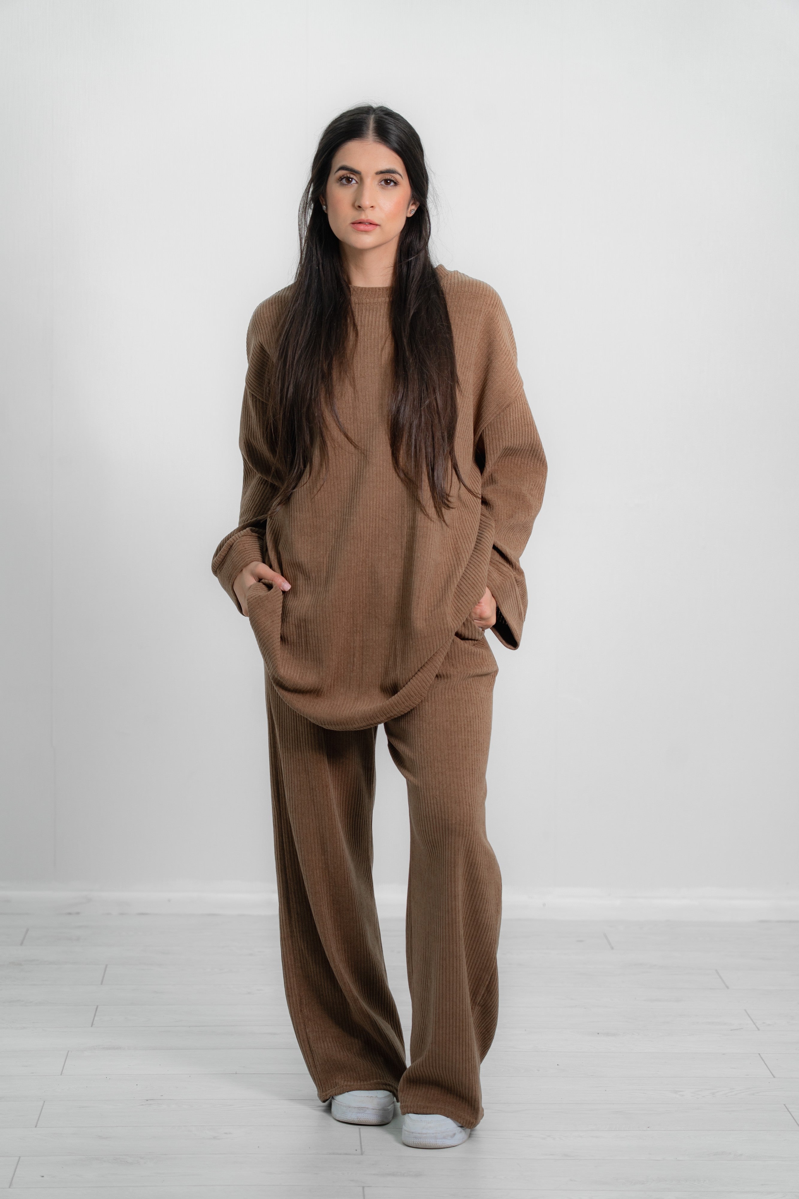 Women’s Co-Ord Set – Button-Down Top & Matching Wide-Leg Trousers