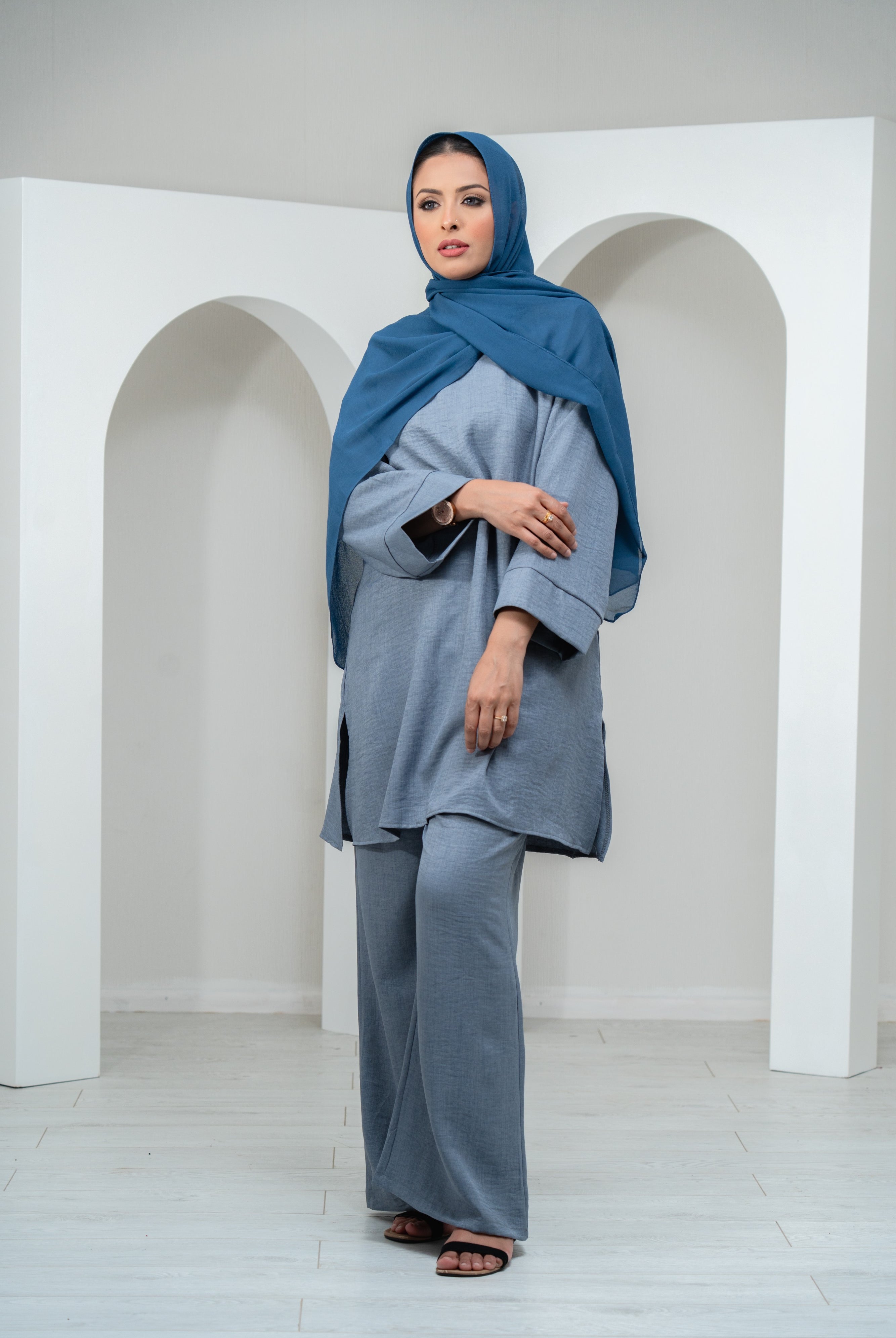Slate Linen Abaya with Pockets