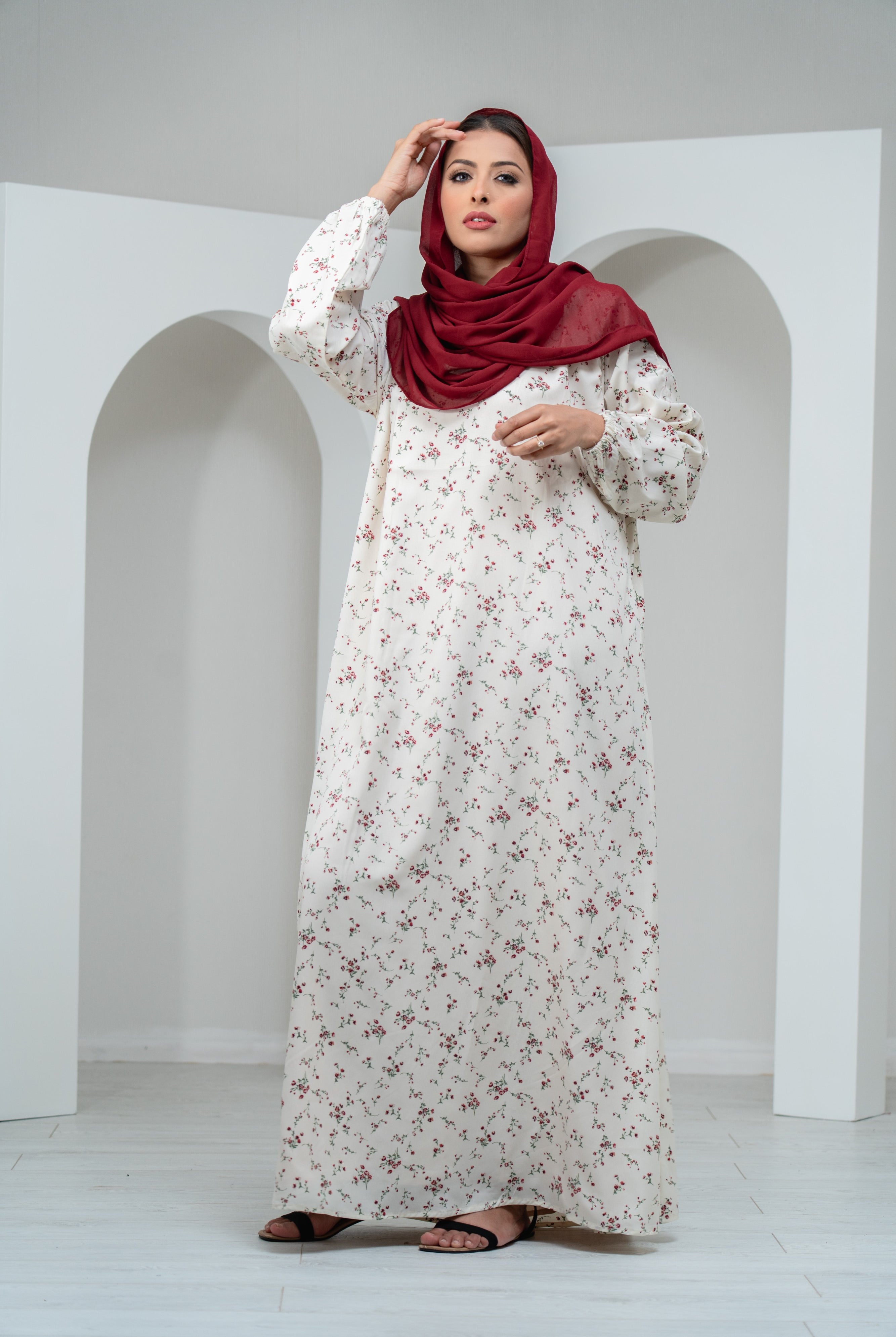 Cream Cotton Closed Abaya 2 piece
