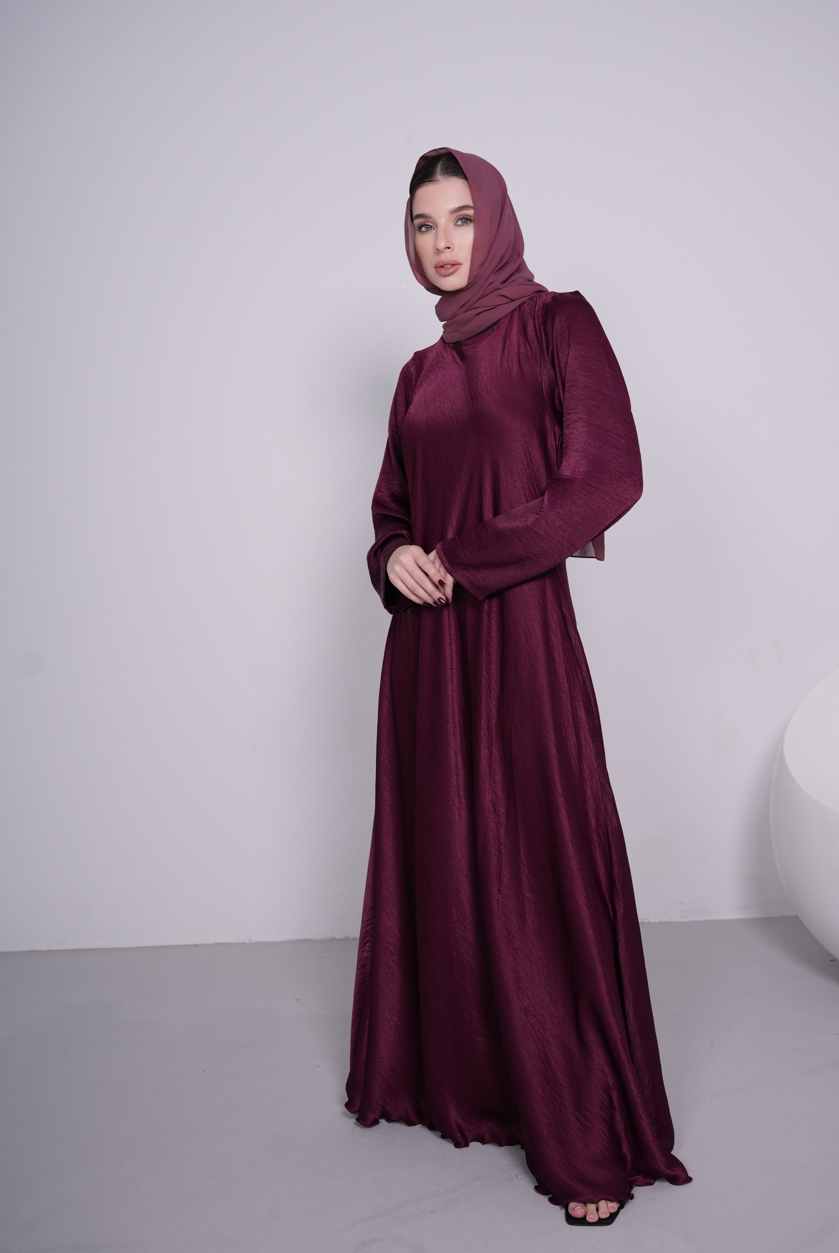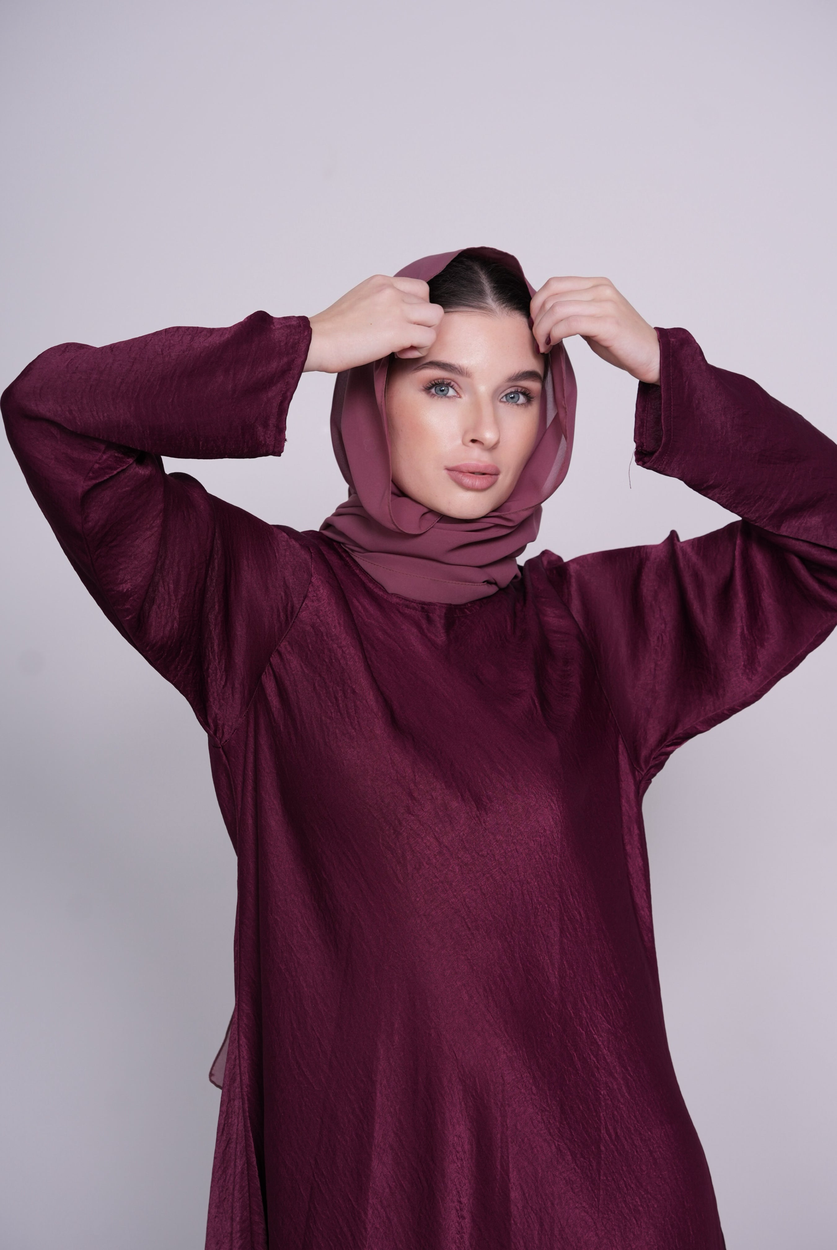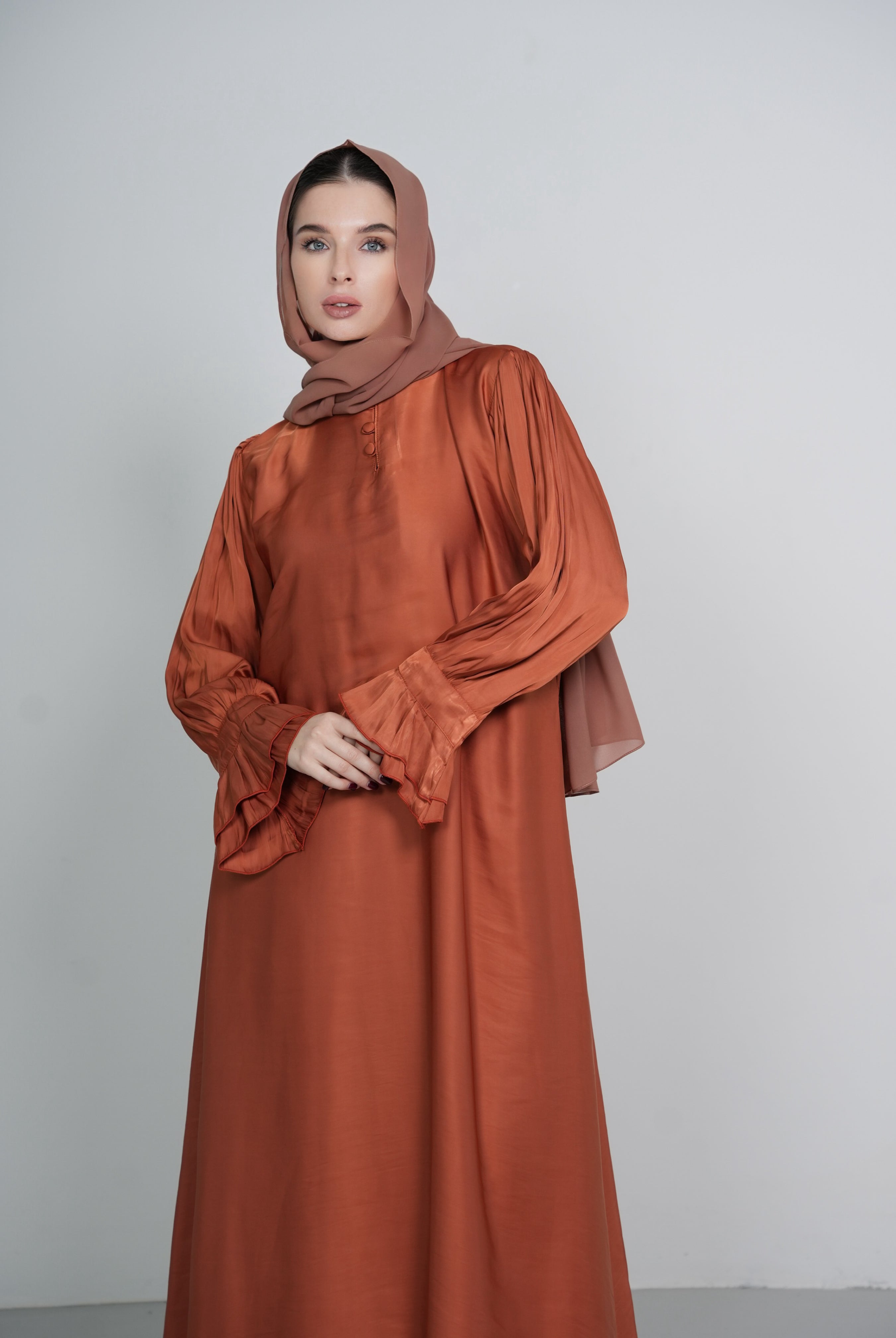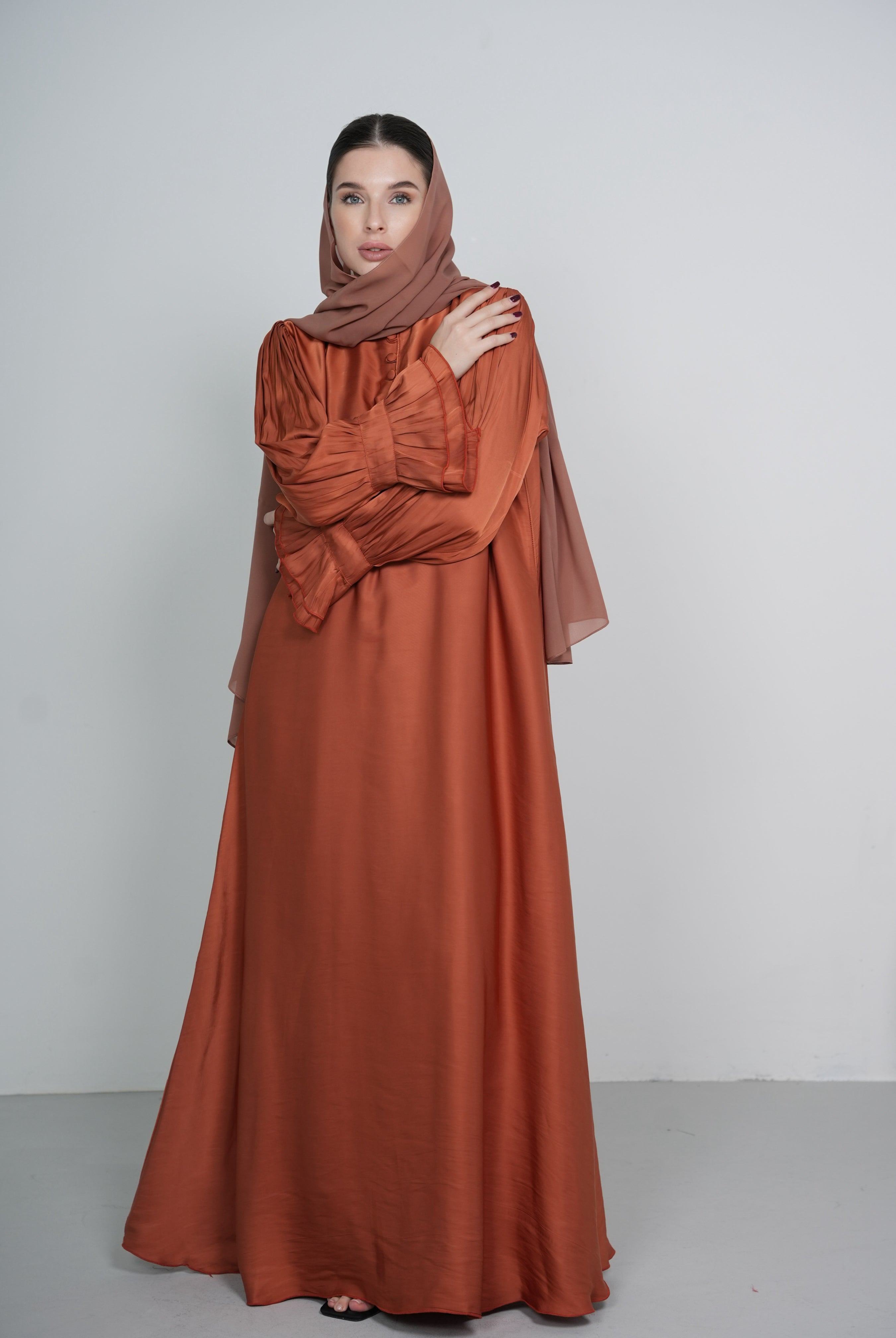 Blush High Collar Button-Down Satin/Silk Abaya Dress