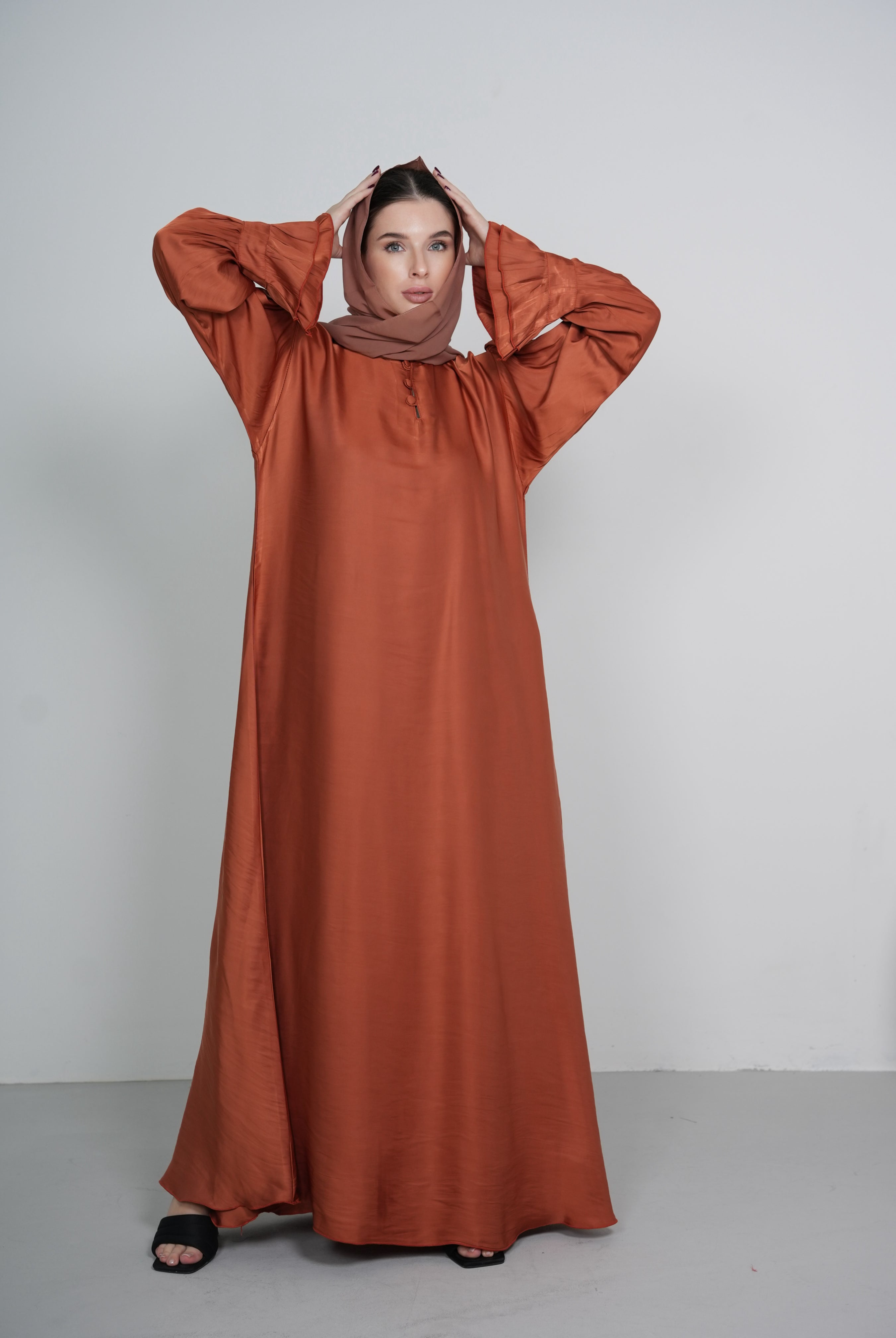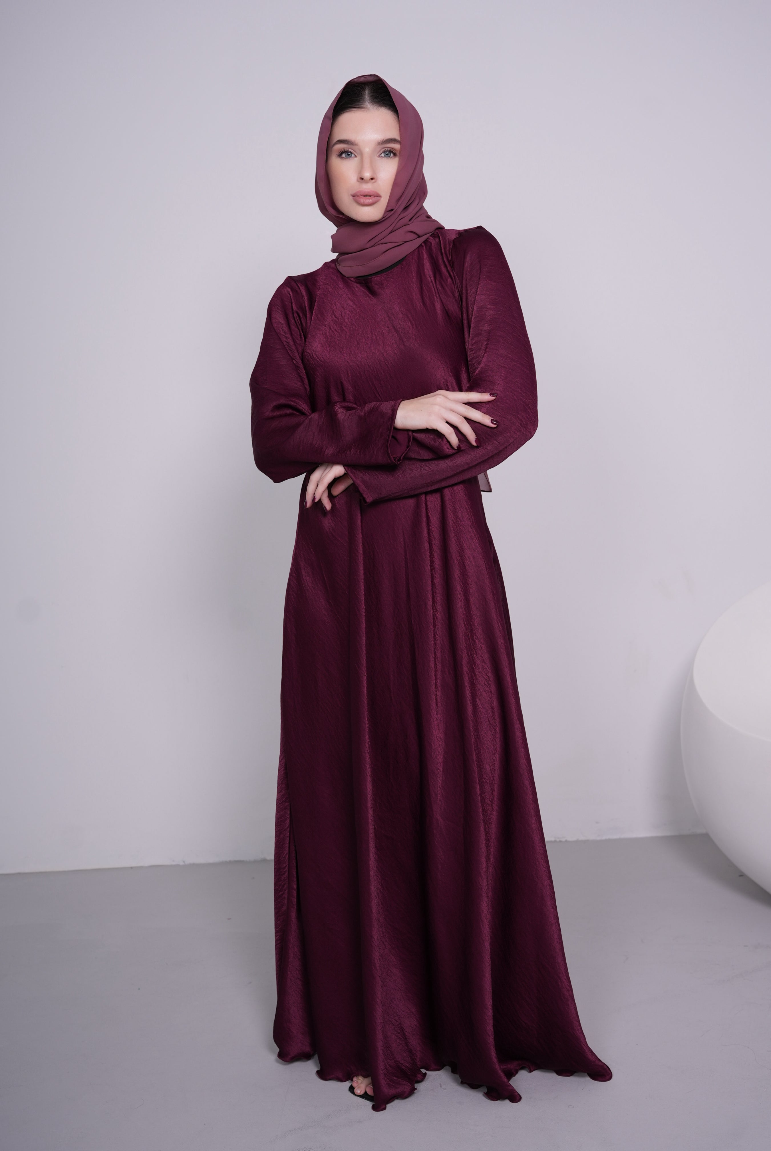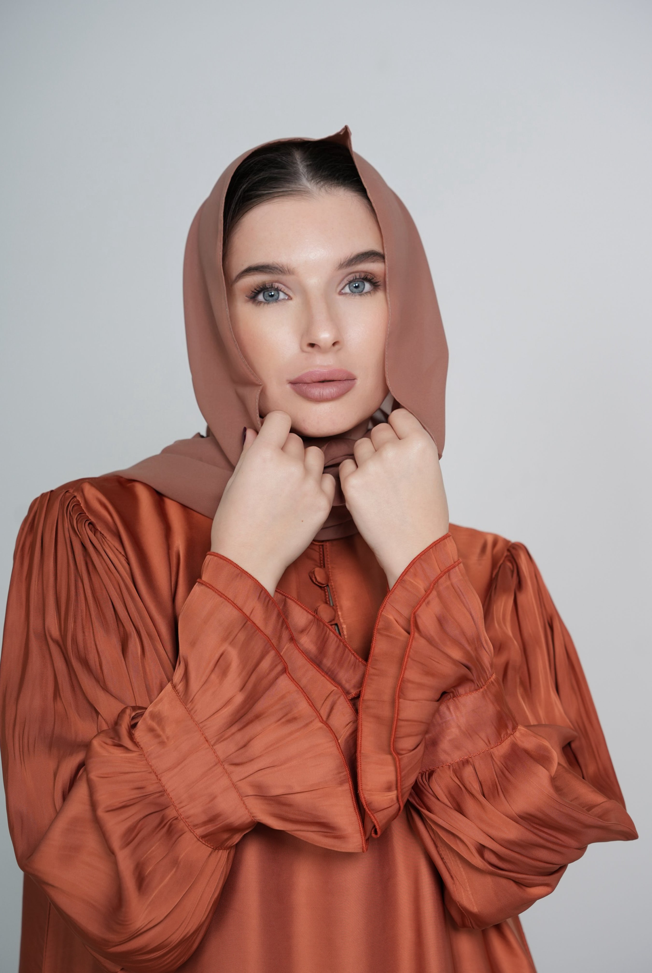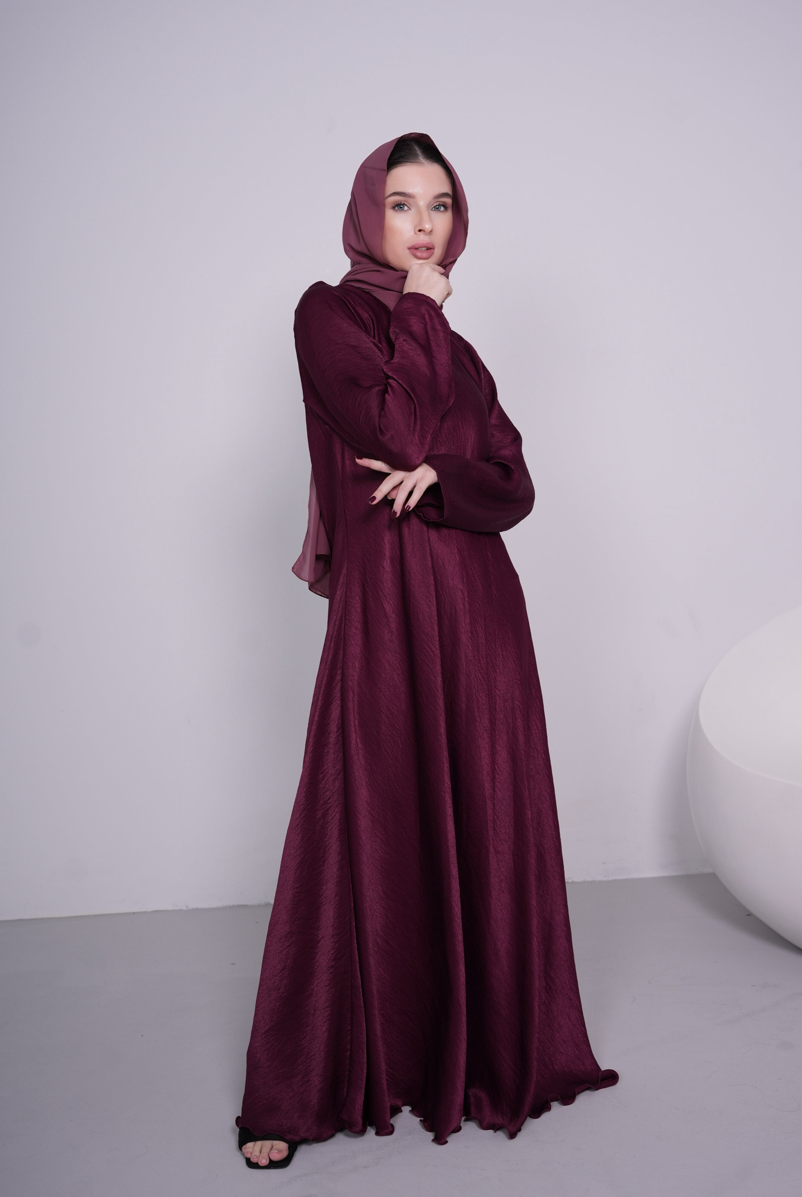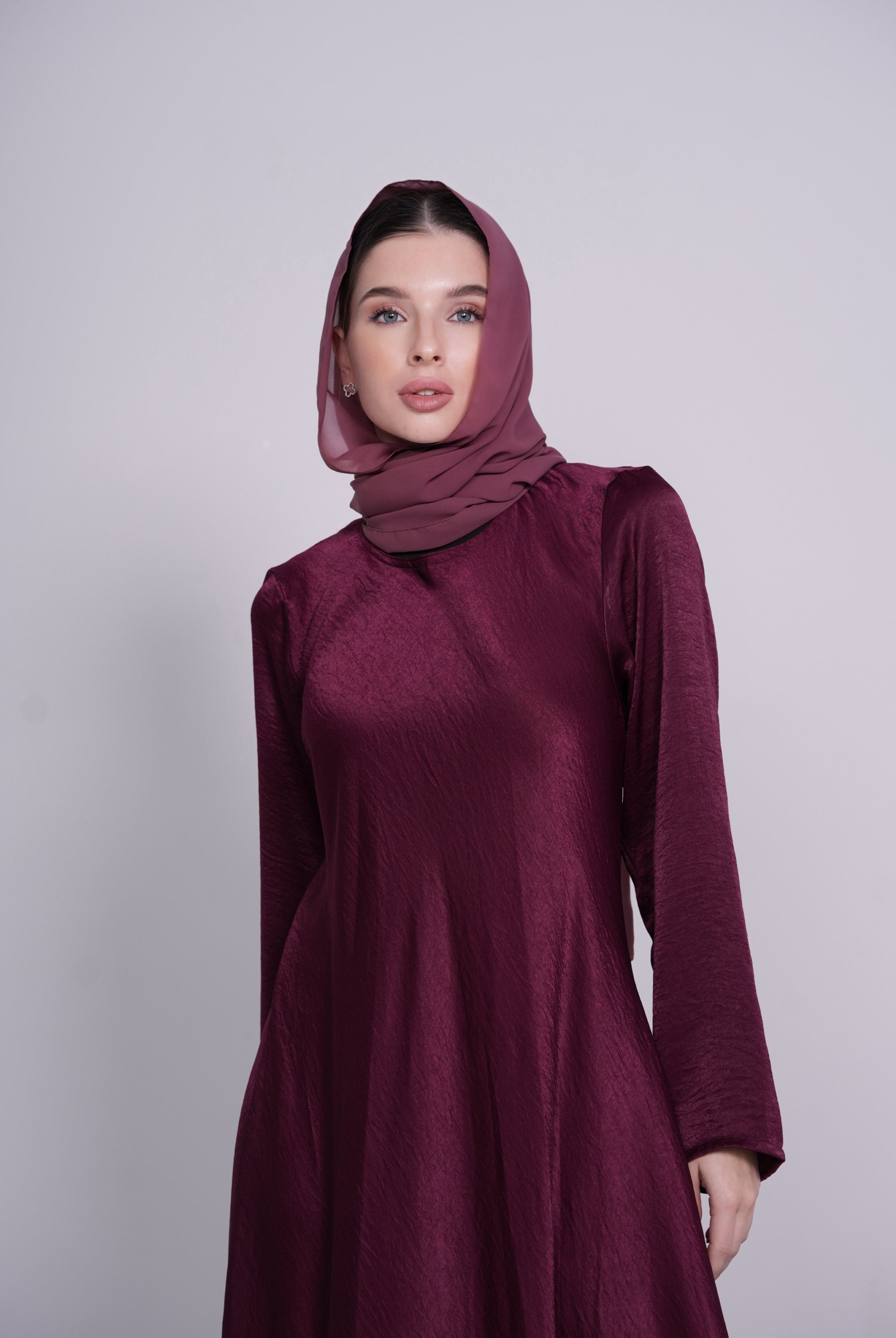 Blush High Collar Button-Down Satin/Silk Abaya Dress