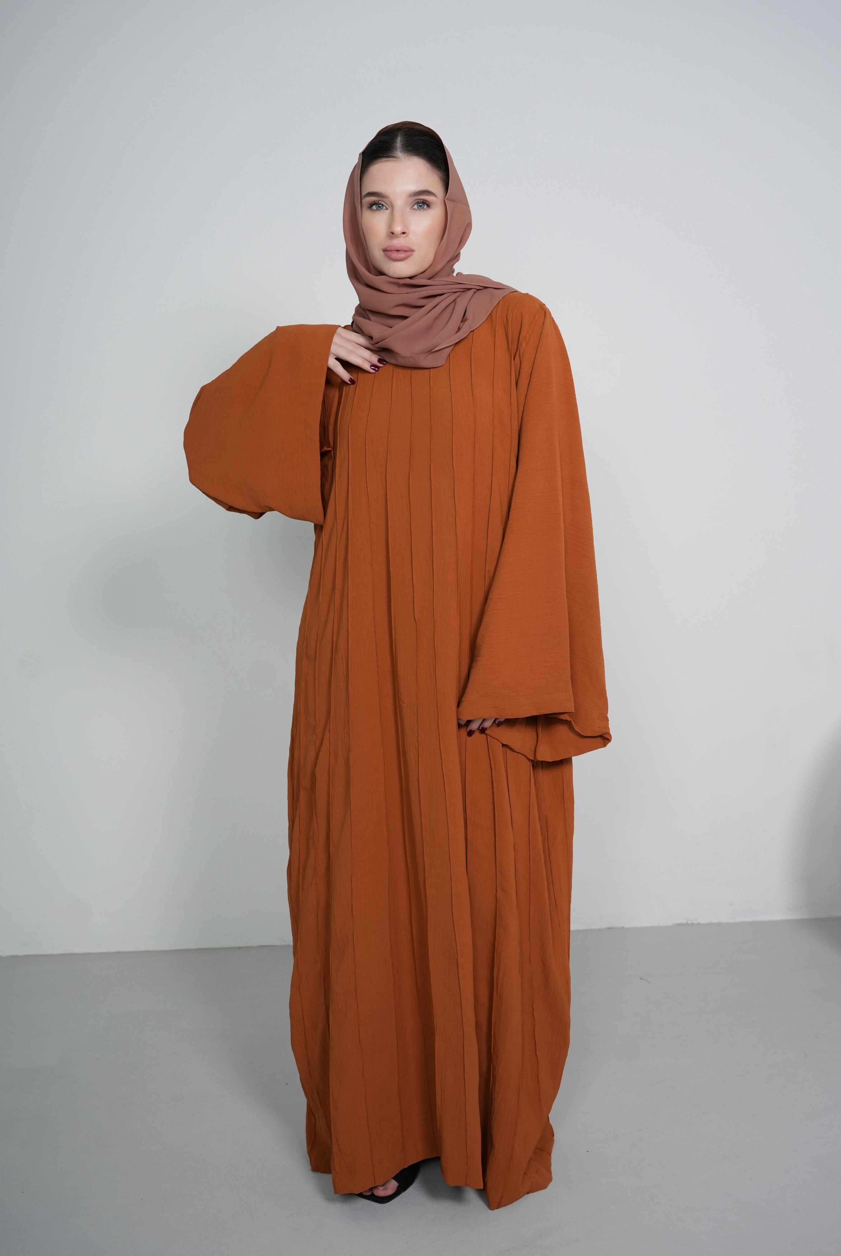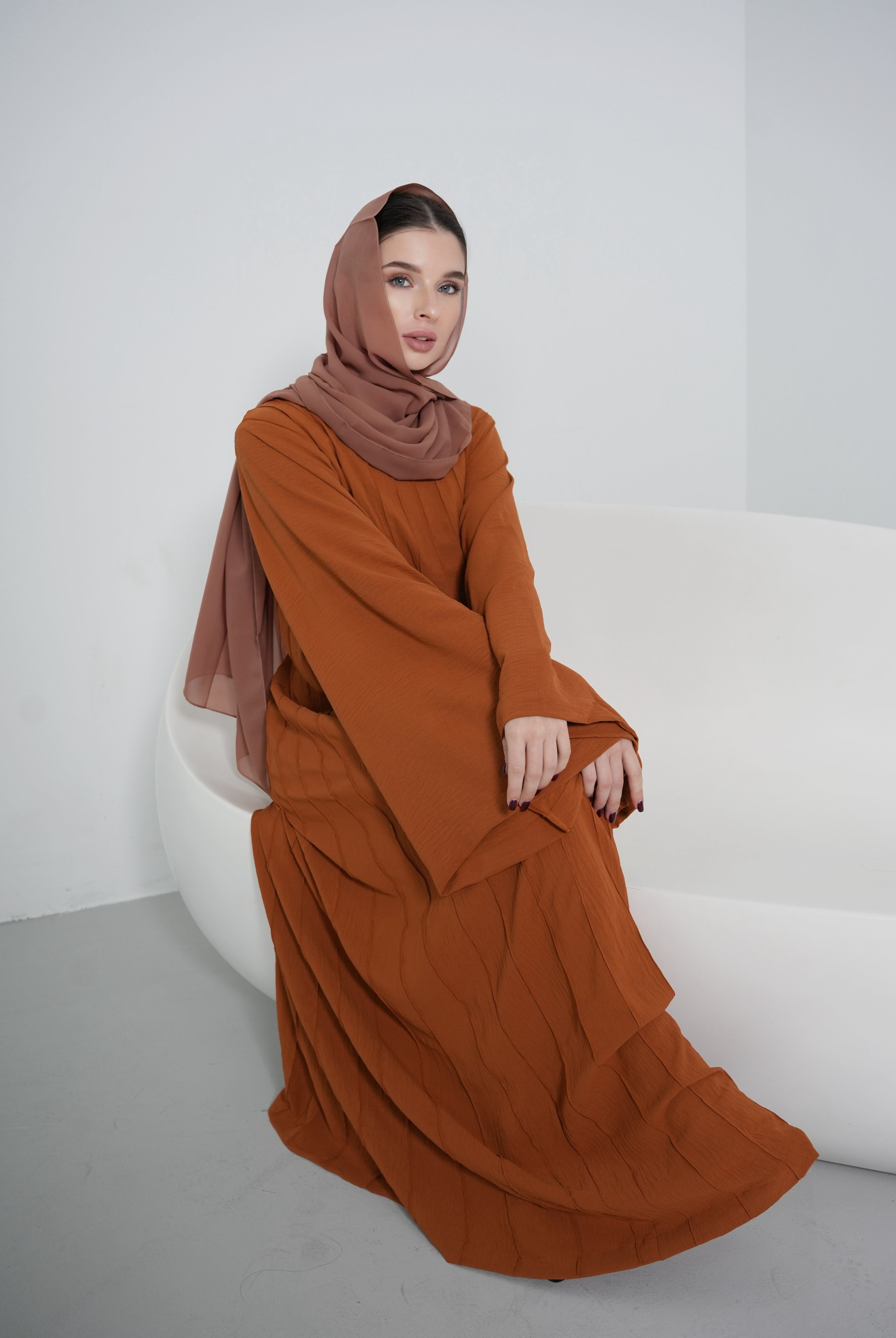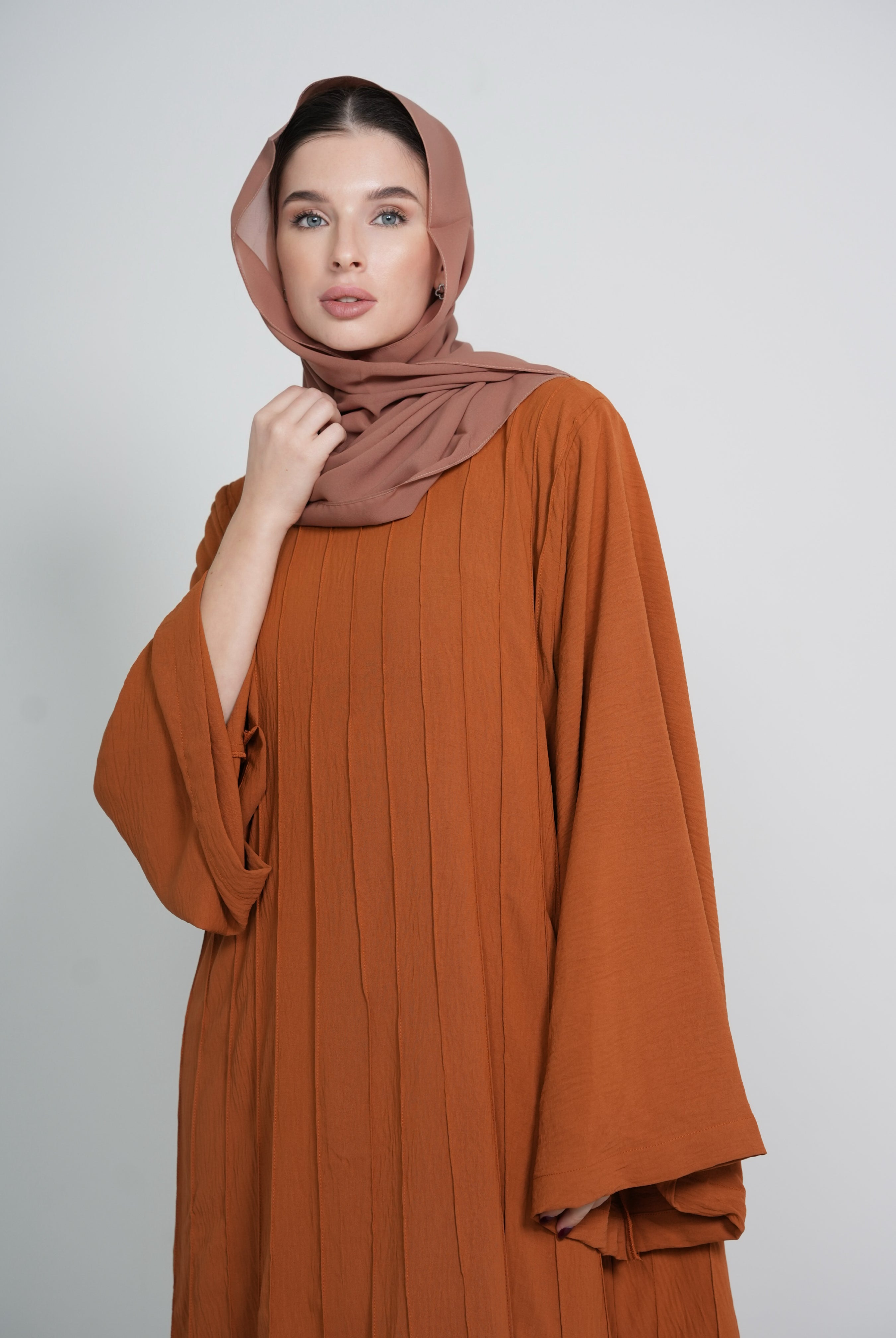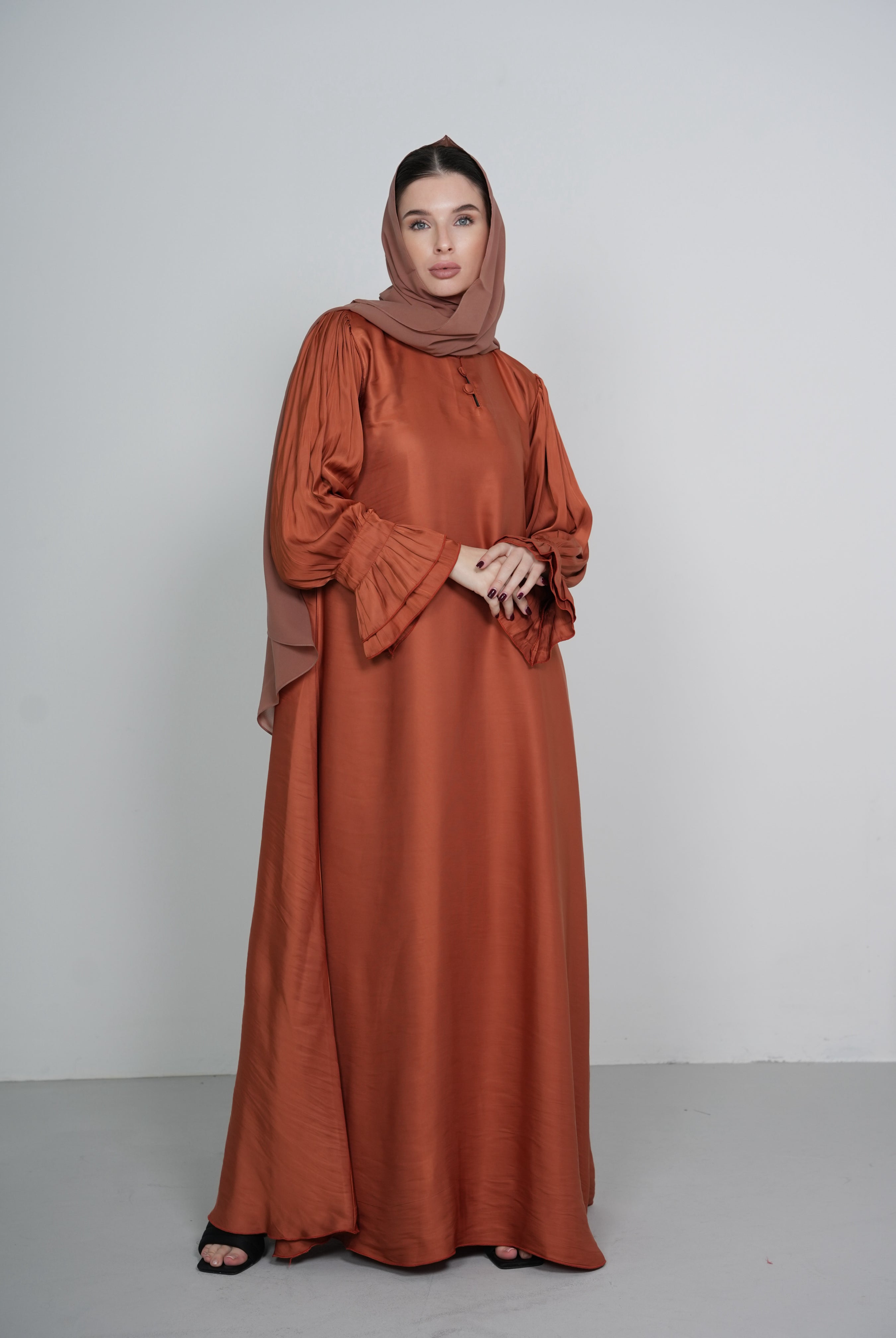 Brown 2-Piece Open Abaya with Clasps Closure