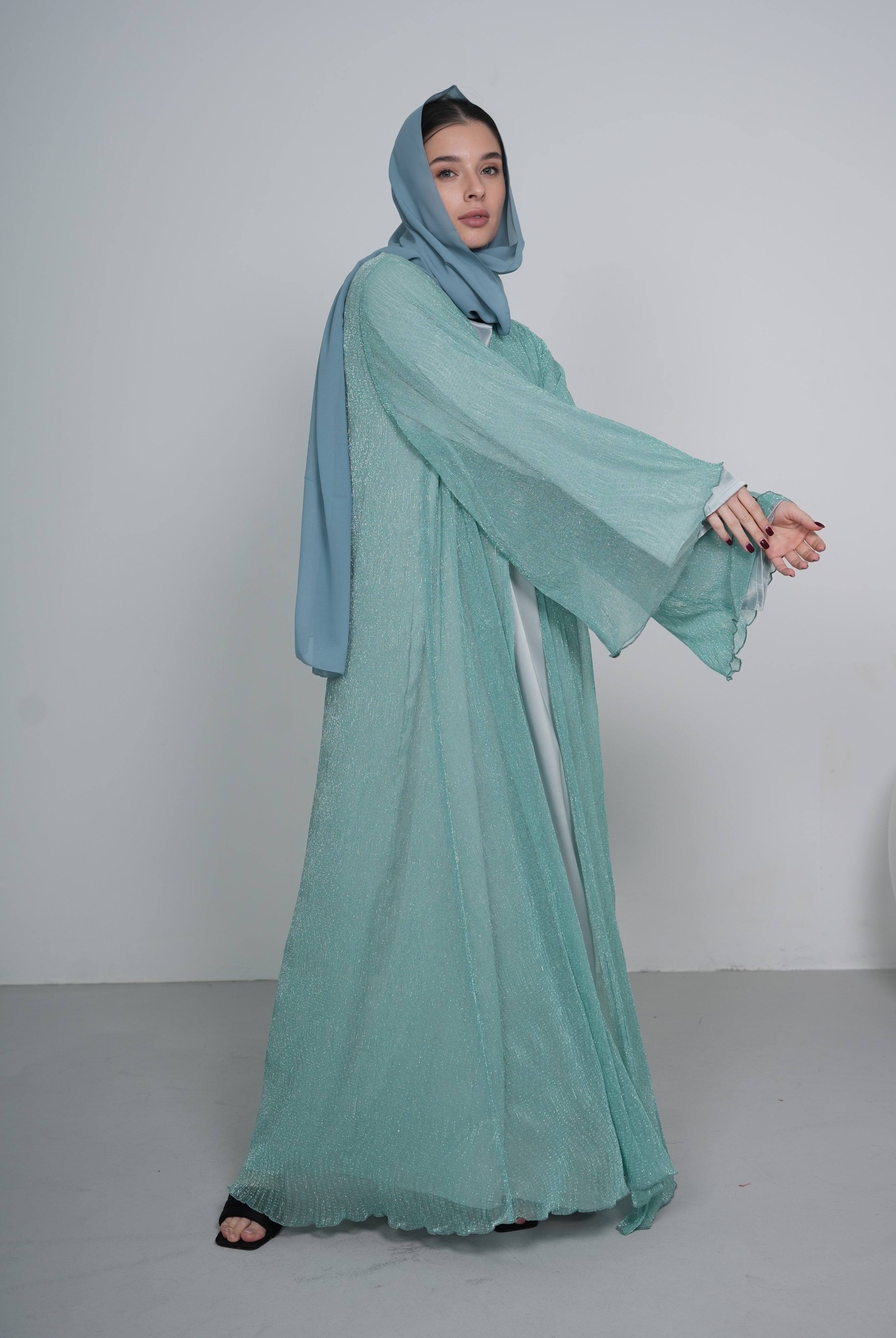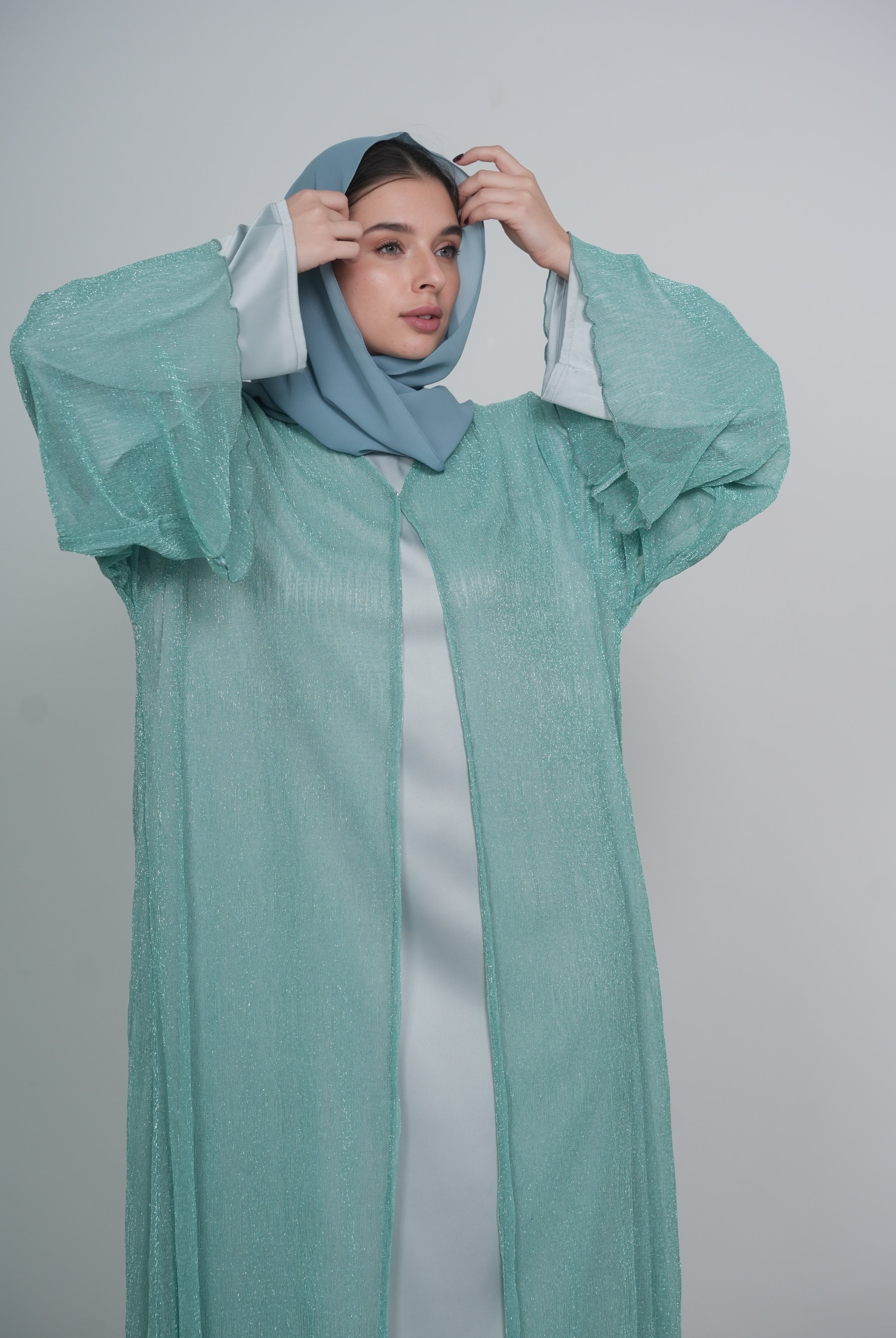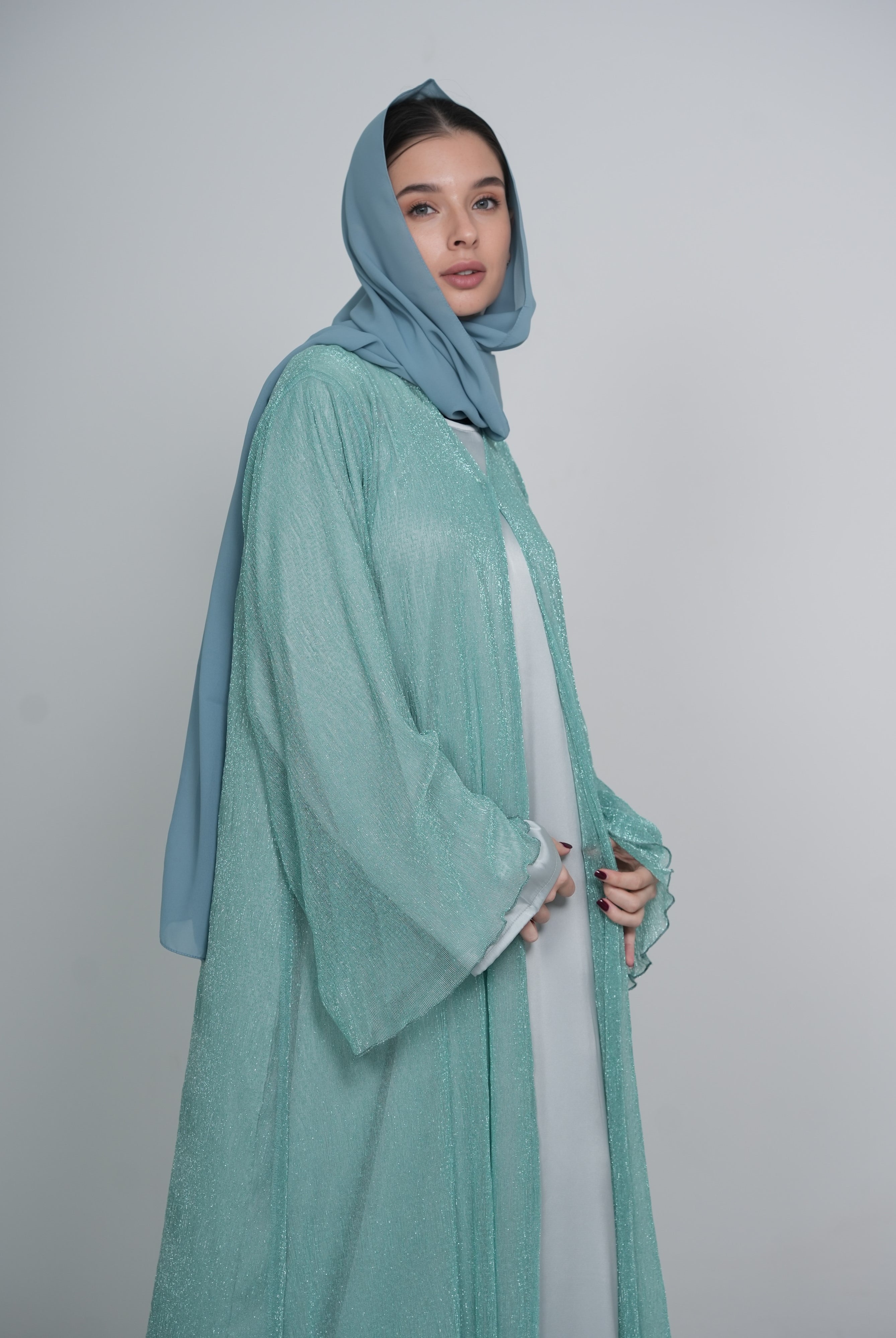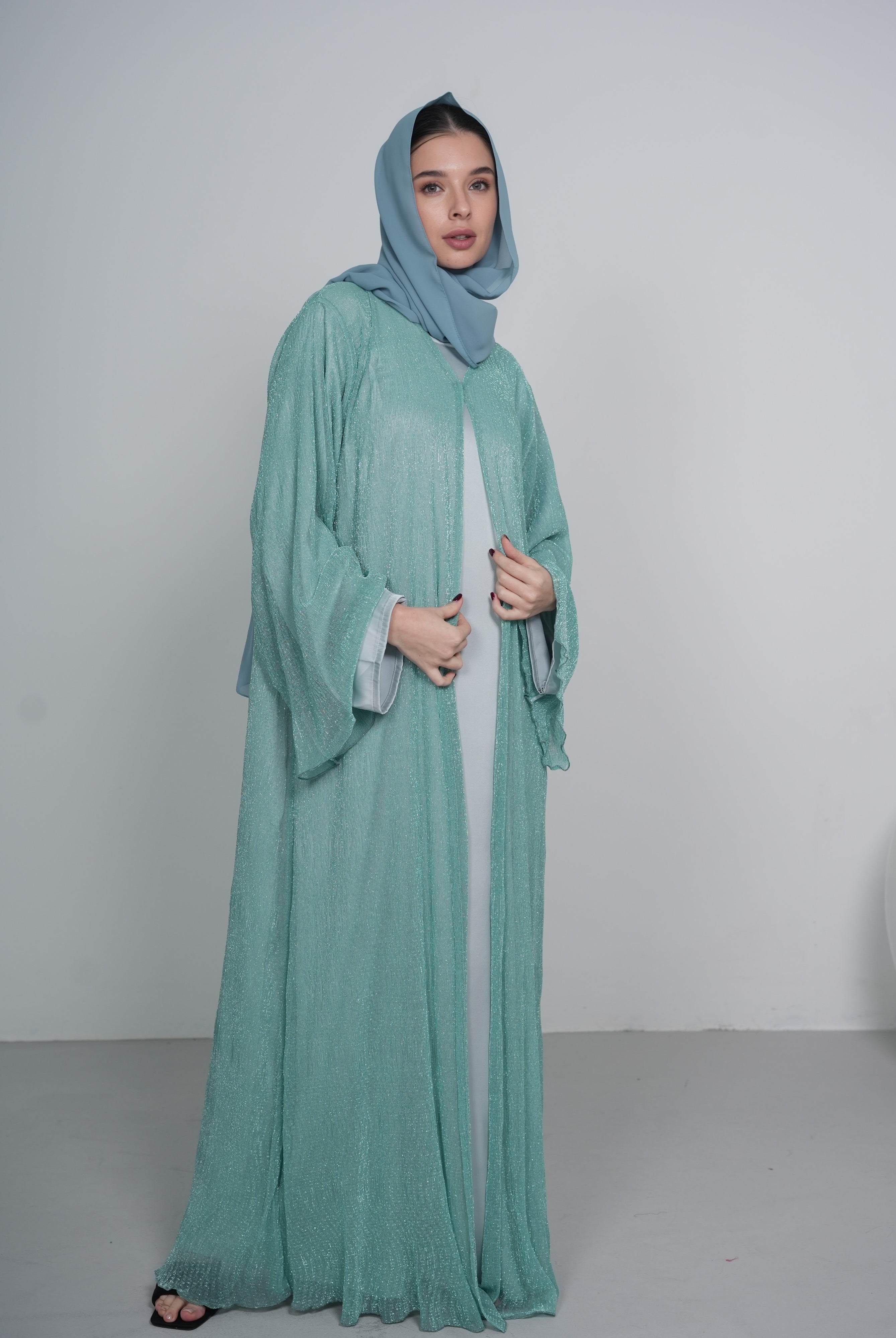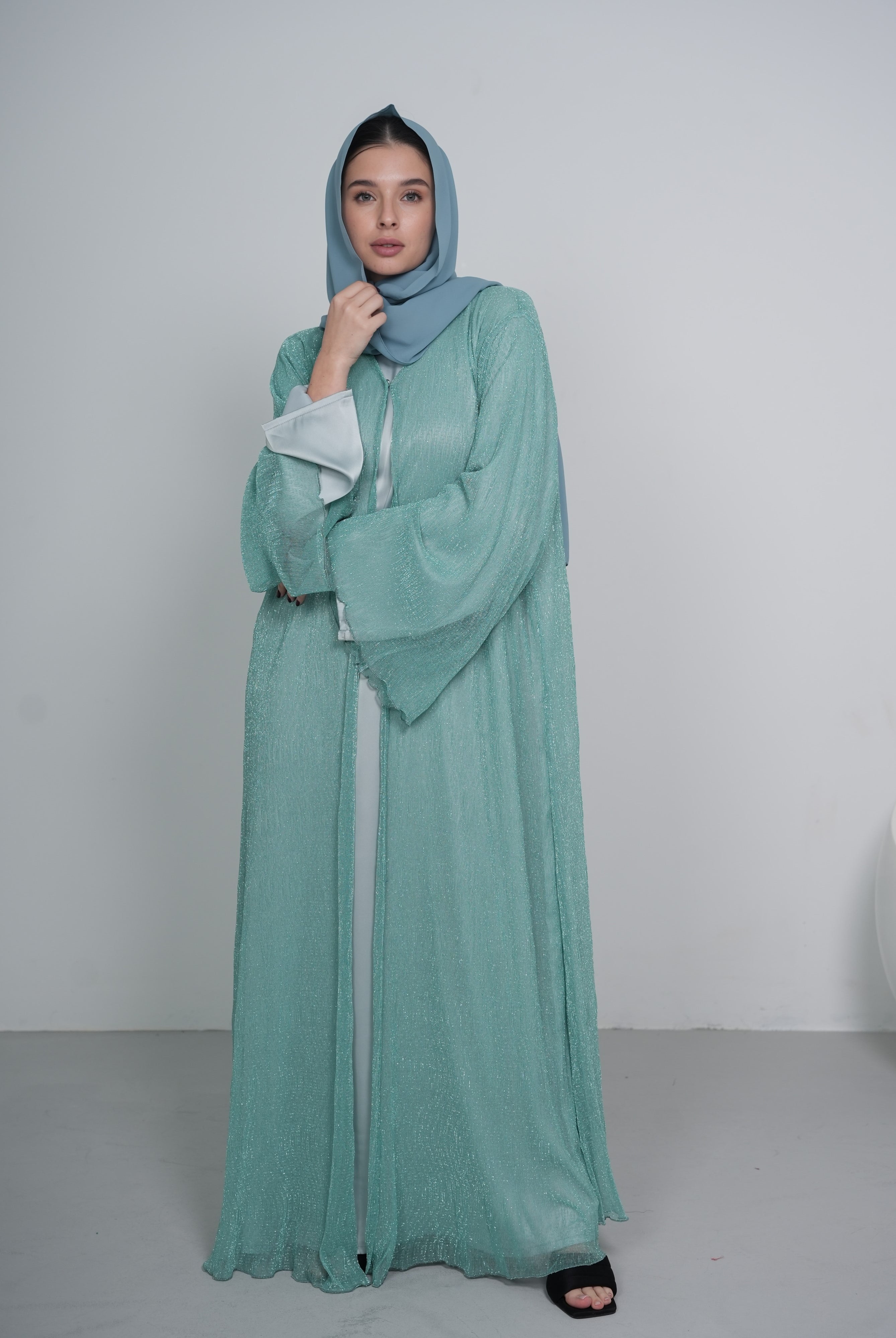 Mint Satin/Silk Abaya with Matching Belt