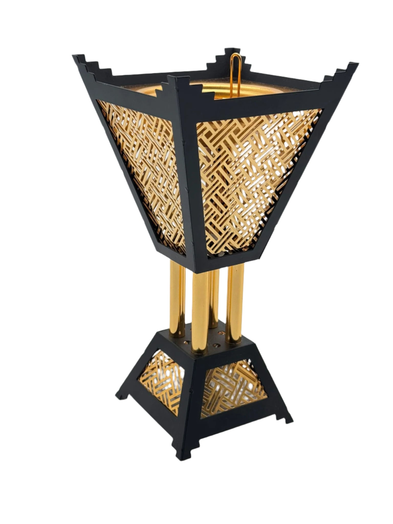مبخرة بخور كبيرة رائعة باللونين الأسود والذهبي، مصممة لإضفاء لمسة من الأناقة والرقي على أي مساحة. تتباين قاعدتها المعدنية السوداء الجريئة بشكل رائع مع لمسات الذهب الغنية، مما يضفي عليها مظهرًا فاخرًا وعصريًا. حجمها الكبير يجعلها قطعة مركزية مميزة، مثالية لإضفاء لمسة جمالية على أجواء منزلك أو مناسبتك. تتميز المبخرة بالمتانة والصلابة، وتوفر منصة مثالية لحرق البخور أو العود، مع لمسة من الأناقة الراقية. مثالية لخلق جو دافئ وعطر، هذه المبخرة الرائعة عملية وديكور مميز.