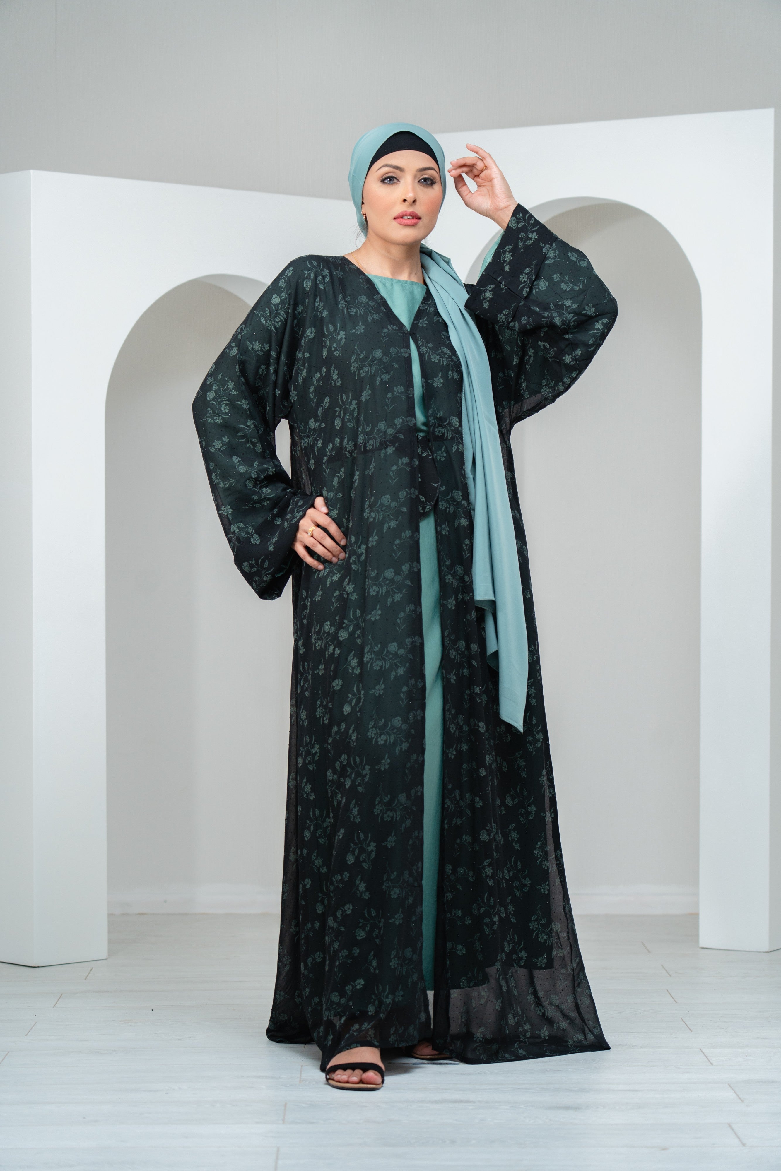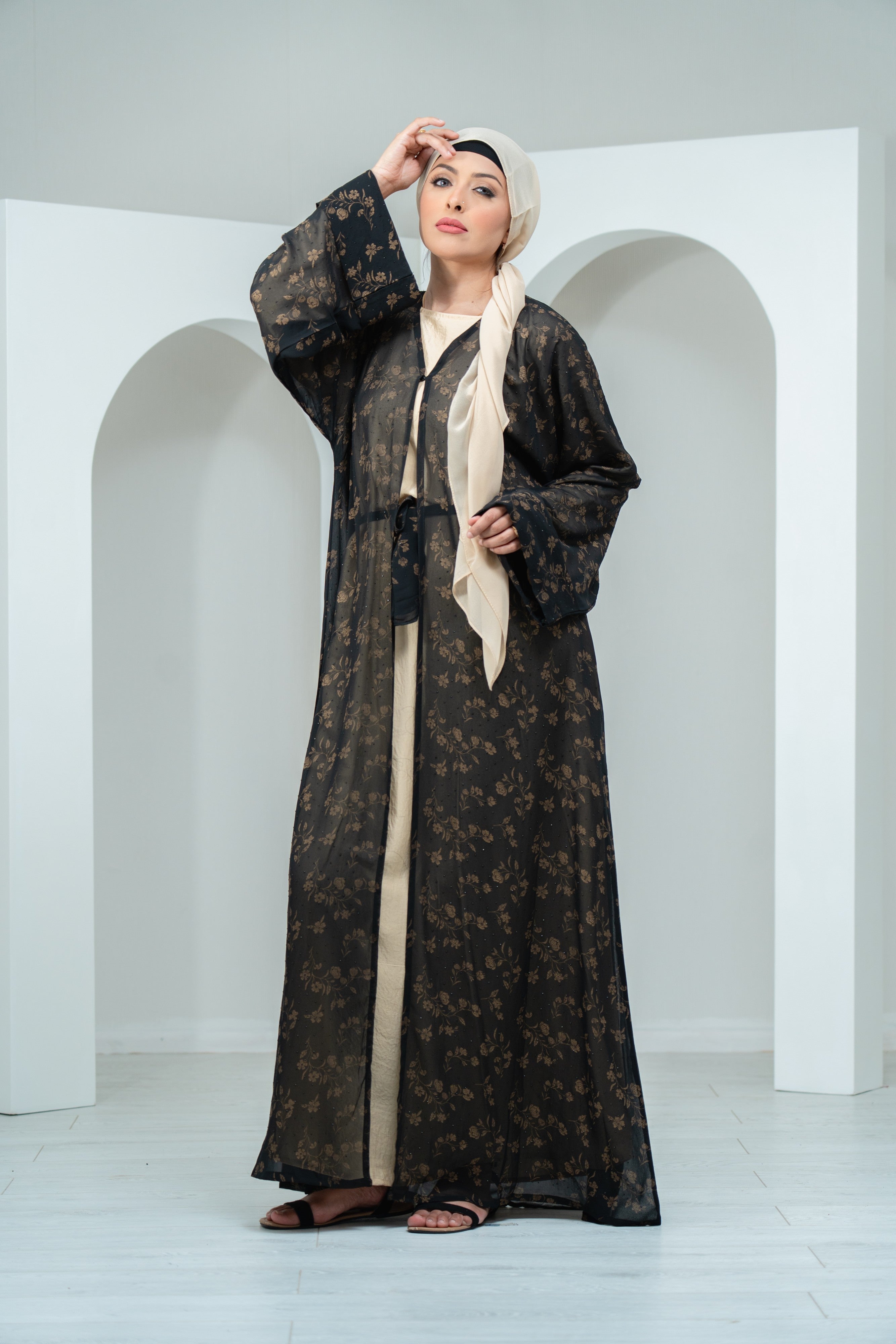 عباية نسائية سوداء منقوشة تغطي الجسم بالكامل