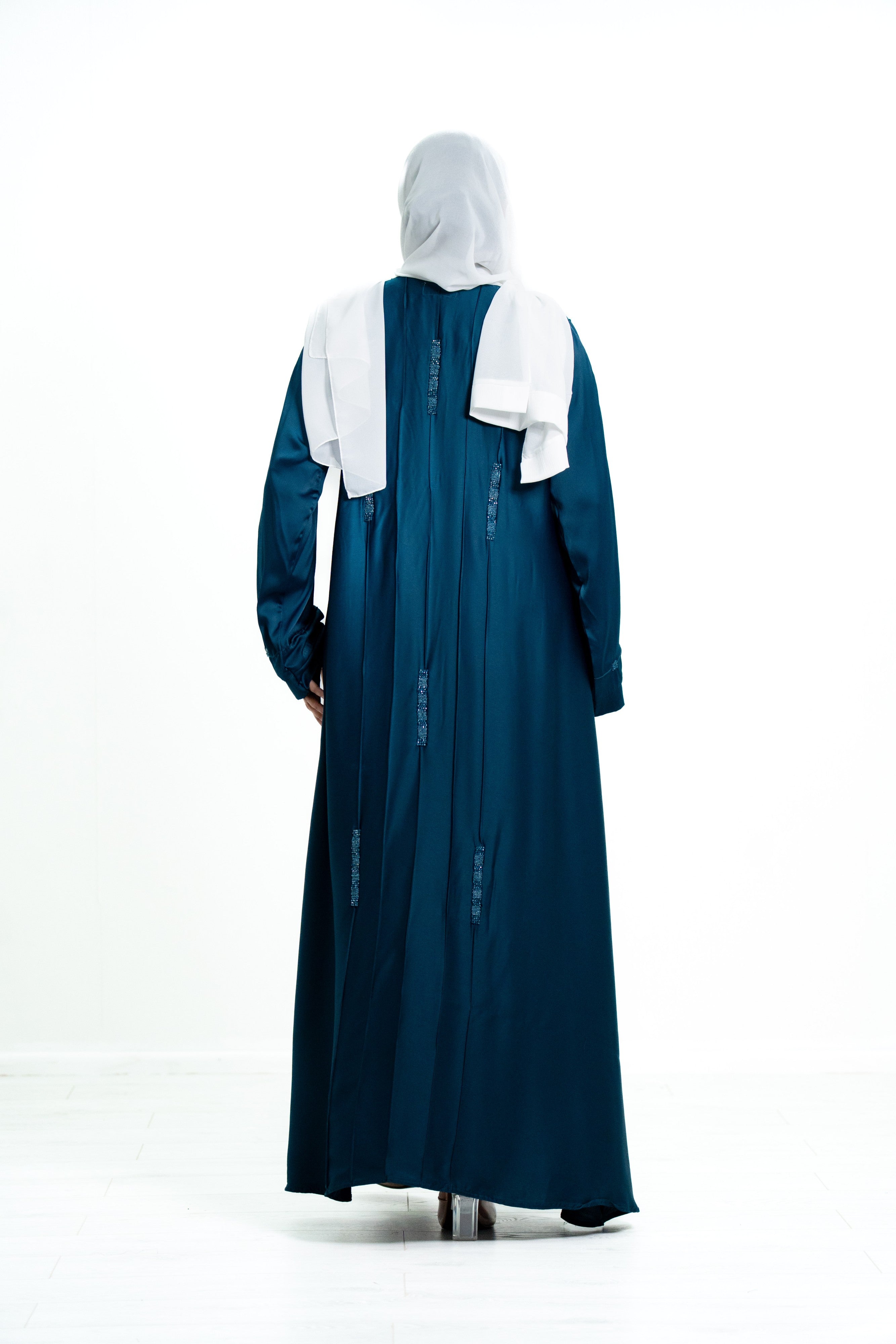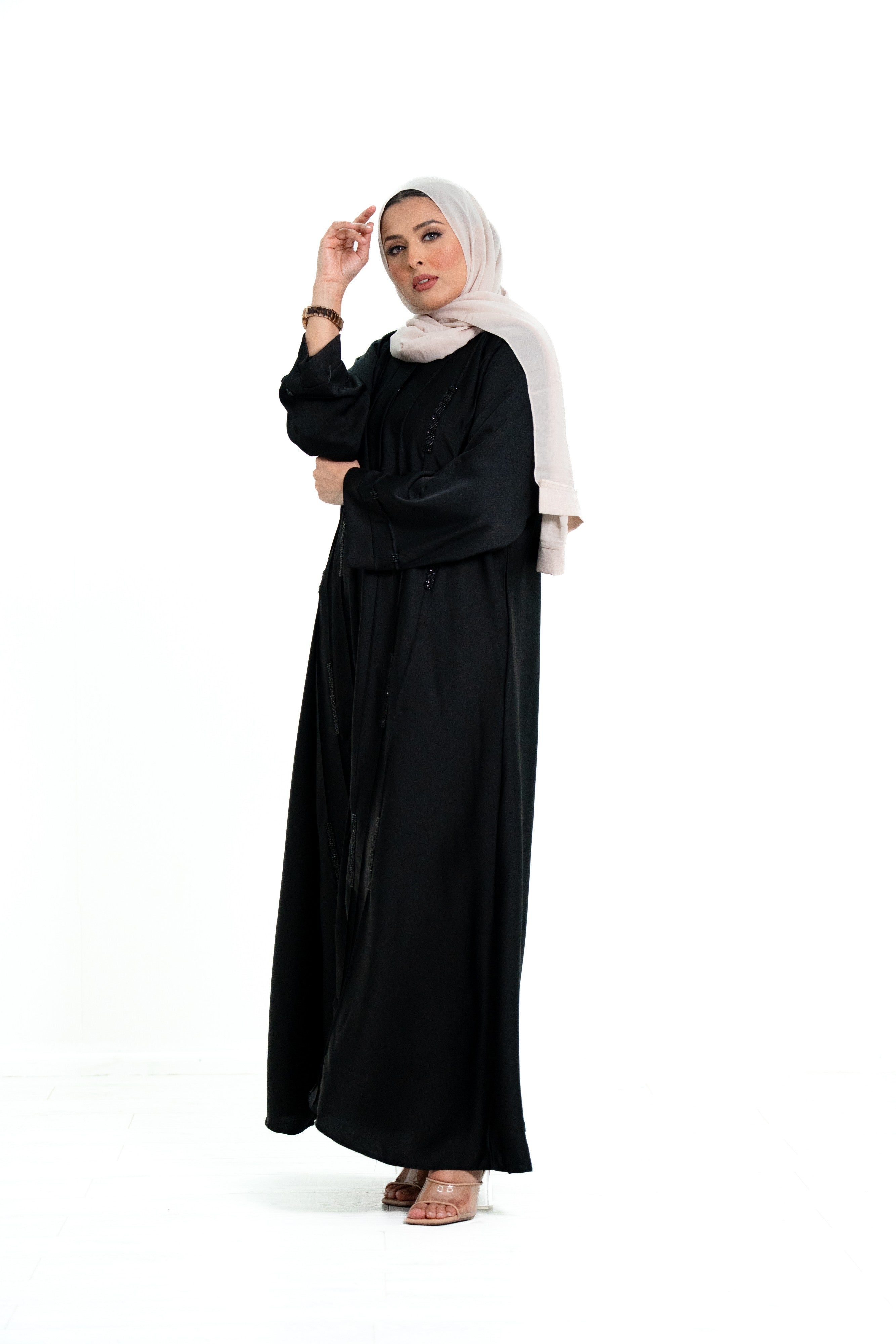 The standout feature of this abaya is the delicate diamante embroidery, carefully placed to create a subtle sparkle and refined finish. The shimmering diamante detailing adds an elegant touch, making this abaya perfect for occasions where you want to look effortlessly stylish.