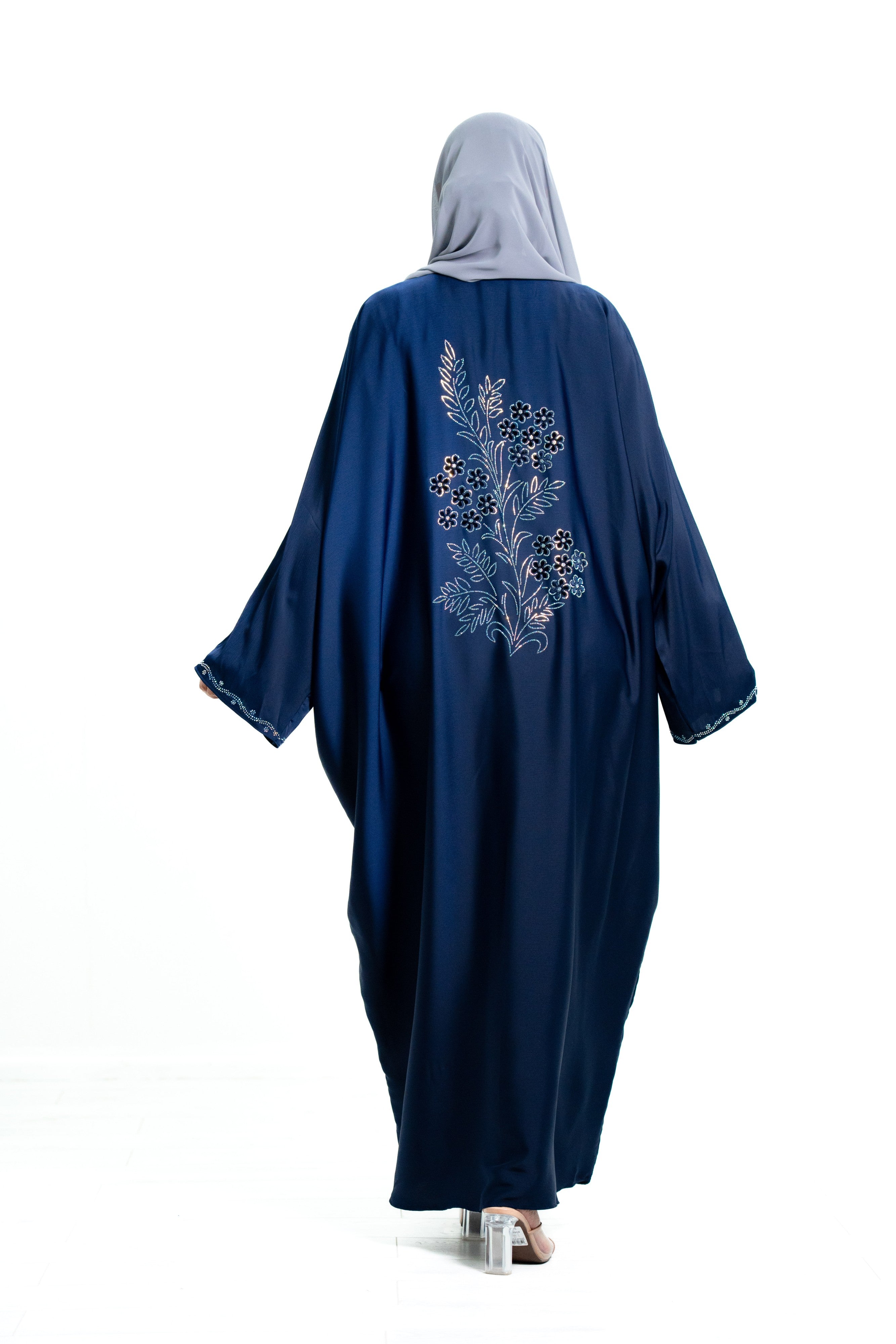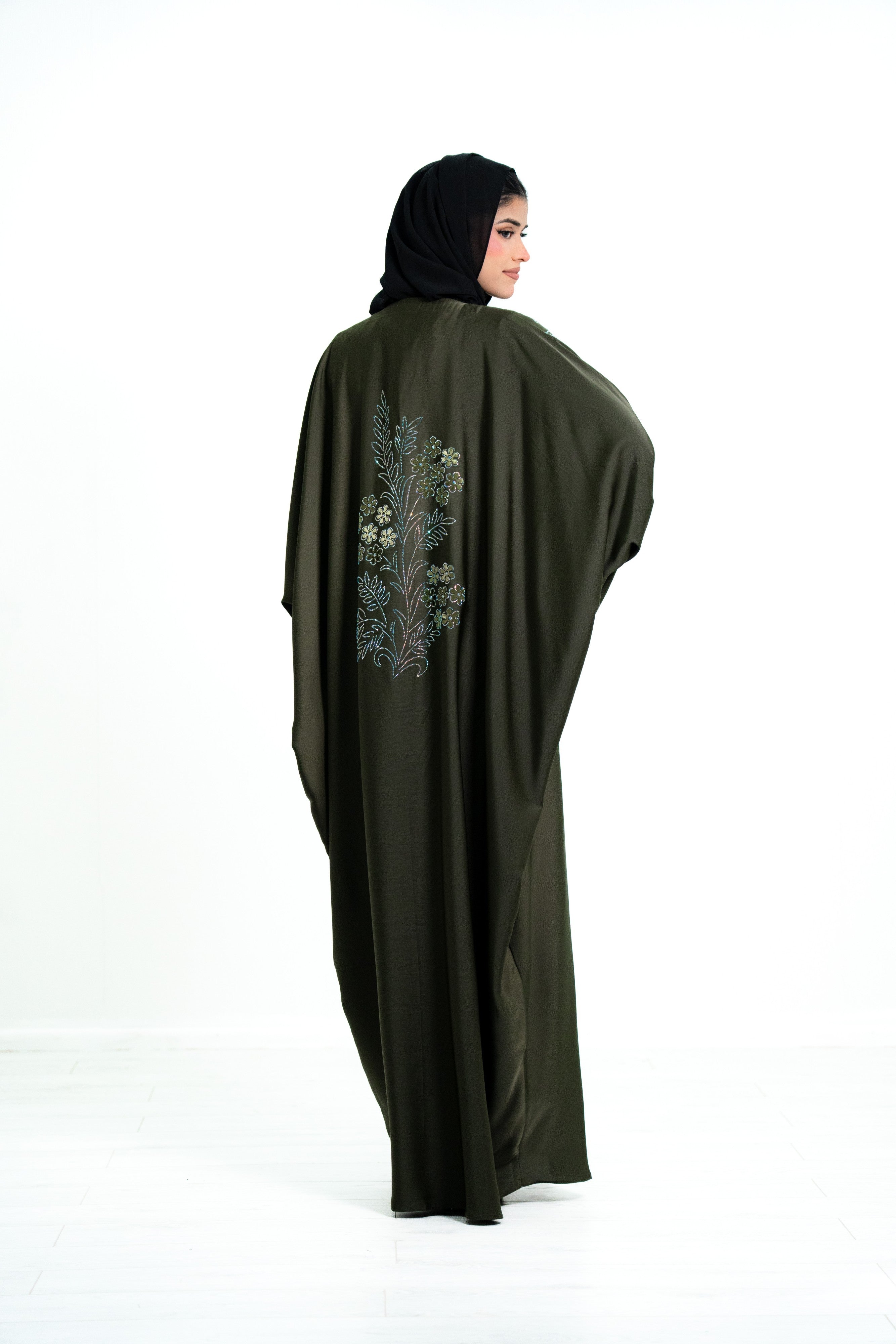 Add glamour and sophistication to your modest wardrobe with this beautiful satin diamante butterfly abaya, designed for women who love elegant and unique modest fashion.