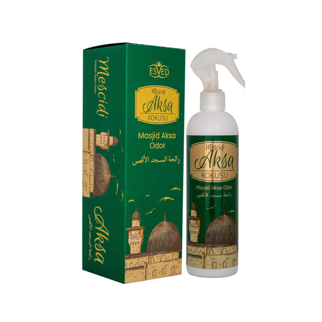 Elevate your prayer mats and furniture with Masjid al-Aqsa Freshener. With a refreshing scent inspired by the renowned Al Aqsa Mosque in Palestine, this fabric freshener will offer your home the aroma of spiritual cleanliness. Keep your residence smelling fresh and clean. 400ml.