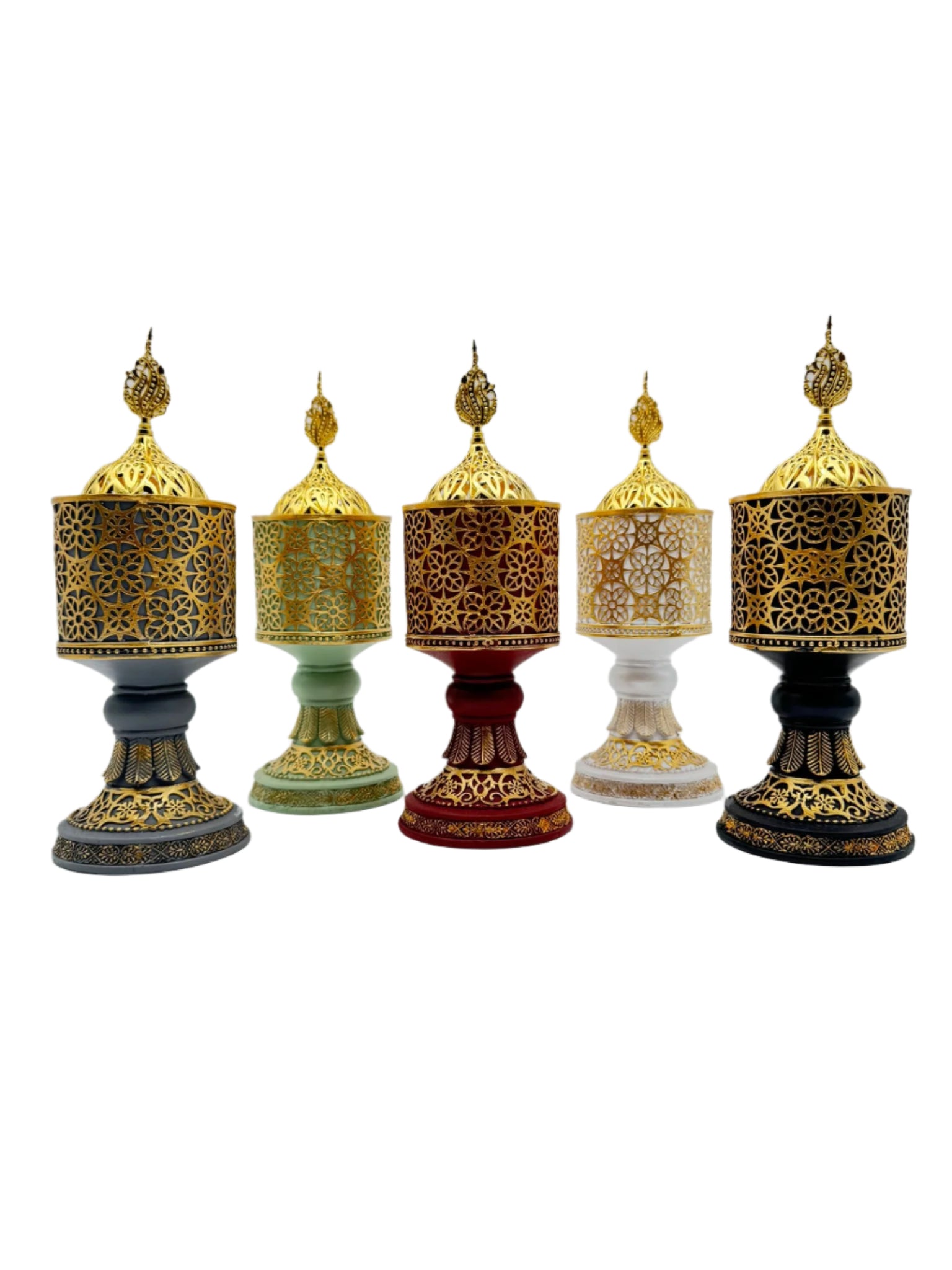 A beautifully crafted Ceramic Candle Design Bakhoor burner, combining elegance with functionality. This burner features a unique candle-inspired design, with a sleek ceramic finish that exudes modern sophistication. Available in five stunning colors—Black, Sage Green, Maroon, Grey, and White—each one offers a distinct, refined look to complement any decor style. Perfect for burning Bakhoor or incense, the burner’s design allows for a subtle yet calming release of fragrance, creating a serene atmosphere in any room. Ideal for enhancing your space or as a thoughtful gift, this versatile burner brings both style and tranquility to your home.
