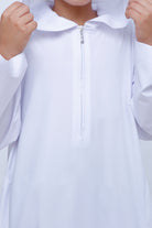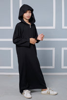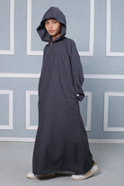 Designed with a functional front zip closure, this thobe makes dressing quick and easy, while the attached hood adds a cool, contemporary edge. Side pockets provide convenience for little essentials, and the premium stitching ensures long-lasting quality and durability.