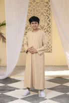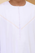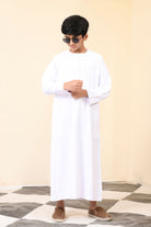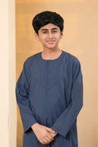 Designed with practicality in mind, this Omani Jubba includes pockets, adding functionality without compromising on style. Whether you're attending a formal event or dressing casually, this versatile thobe can be easily dressed up or down, making it a must-have for any young boy’s wardrobe.