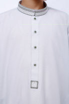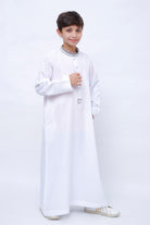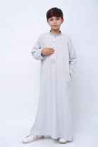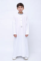 Introduce refined tradition to your child’s wardrobe with our Boys' Embroidered Collar Jubba/Thobe – a beautifully crafted garment that blends modest style with luxurious detailing. Featuring a delicately embroidered collar, this thobe adds a subtle yet sophisticated touch to a classic look.