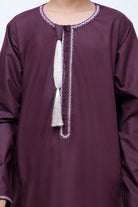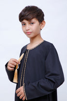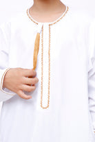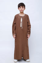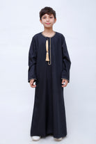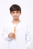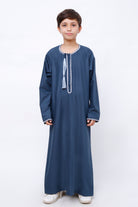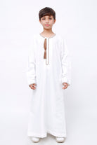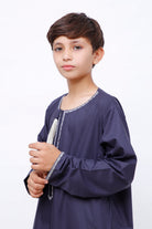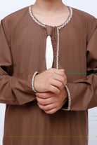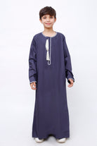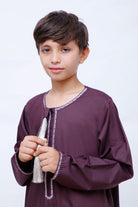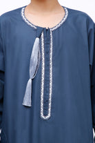 et your child step out in timeless sophistication with our Boys' Embroidered Emirati Jubba/Thobe, a beautiful blend of cultural heritage and everyday comfort. Inspired by traditional Emirati design, this thobe features intricate embroidery on the chest and neckline, complemented by a classic tassel detail that adds an authentic touch.