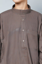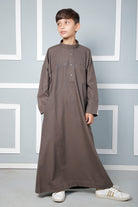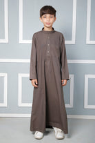 Elevate your child’s wardrobe with our Boys' Split Band Neck Jubba/Thobe, designed to combine modern flair with traditional elegance. Featuring a split band neck design, this thobe provides a sharp, contemporary look while maintaining cultural authenticity. The button detailing adds a sophisticated touch, enhancing the overall design with a refined finish.