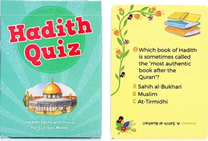 Explore the enlightening Hadith Quiz Cards, a valuable educational tool featuring over a hundred insightful multiple-choice questions. Ideal for classrooms, family, and friend gatherings, these cards delve into diverse topics from family life to Islamic character. Engage with thought-provoking questions based on Hadith, encompassing social values, spirituality, and more. Deepen your understanding of the Prophet’s teachings and Islamic principles while enjoying interactive discussions.