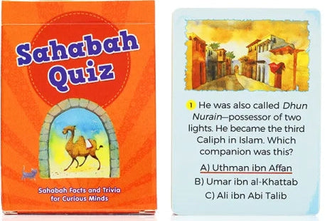 Sahabah Quiz Cards, with their insightful multiple-choice questions on fascinating topics, are perfect for the classroom, holidays or simply playing at home with your friends & family! The questions, based on facts, trivia relating to the lives of the companions of the Prophet, range over early Muslims, friends of the Prophet, the first Muaddhin, revelation & compilation of the Holy Quran & their mission to spread Islam globally.