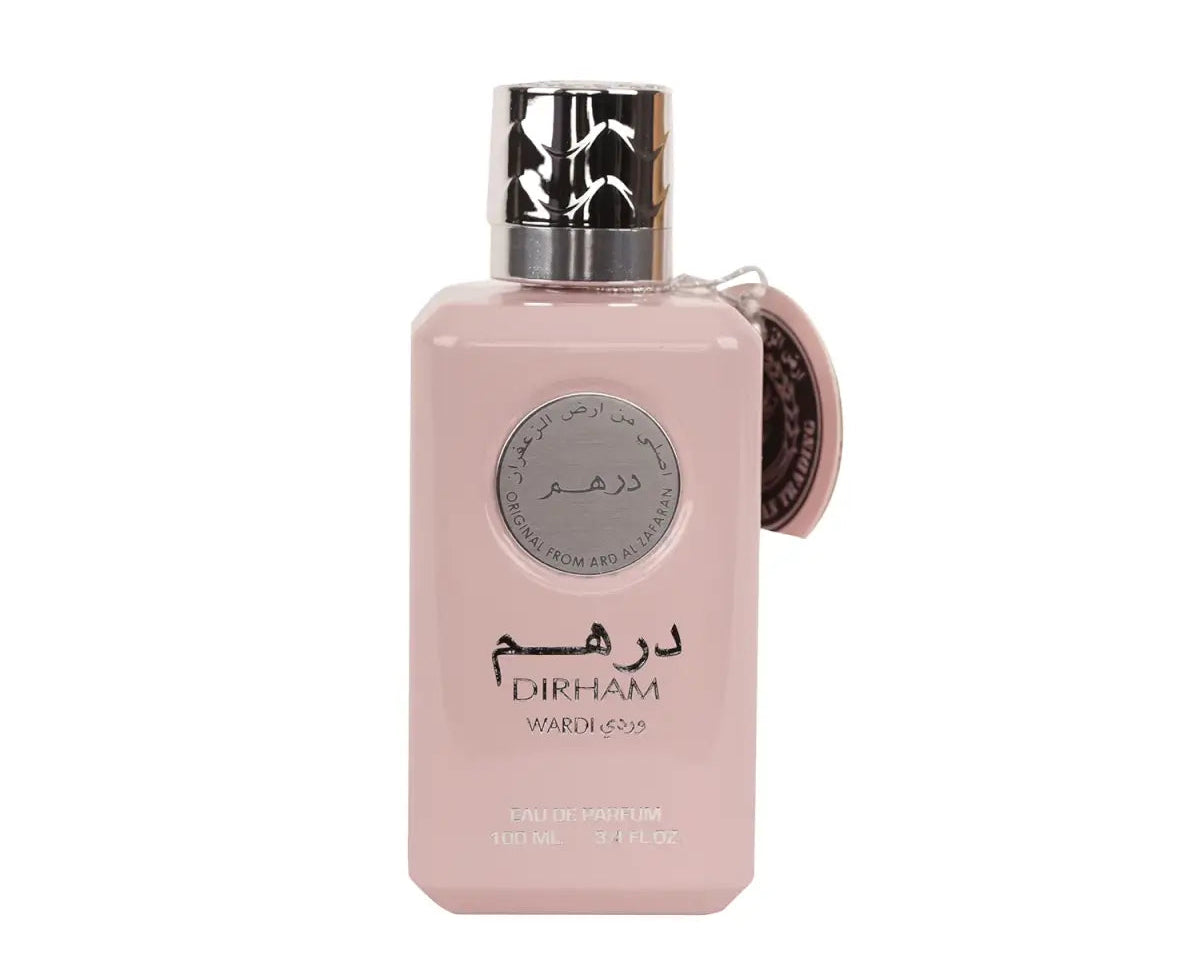 Dirham Wardi by Ard Al Zaafaran is a fragrance for women. The top notes are Rose, Orange Blossom, Pear and Black Currant; the middle notes are Praline, Jasmine and iris; the base notes are Patchouli, Vanilla and Tonka Bean.