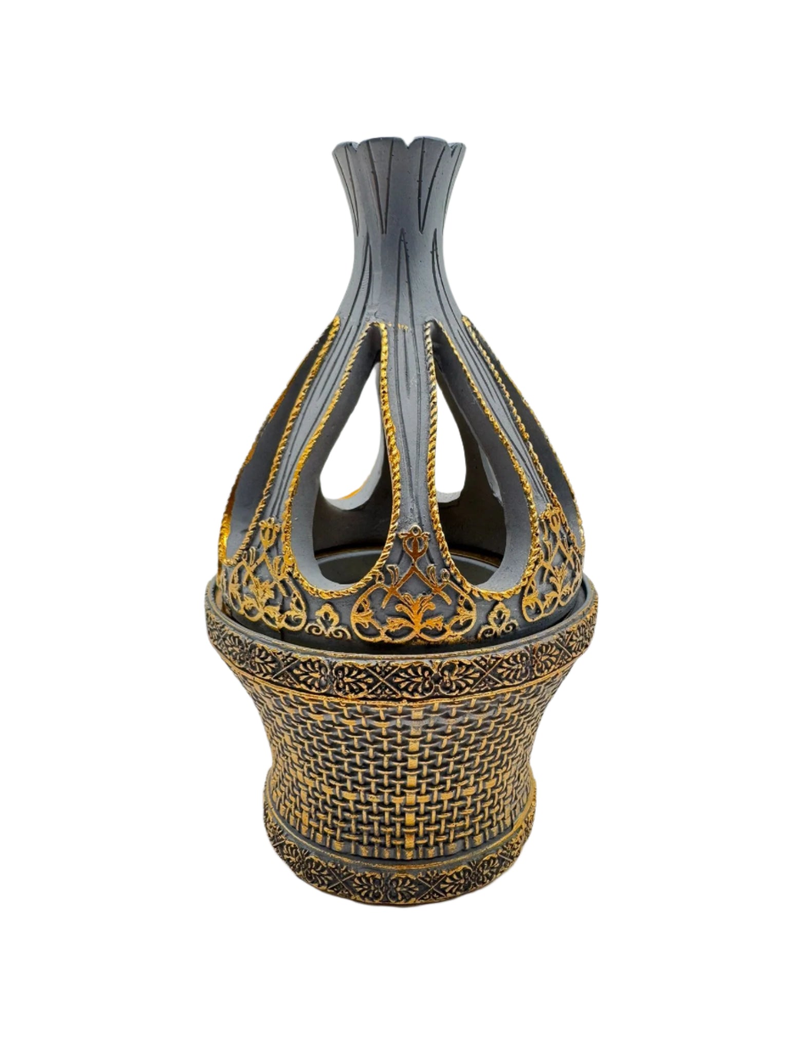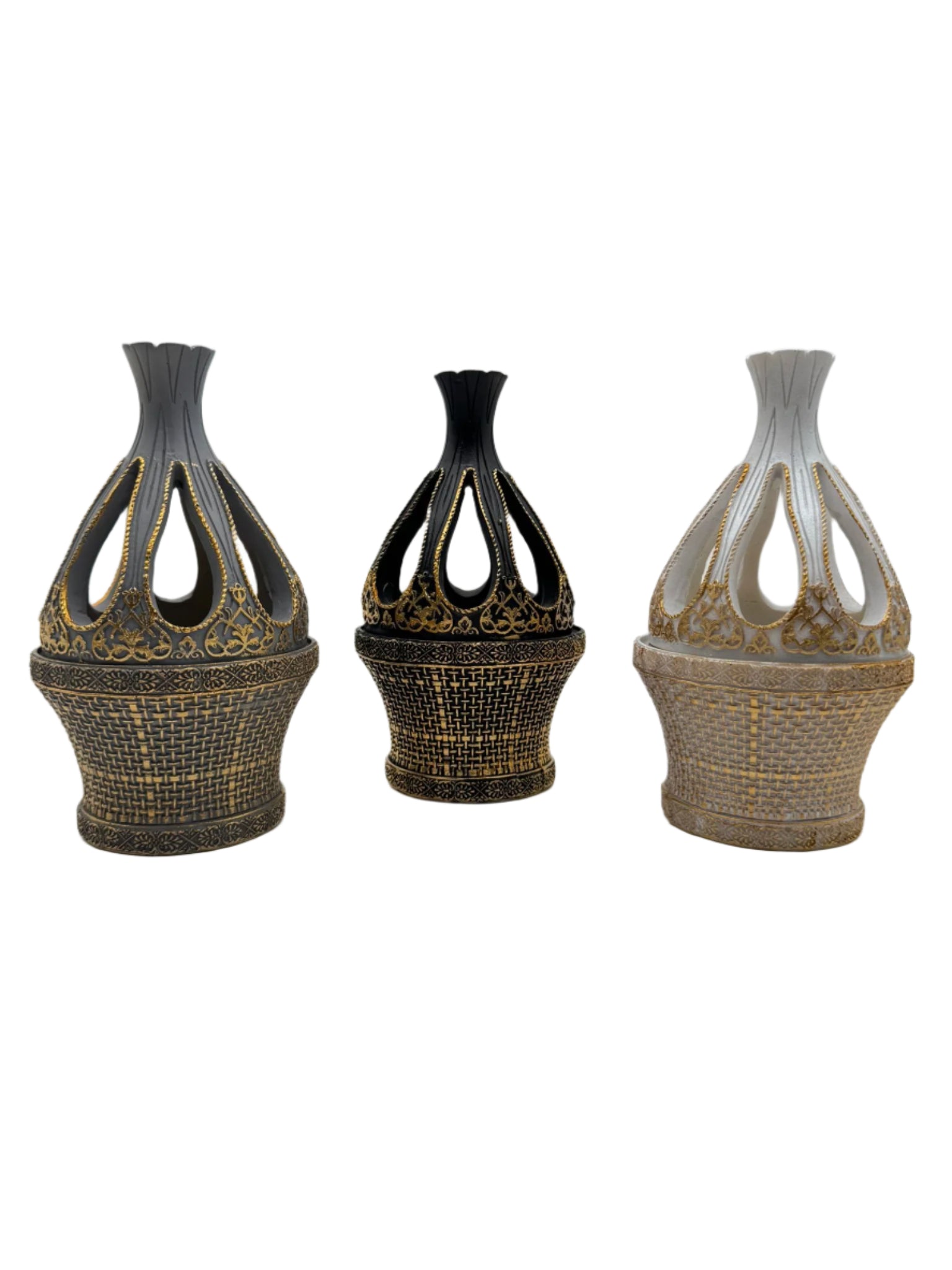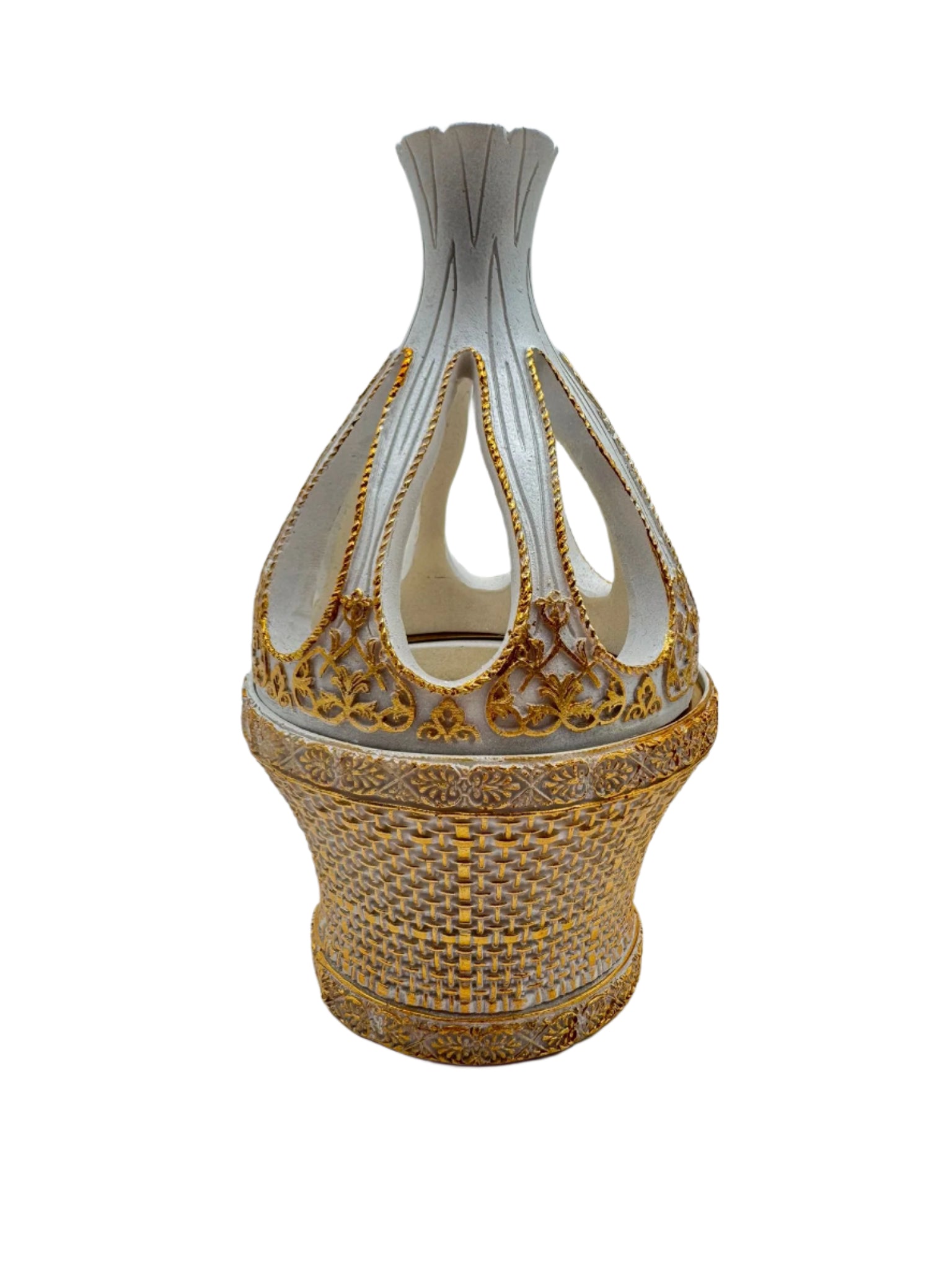 A beautifully designed Ceramic Tulip Lid Bakhoor burner, featuring a graceful tulip-shaped lid that adds an elegant touch to its modern design. Crafted from high-quality ceramic, this burner is available in three sophisticated colors—White, Grey, and Black—allowing you to select the perfect hue for your decor. The tulip lid not only enhances its aesthetic appeal but also helps contain the fragrance as it gently diffuses, creating a calm, aromatic atmosphere. Ideal for burning Bakhoor or incense, this burner combines functionality with beauty, making it a perfect addition to any home or a thoughtful gift for special occasions.