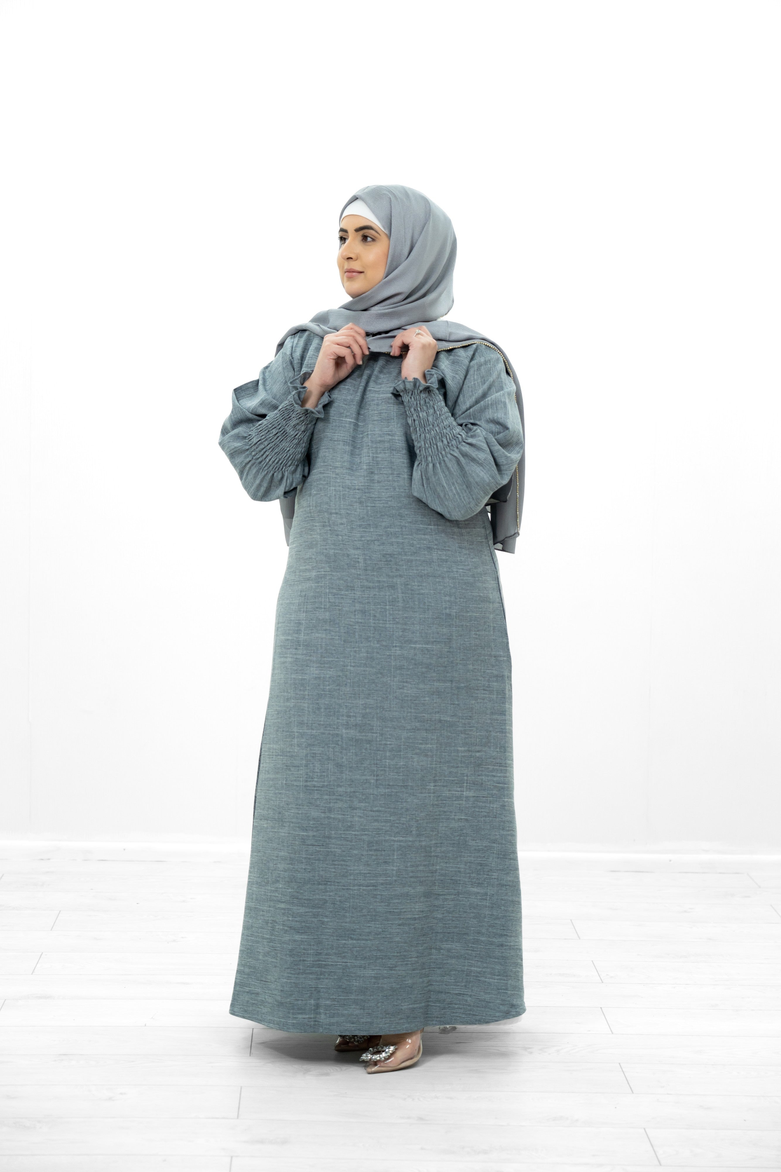Grey Linen Cuffed Sleeve Abaya