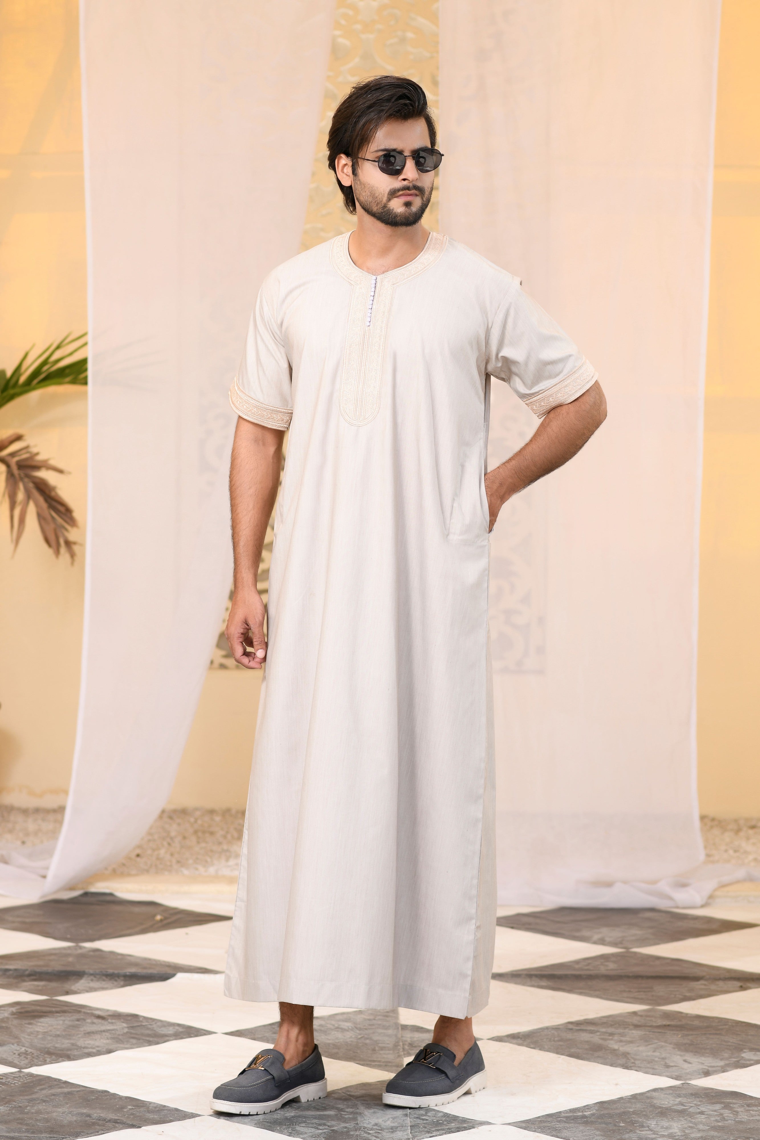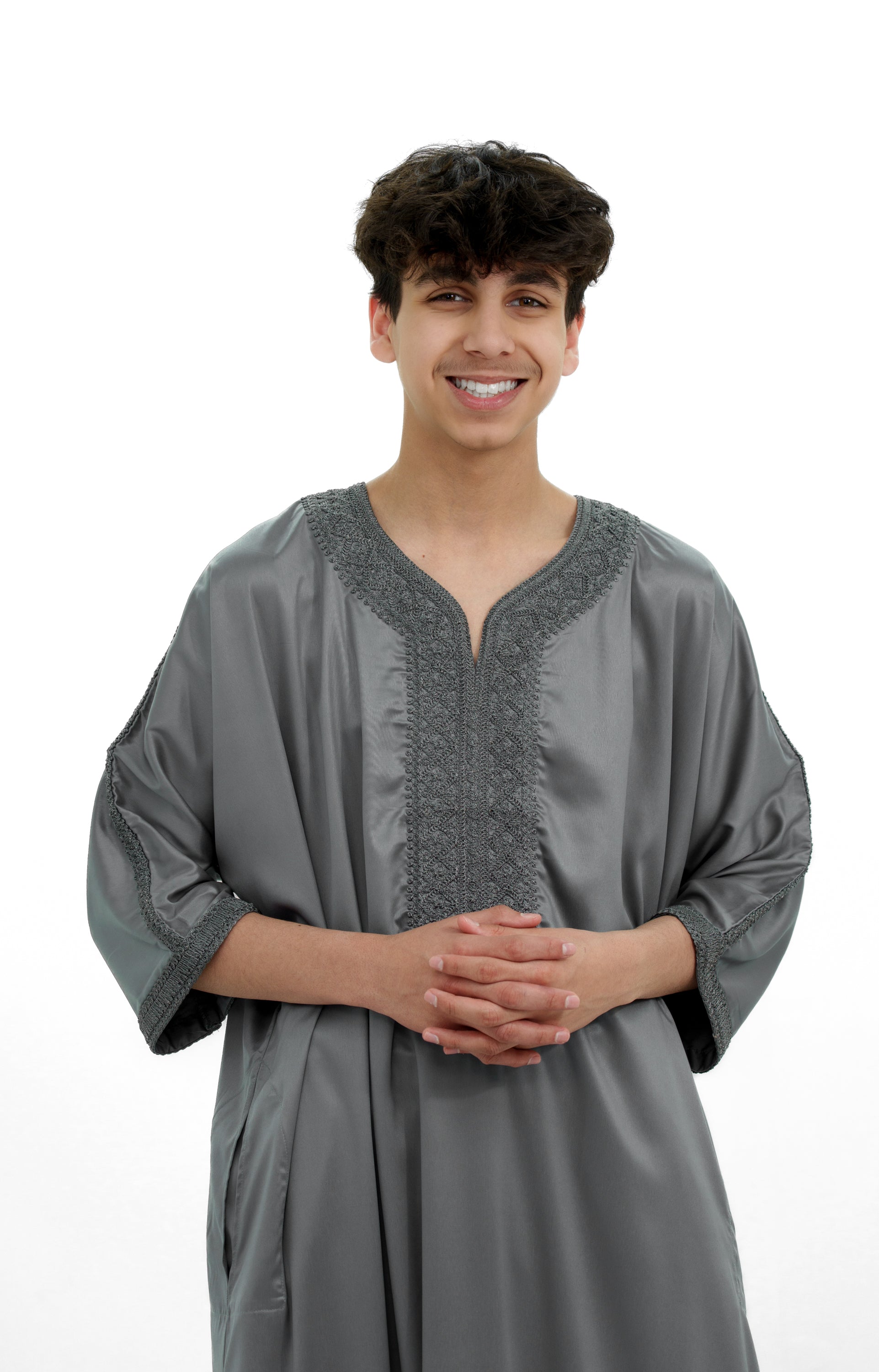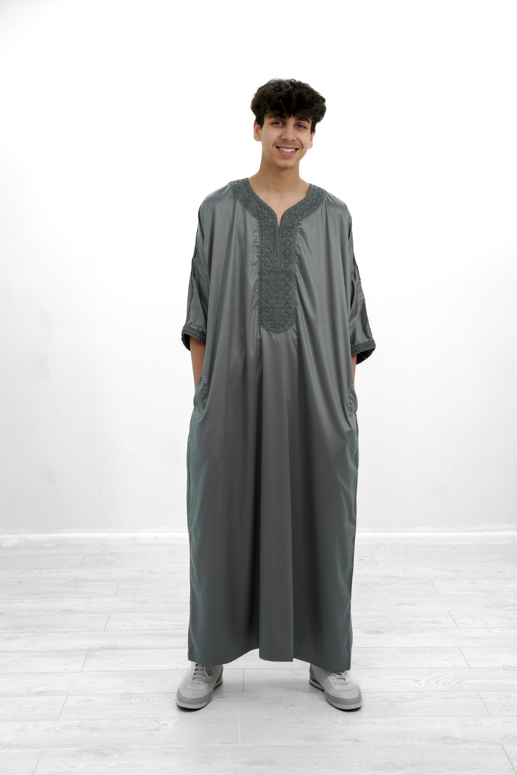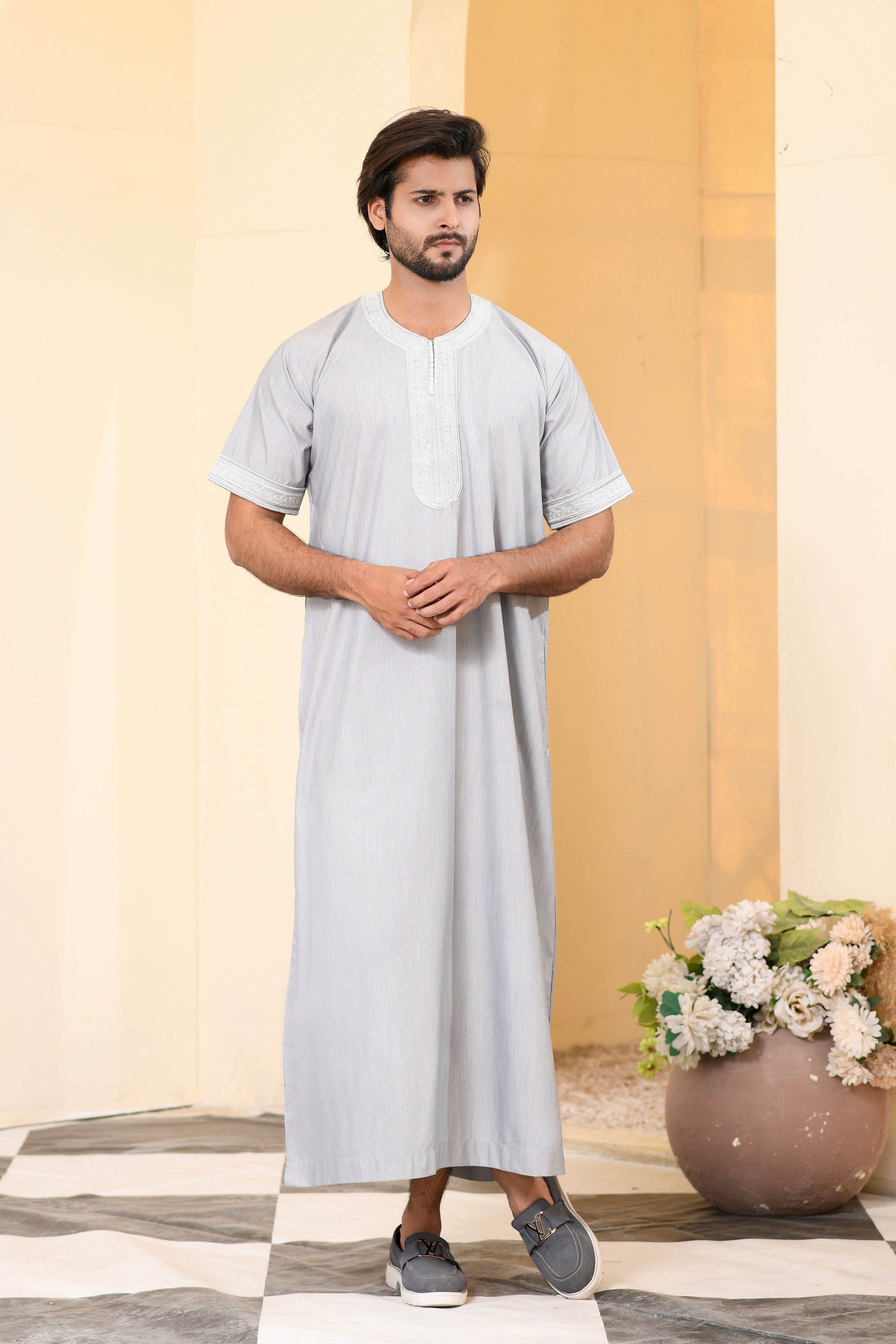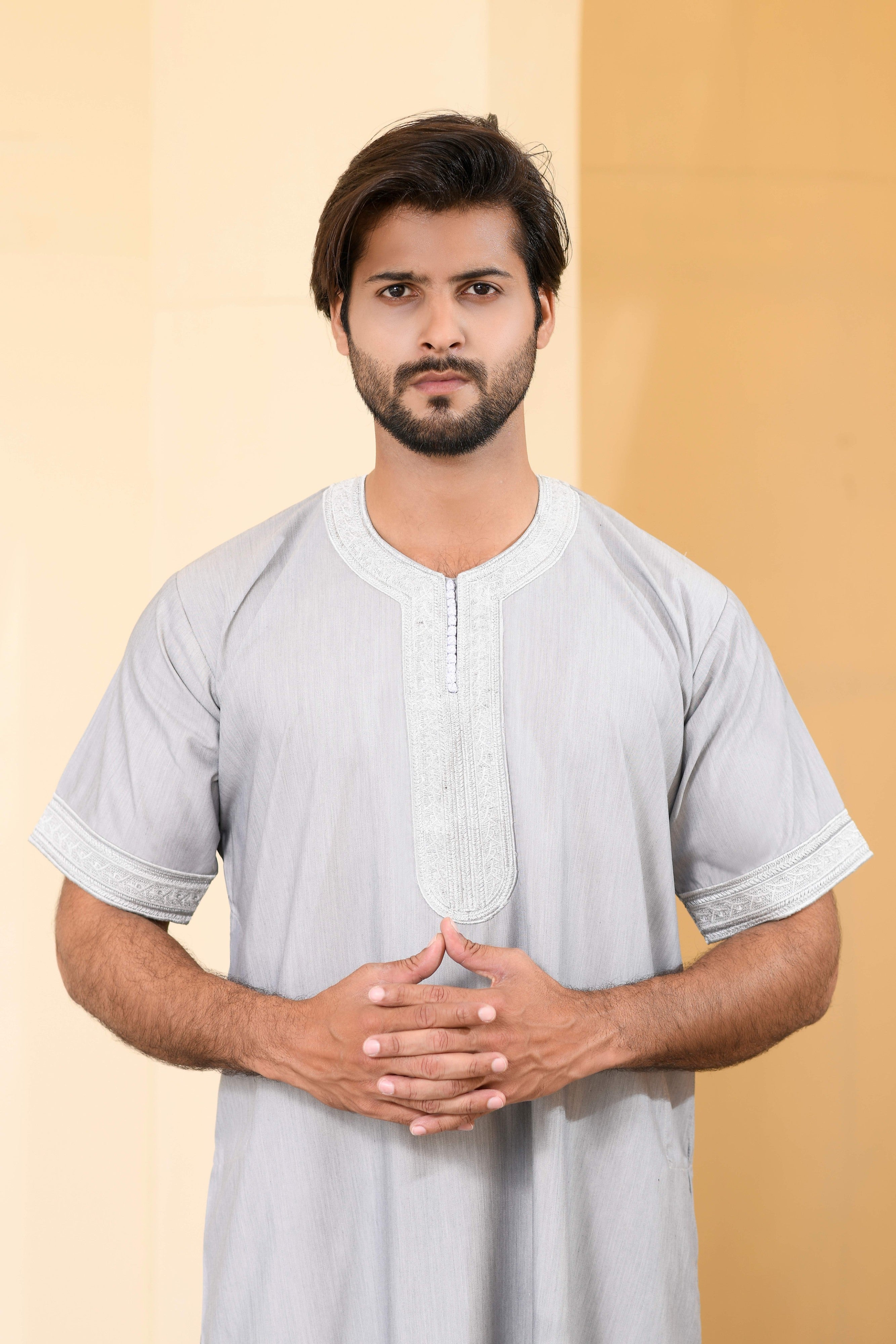 Grey Moroccan Half Sleeve Jubba with Knotted Bead Design