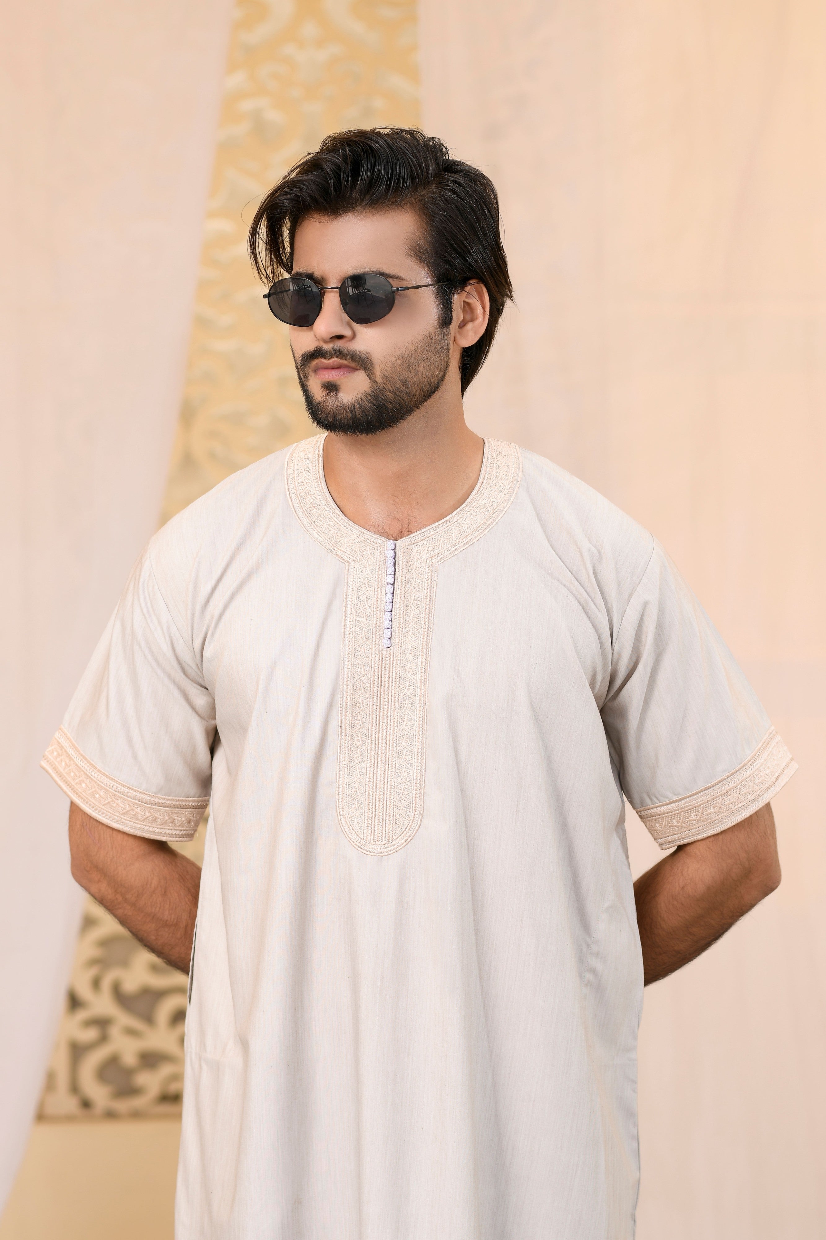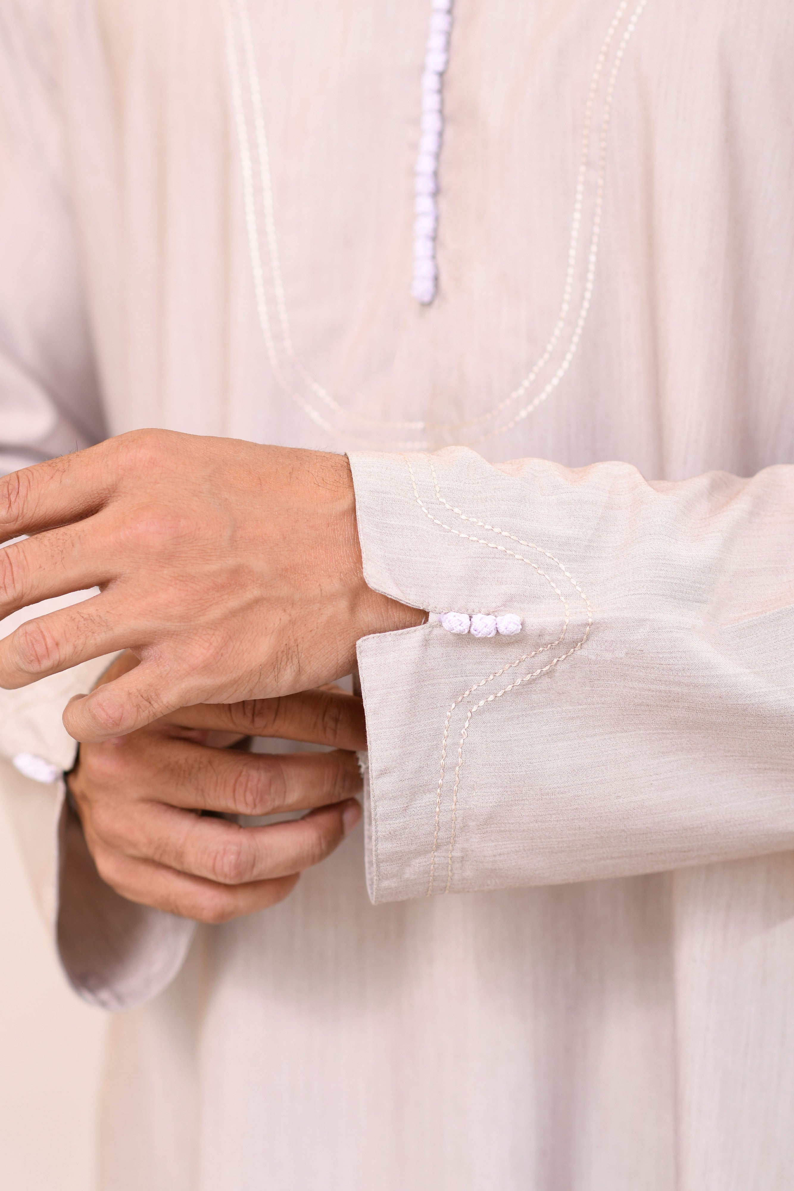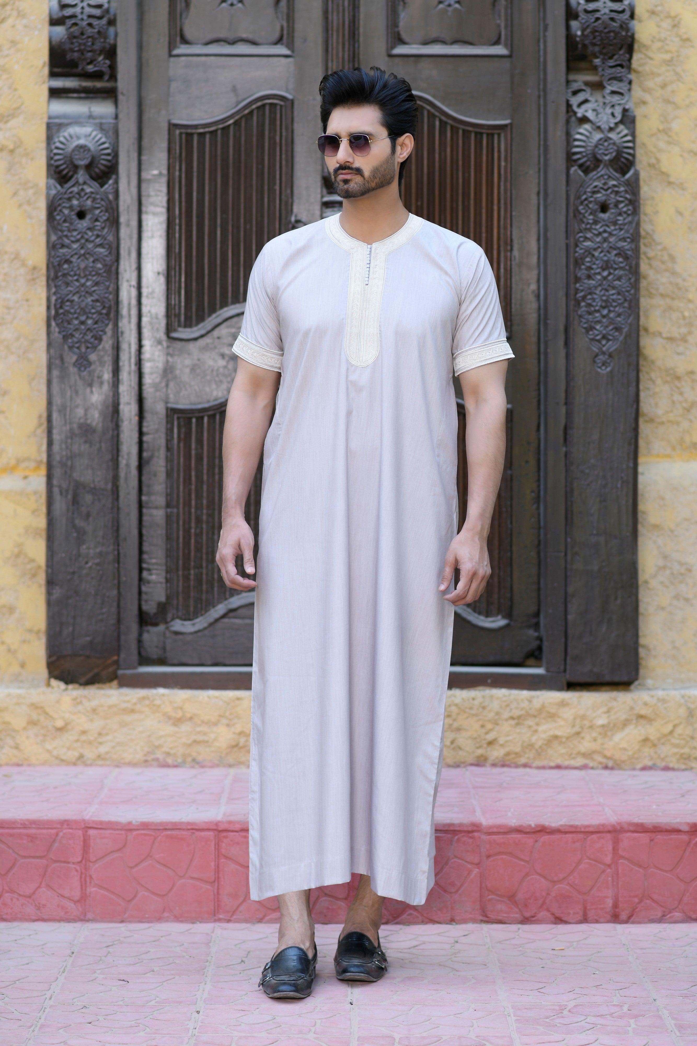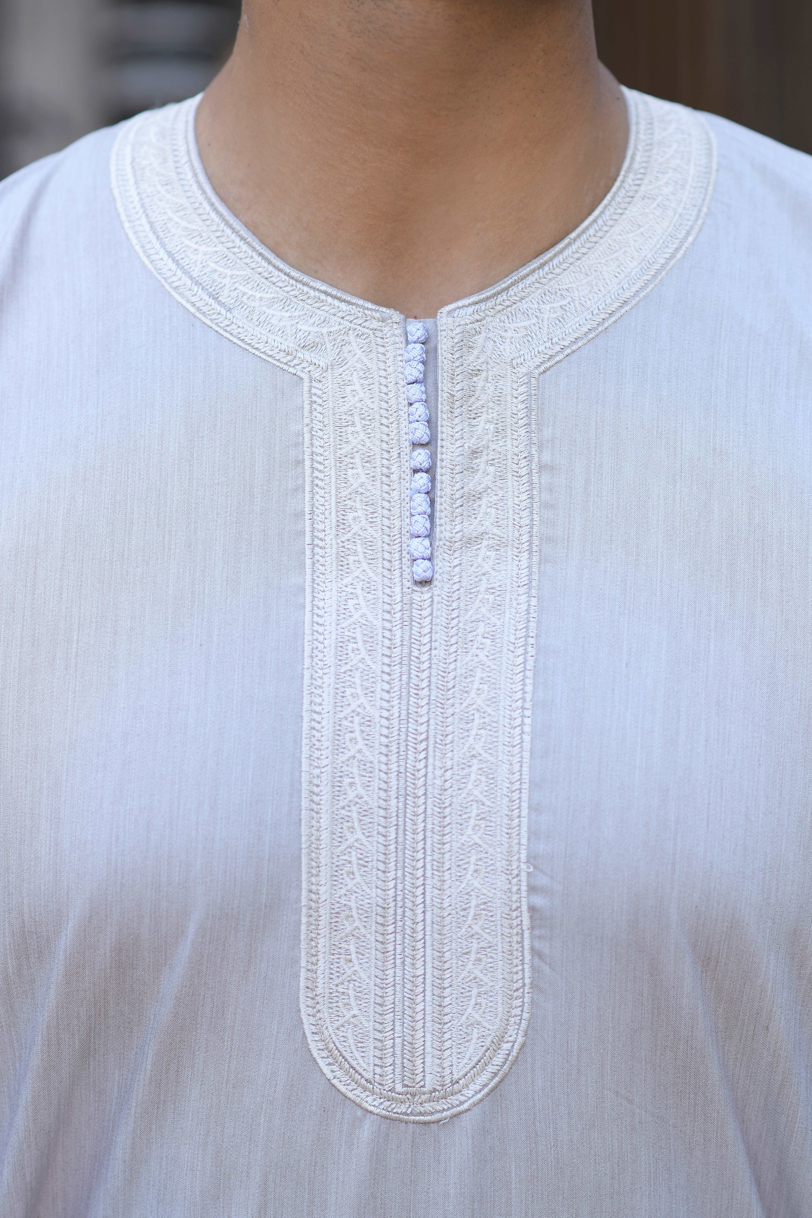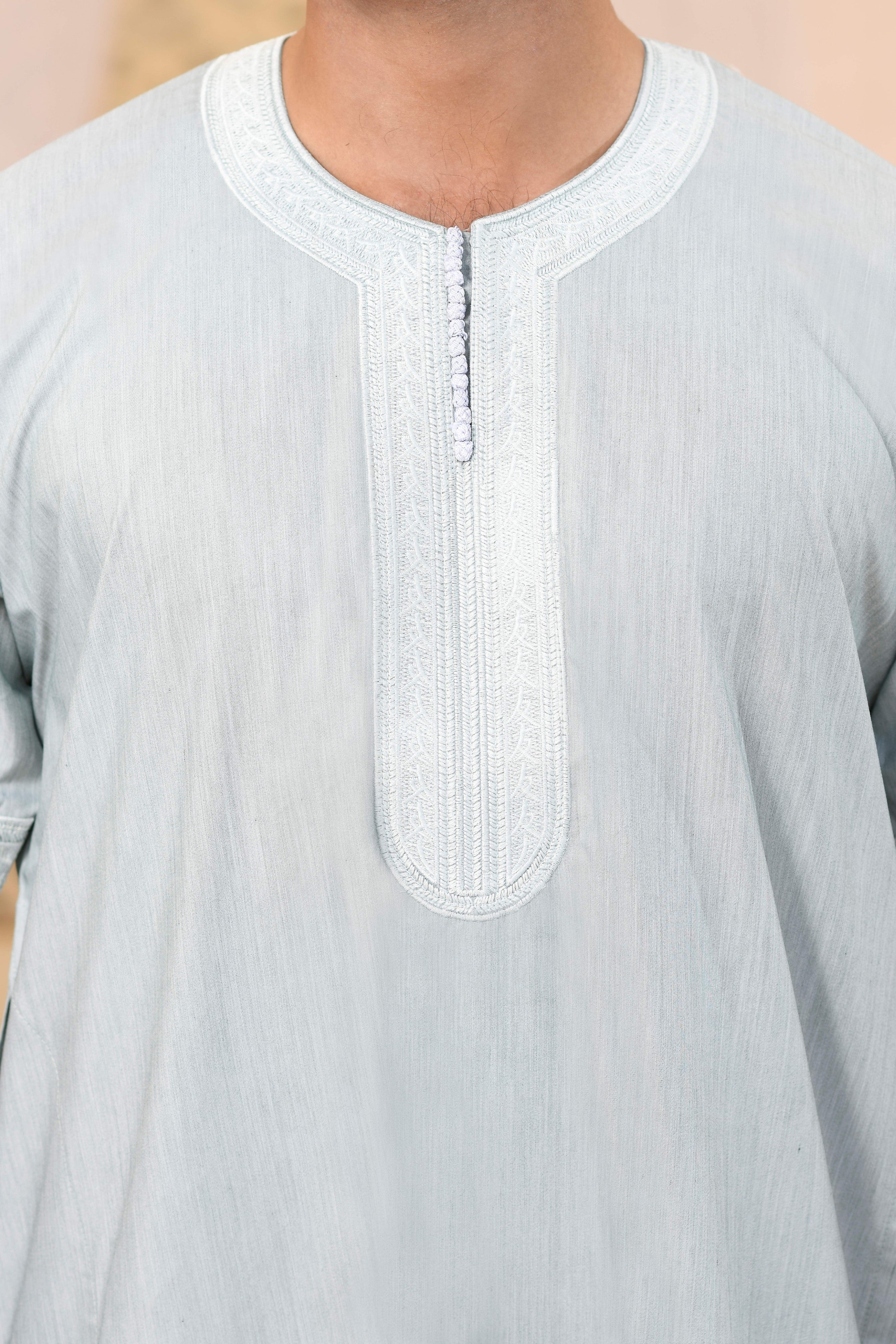 Grey Moroccan Half Sleeve Jubba with Knotted Bead Design