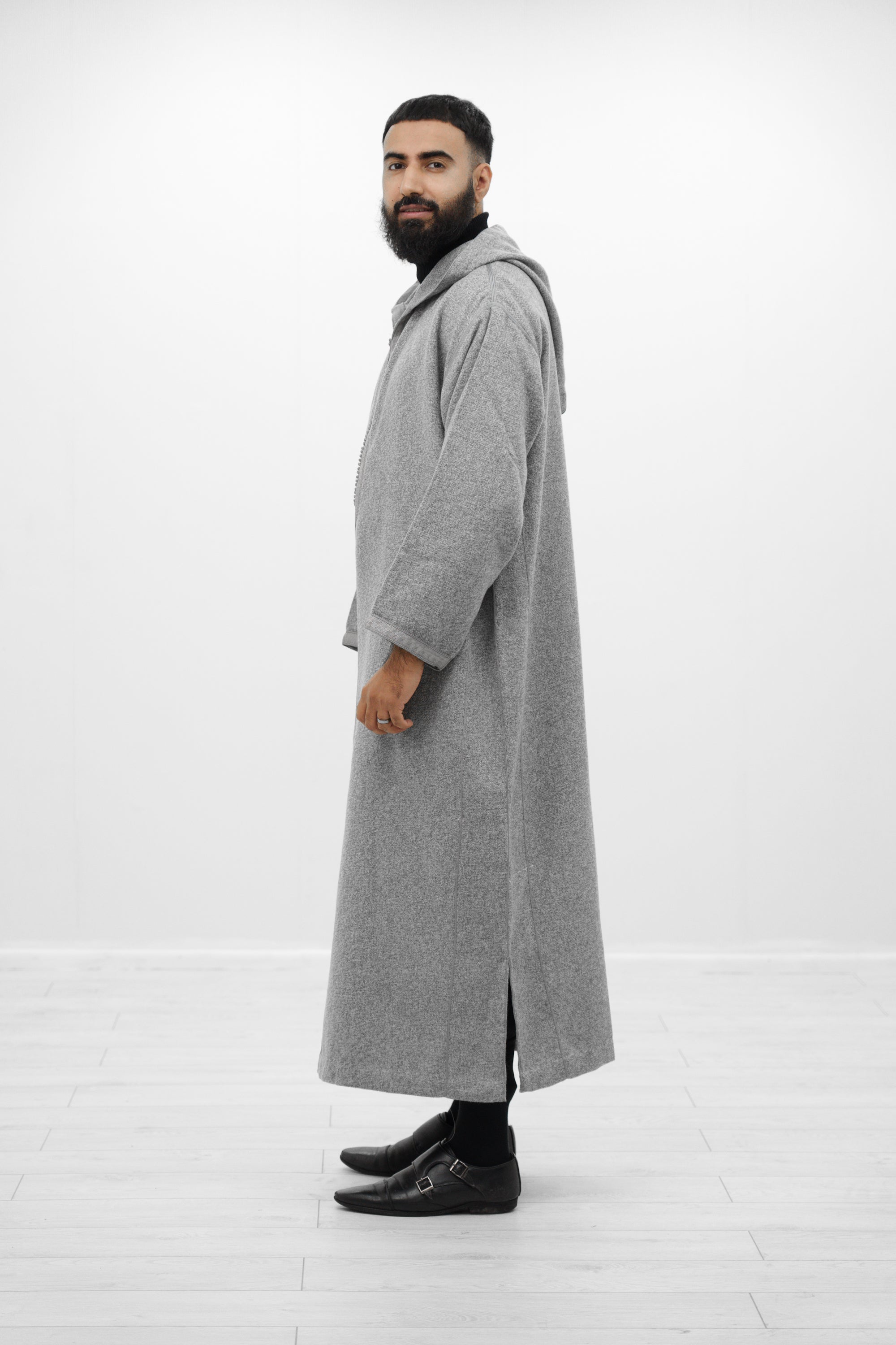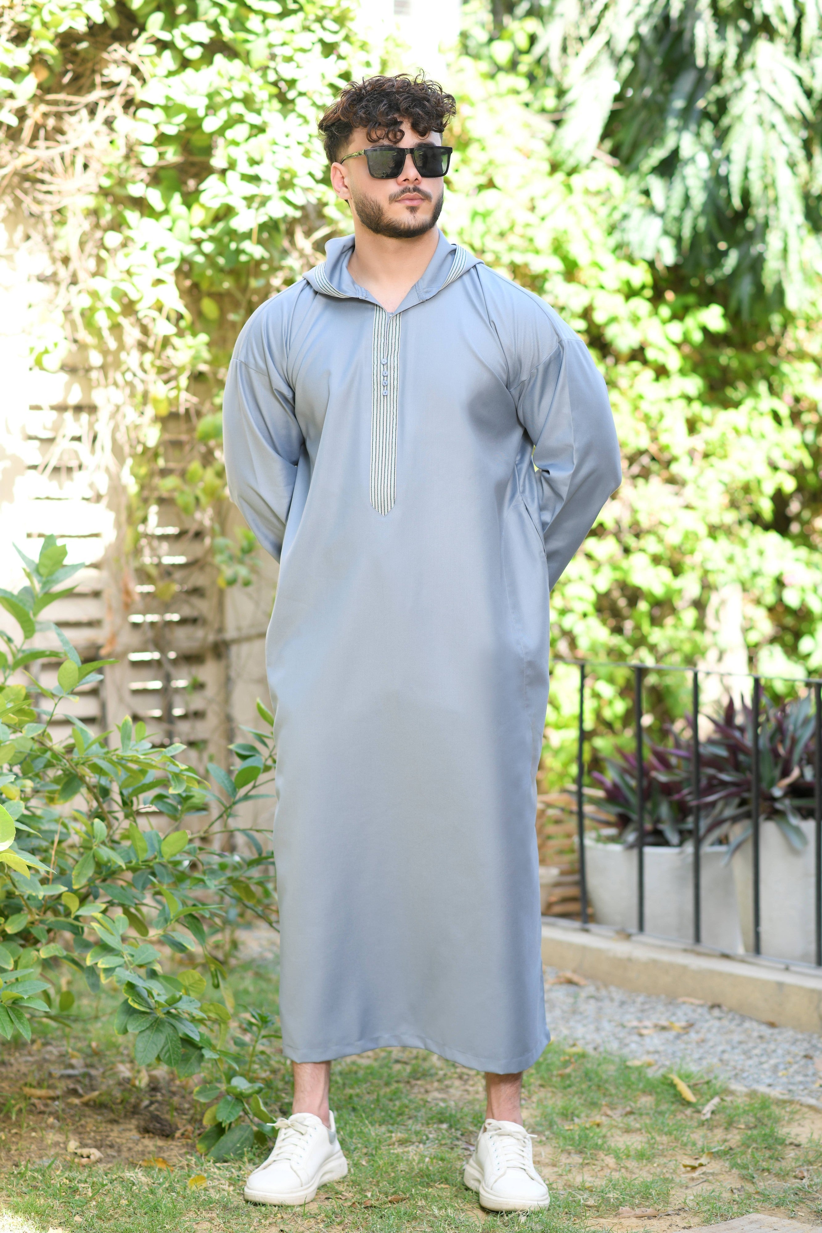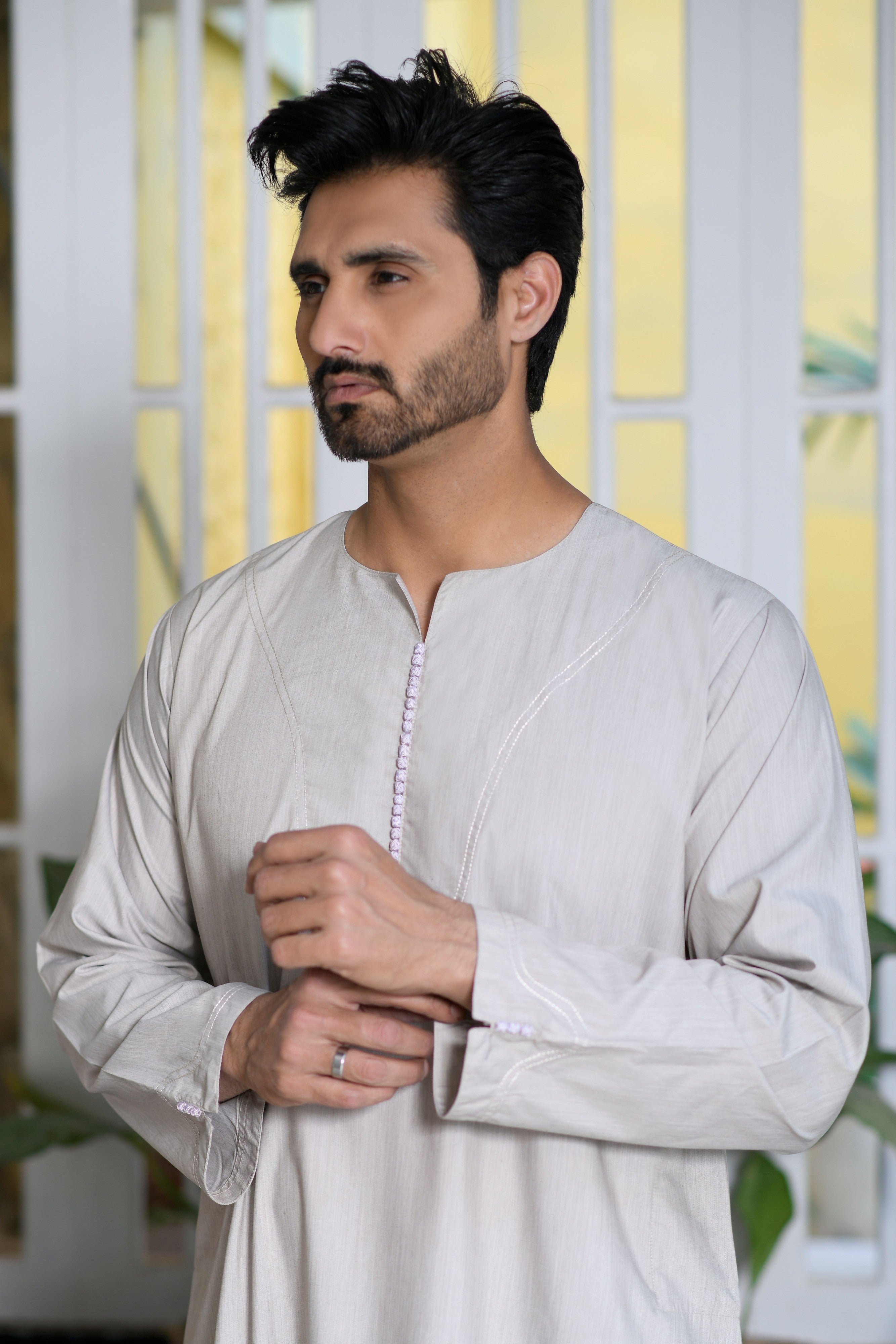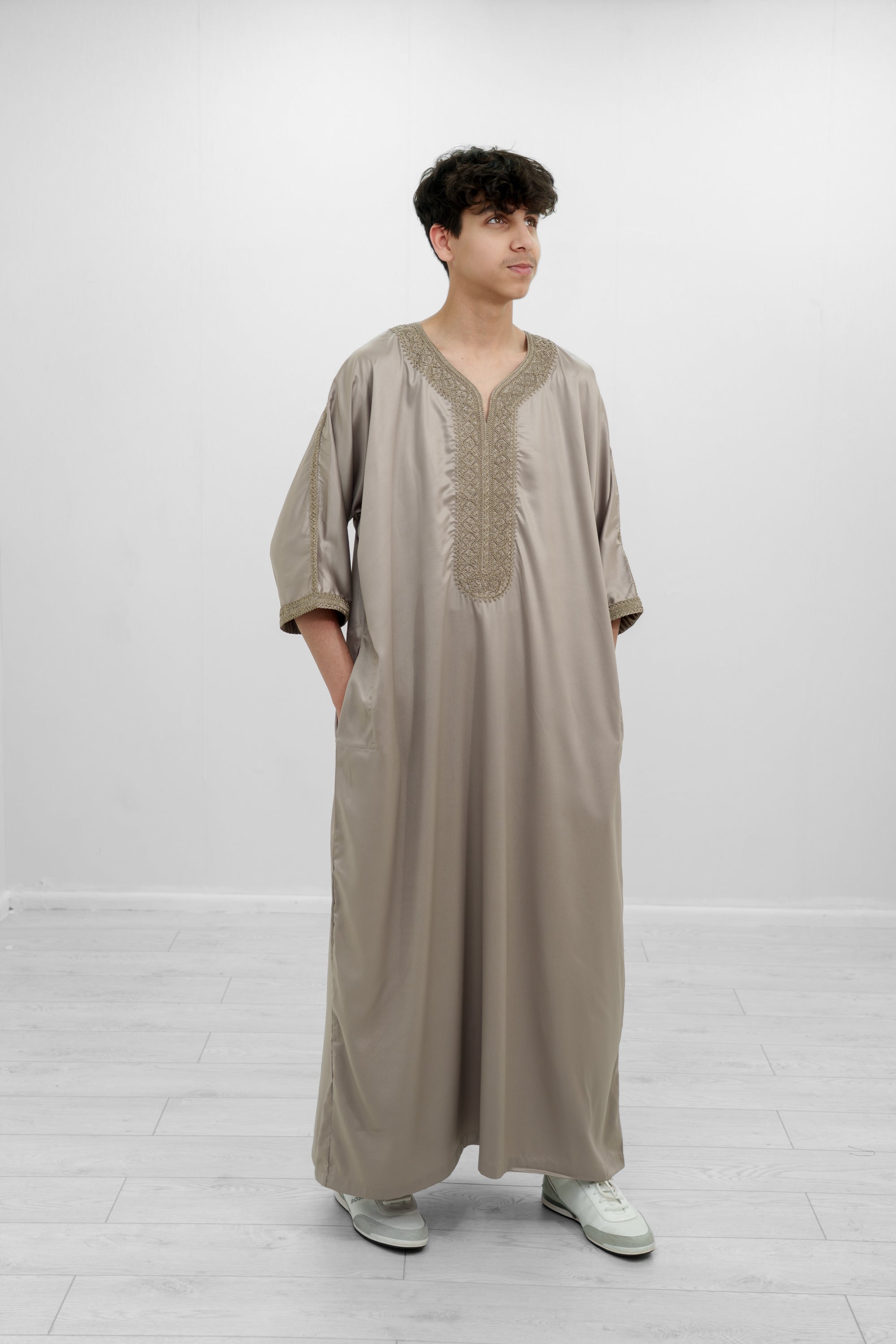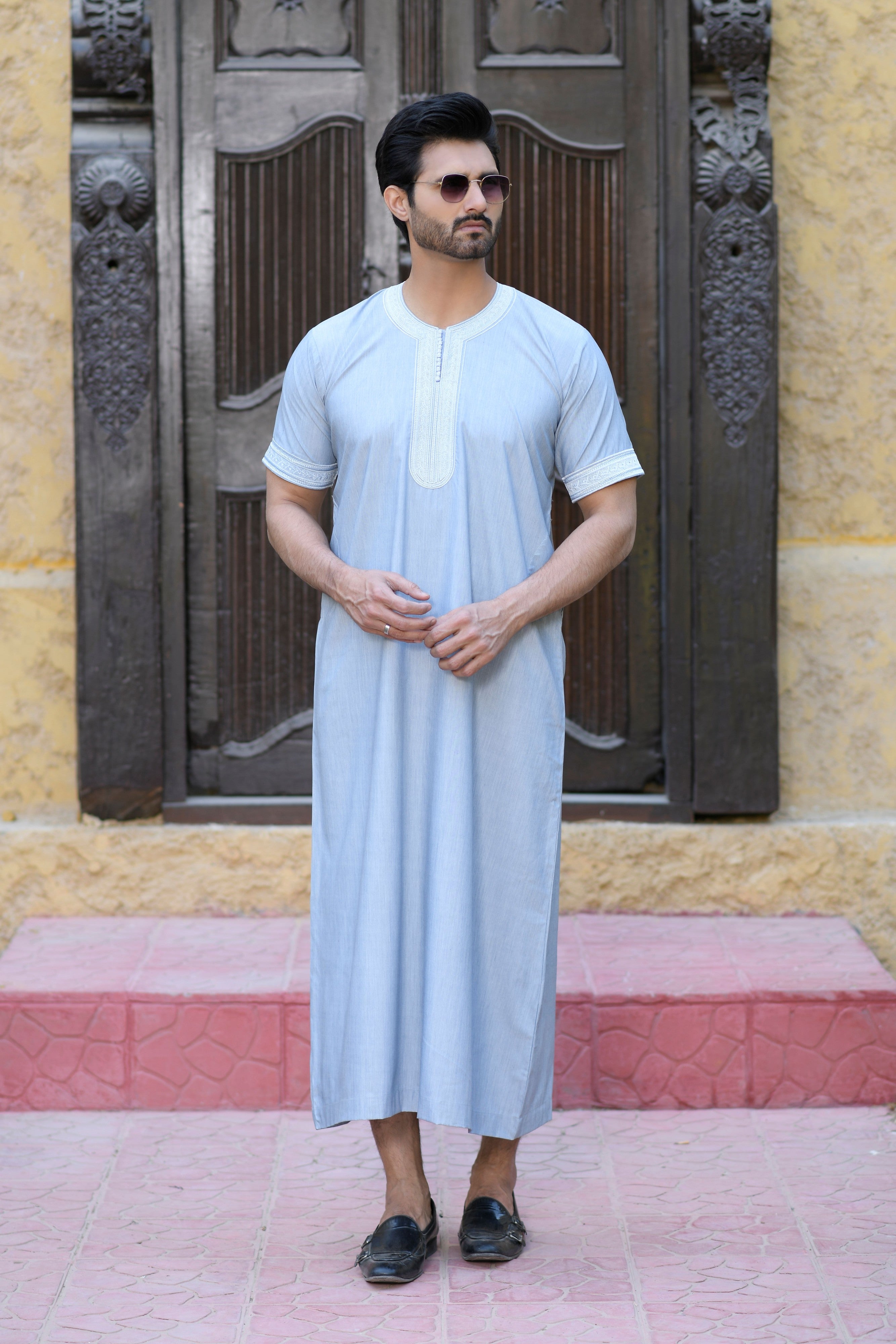Grey Moroccan Half Sleeve Jubba with Knotted Bead Design
