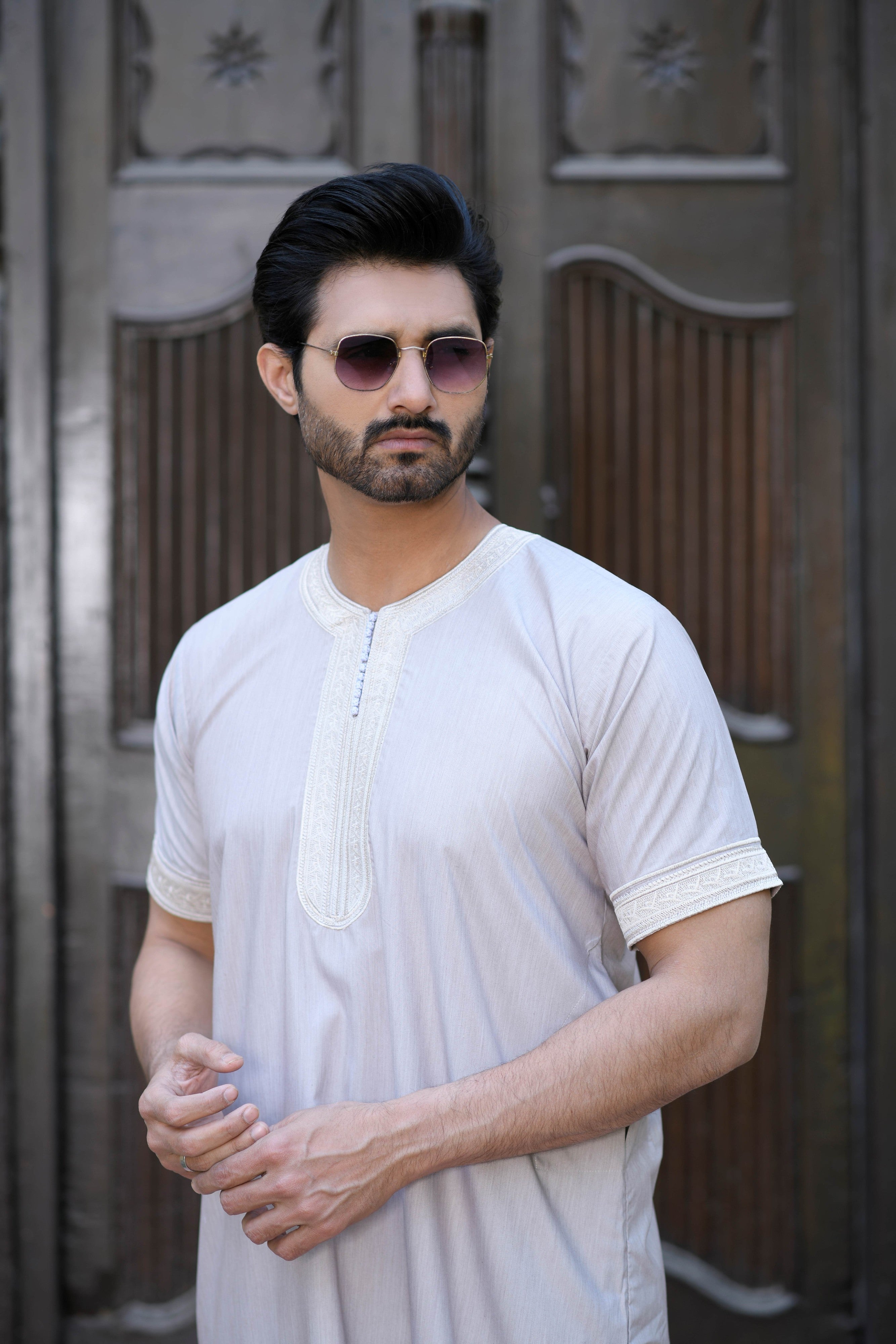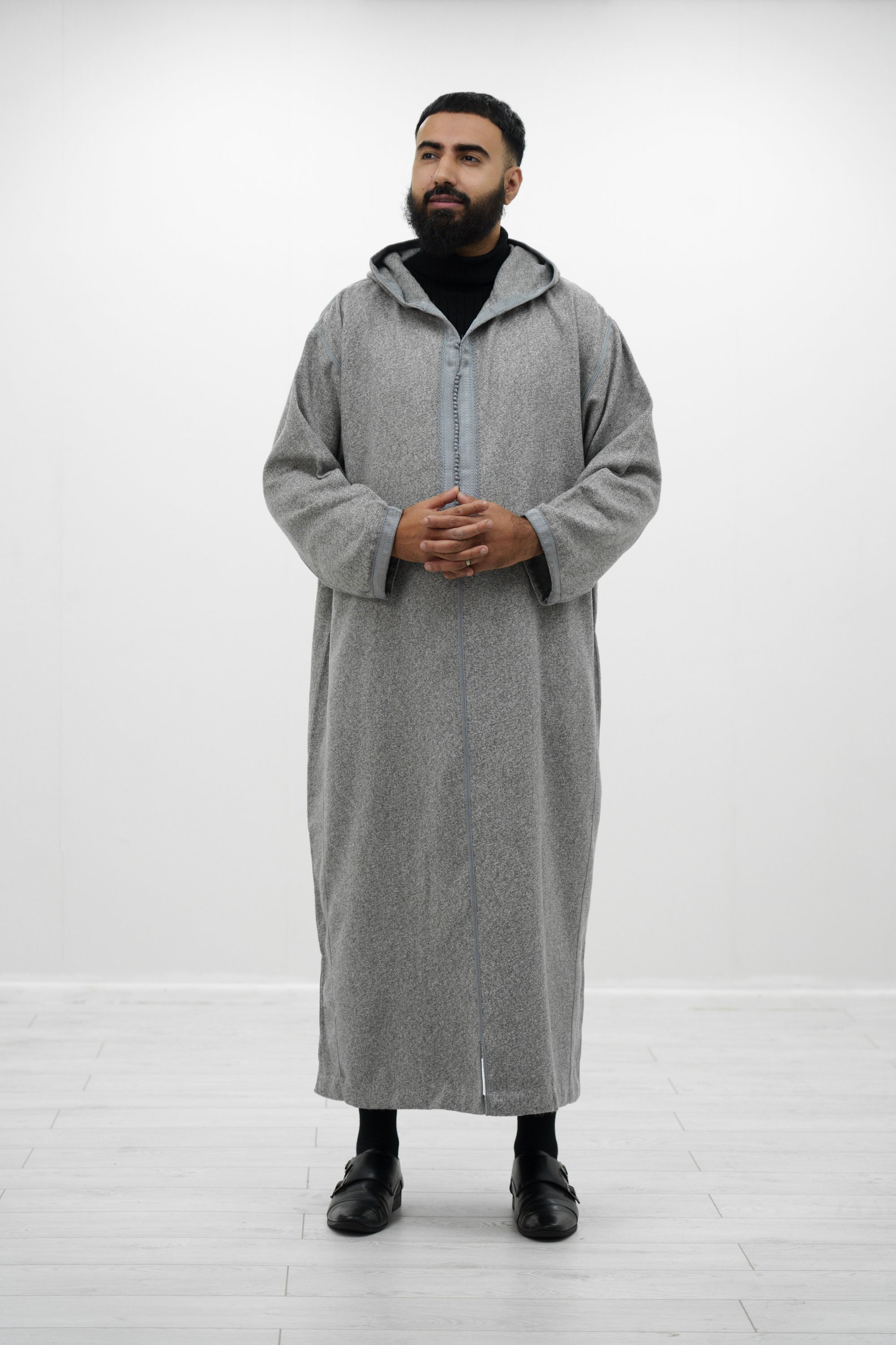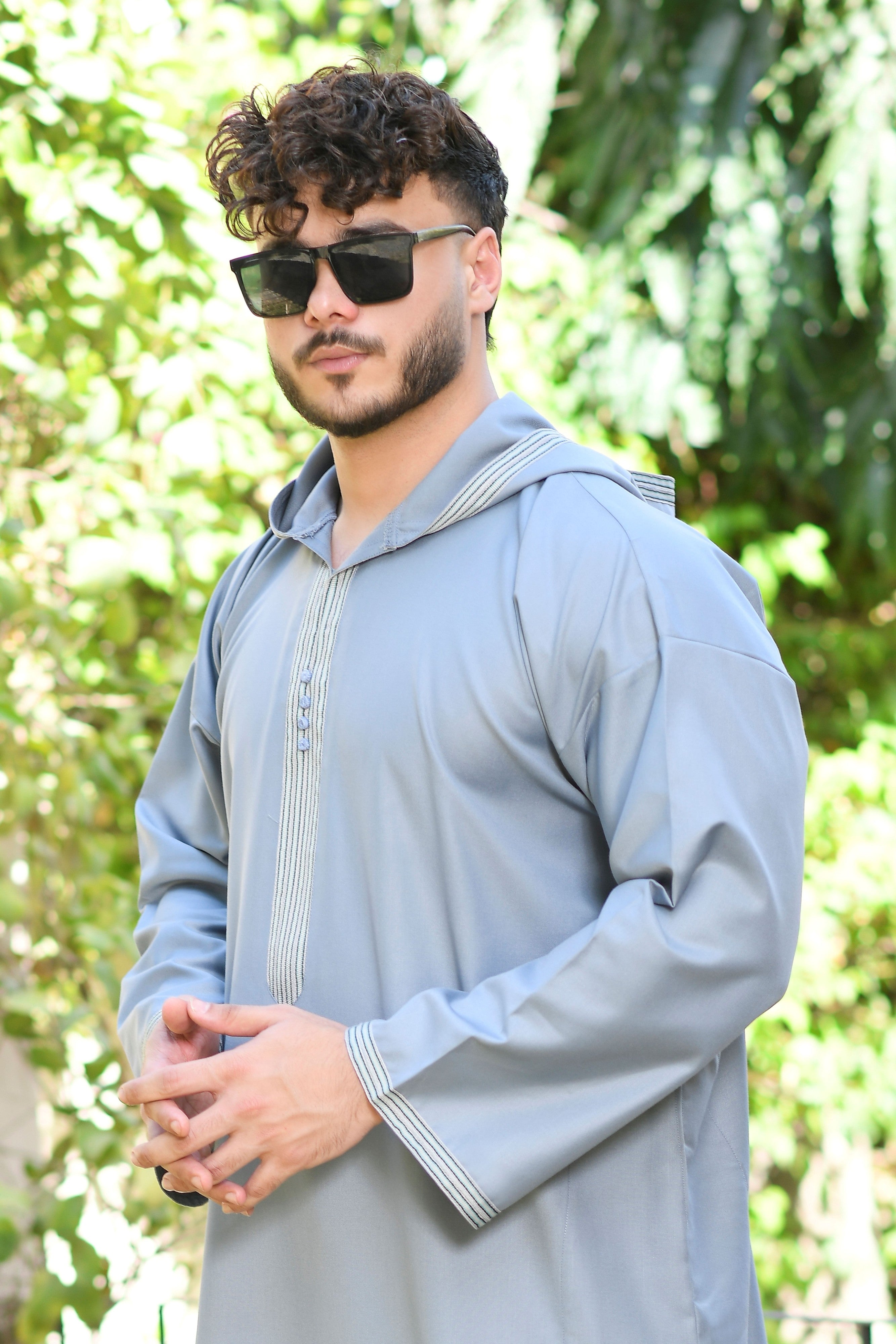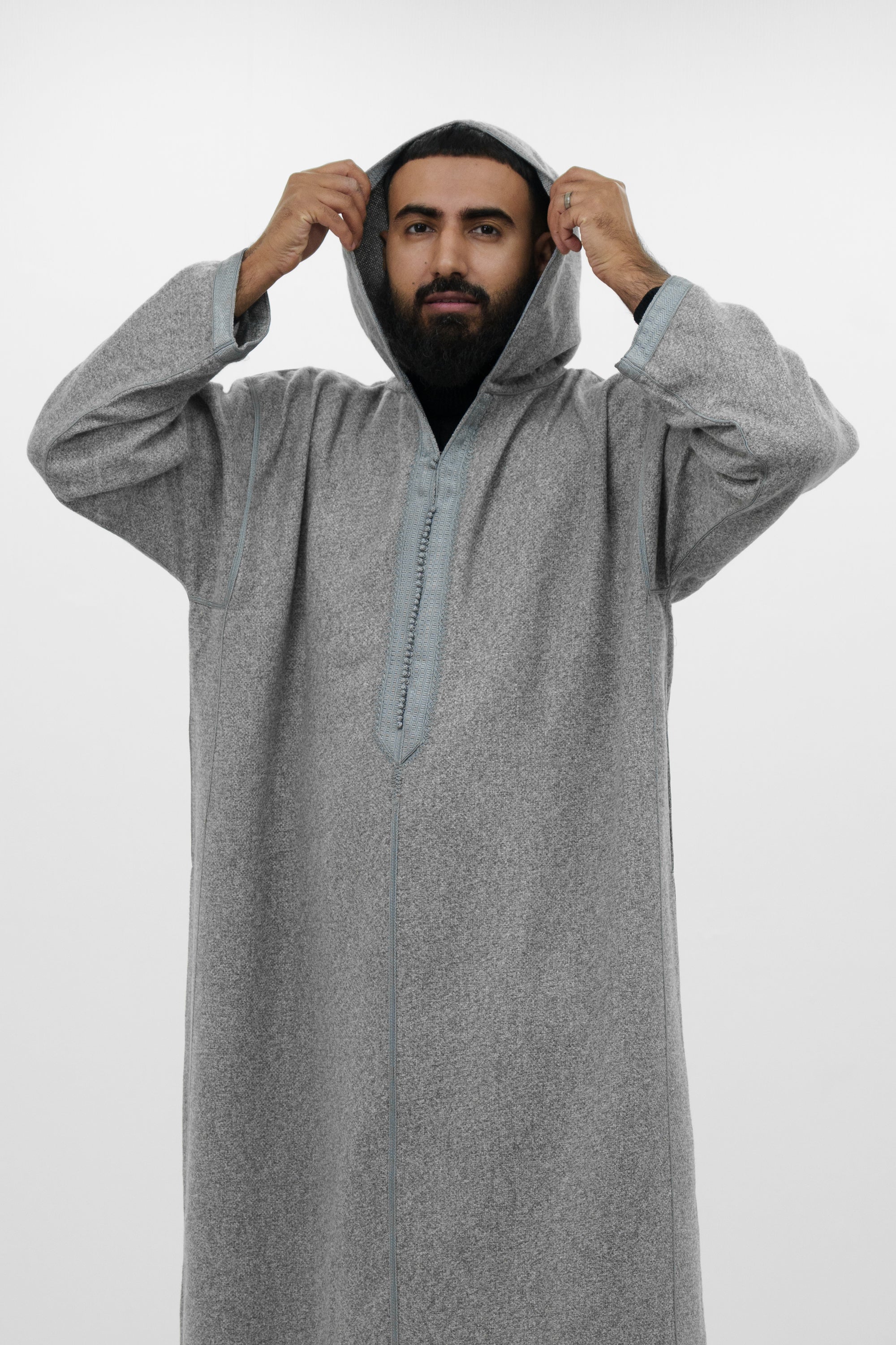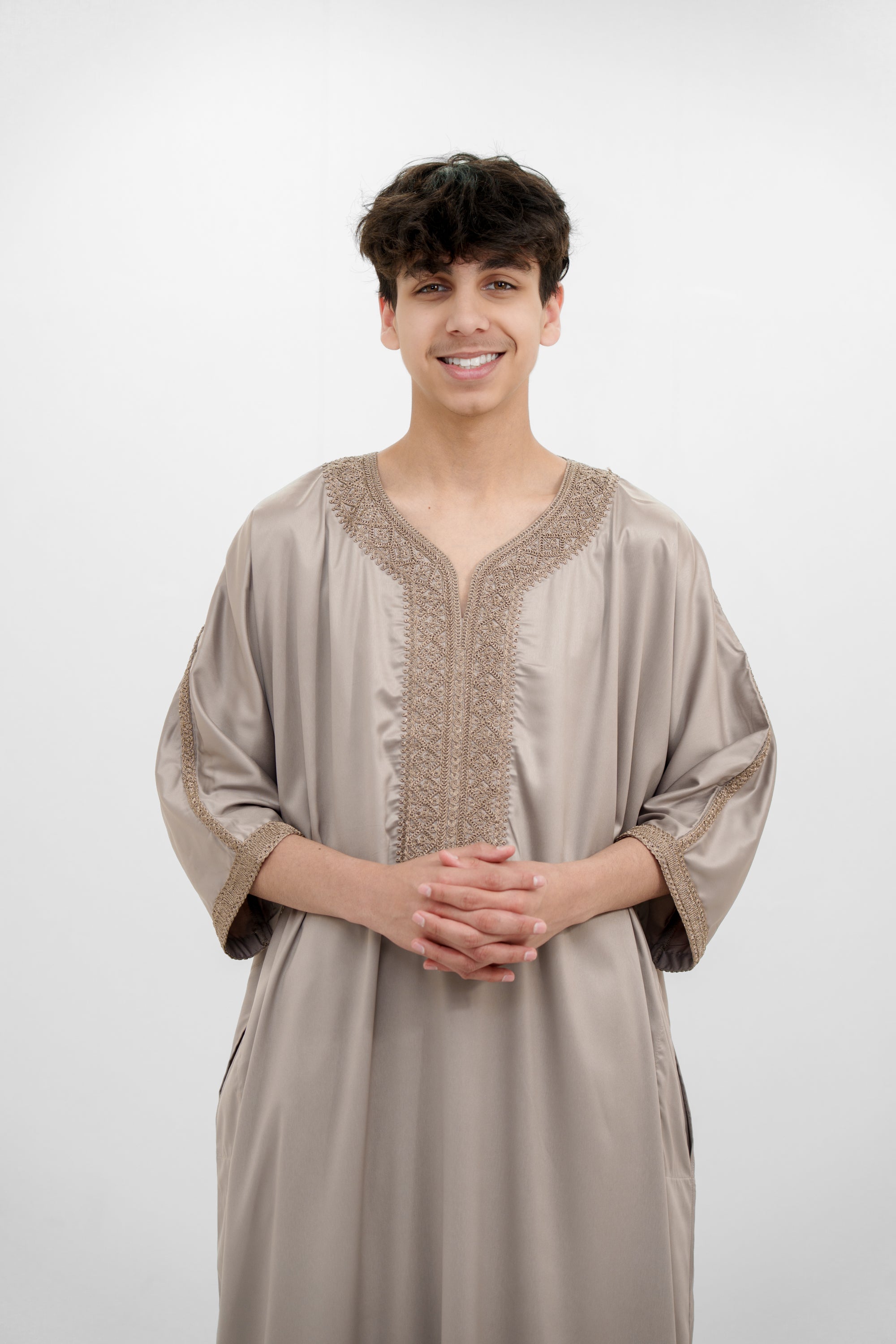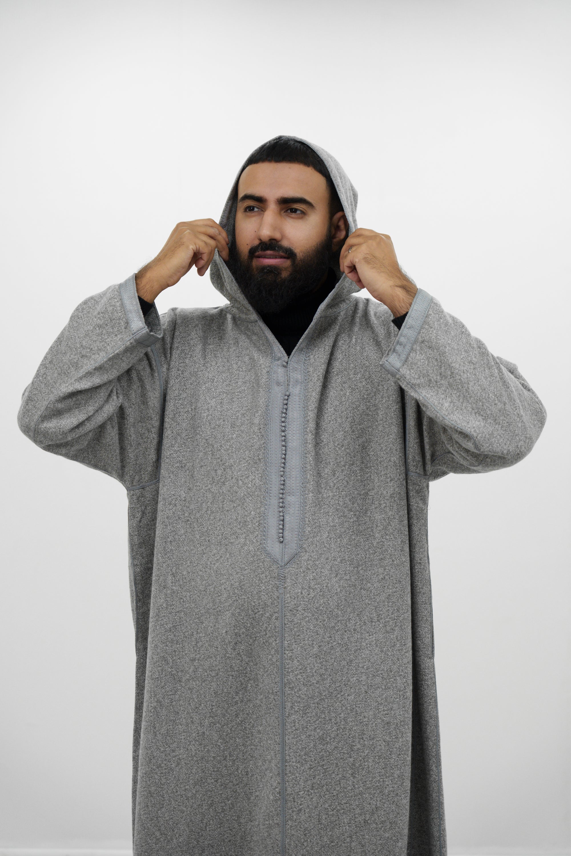 Grey Moroccan Half Sleeve Jubba with Knotted Bead Design