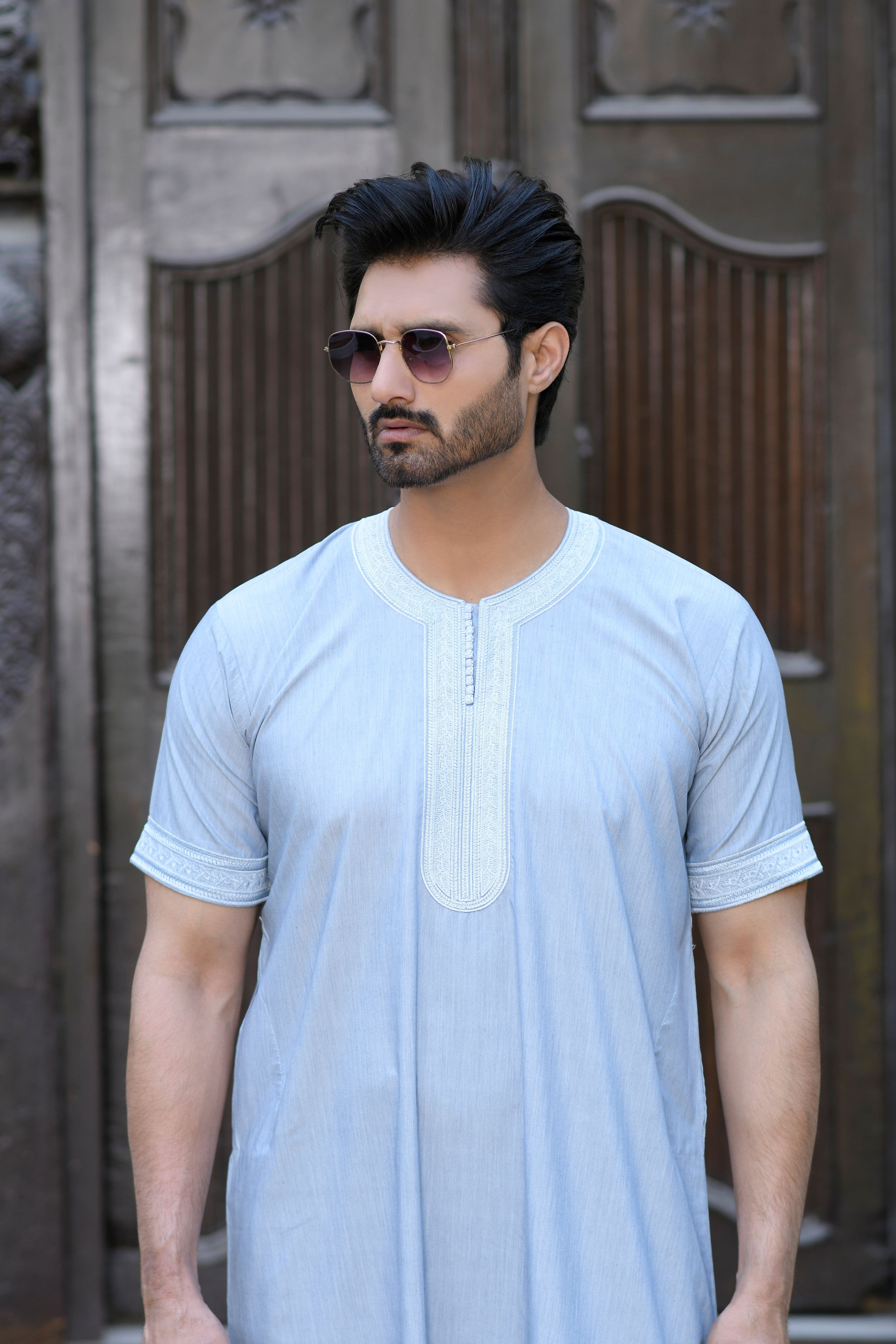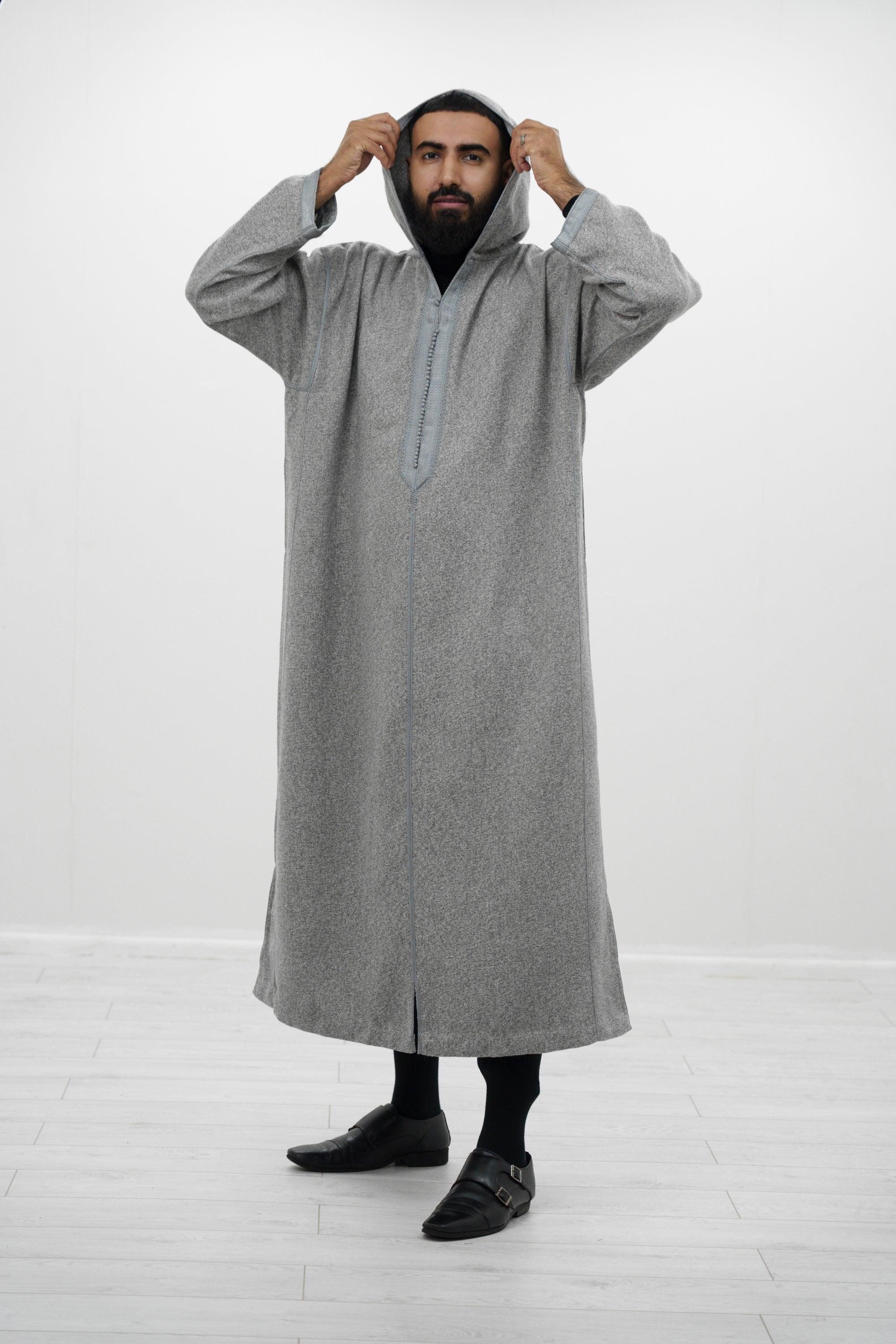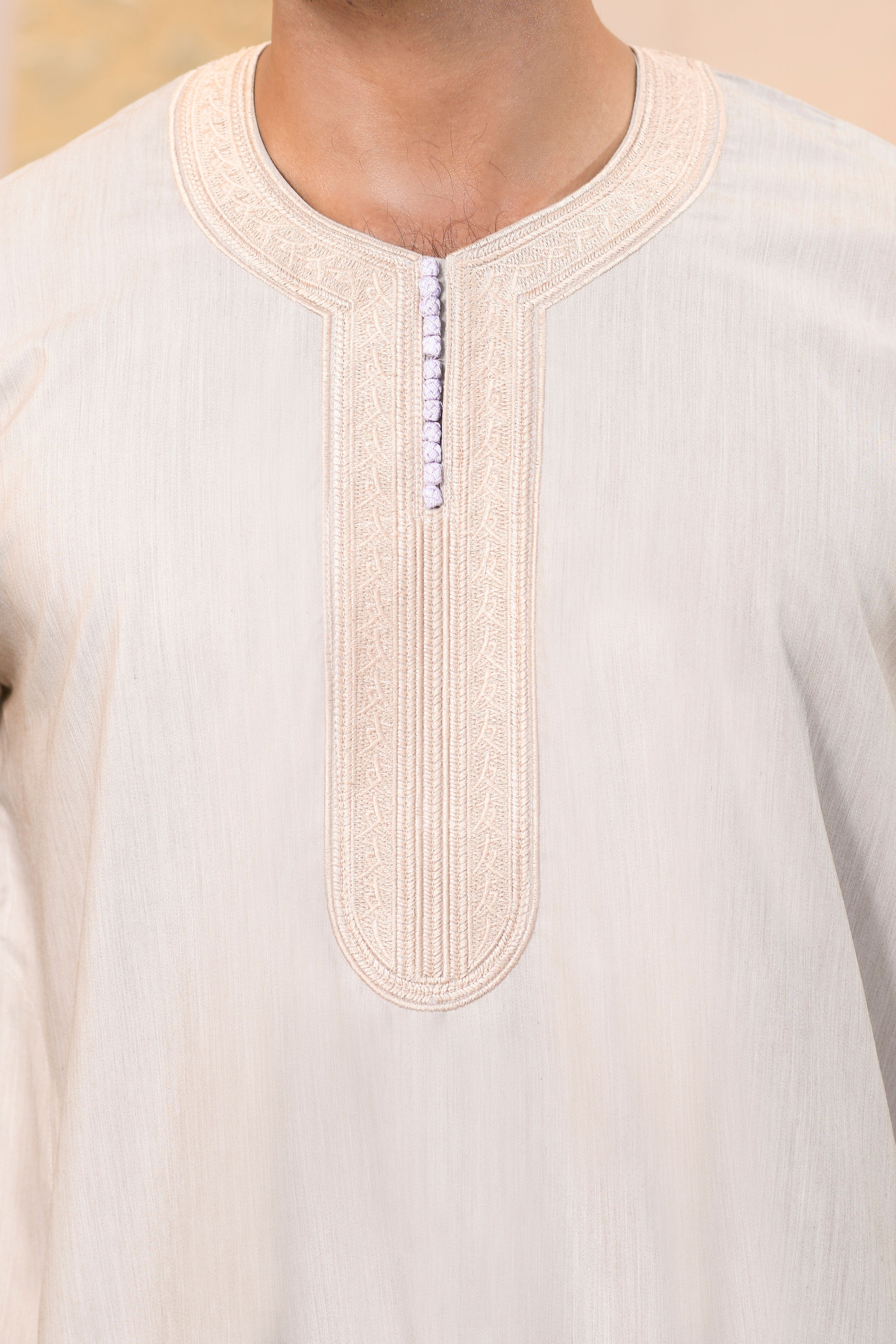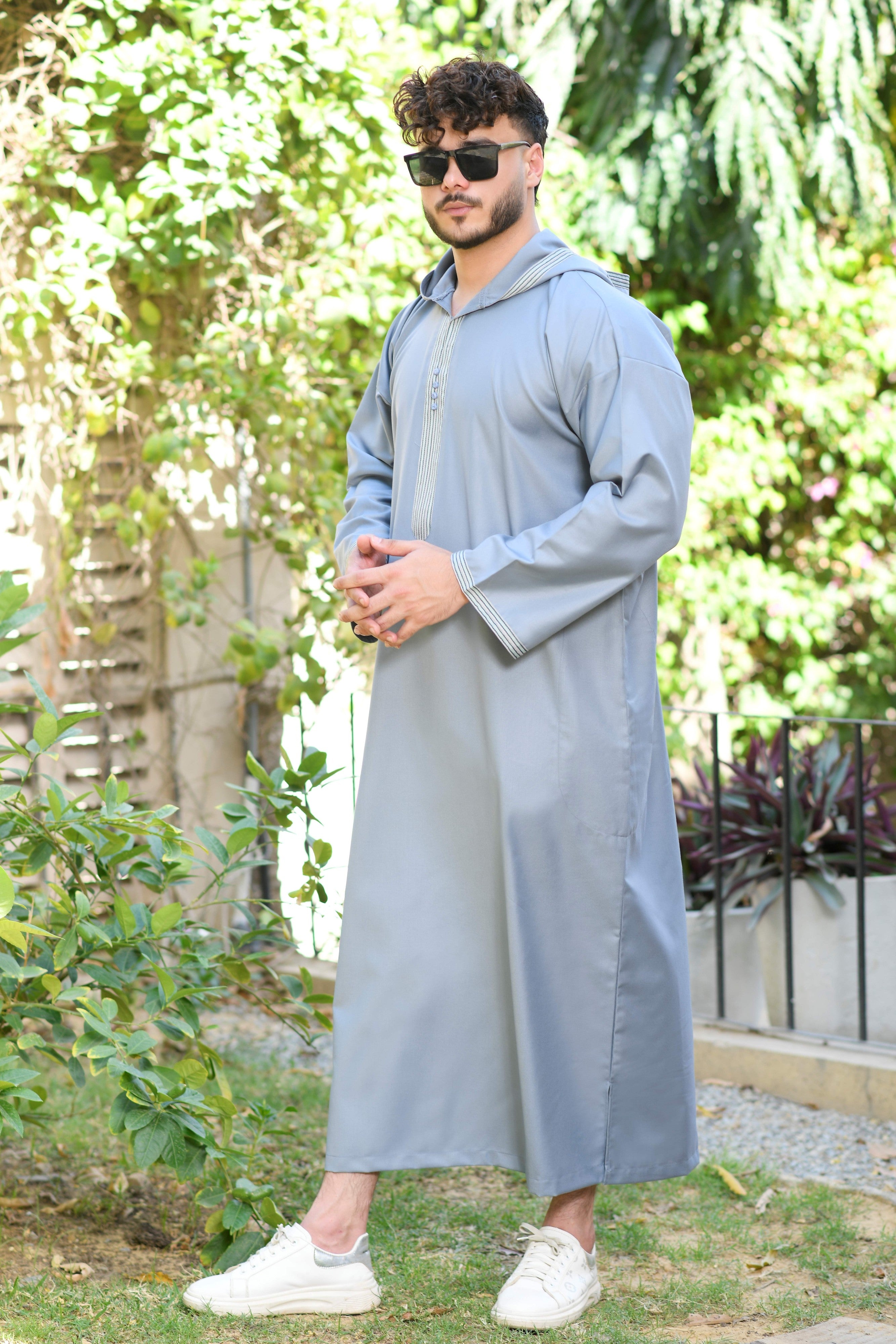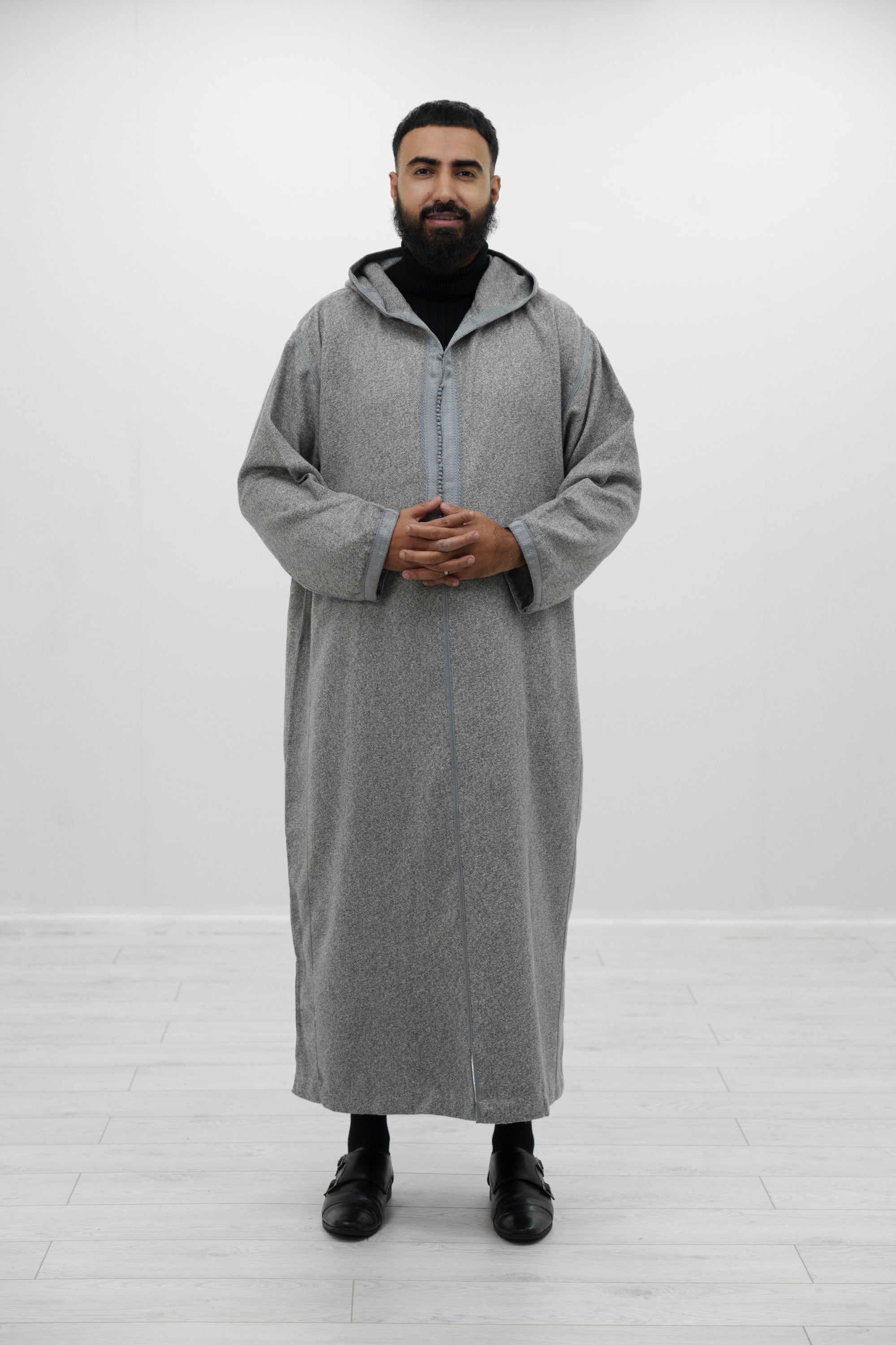 Grey Moroccan Half Sleeve Jubba with Knotted Bead Design