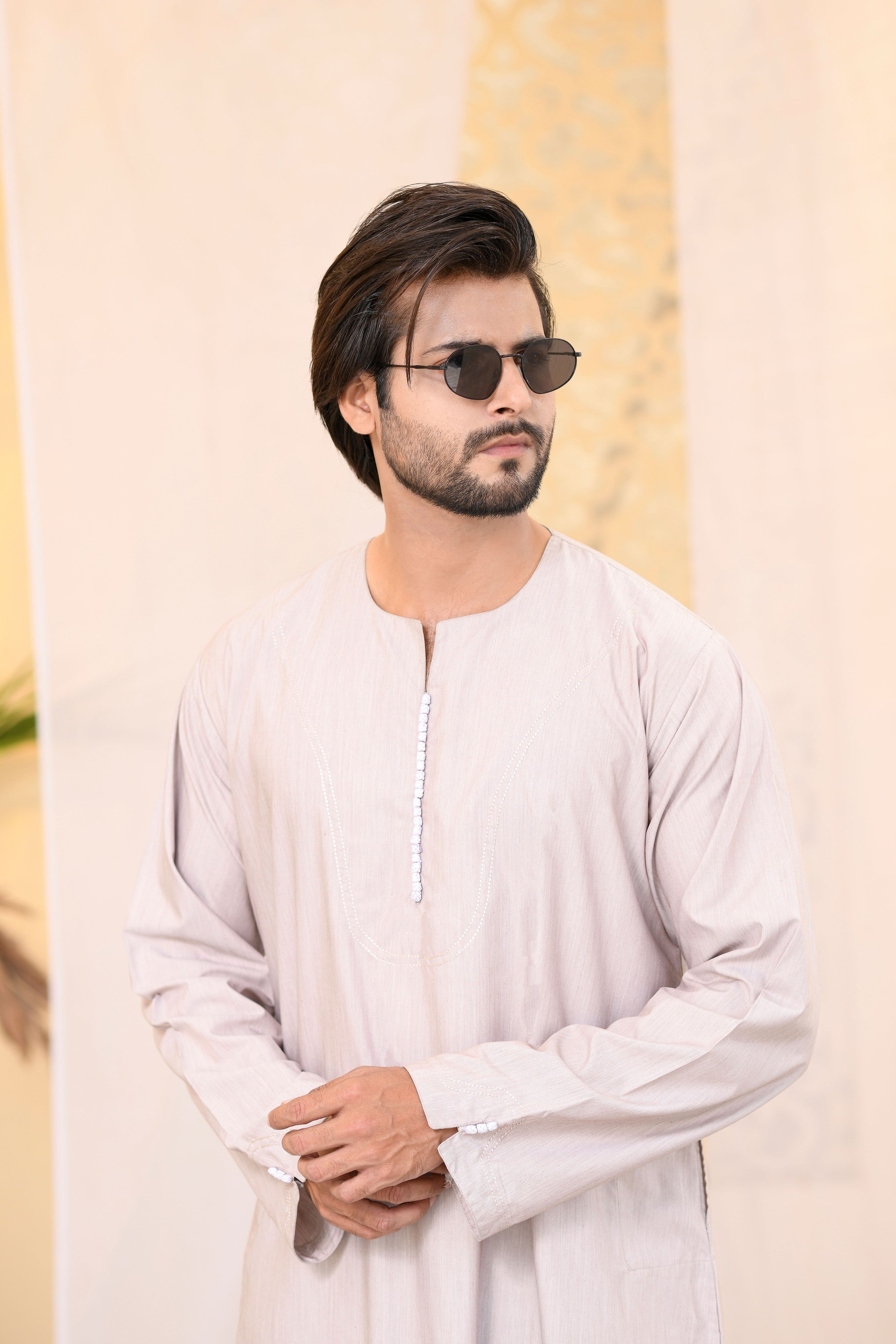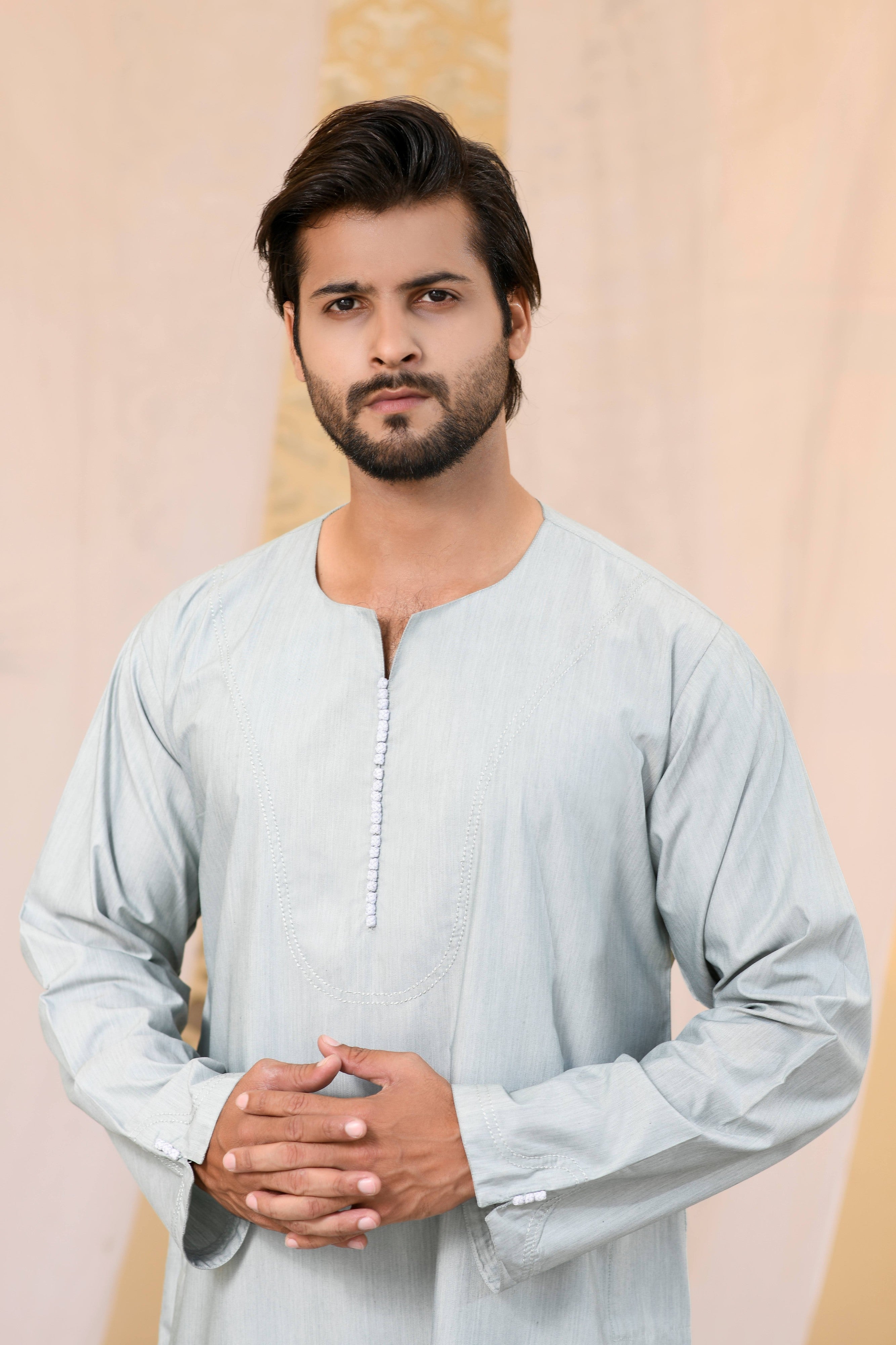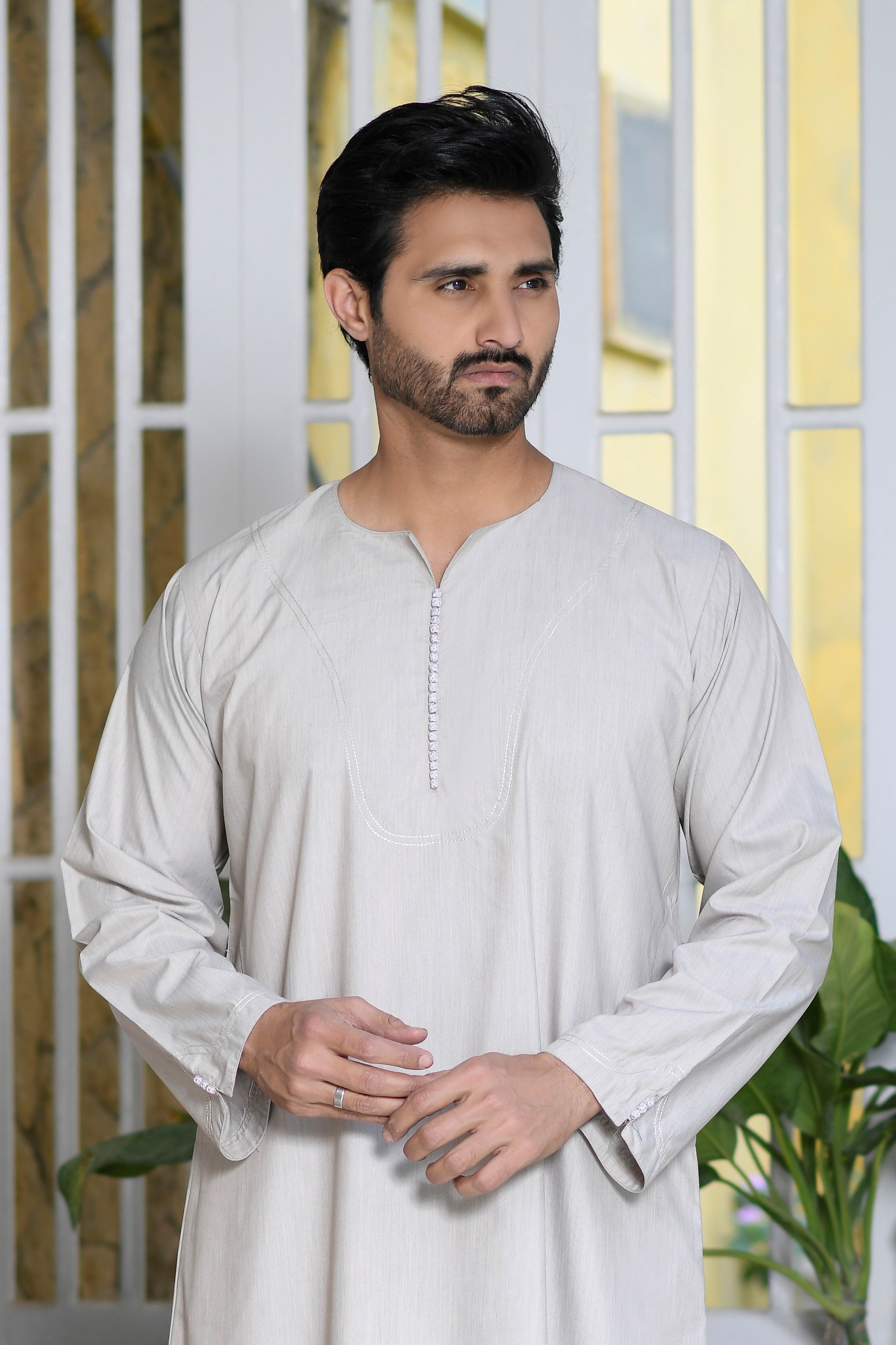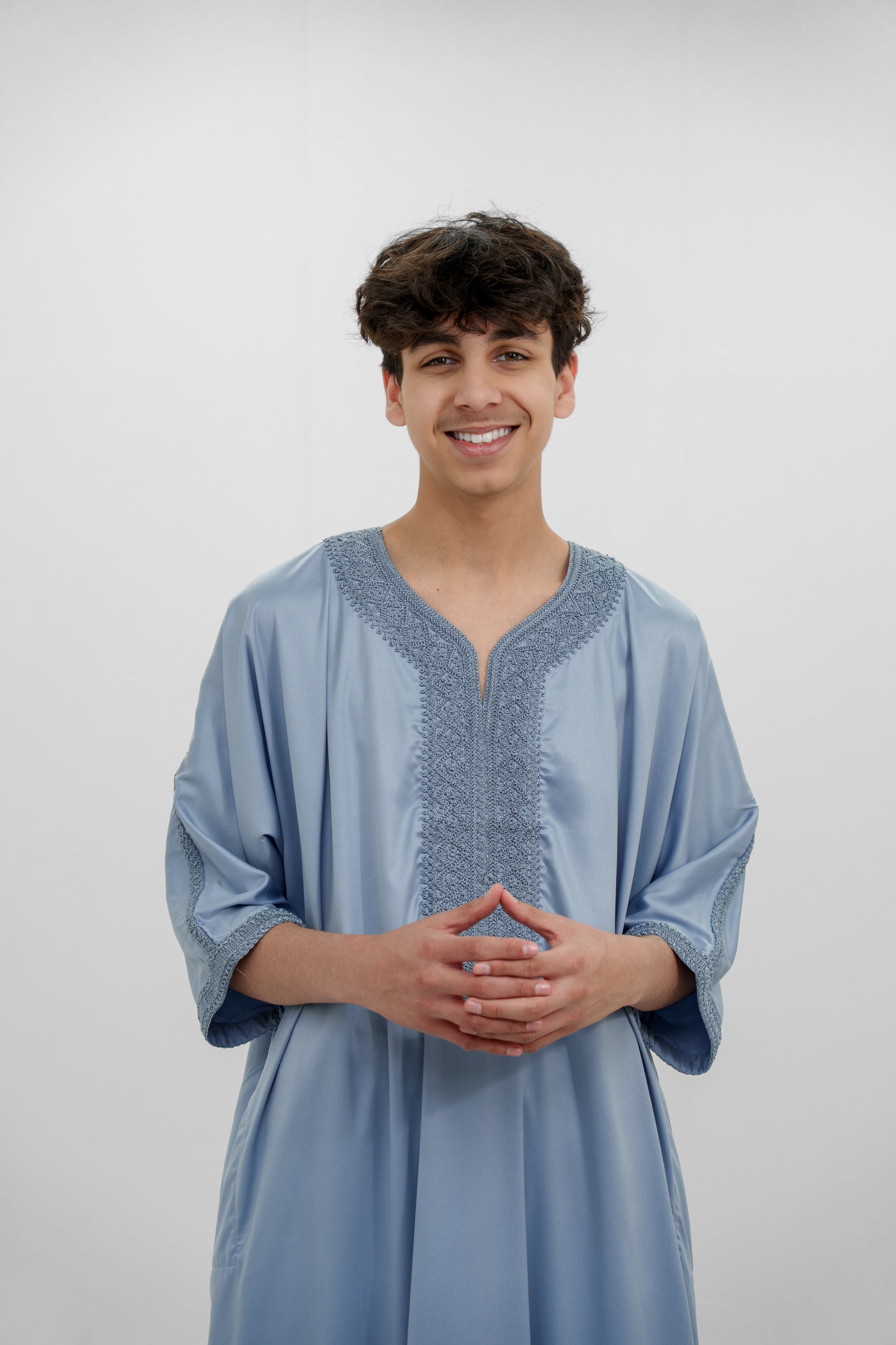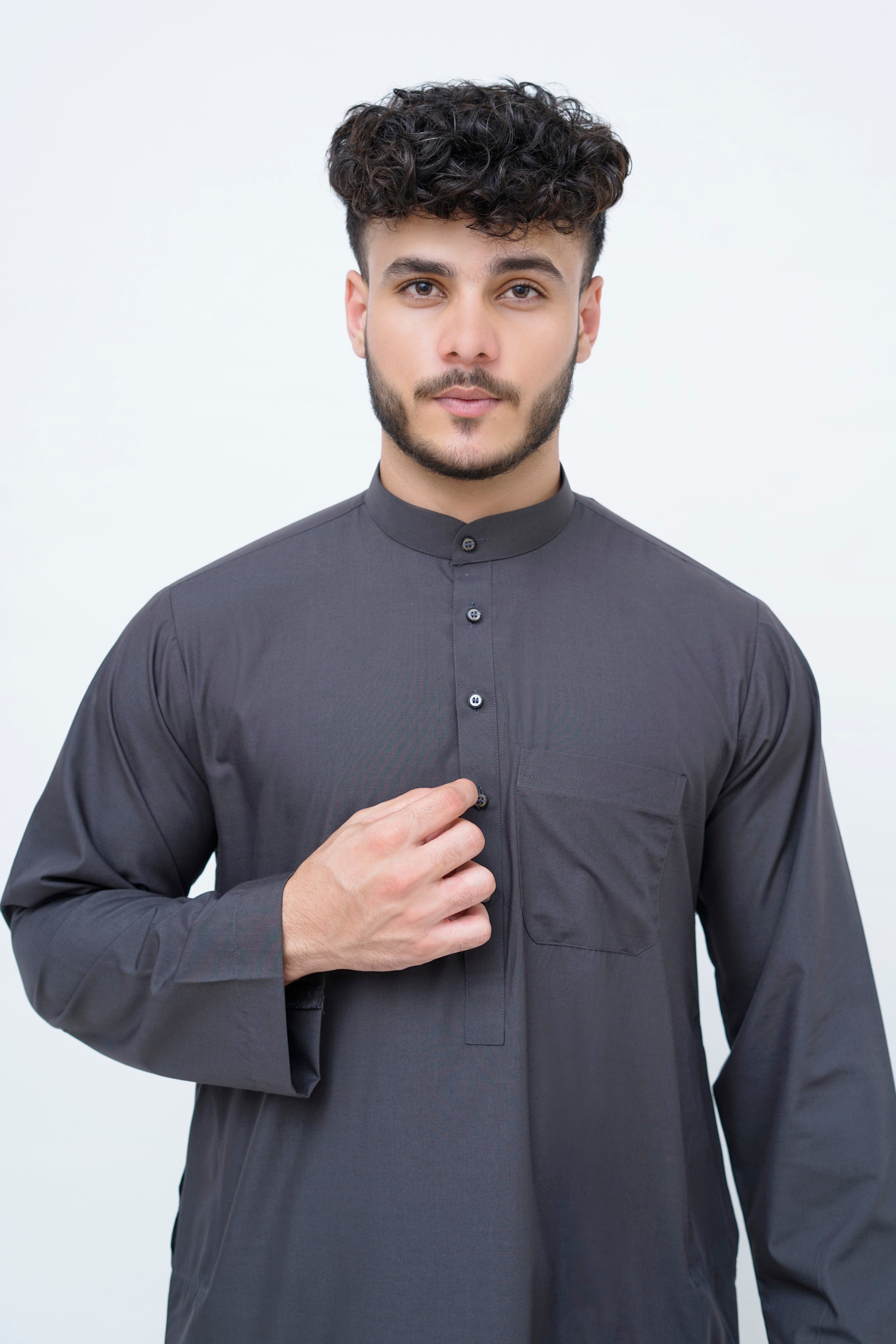 Grey Moroccan Half Sleeve Jubba with Knotted Bead Design