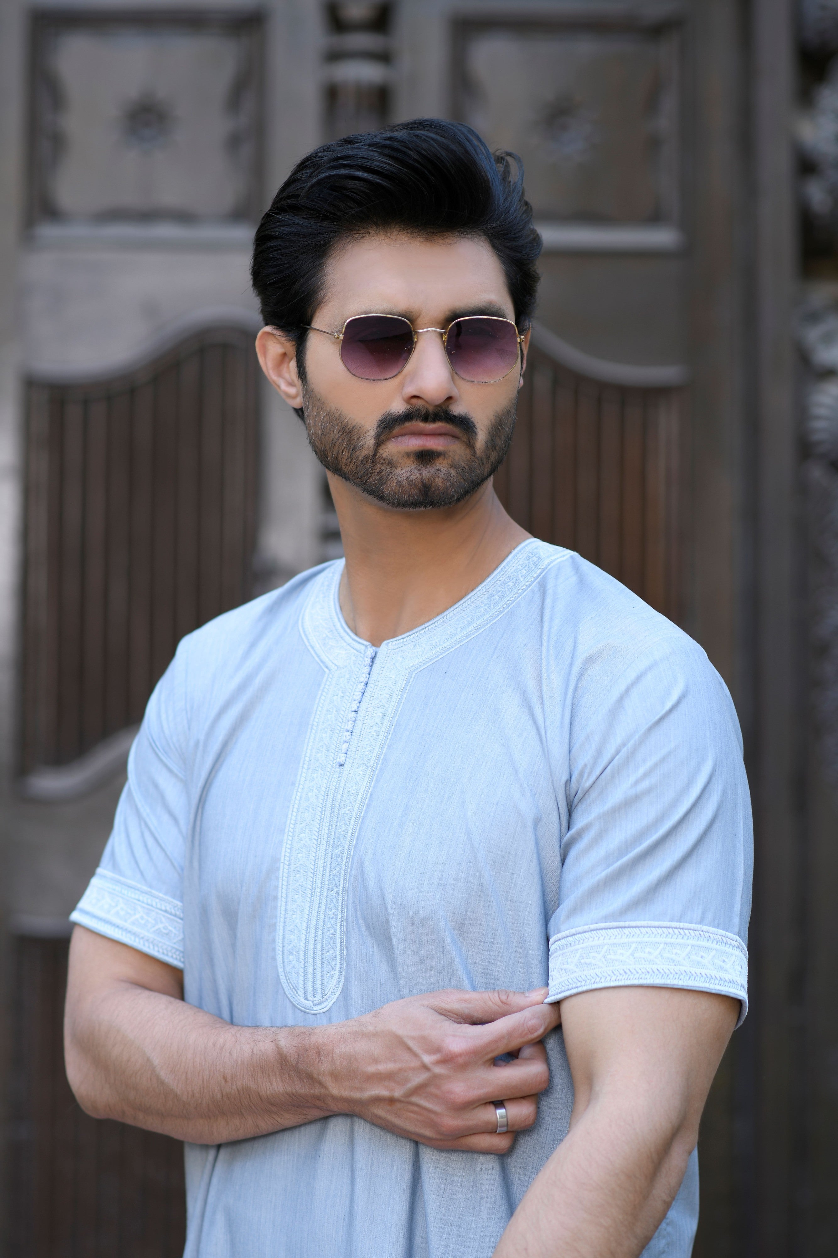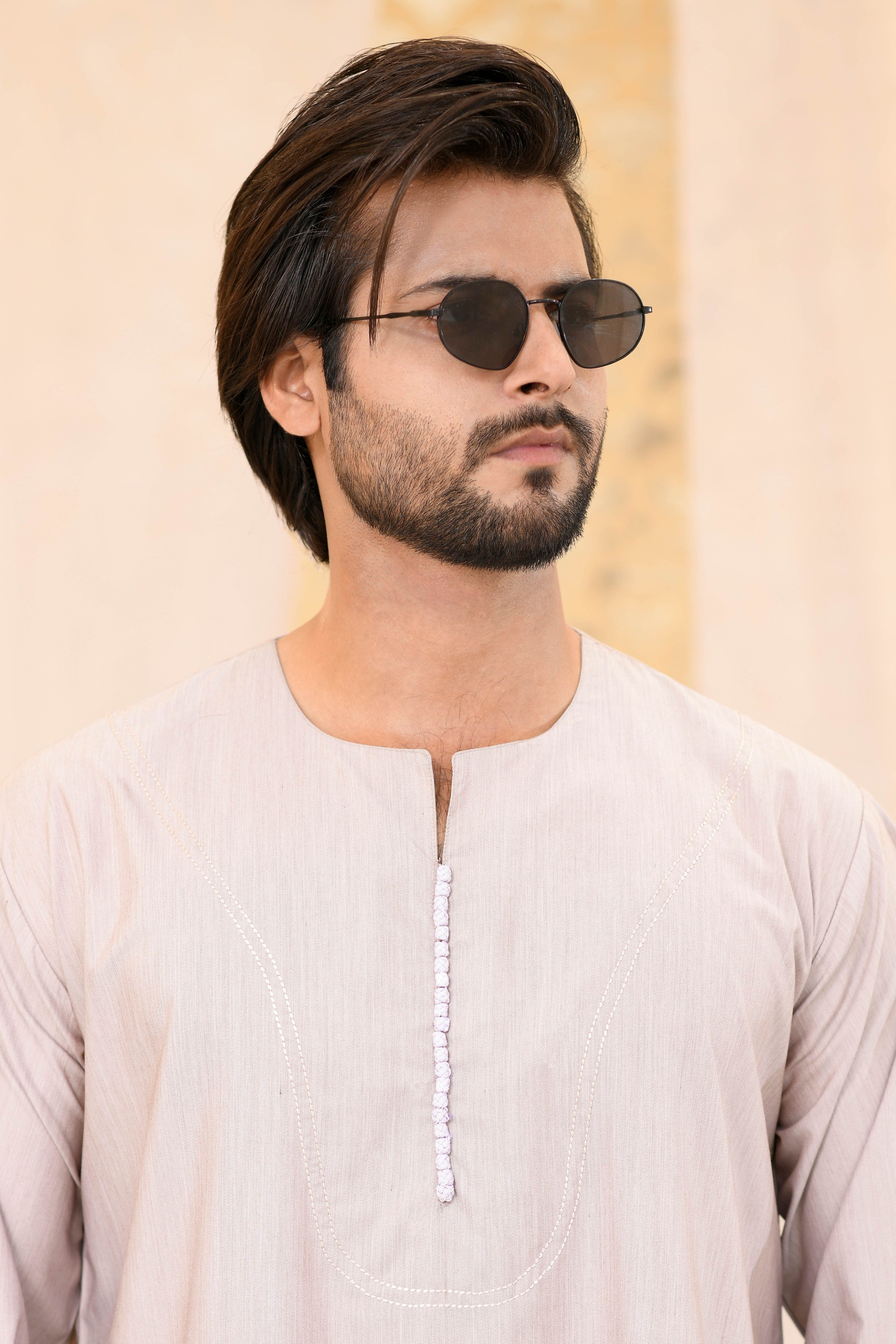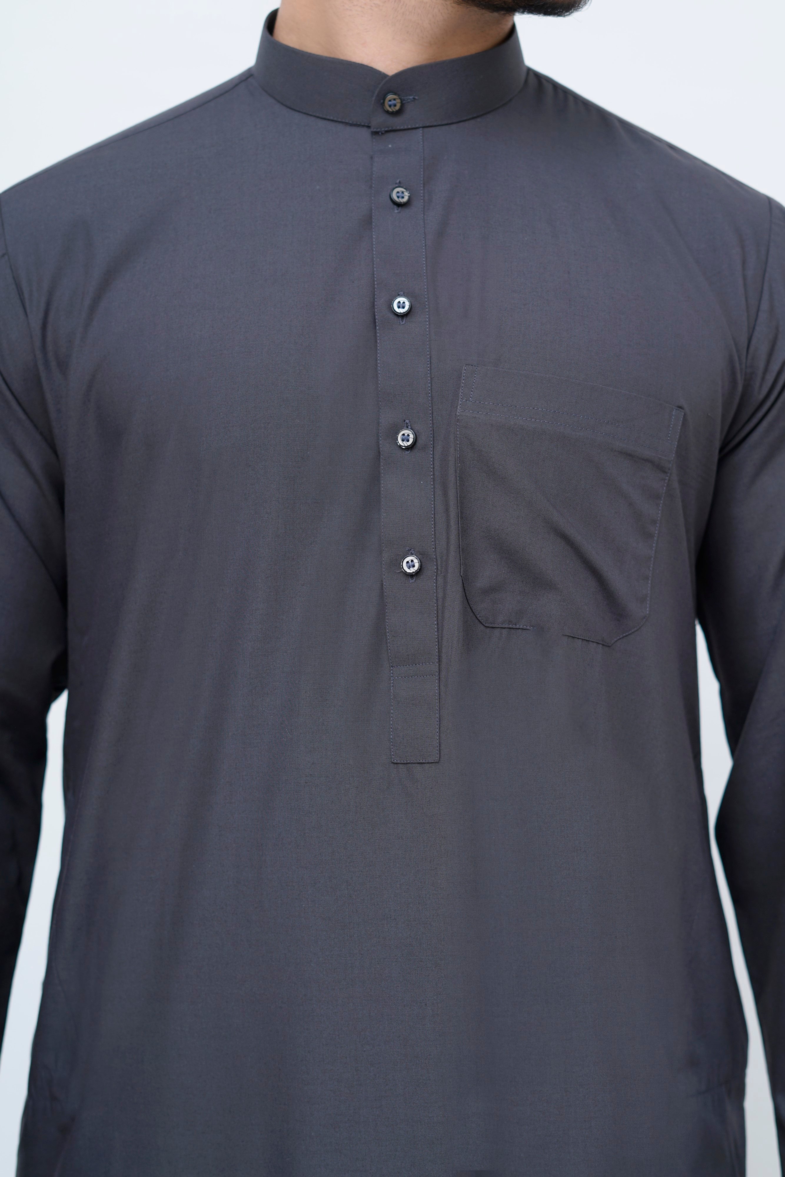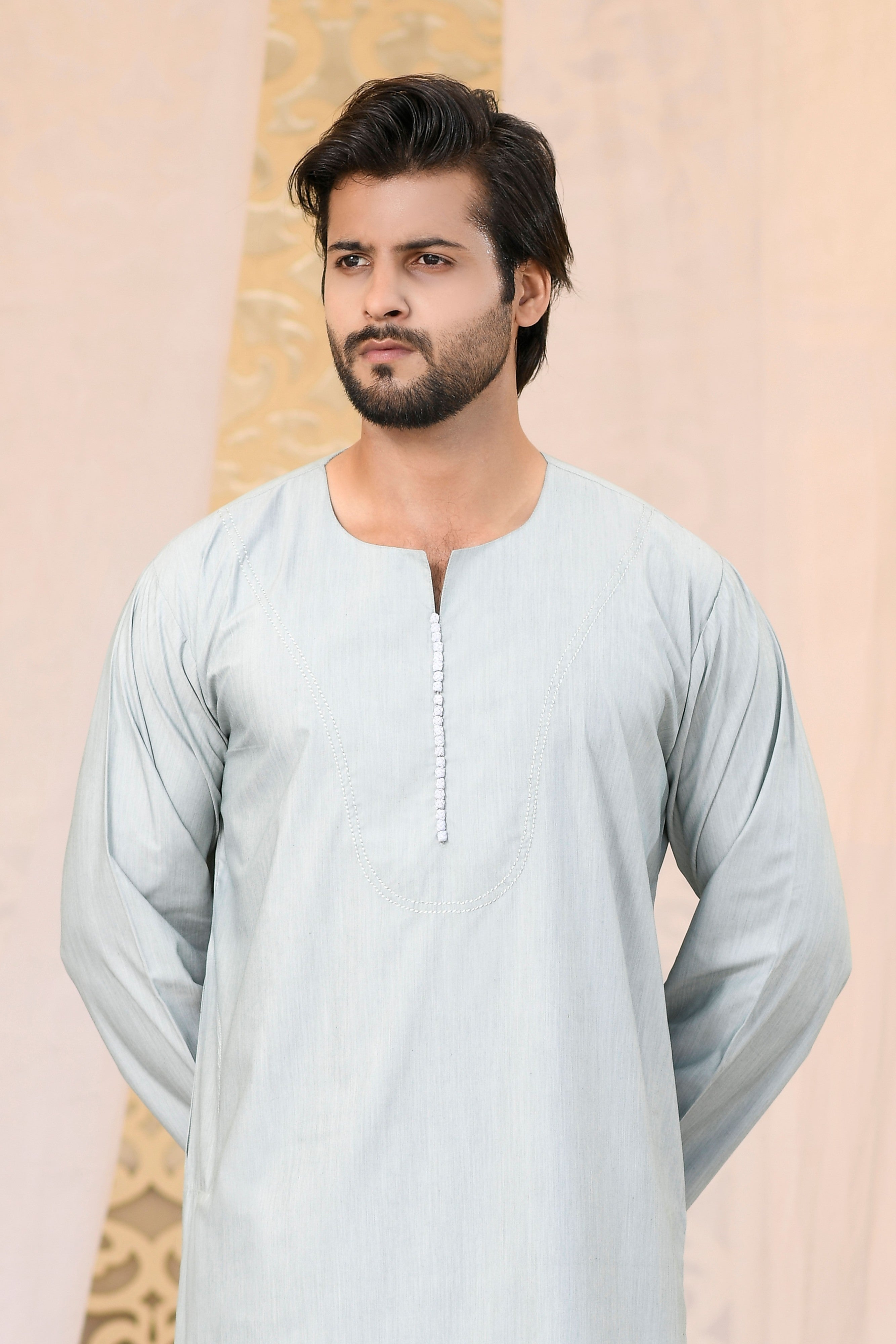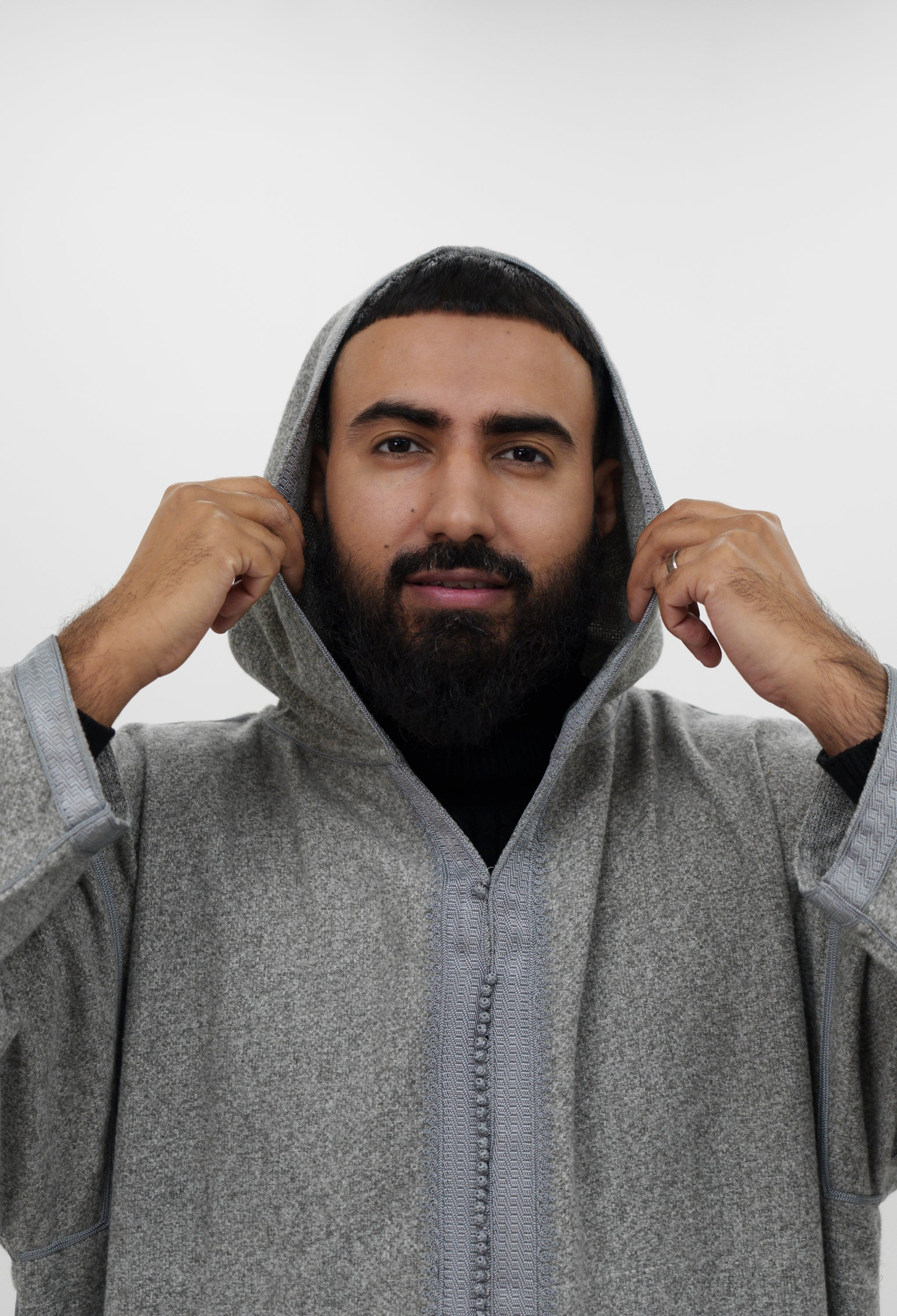 Grey Moroccan Half Sleeve Jubba with Knotted Bead Design