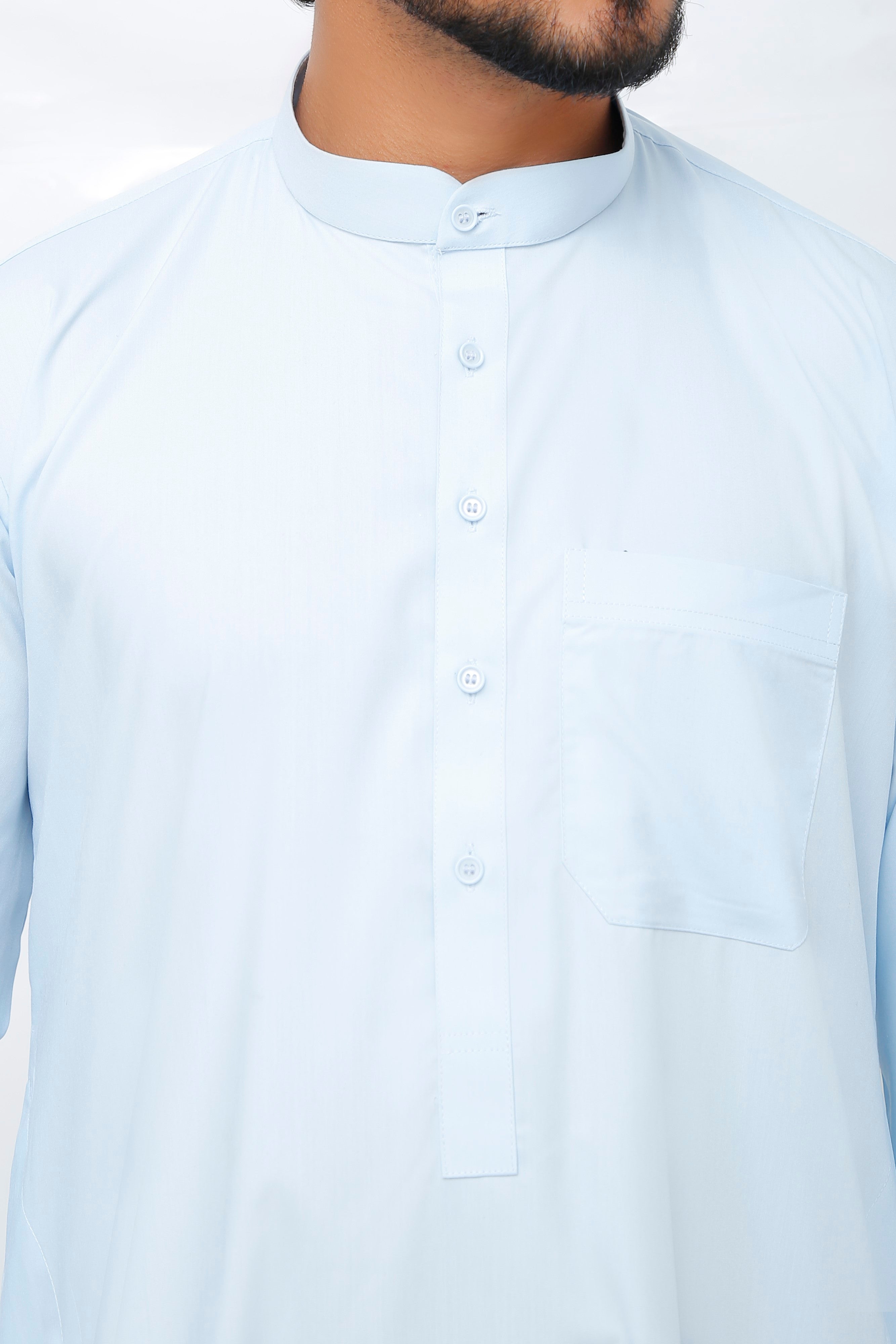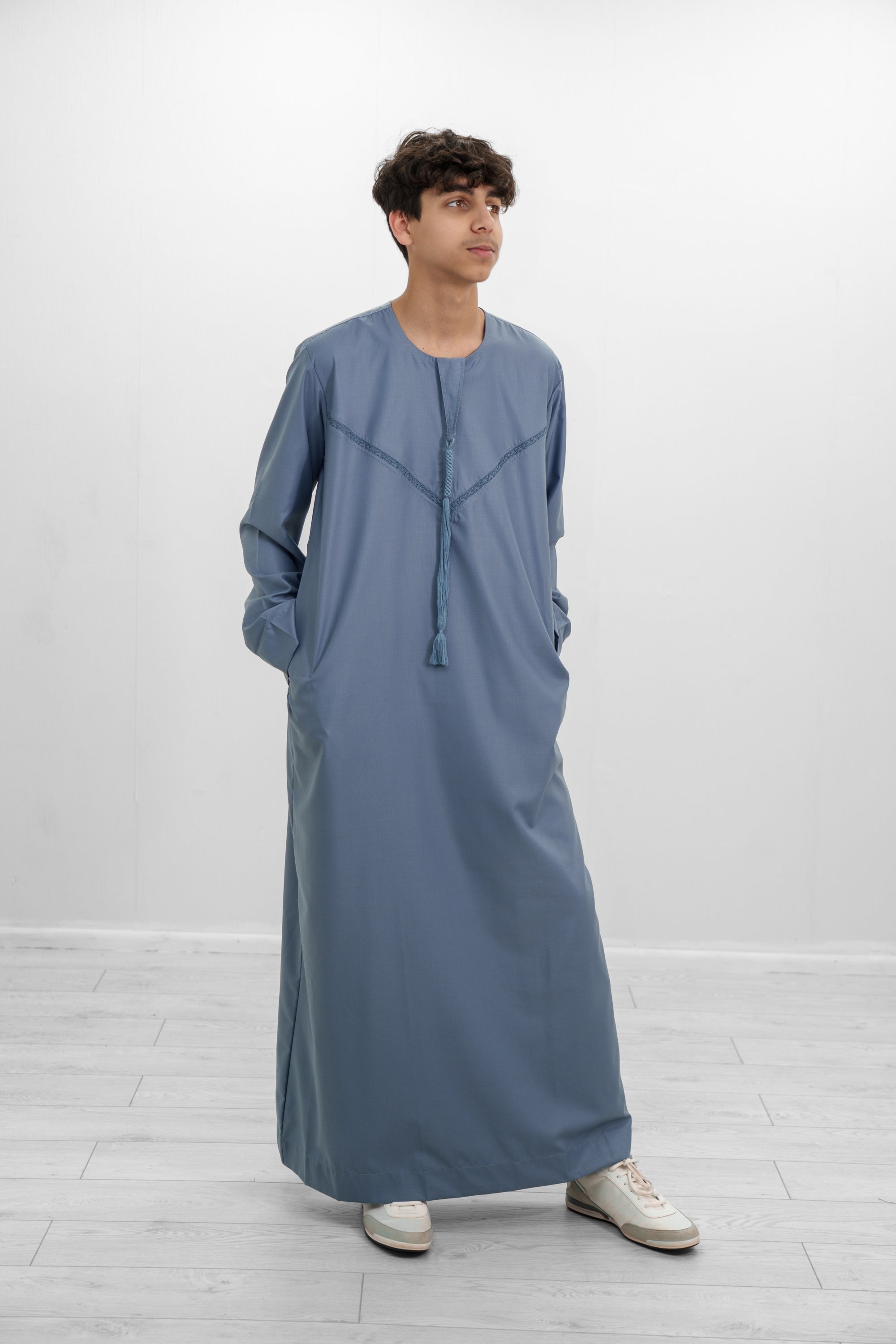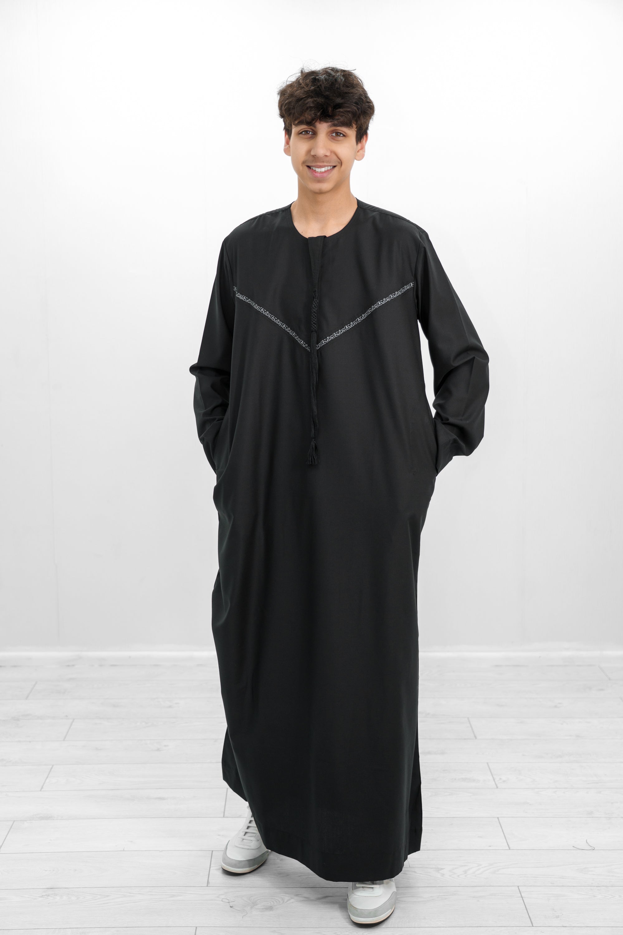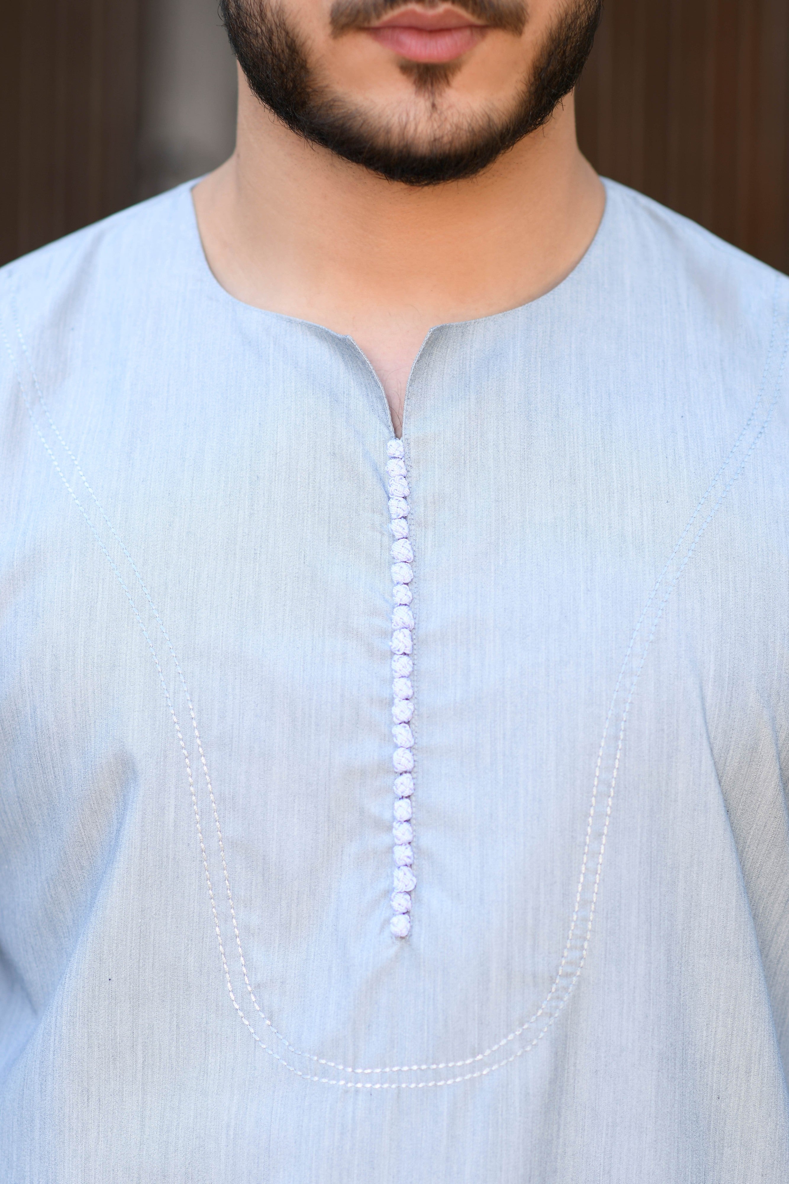 Navy Omani Round Neck Jubba with V Neck Stitched Embroidery