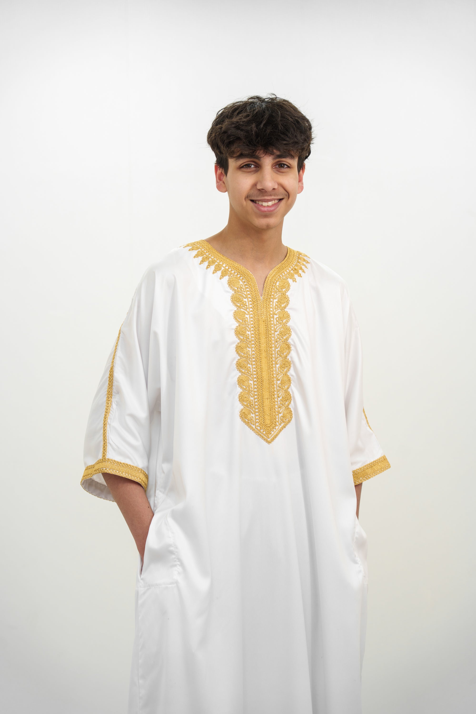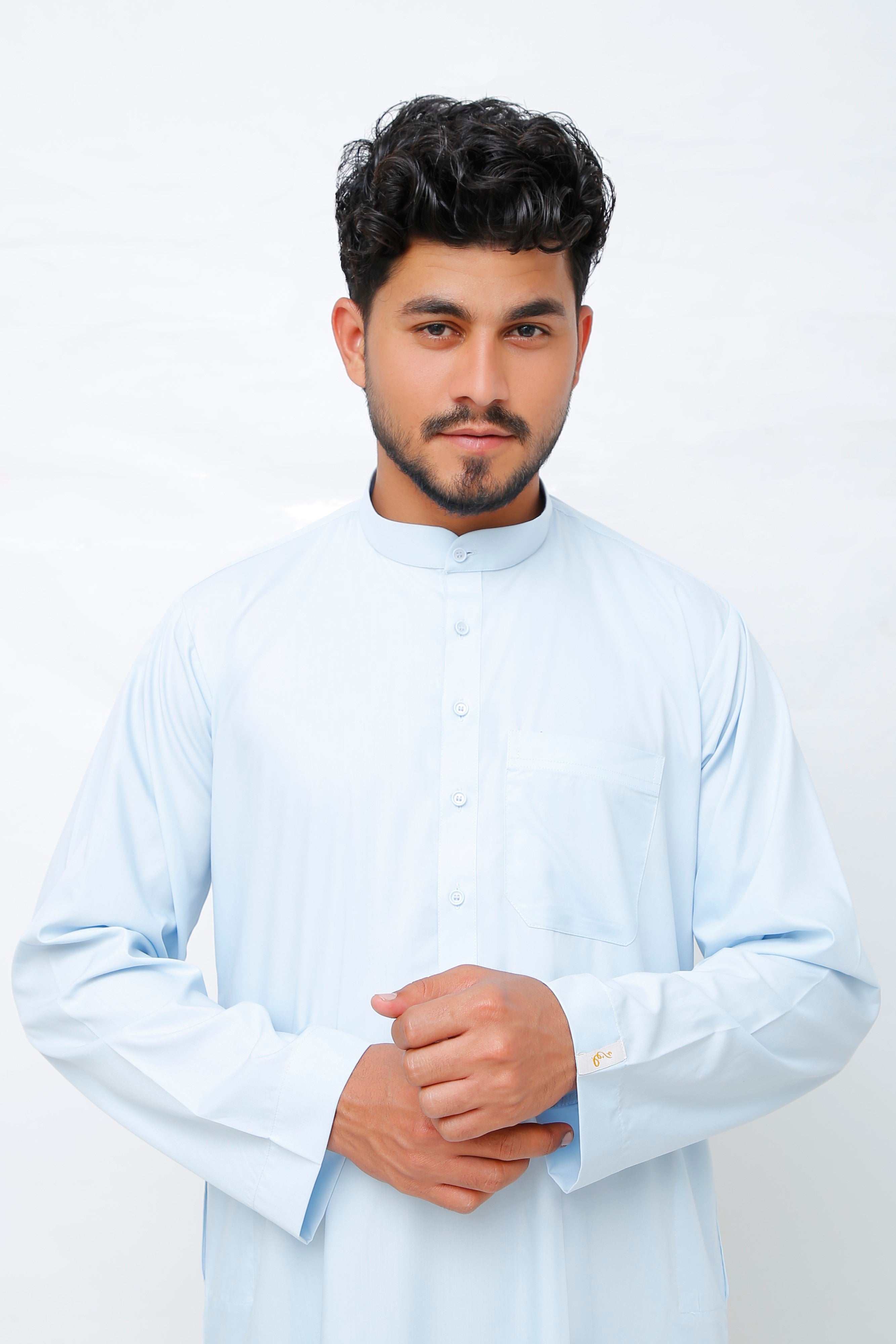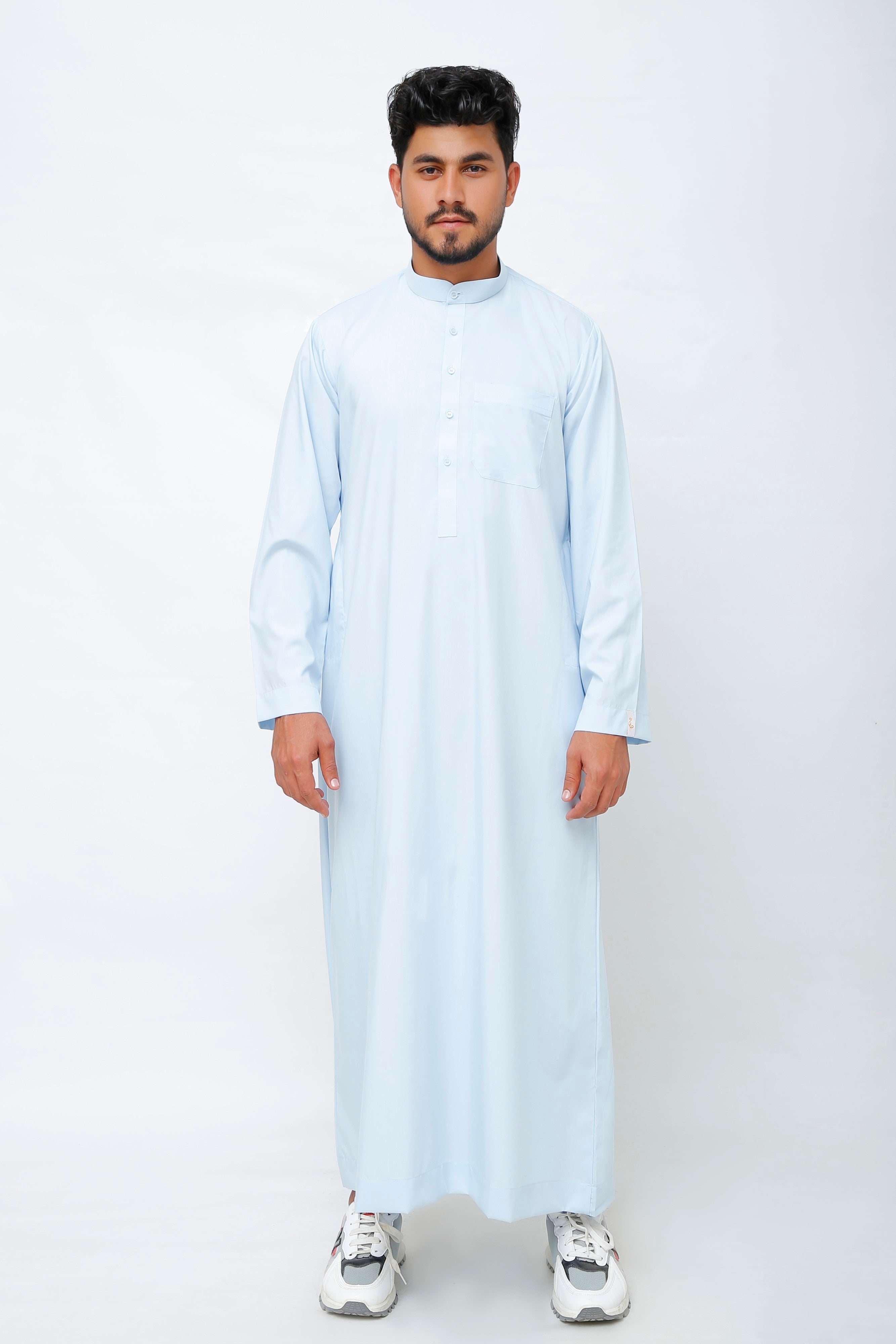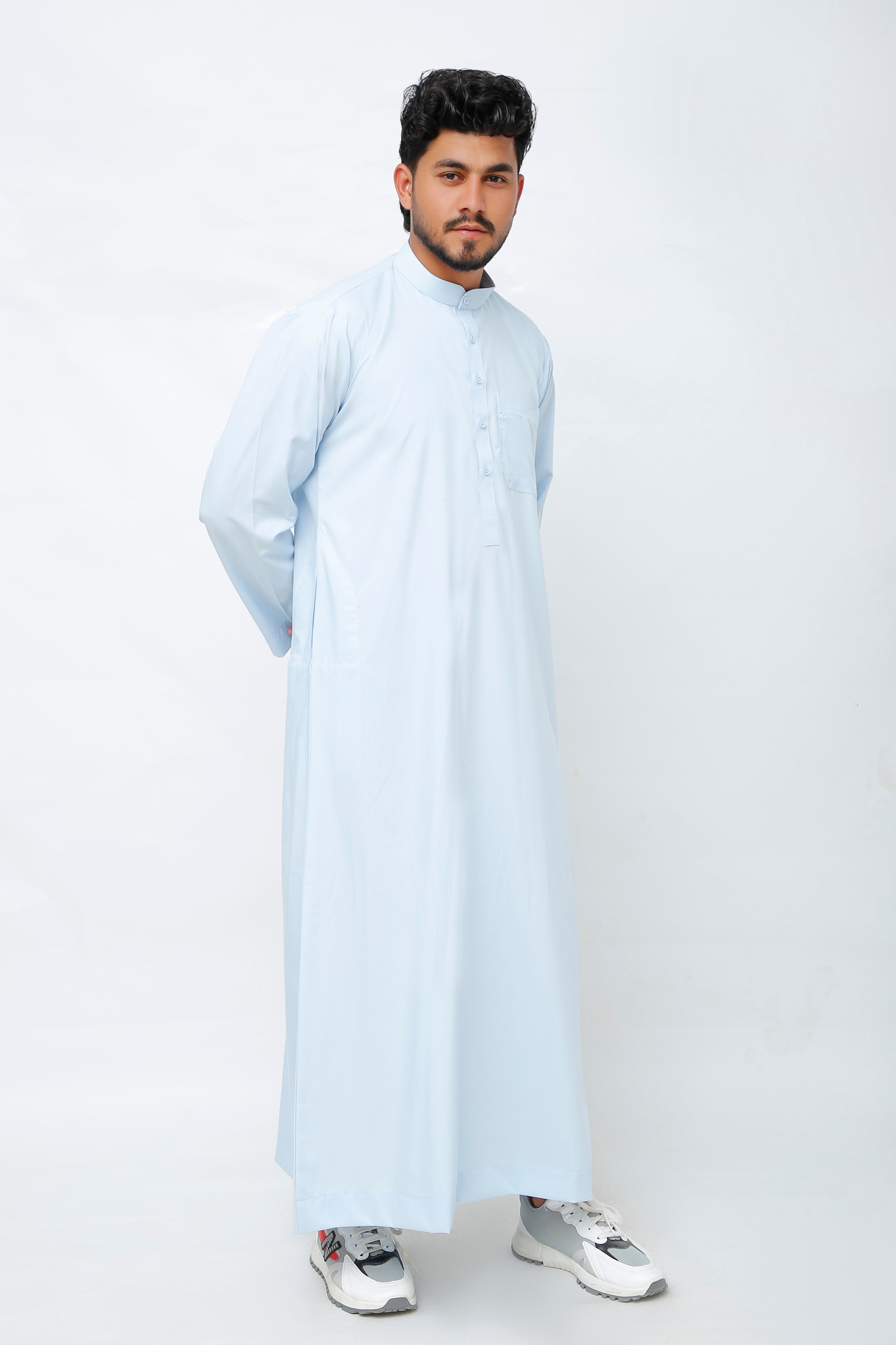 White Omani Round Neck Long Sleeve Jubba with Stitched Embroidery Design