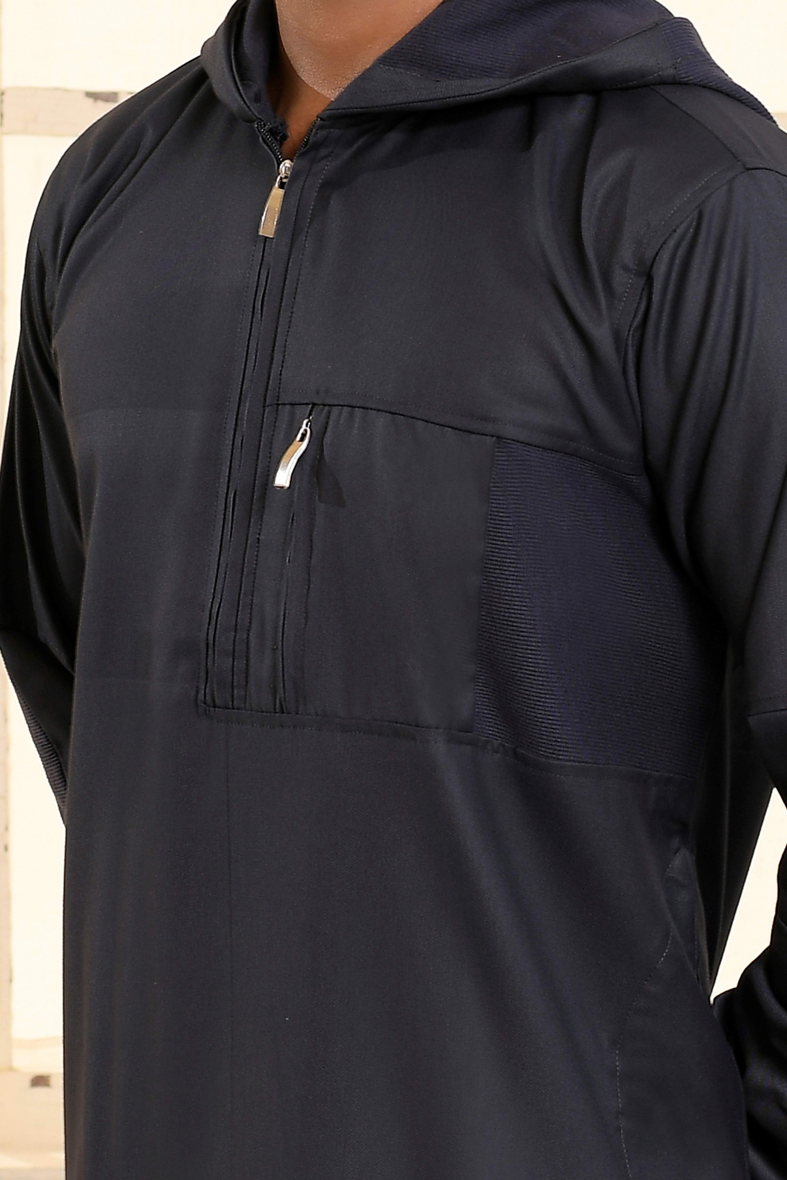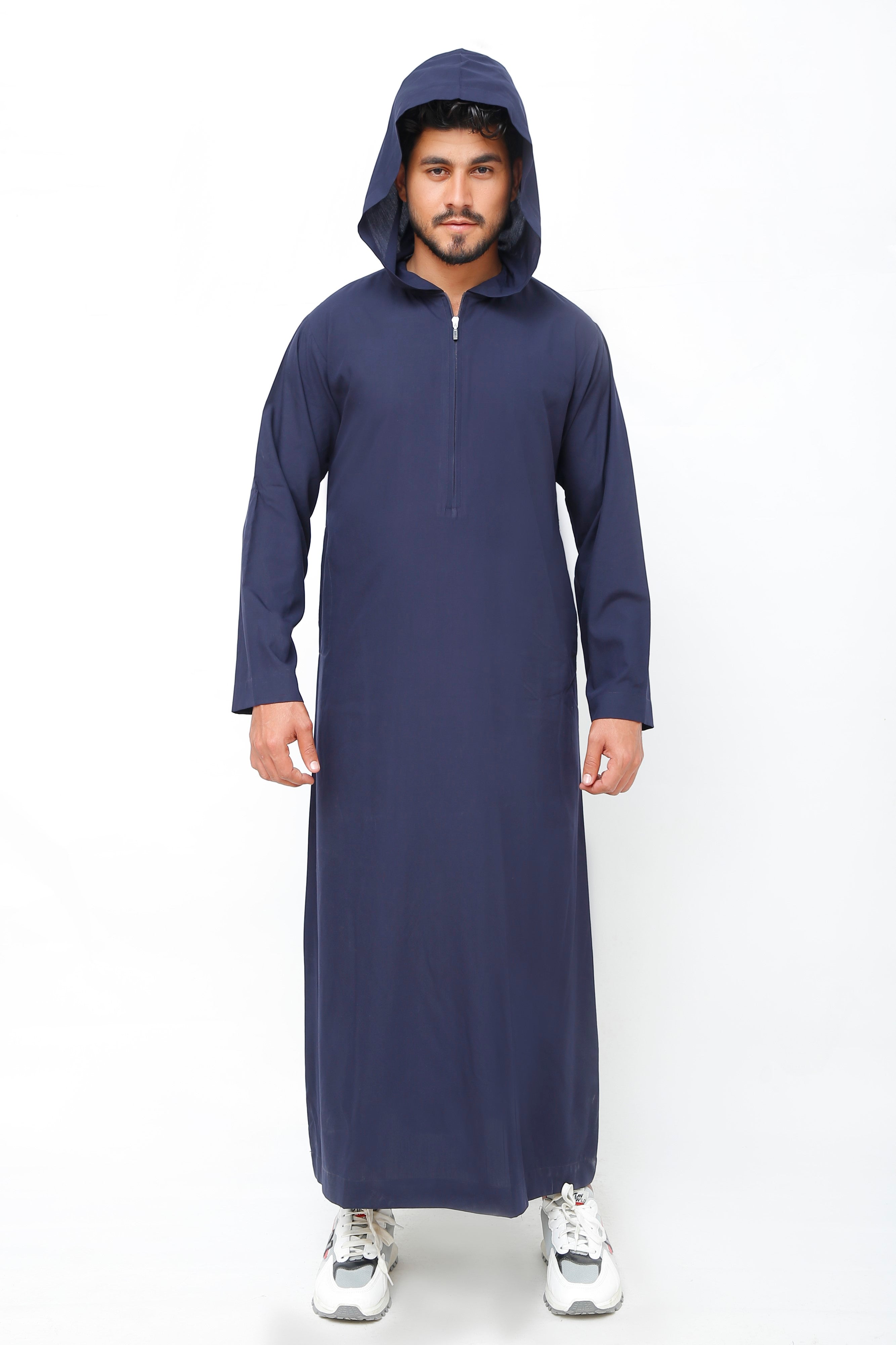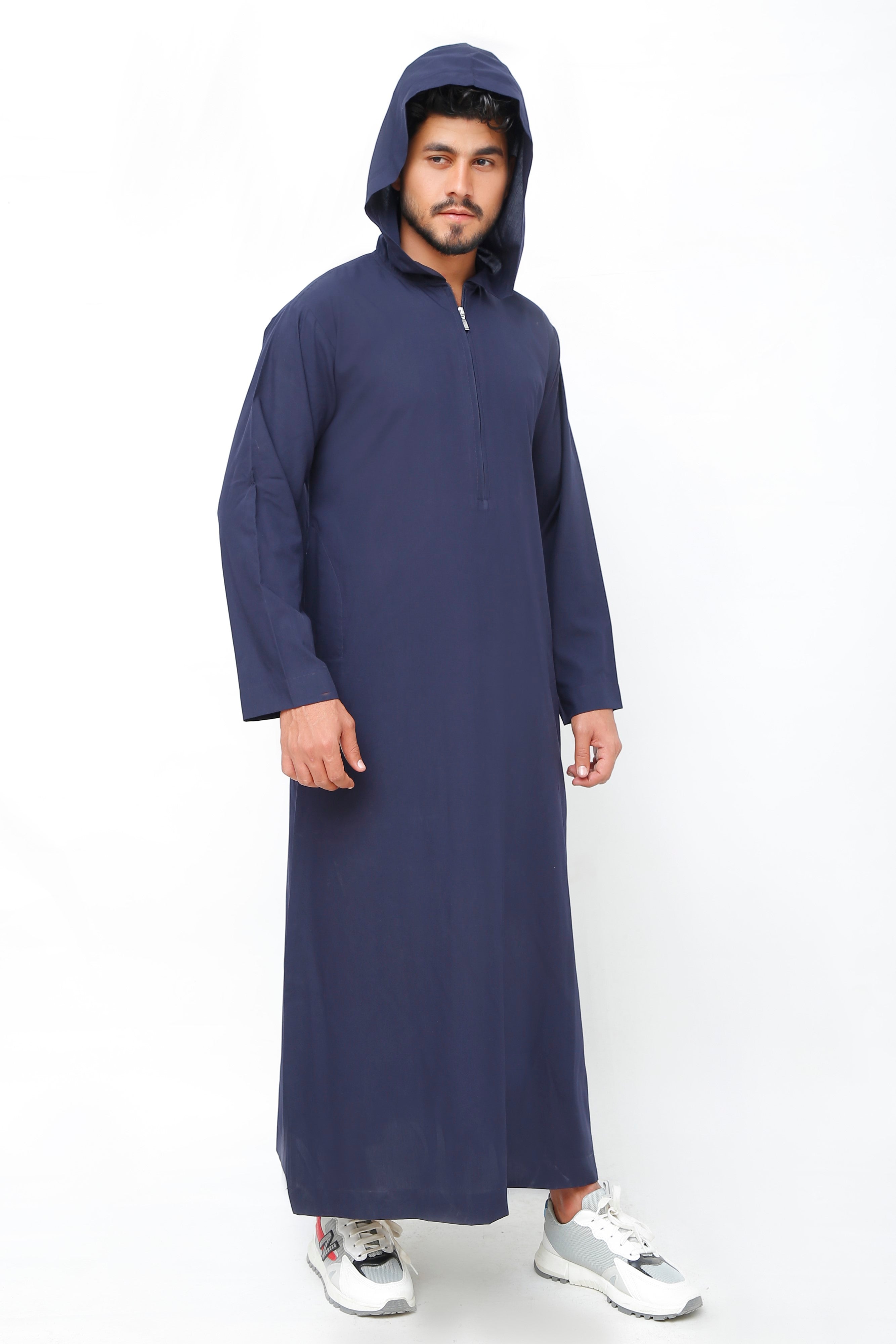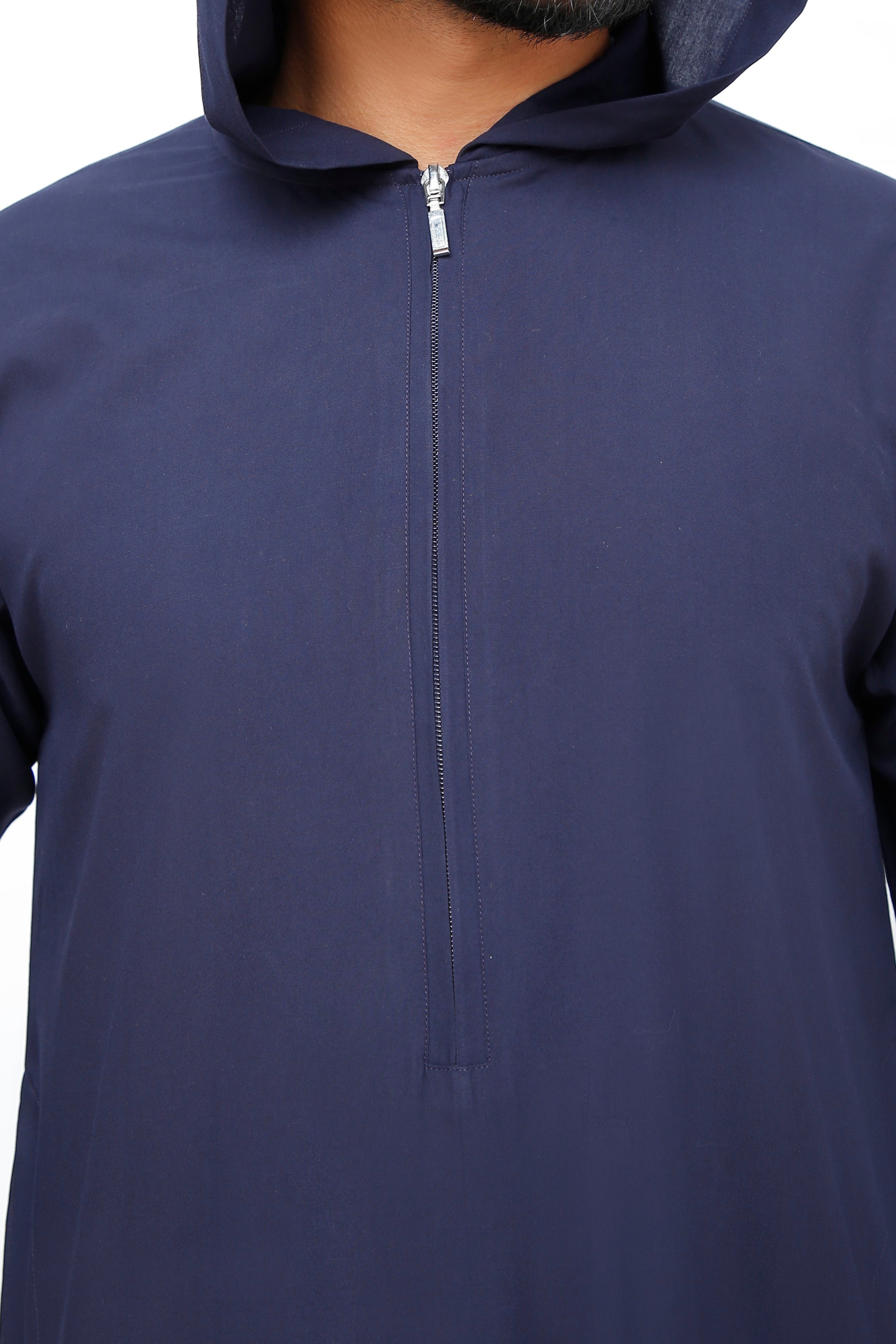 Navy Hooded Long Cuffed Sleeve Jubba with Pockets and Zip