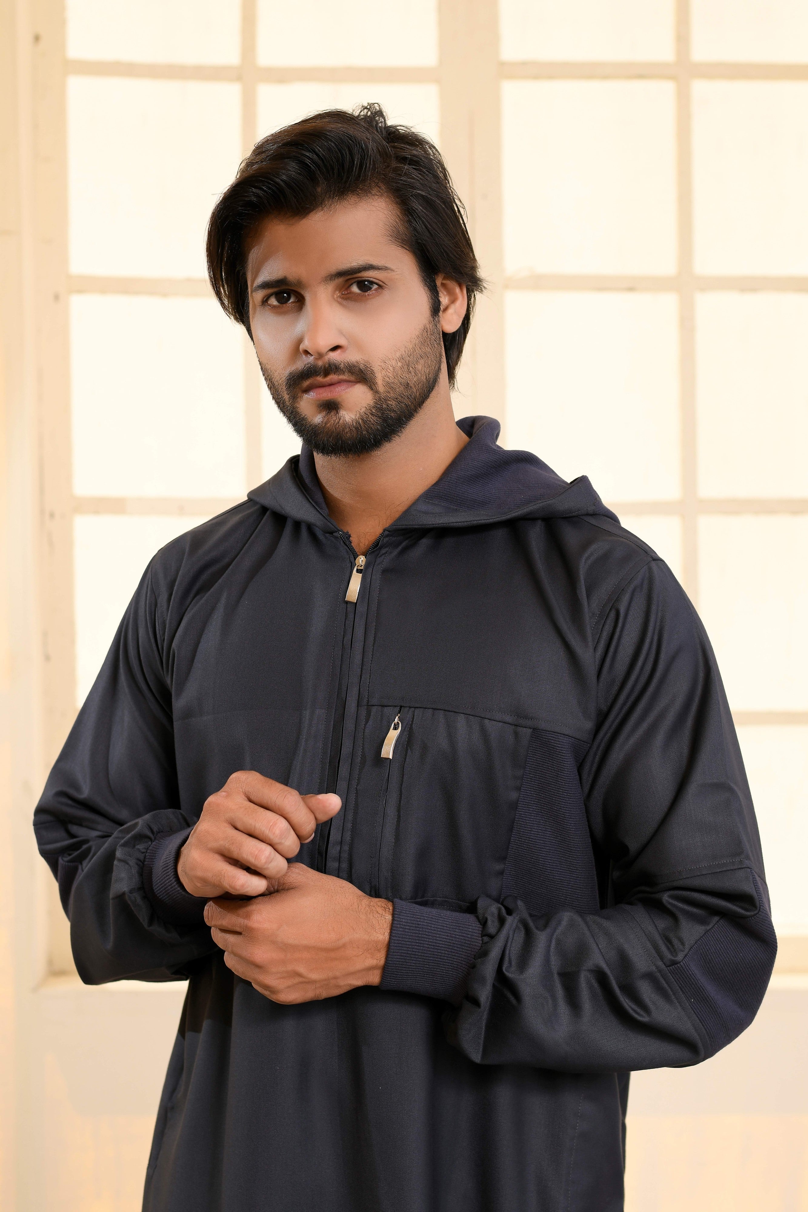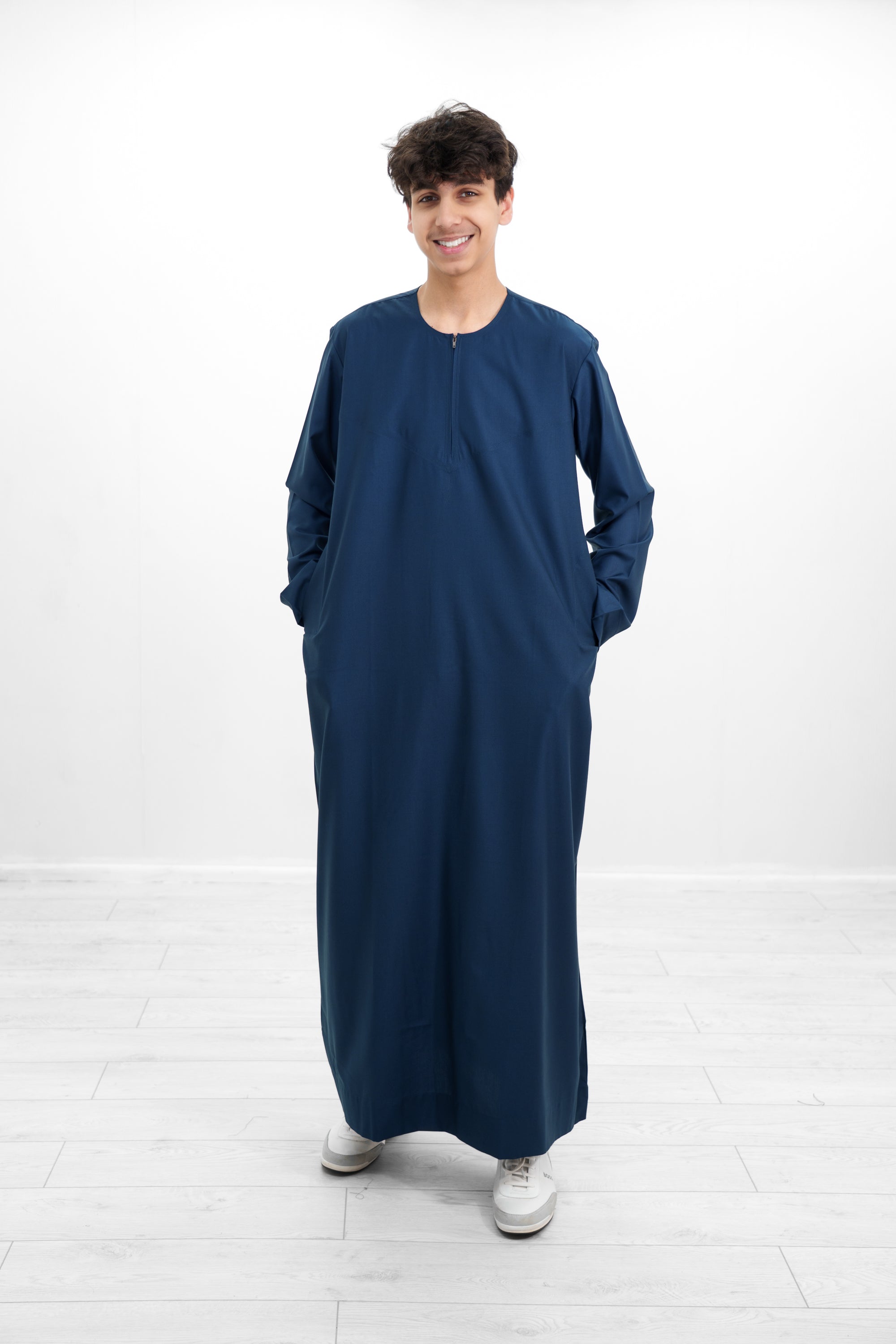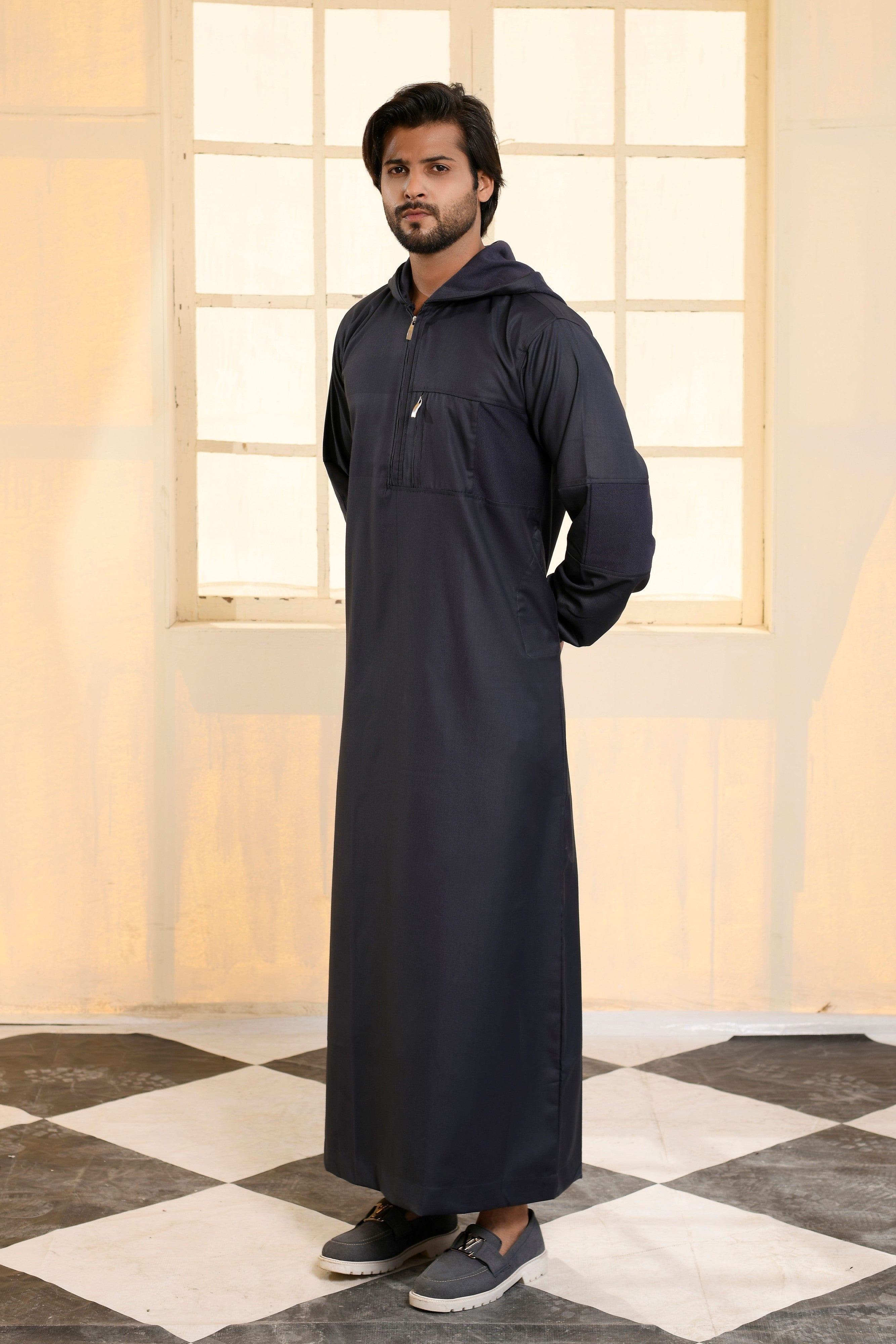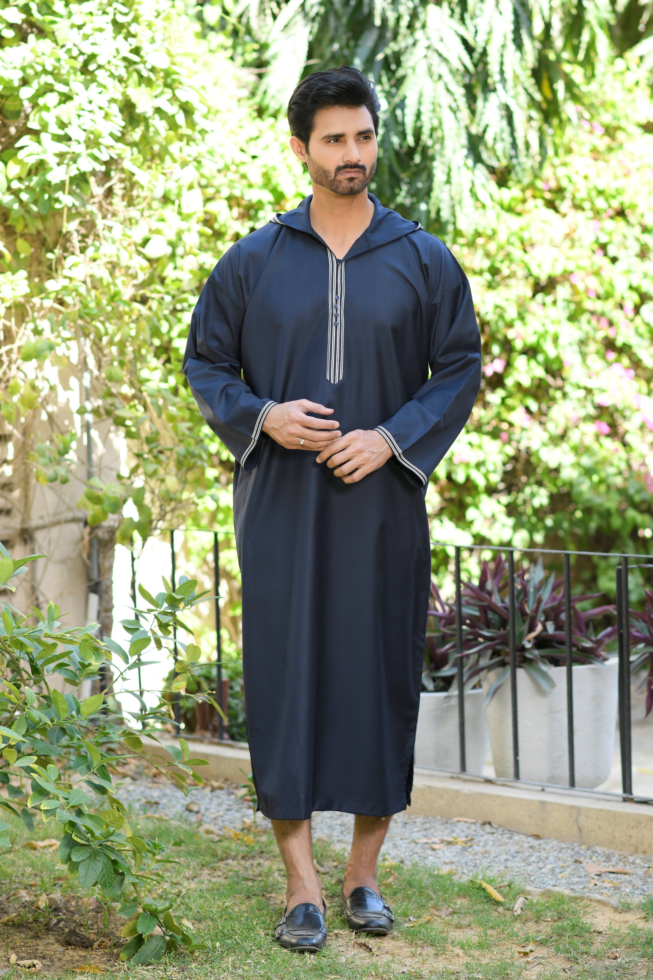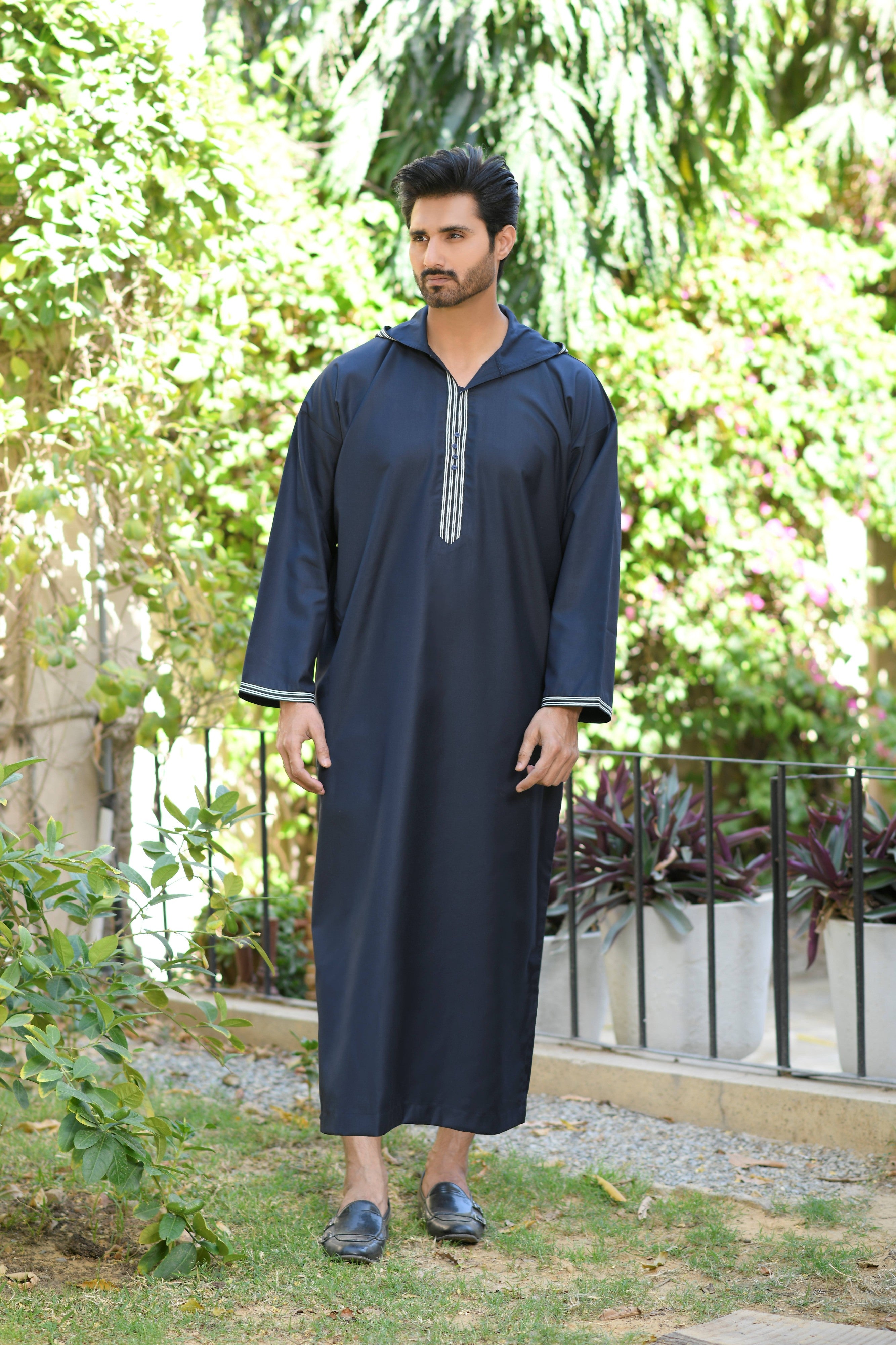 Navy Hooded Long Cuffed Sleeve Jubba with Pockets and Zip