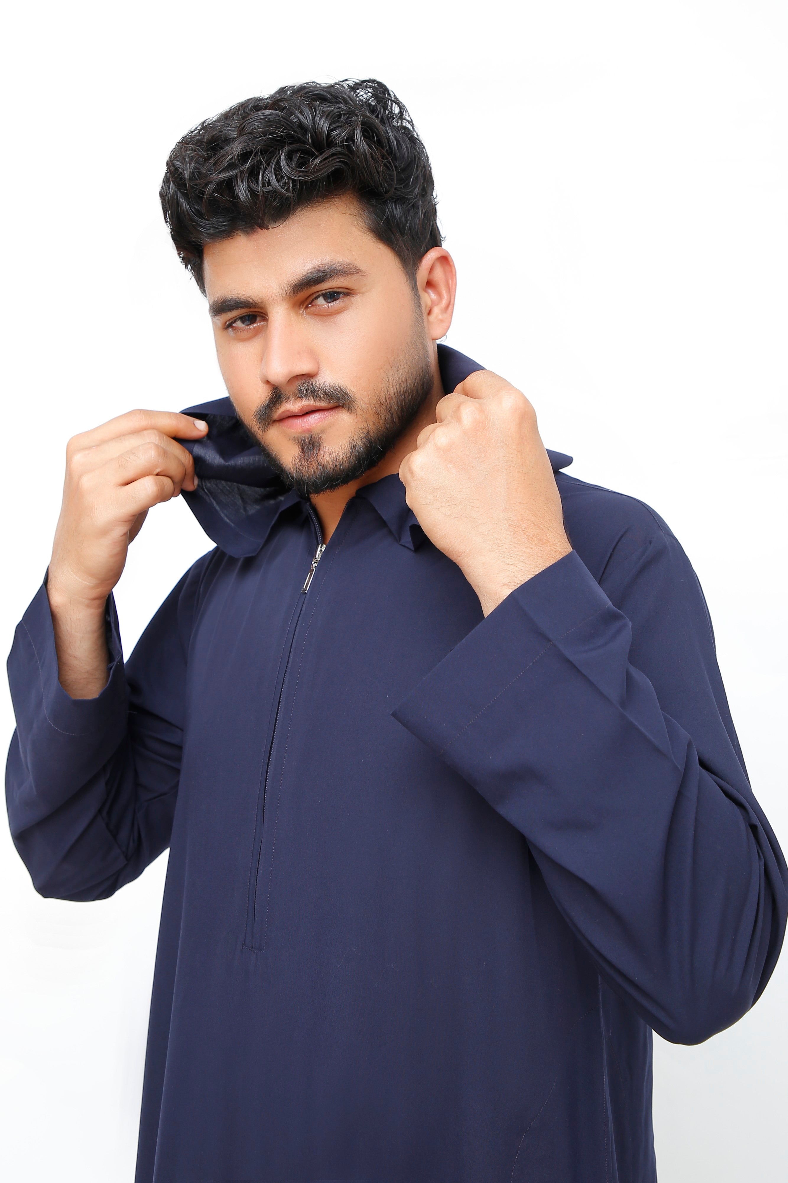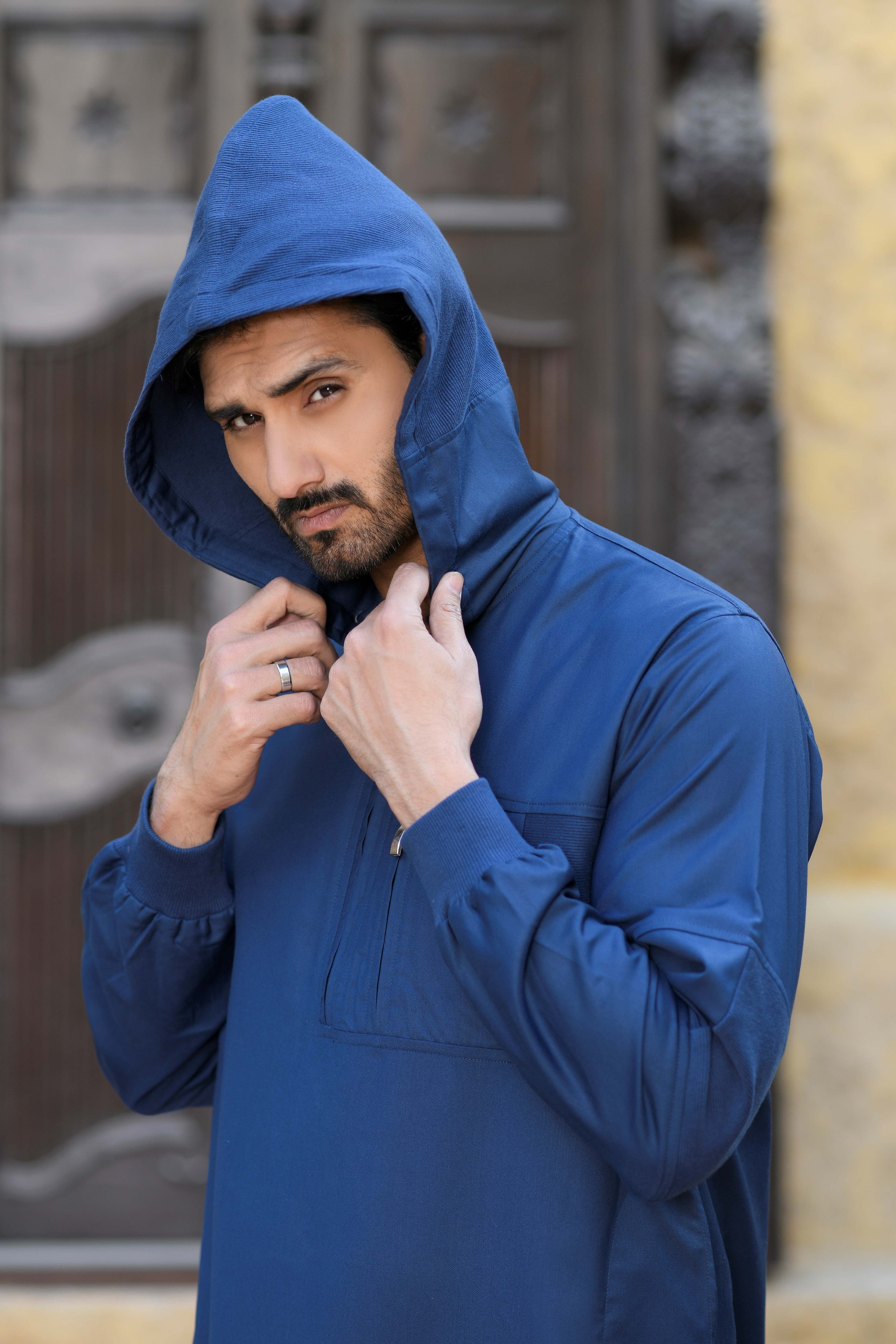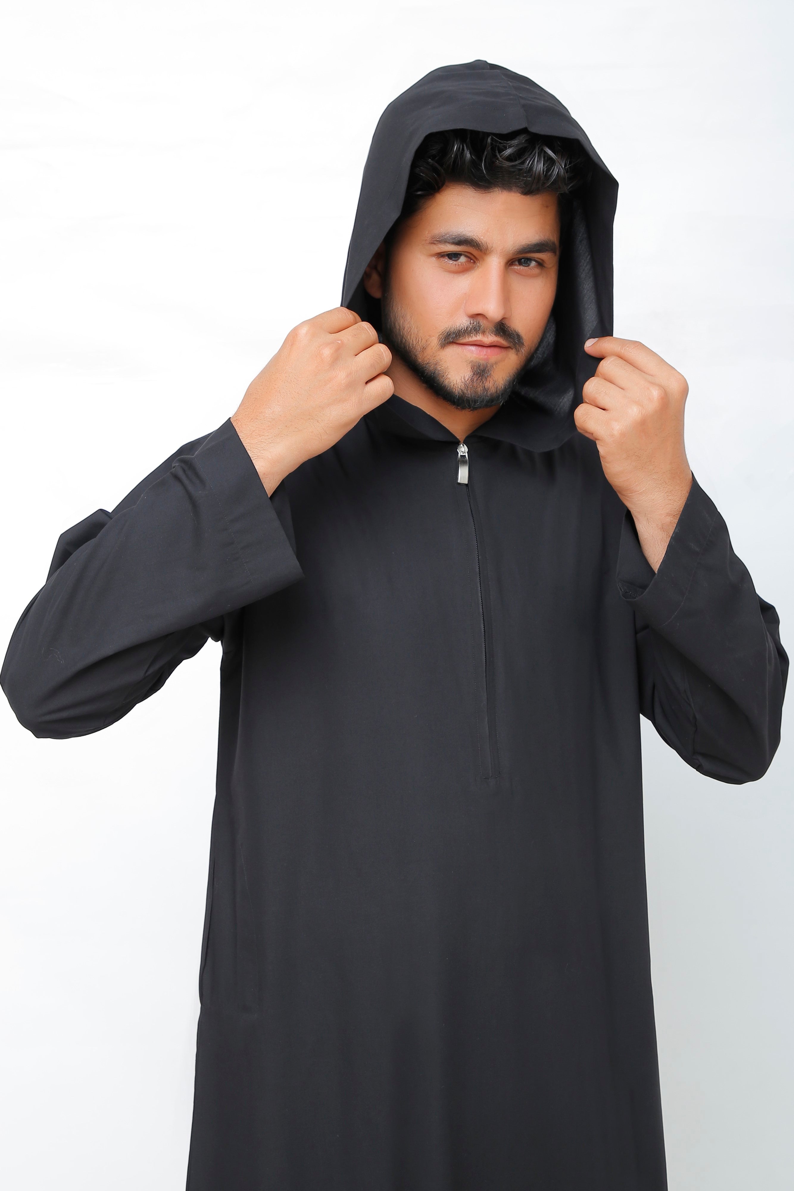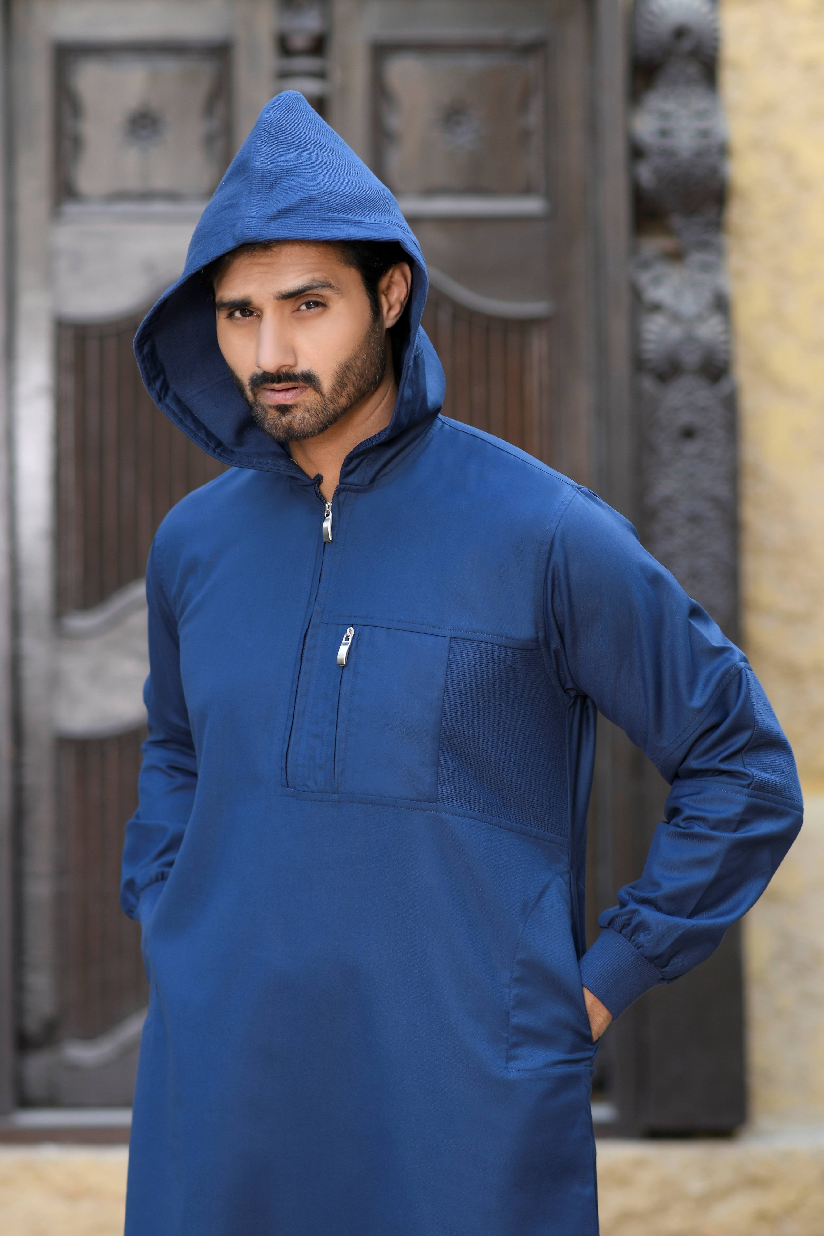 Navy Hooded Long Cuffed Sleeve Jubba with Pockets and Zip