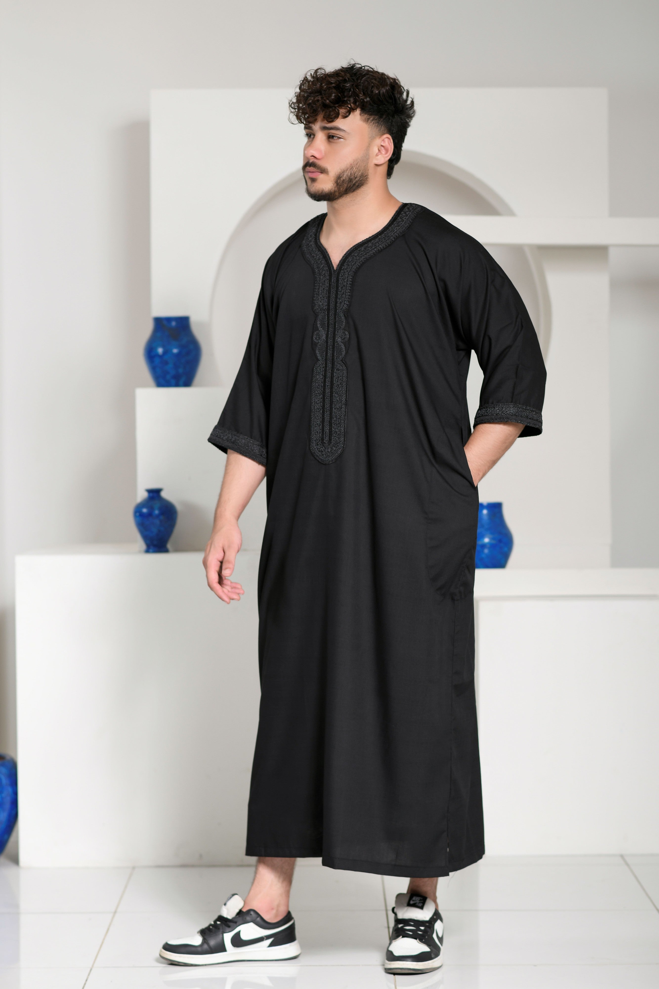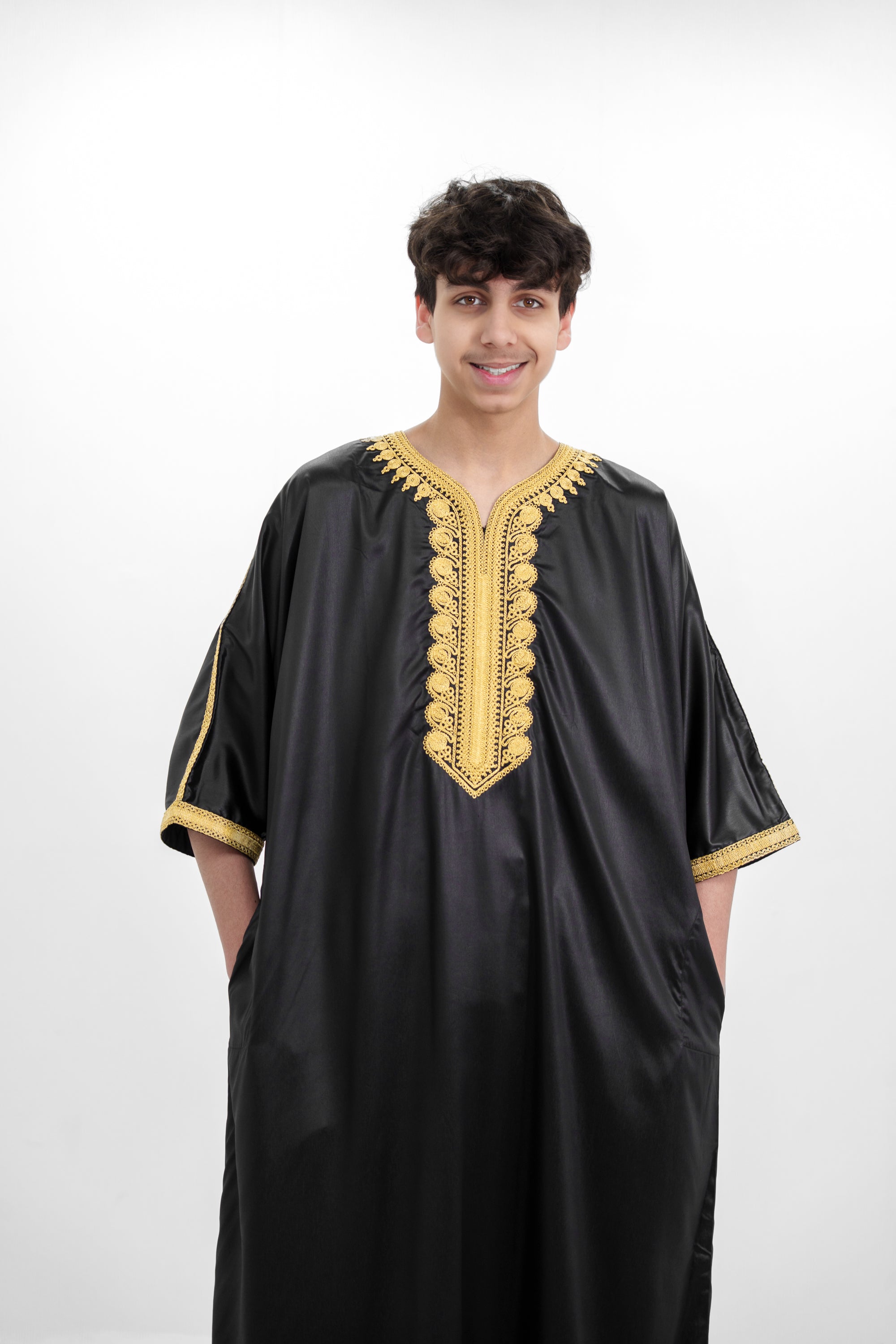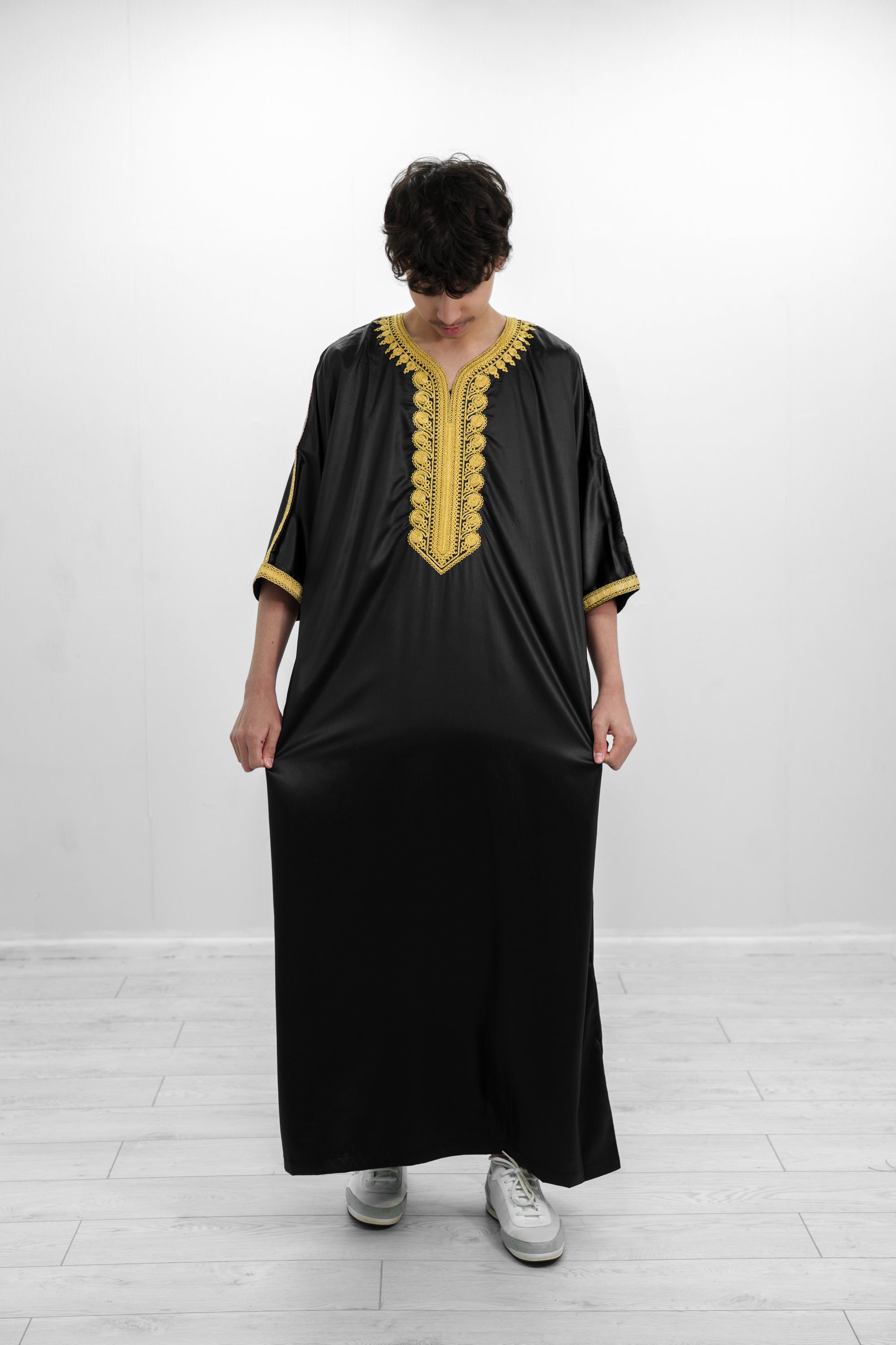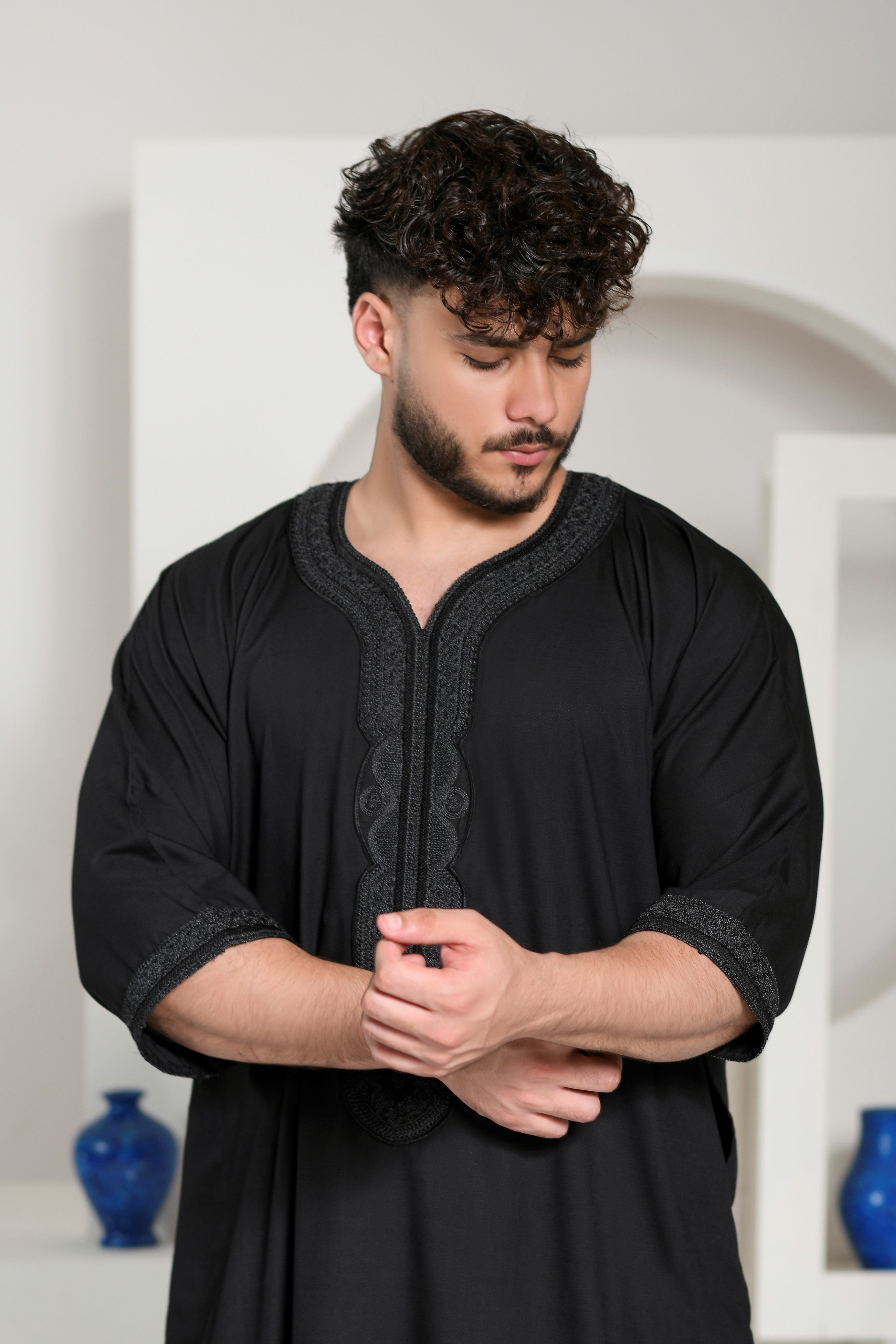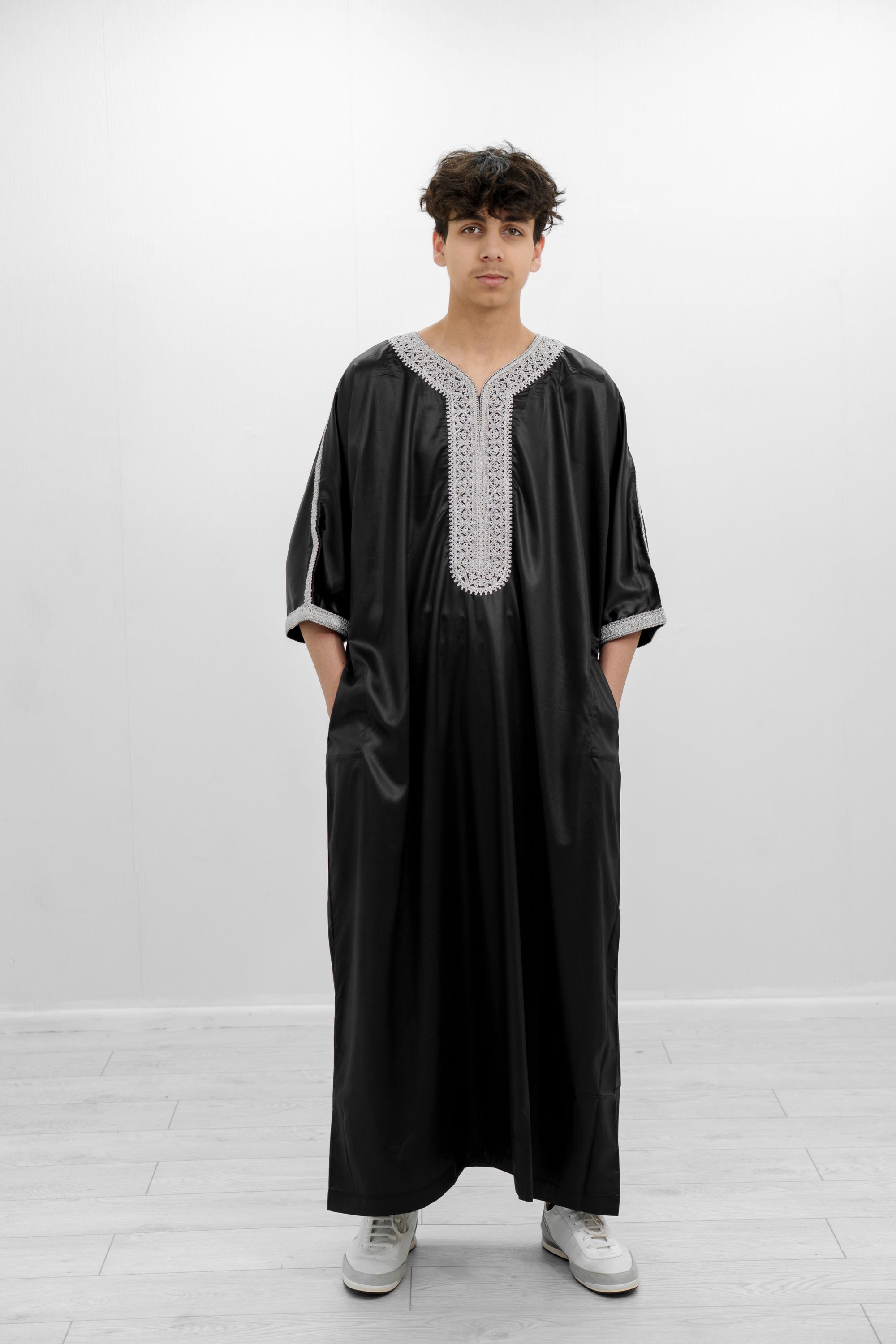 Black Shiny Half Sleeve Moroccan Jubba with Pockets