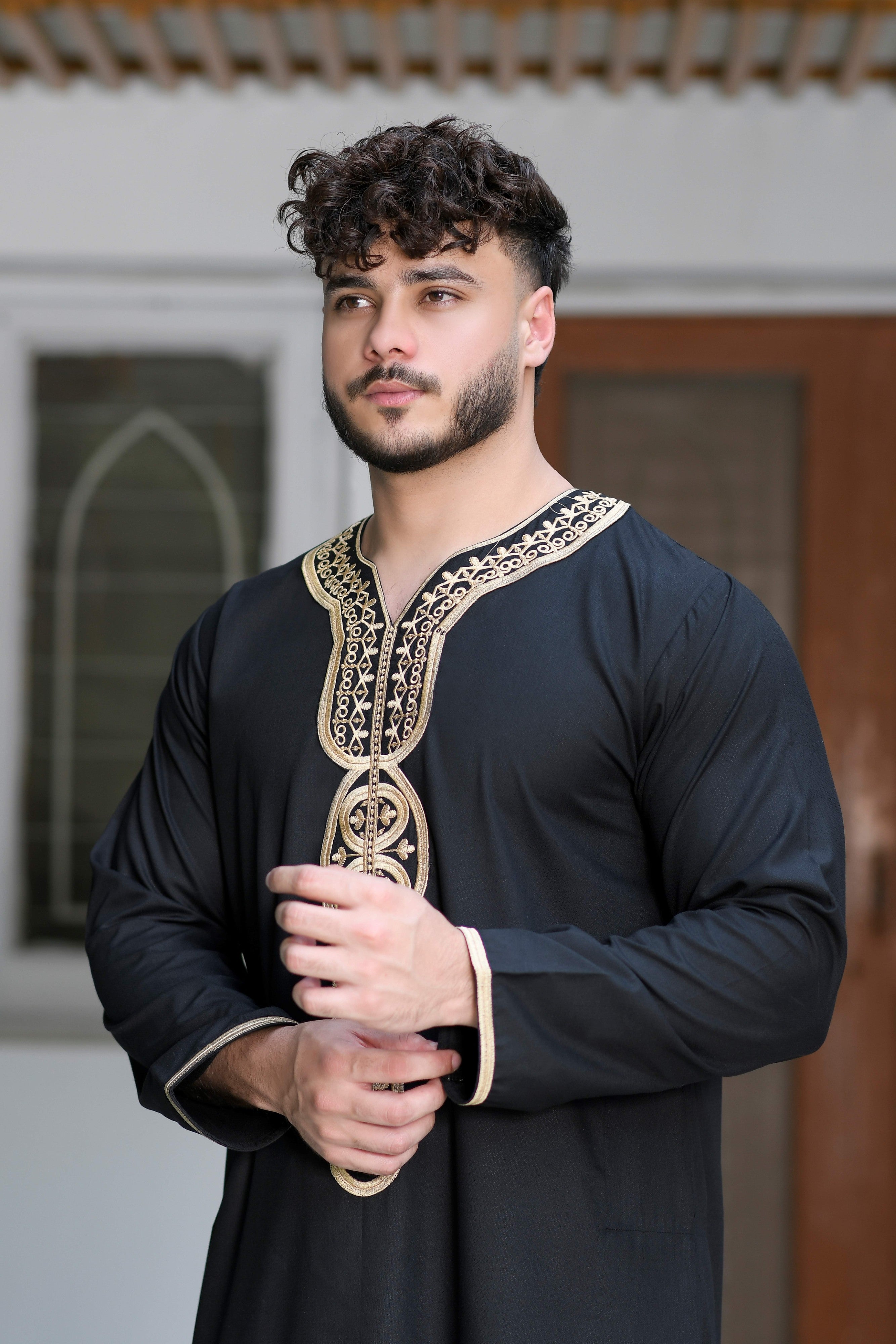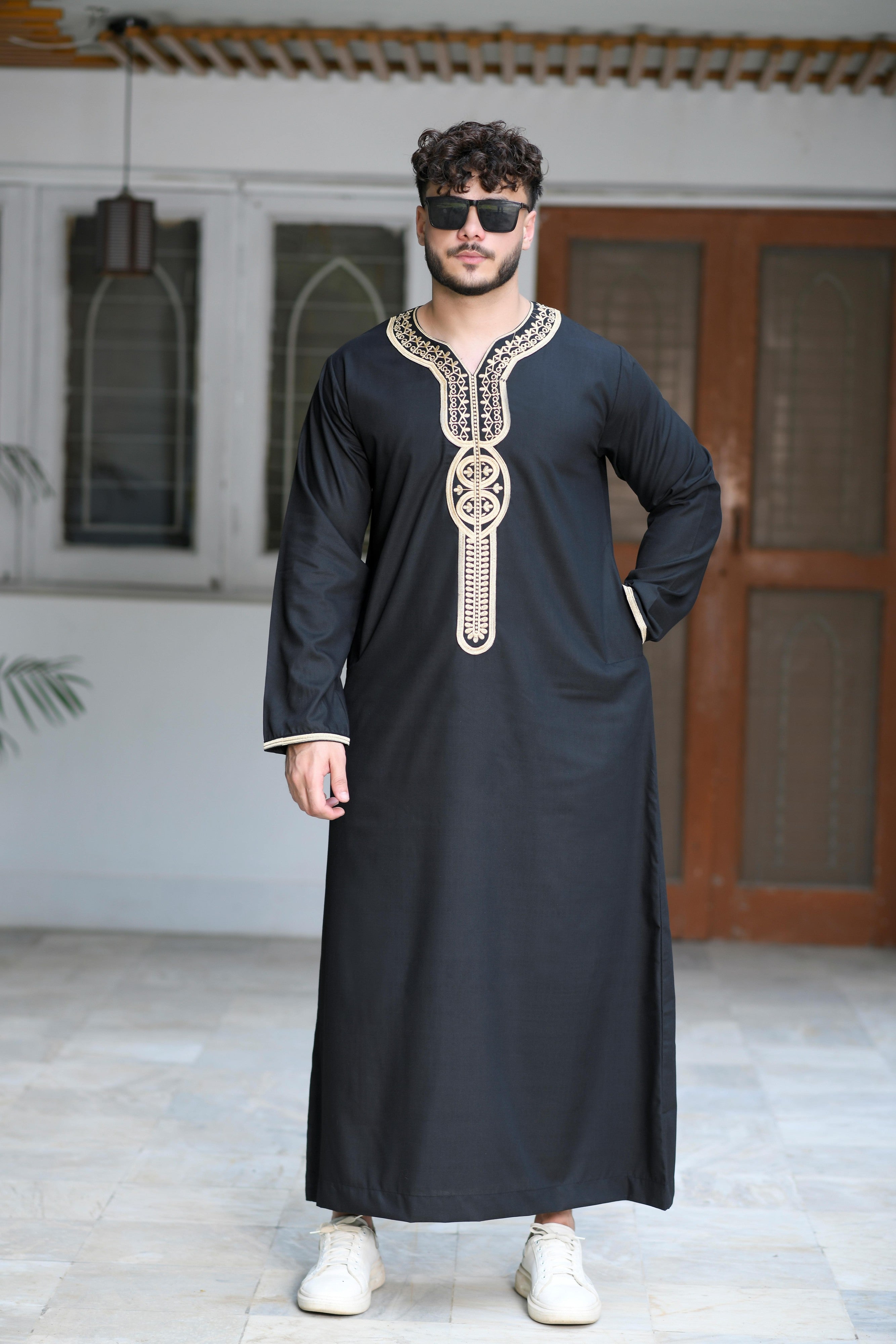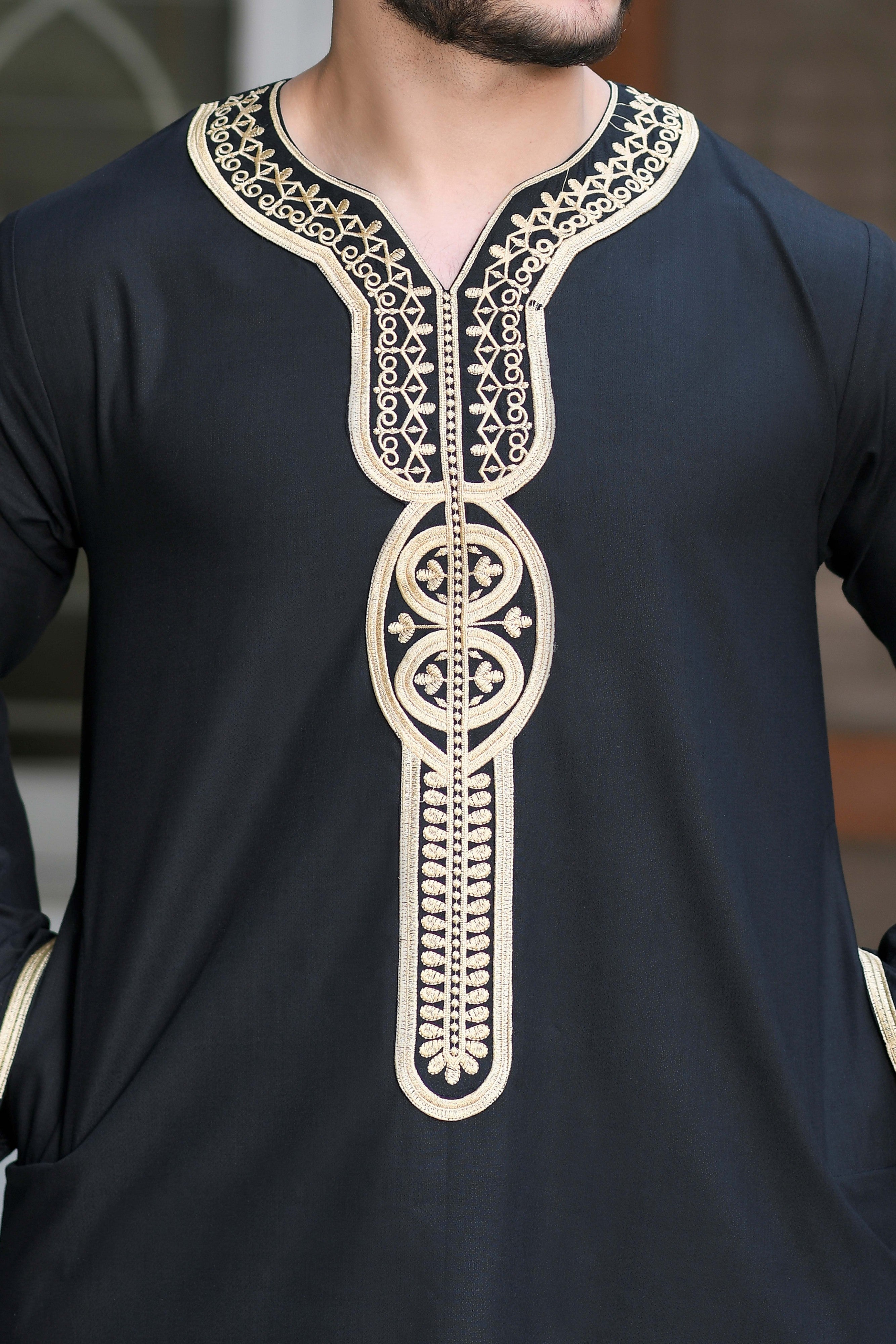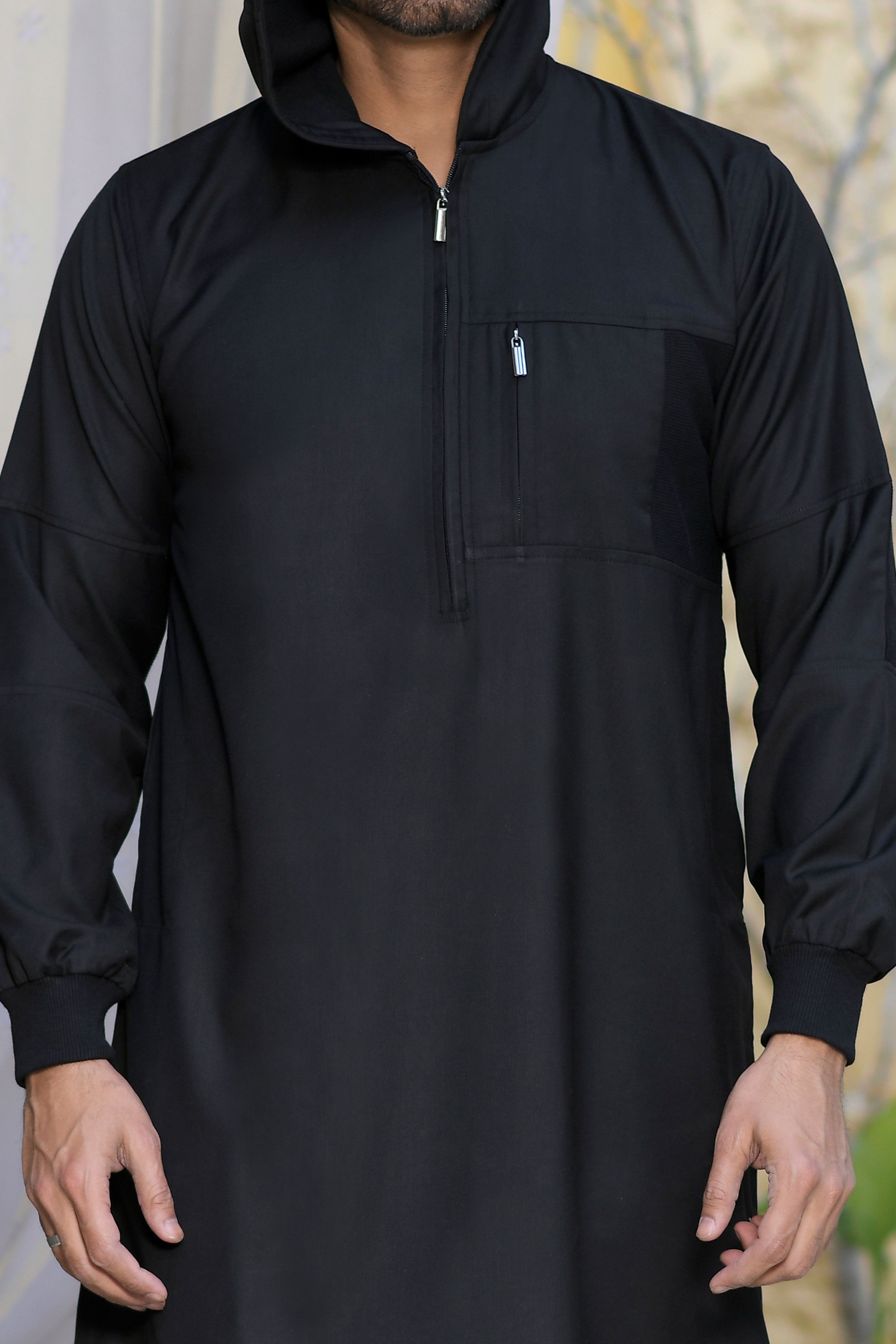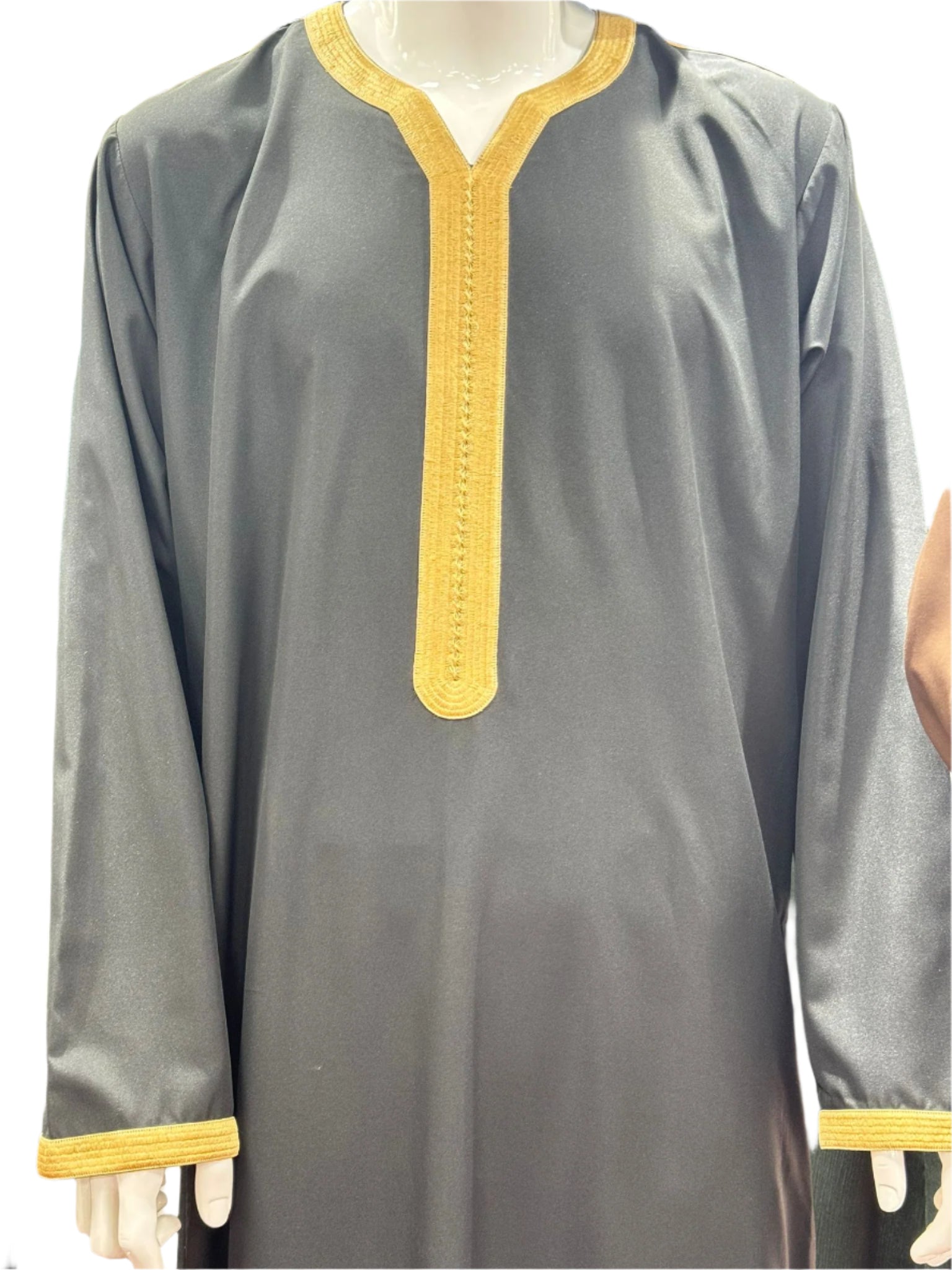 Black Shiny Half Sleeve Moroccan Jubba with Pockets