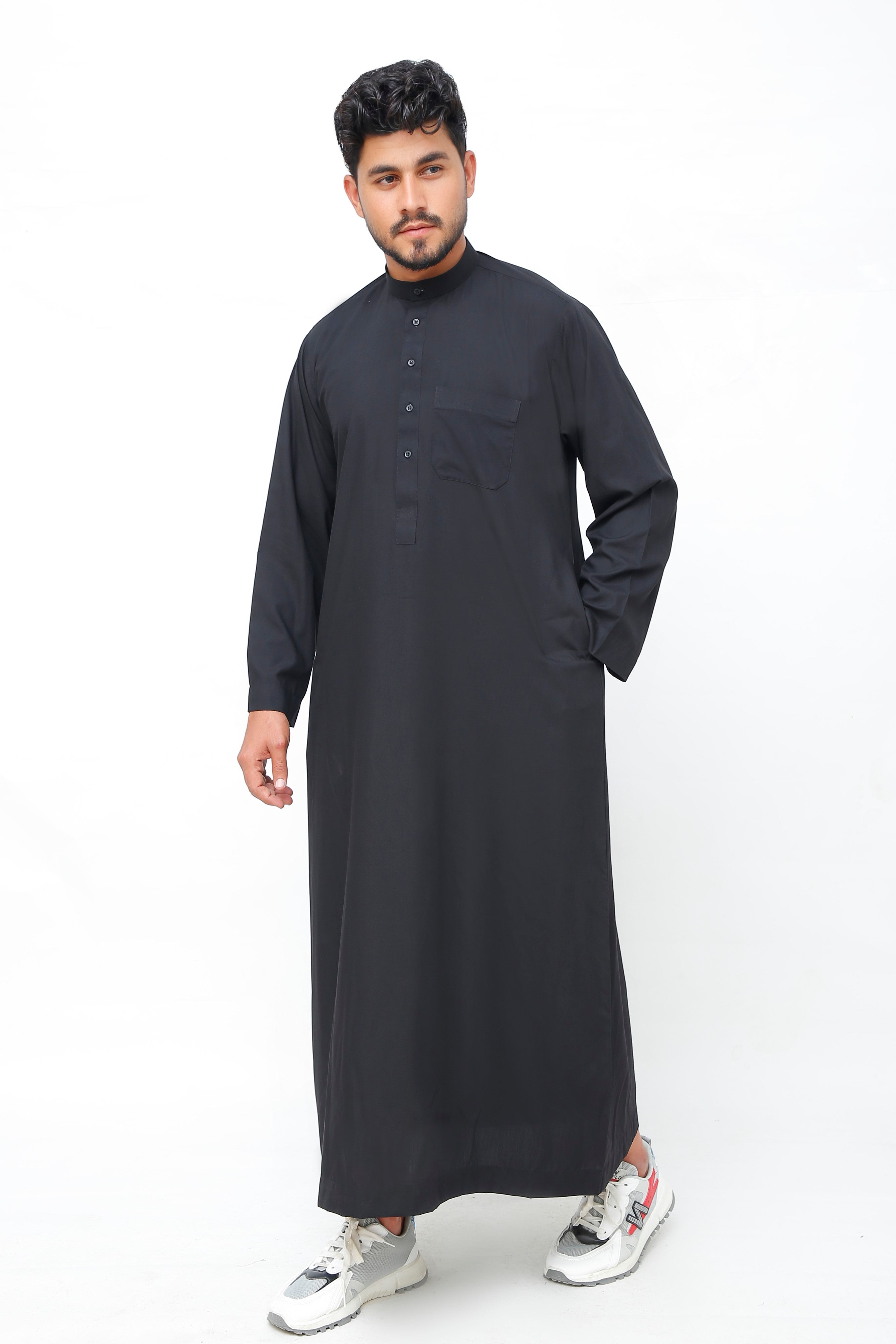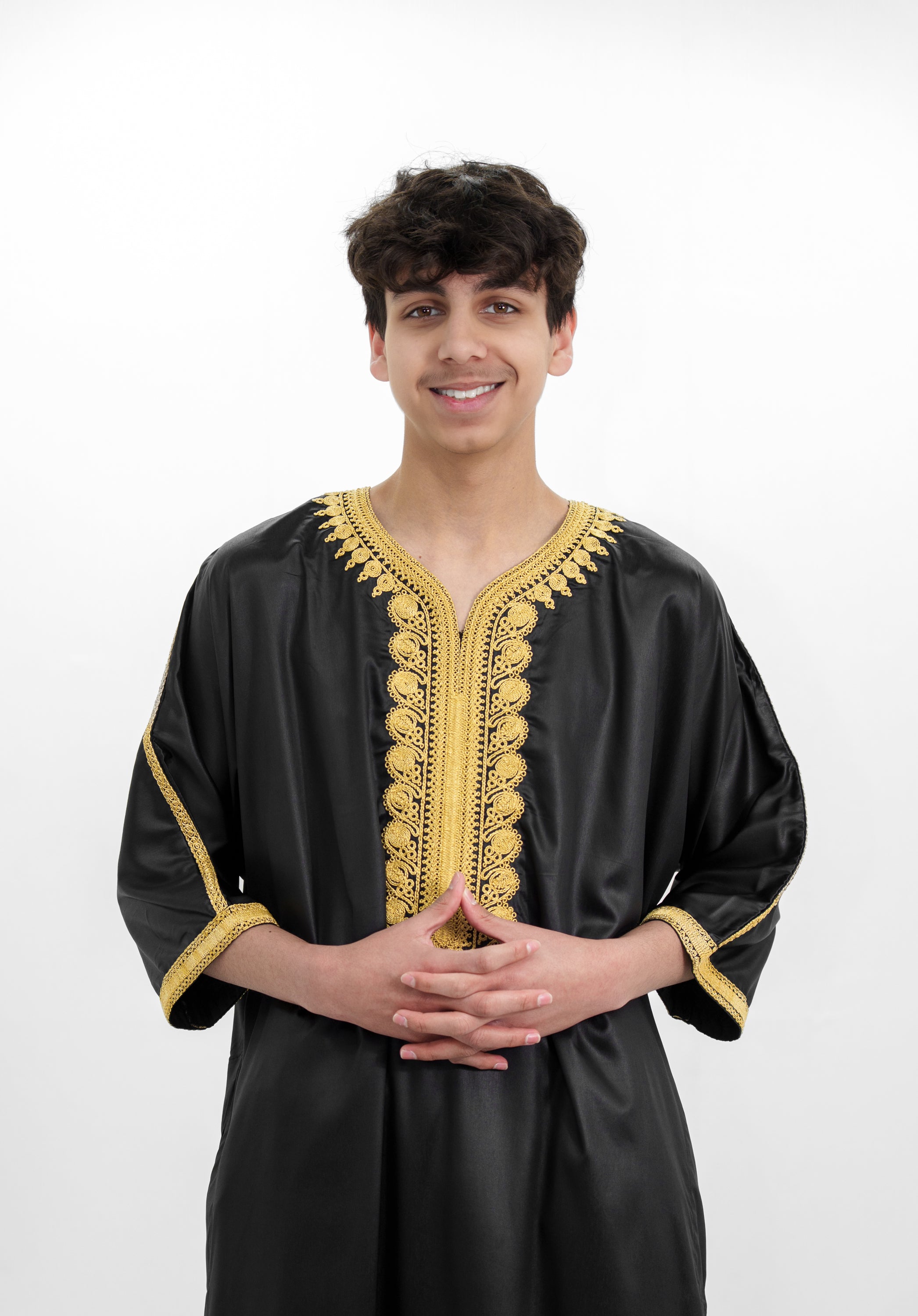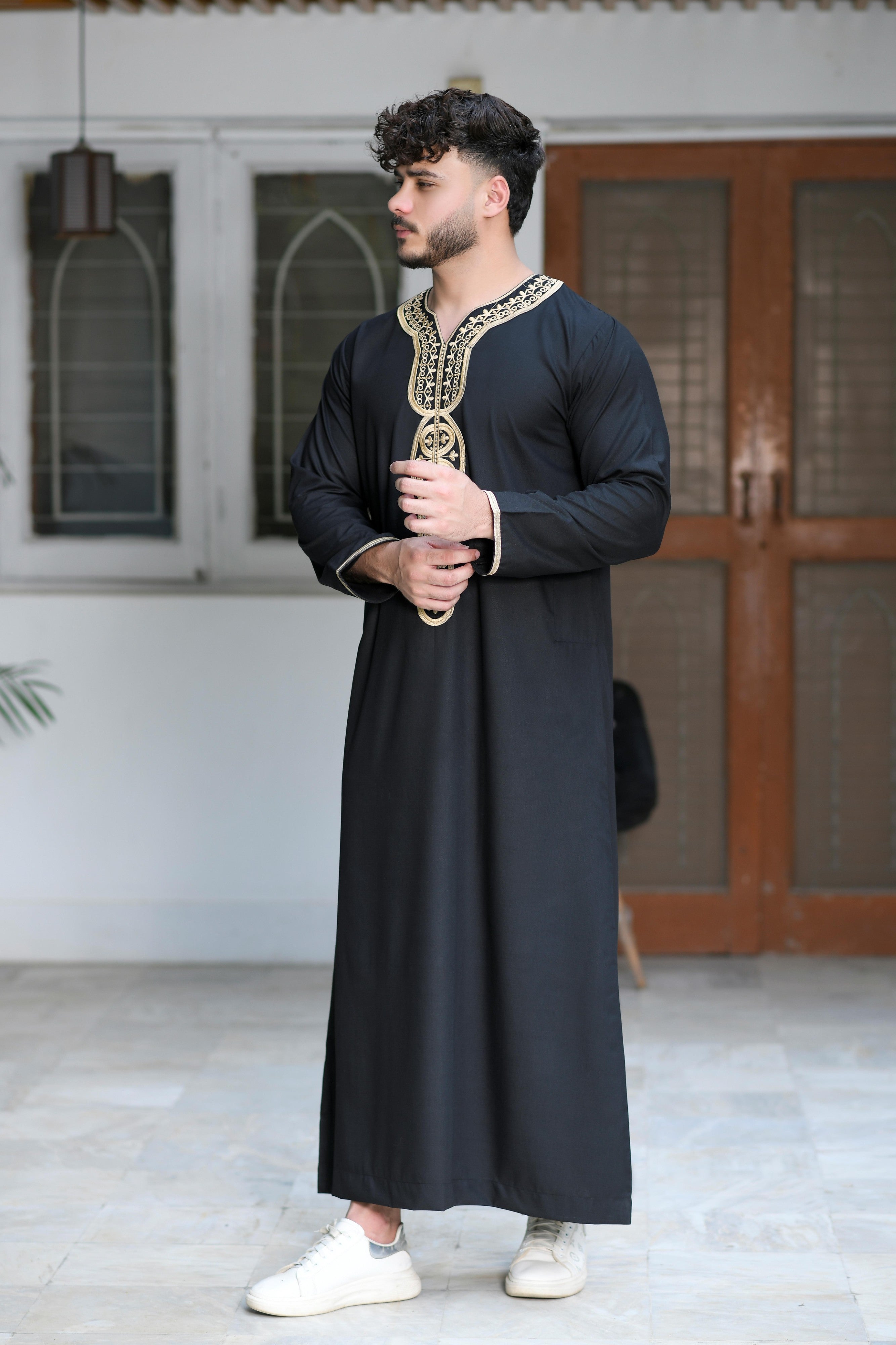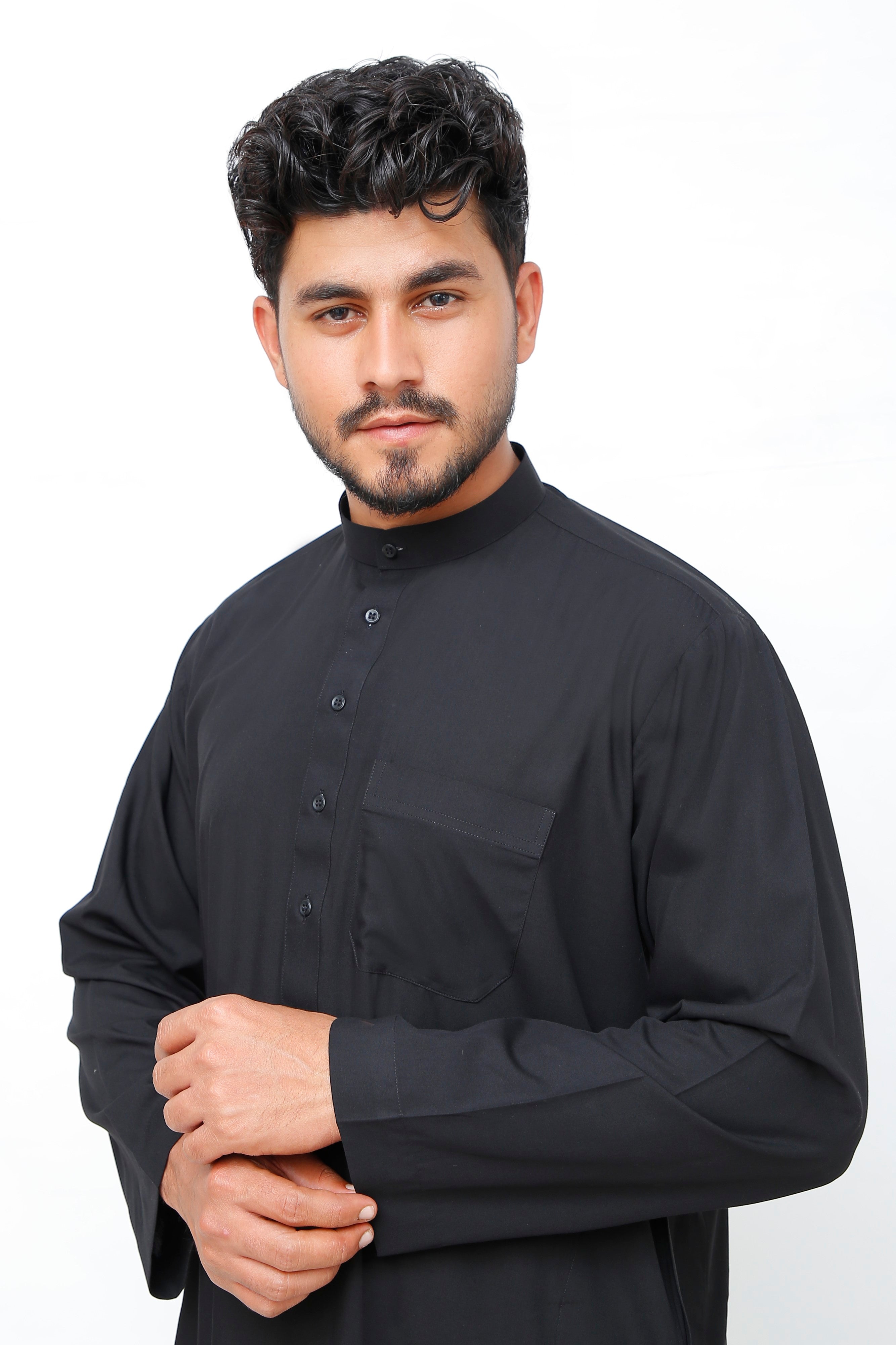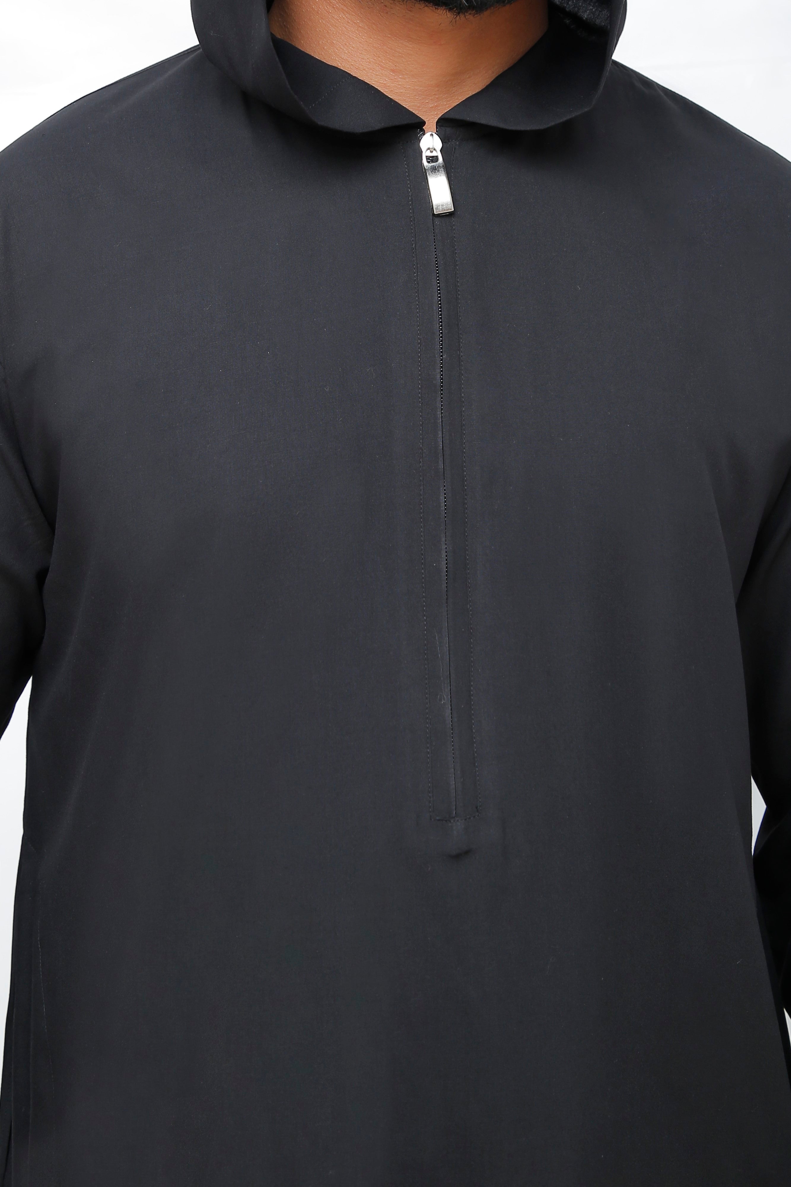 Black Shiny Half Sleeve Moroccan Jubba with Pockets