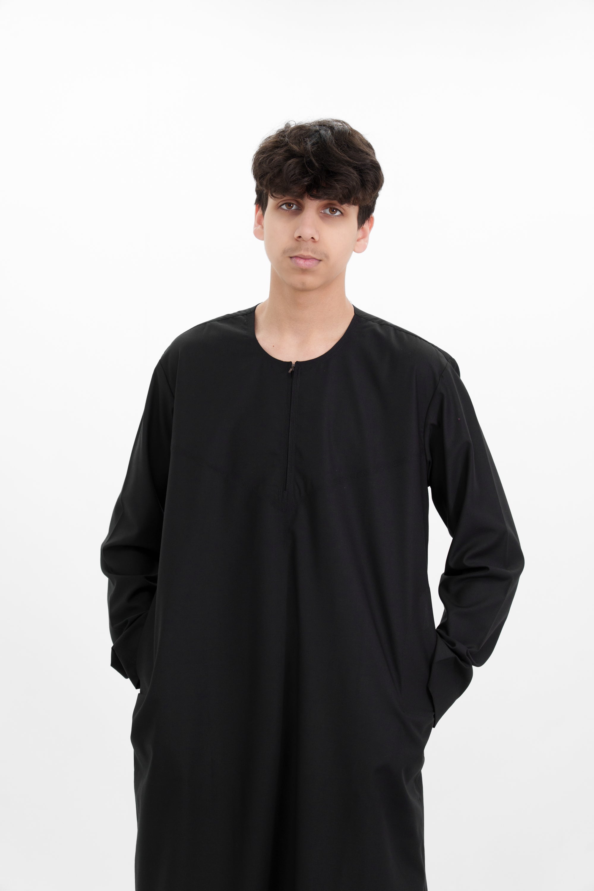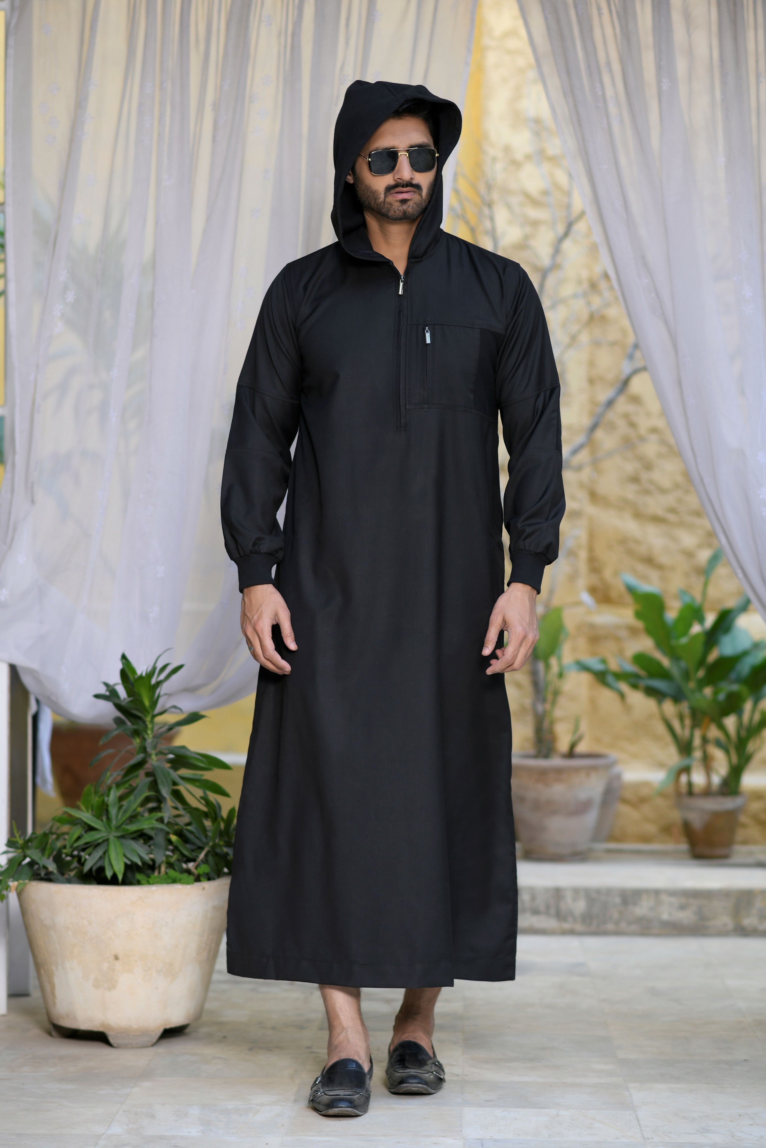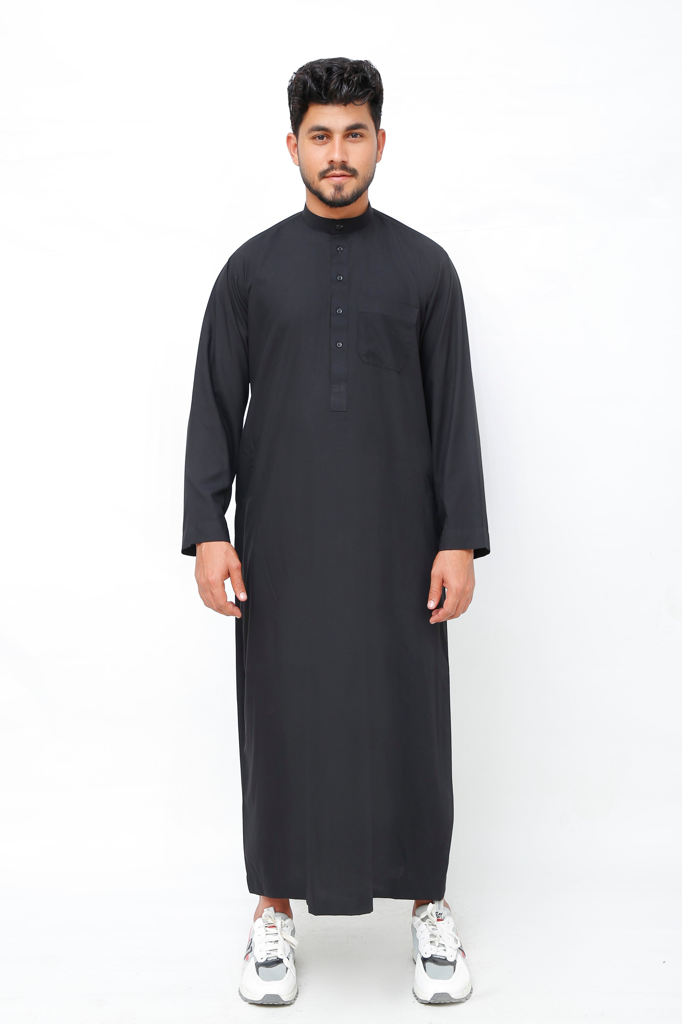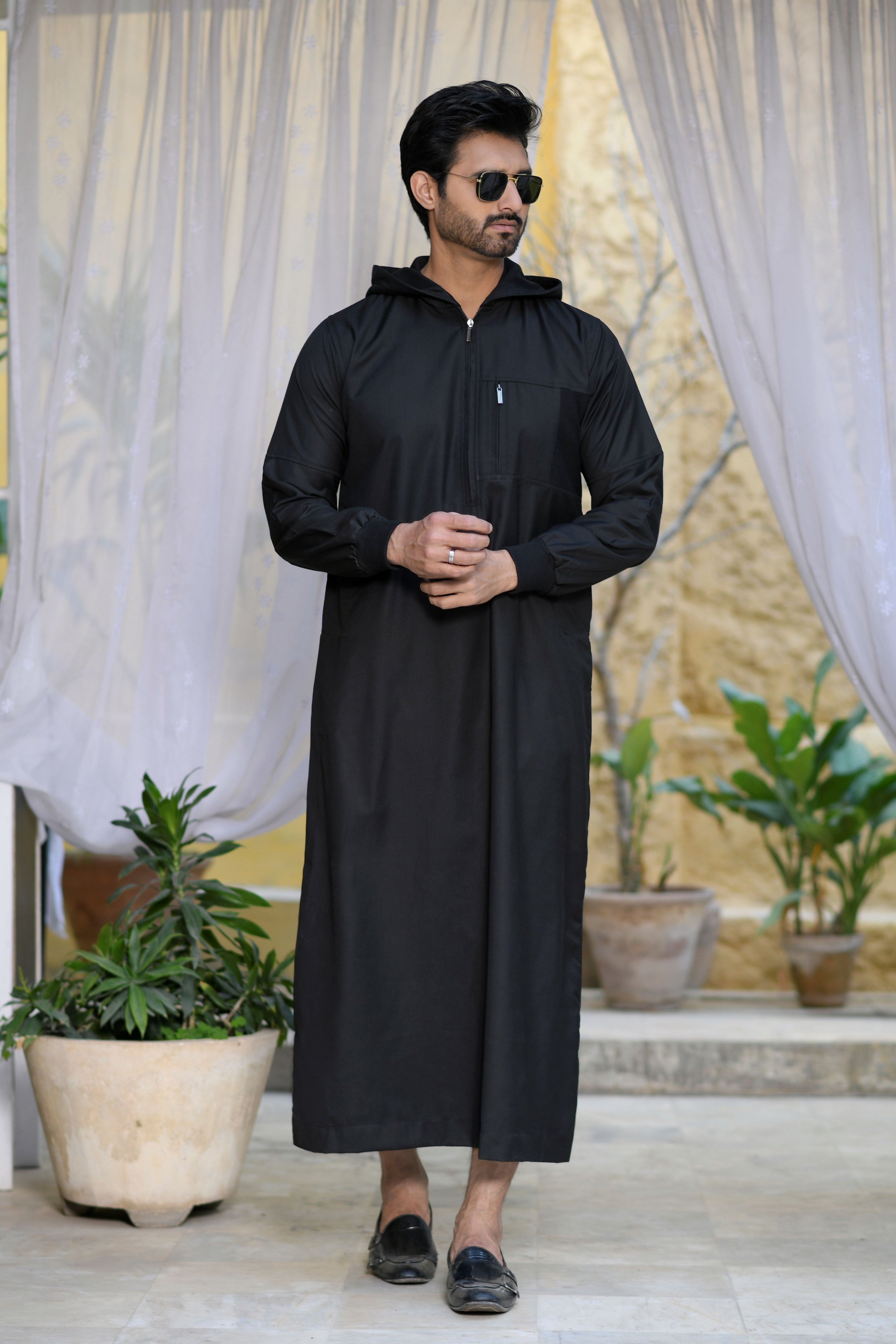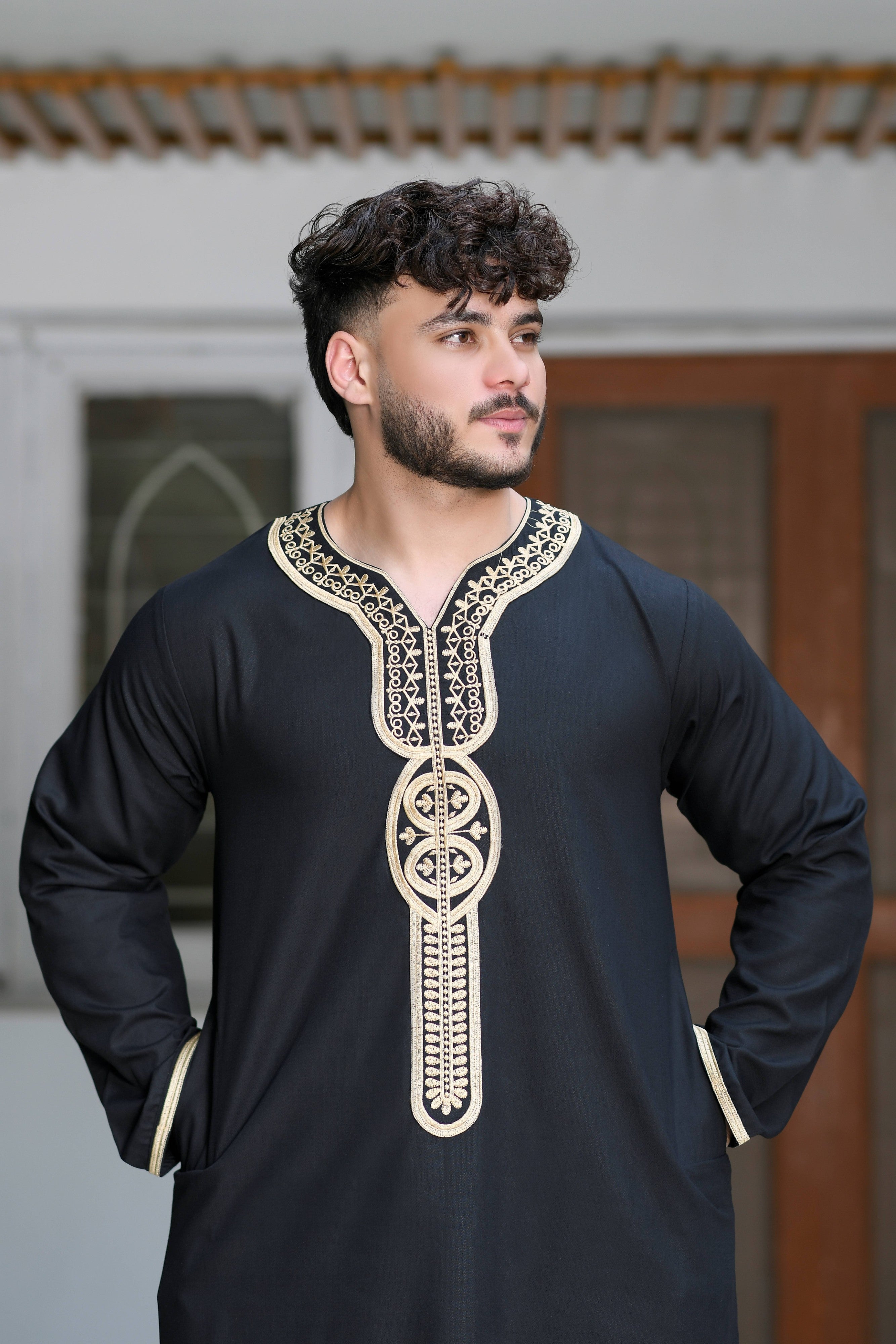 Black Shiny Half Sleeve Moroccan Jubba with Pockets