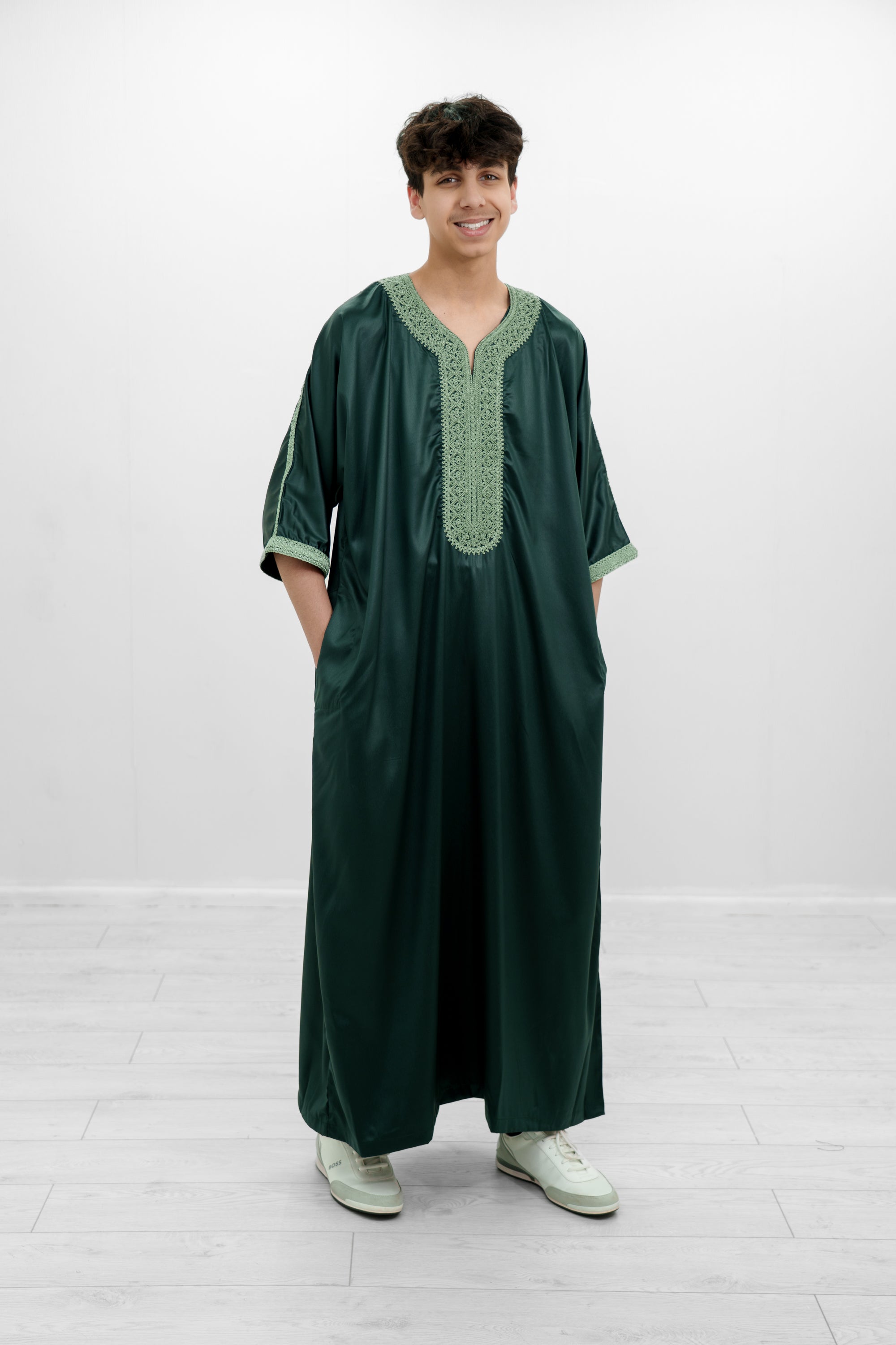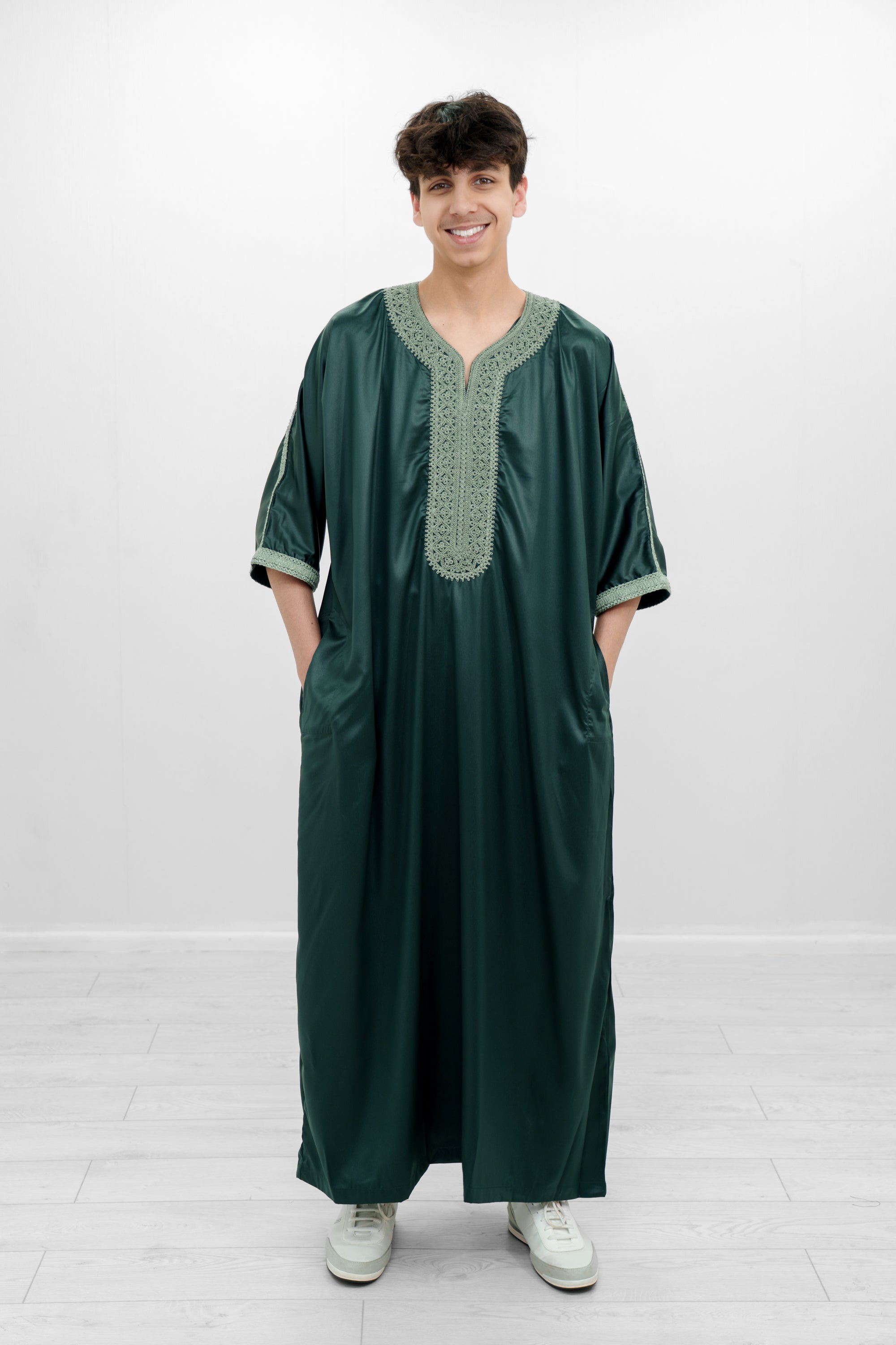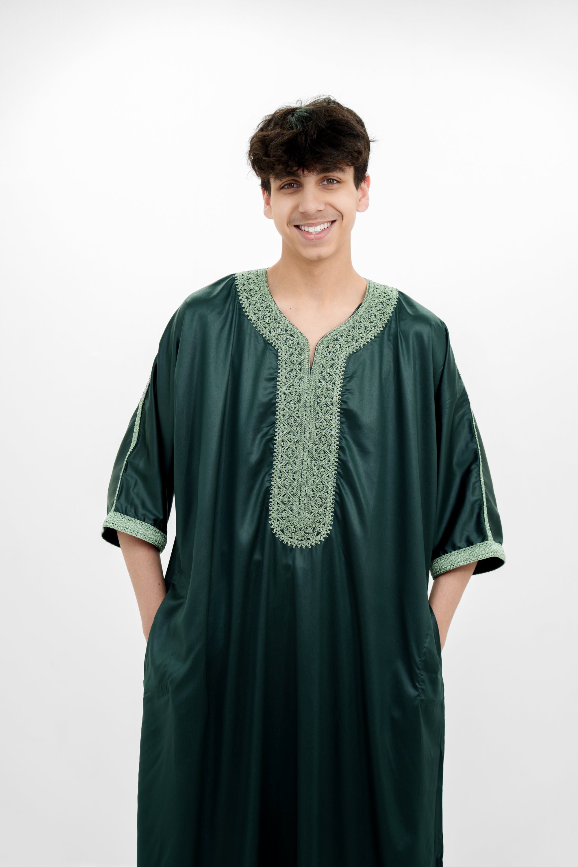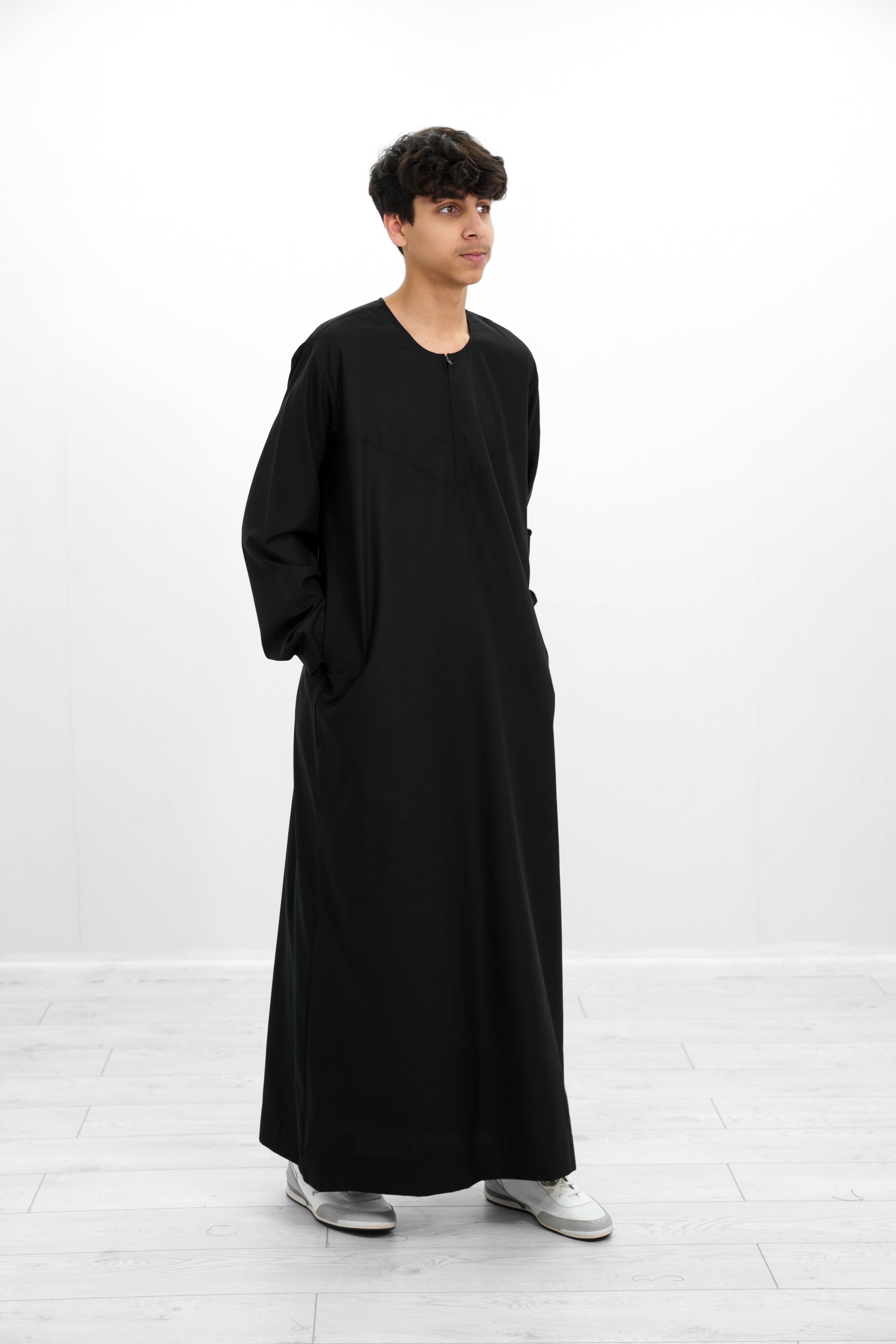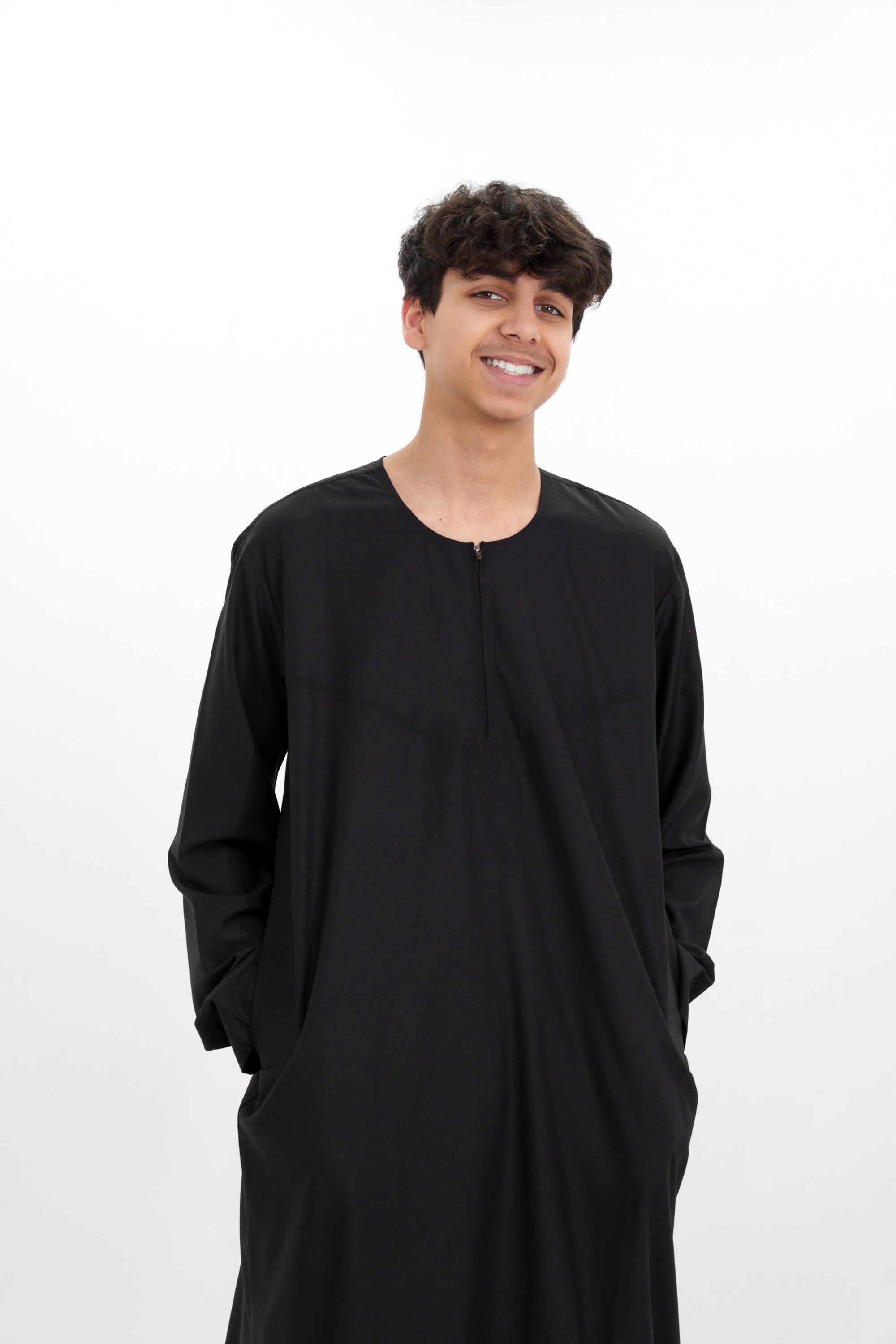 Black Shiny Half Sleeve Moroccan Jubba with Pockets