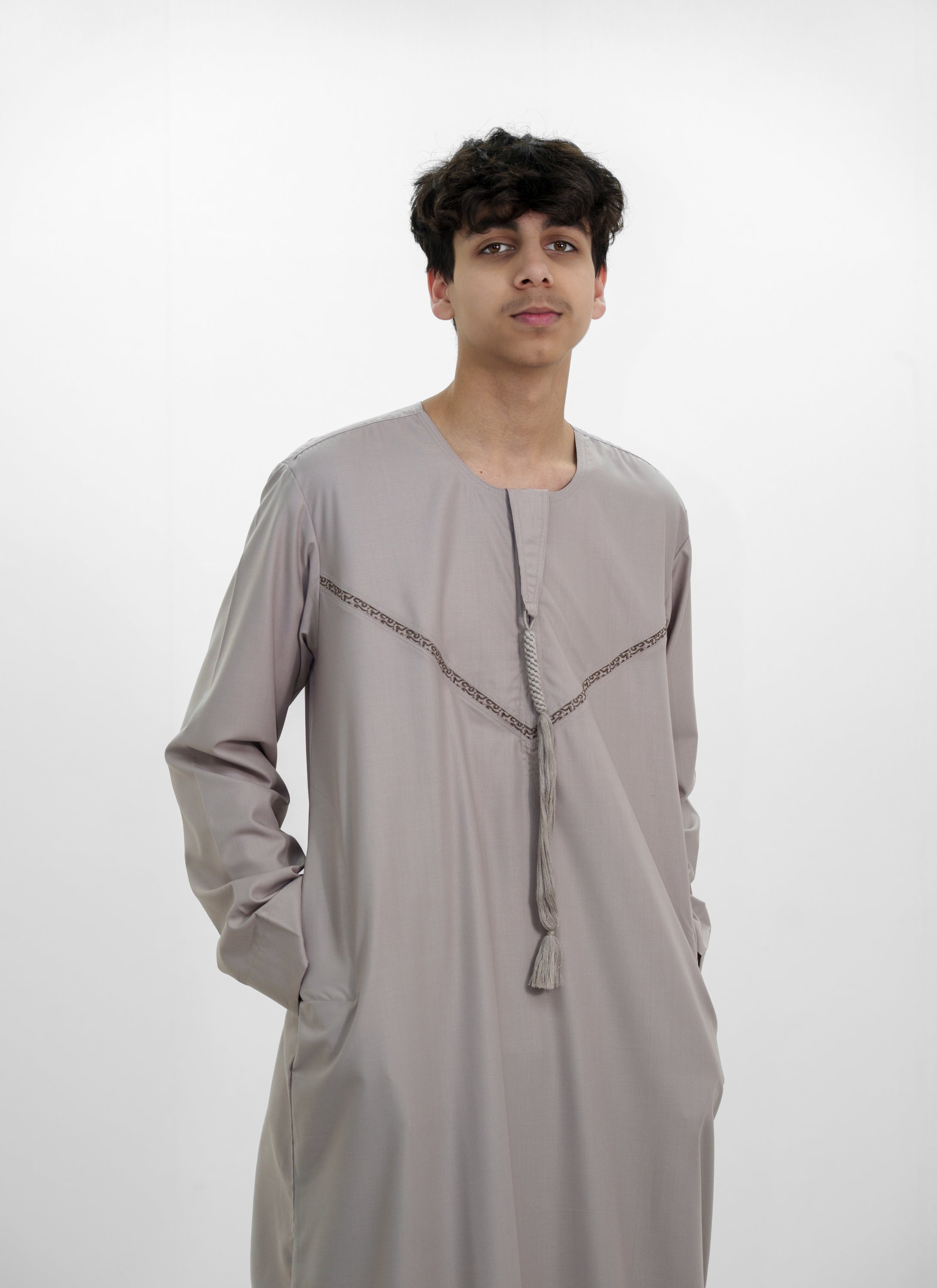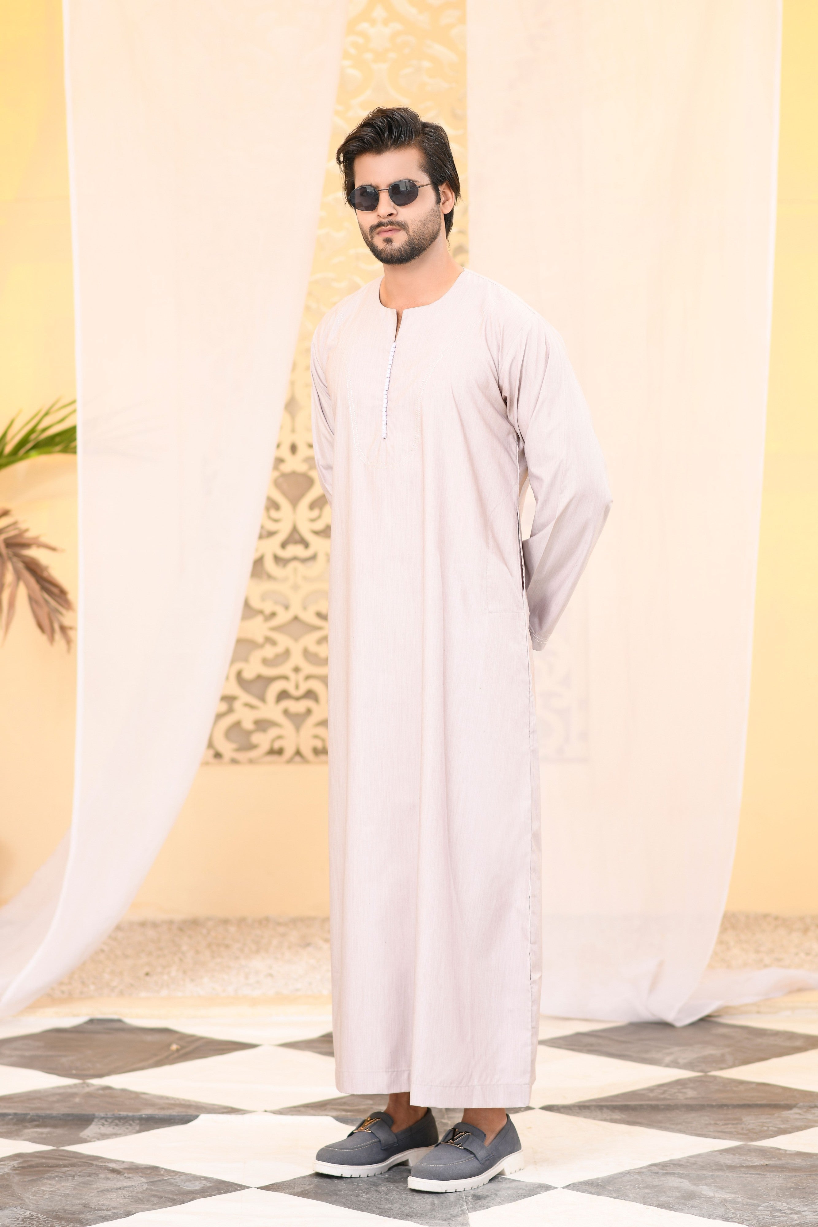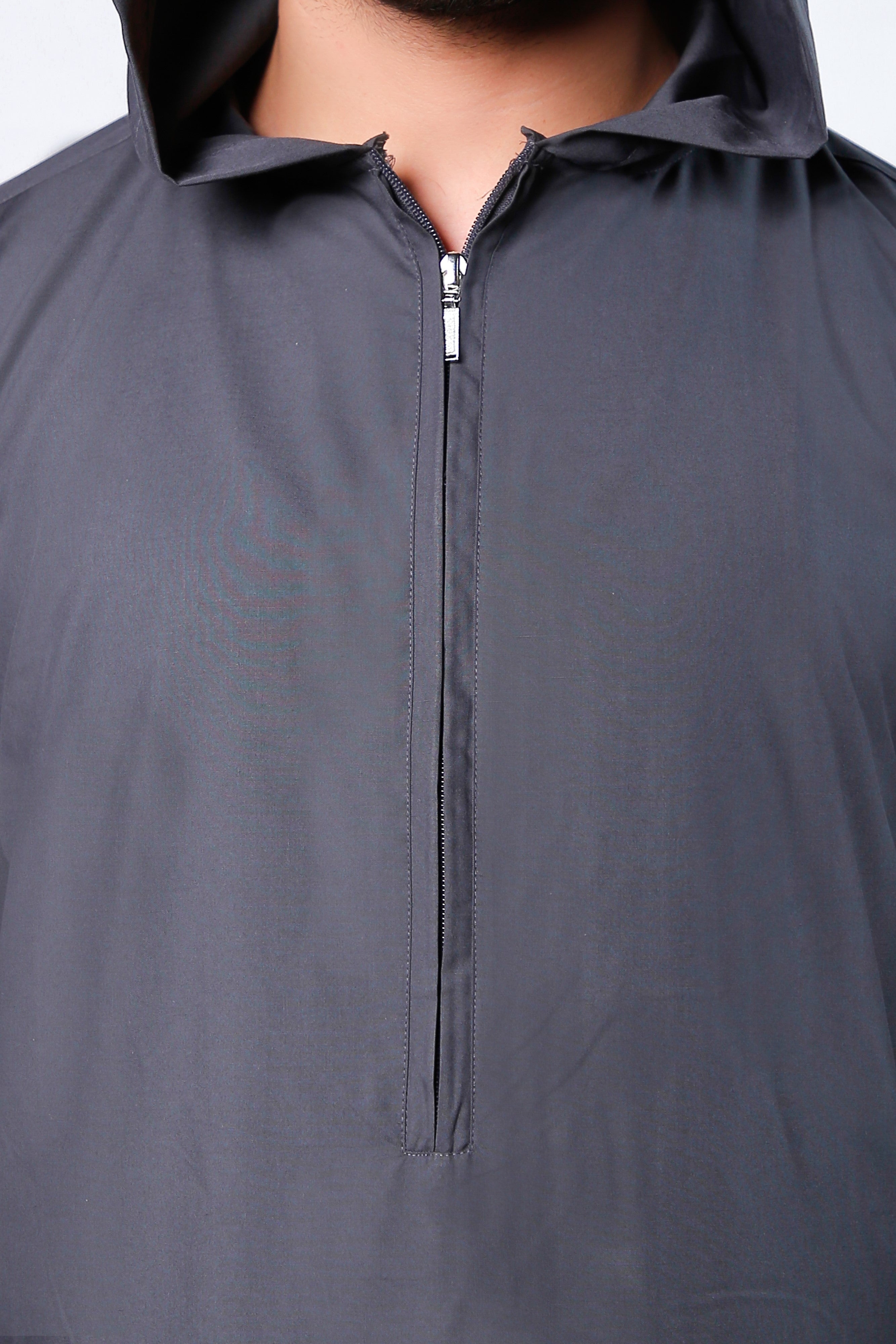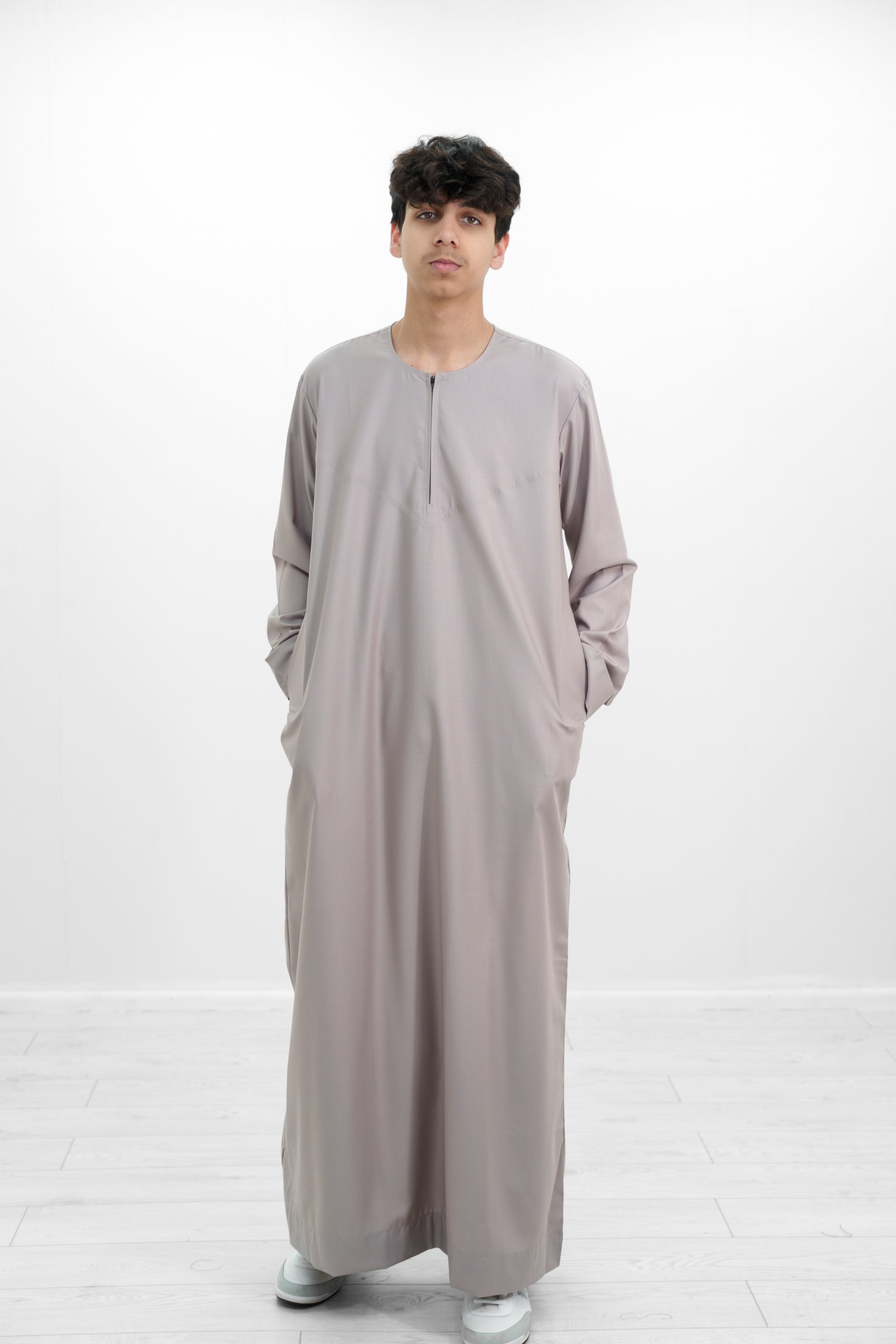 Grey Omani Zip Neck with V Neck Embroidery Design Jubba