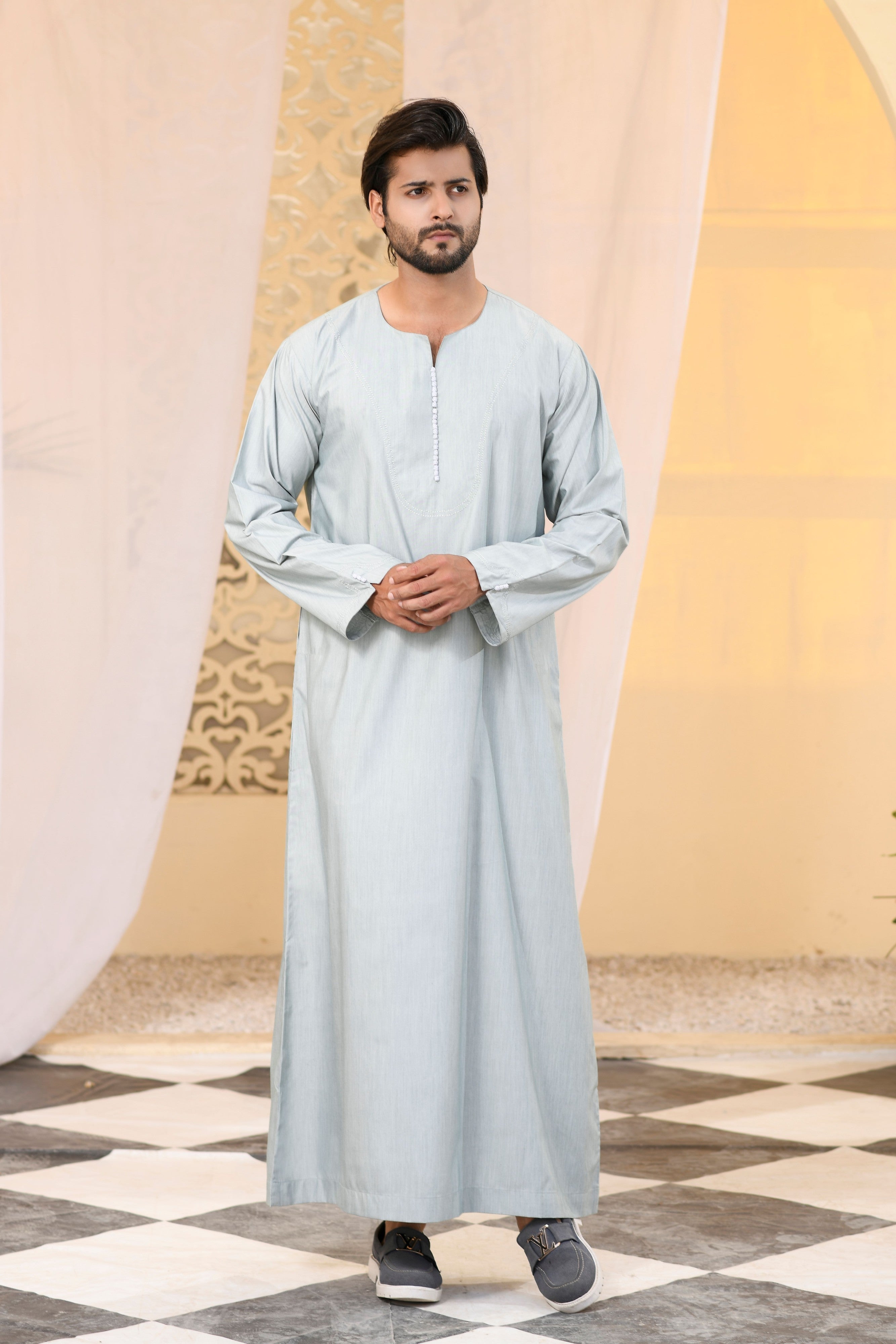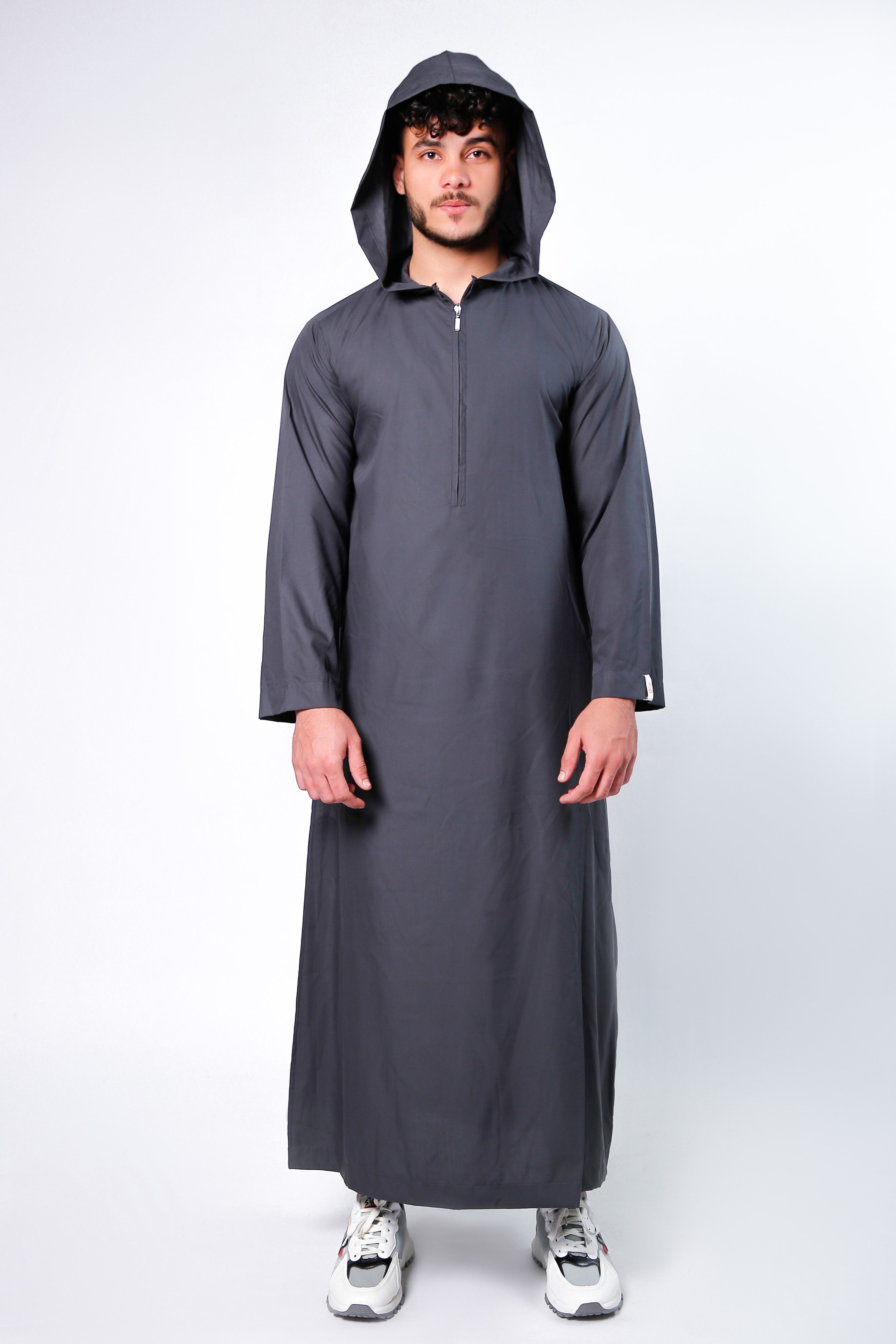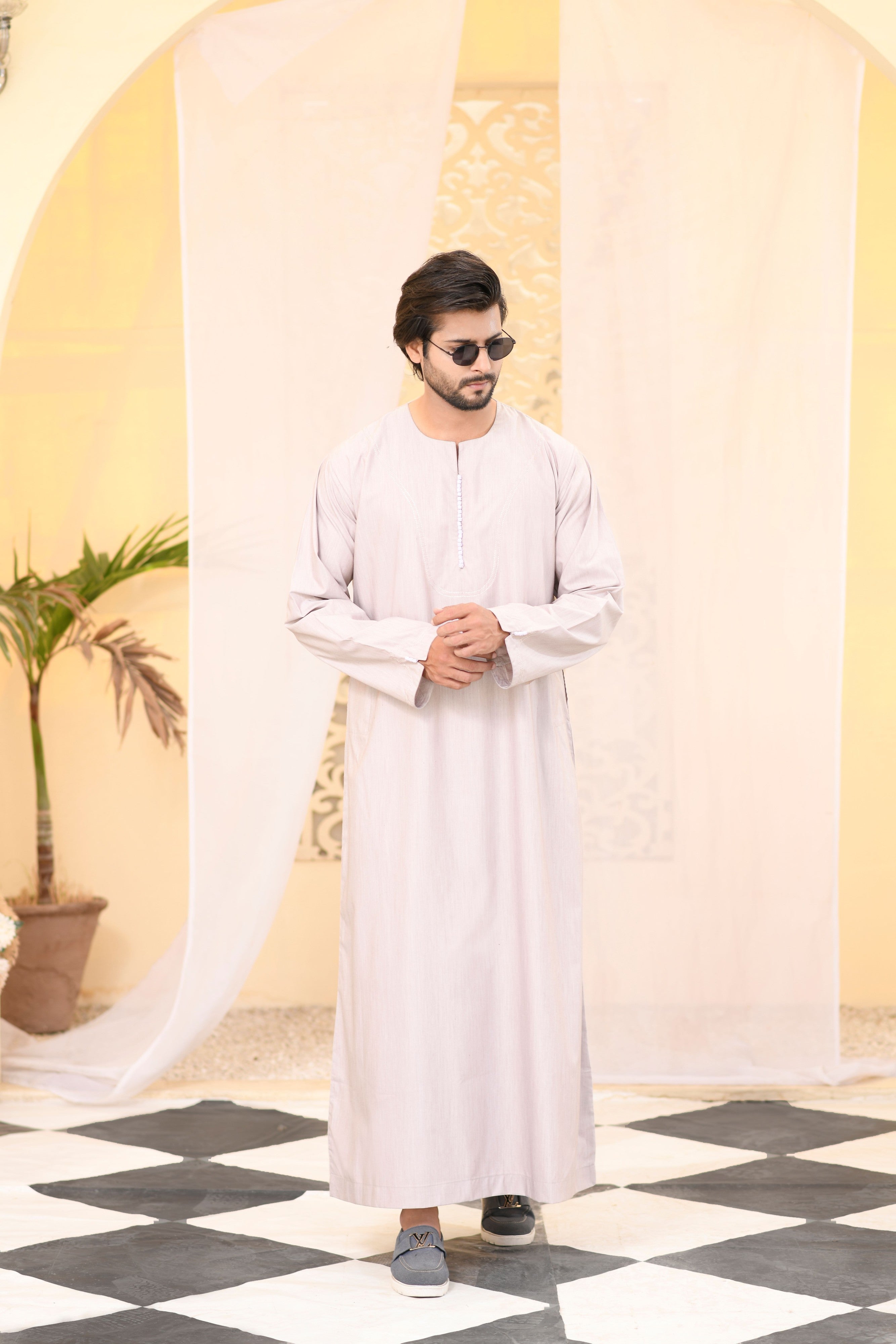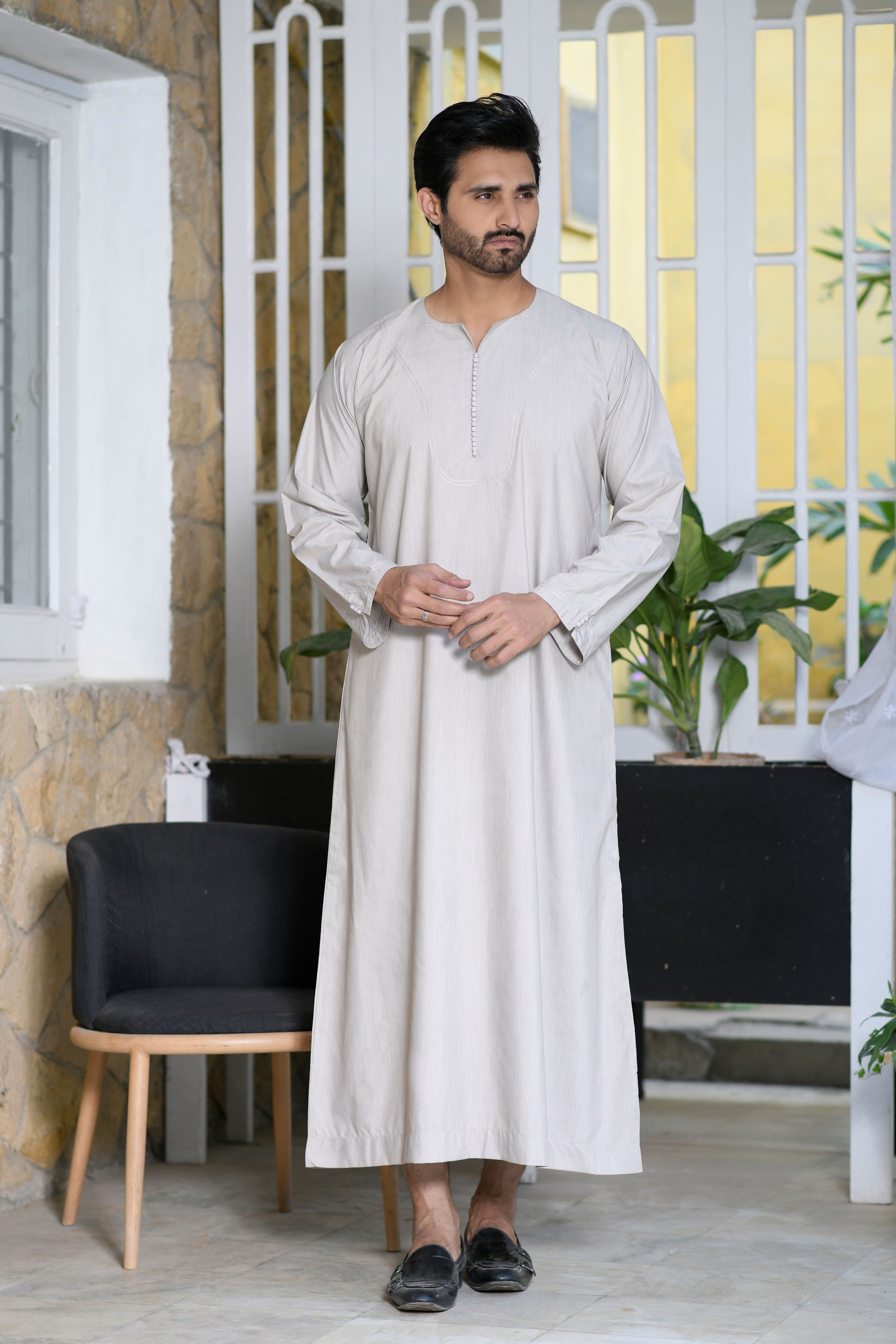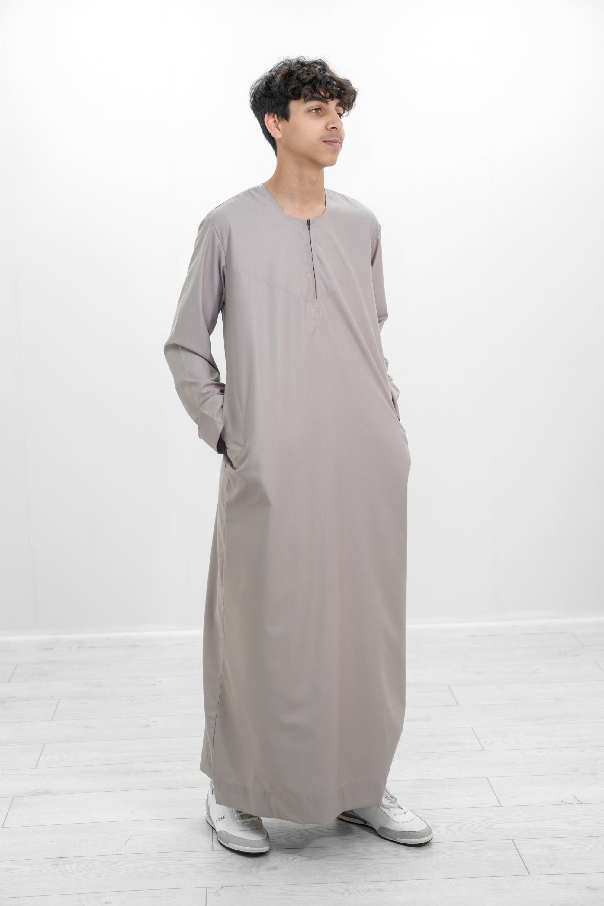 Grey Omani Zip Neck with V Neck Embroidery Design Jubba