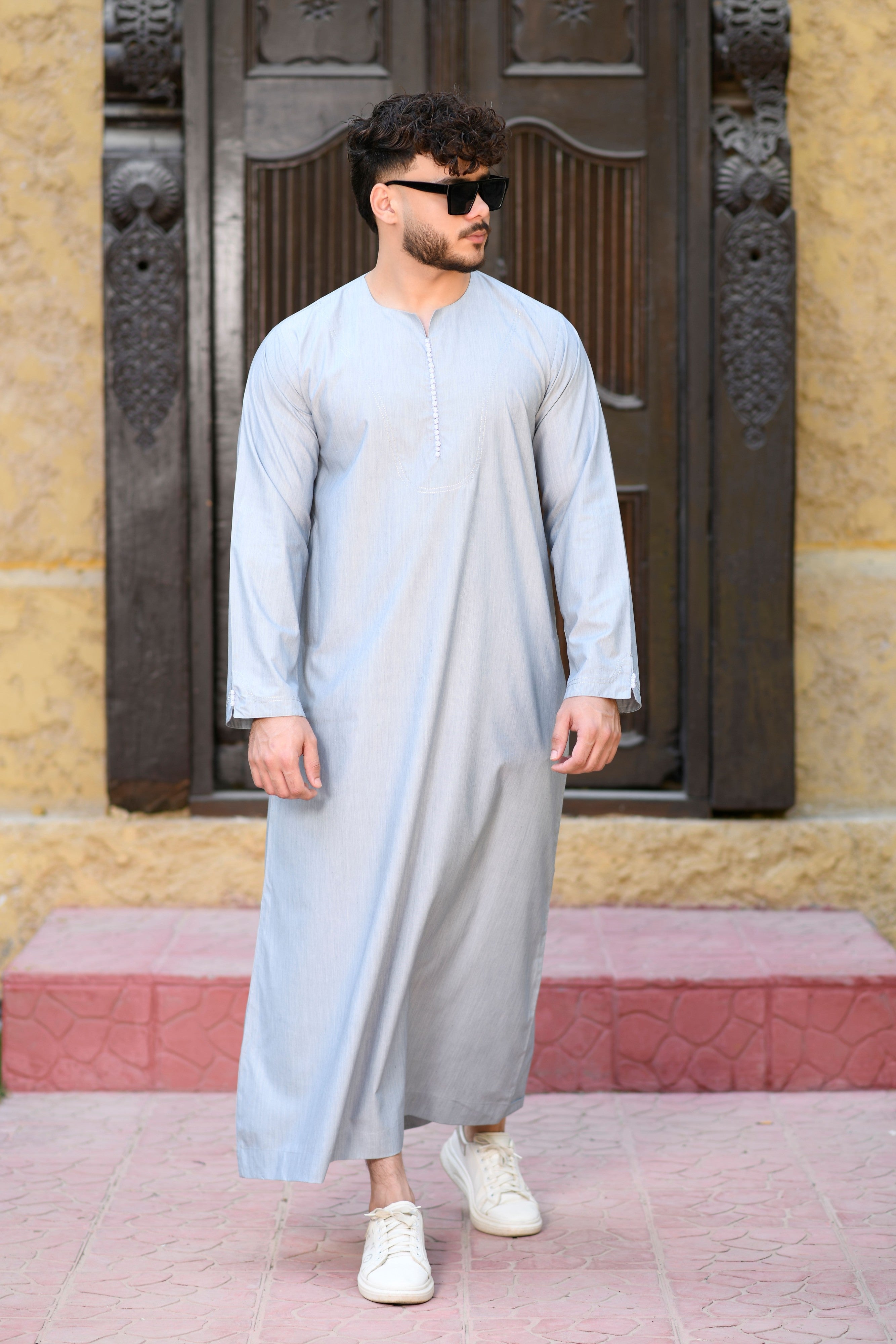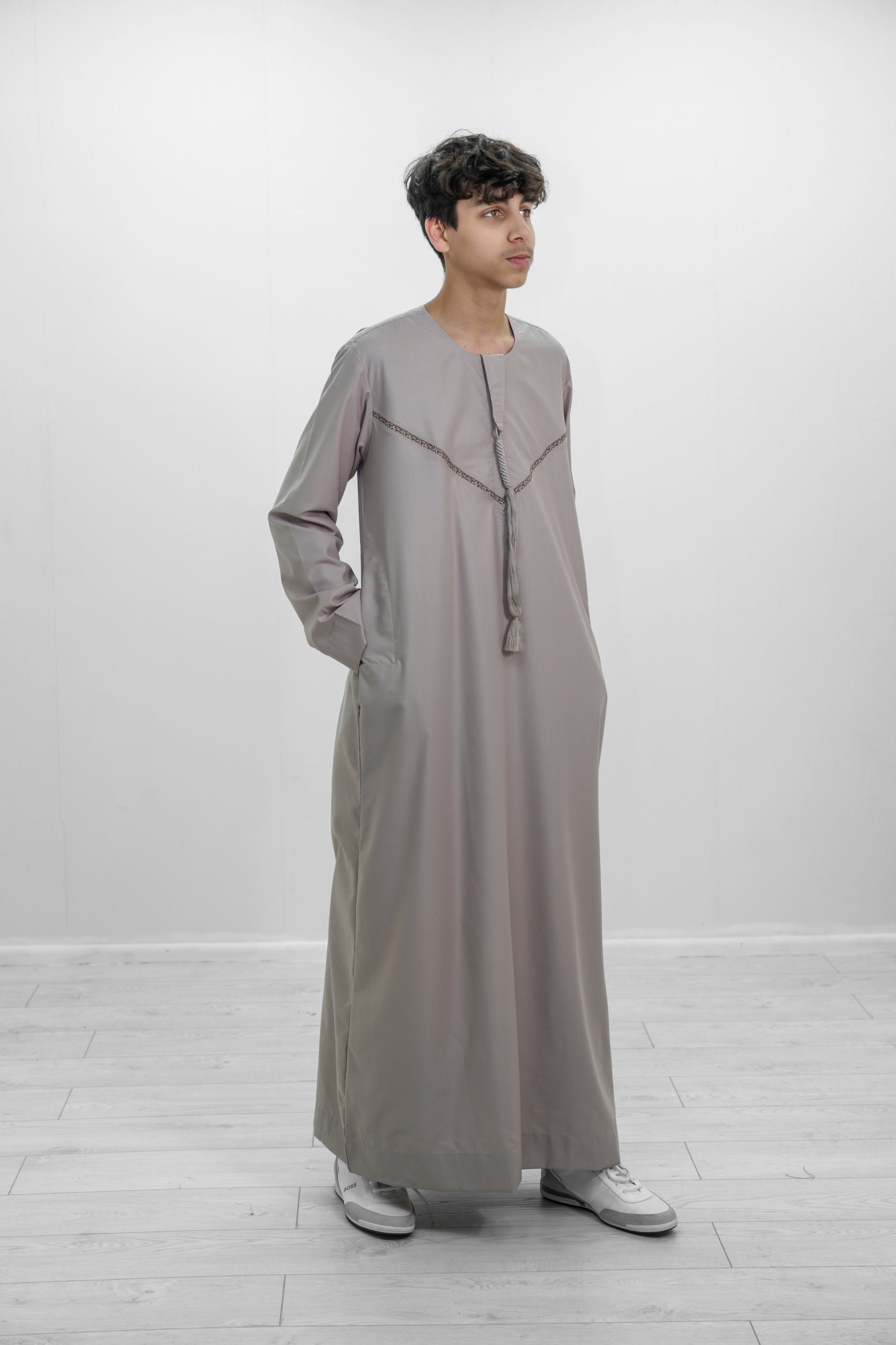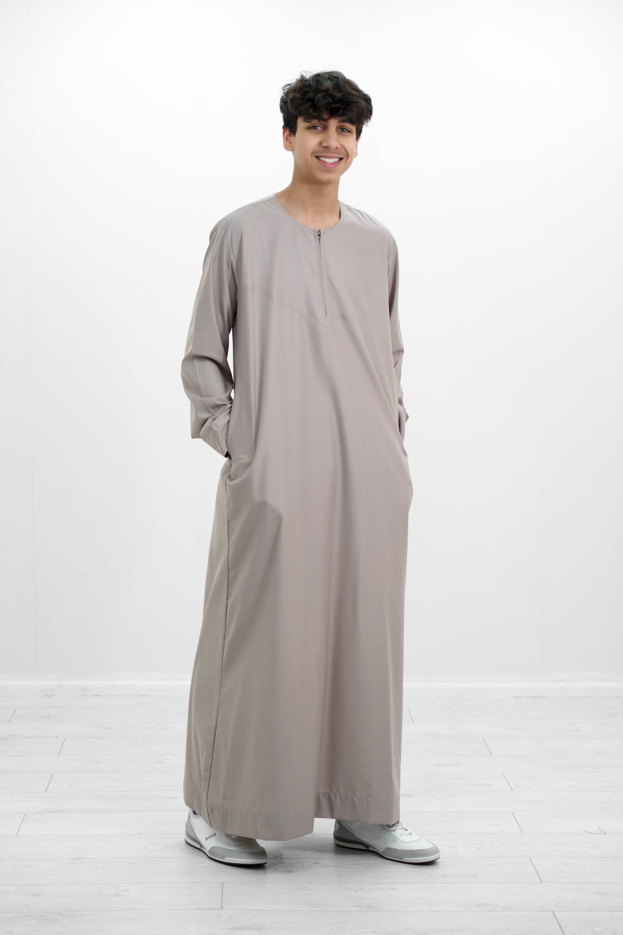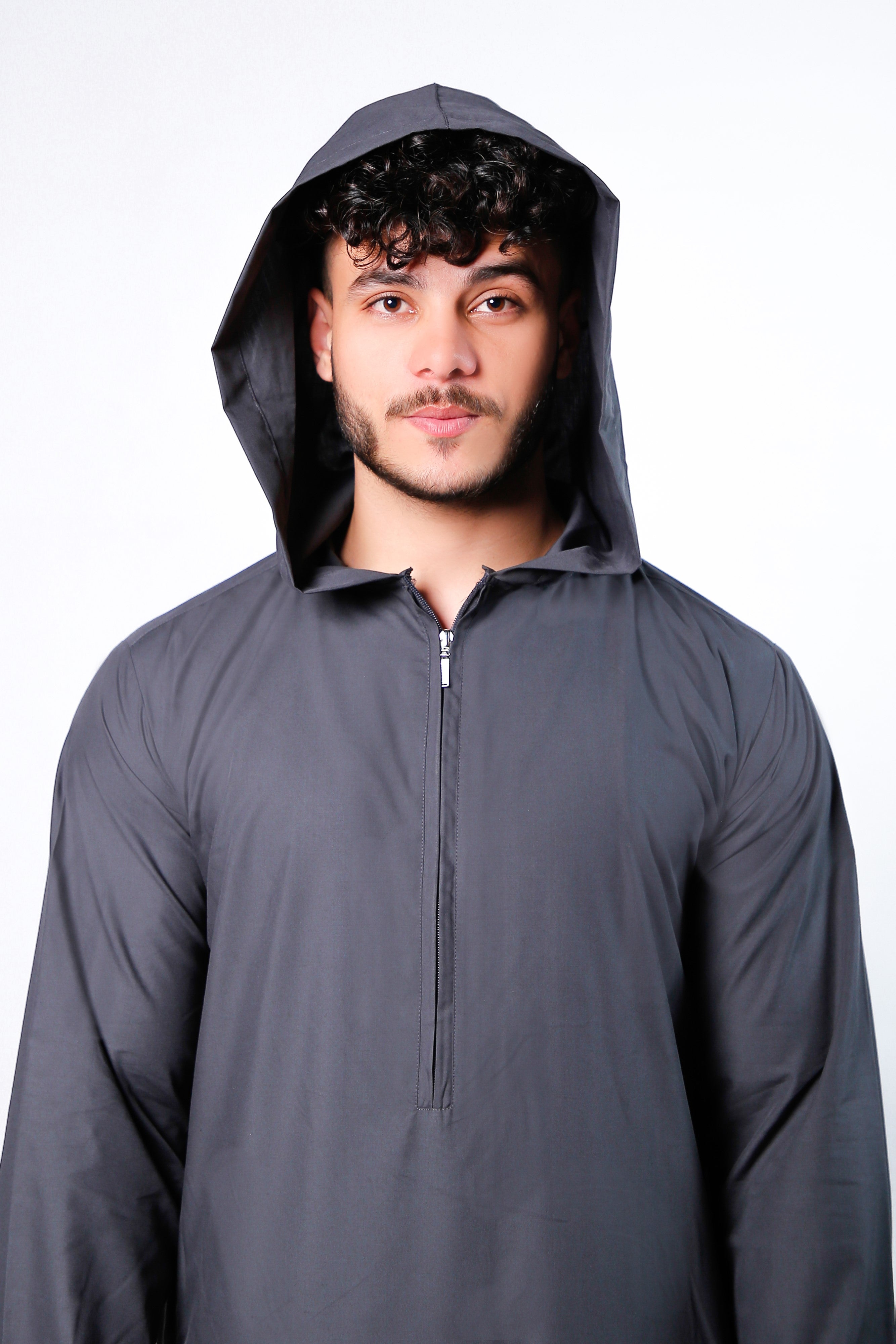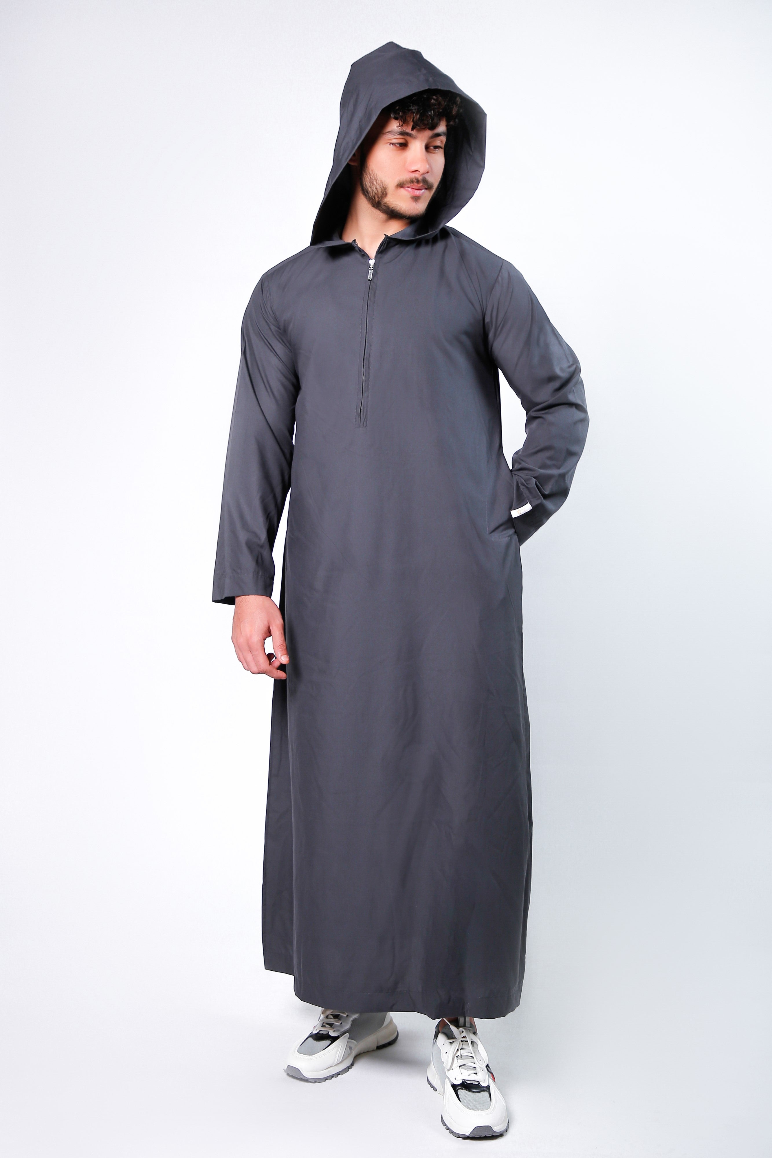 Grey Omani Zip Neck with V Neck Embroidery Design Jubba