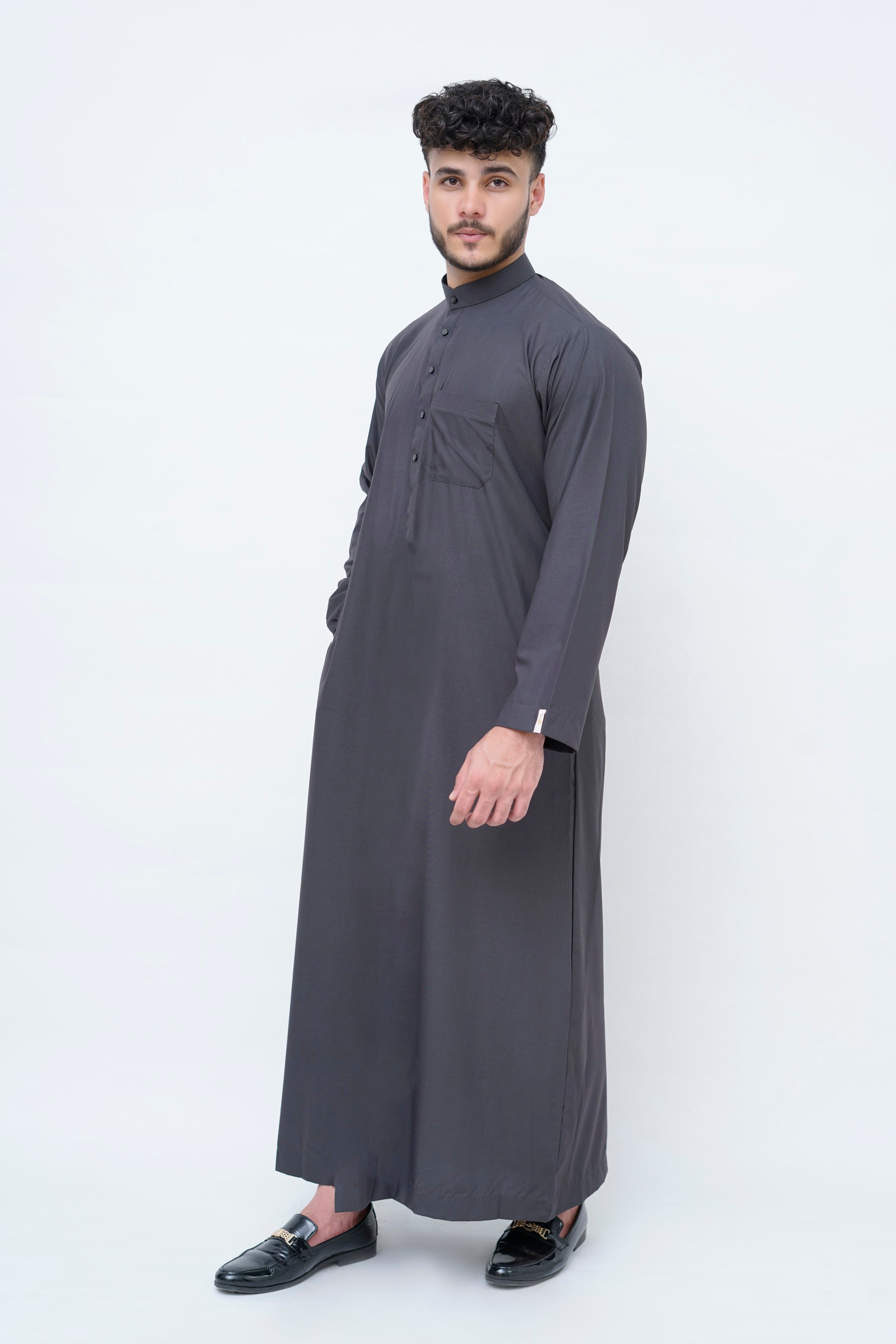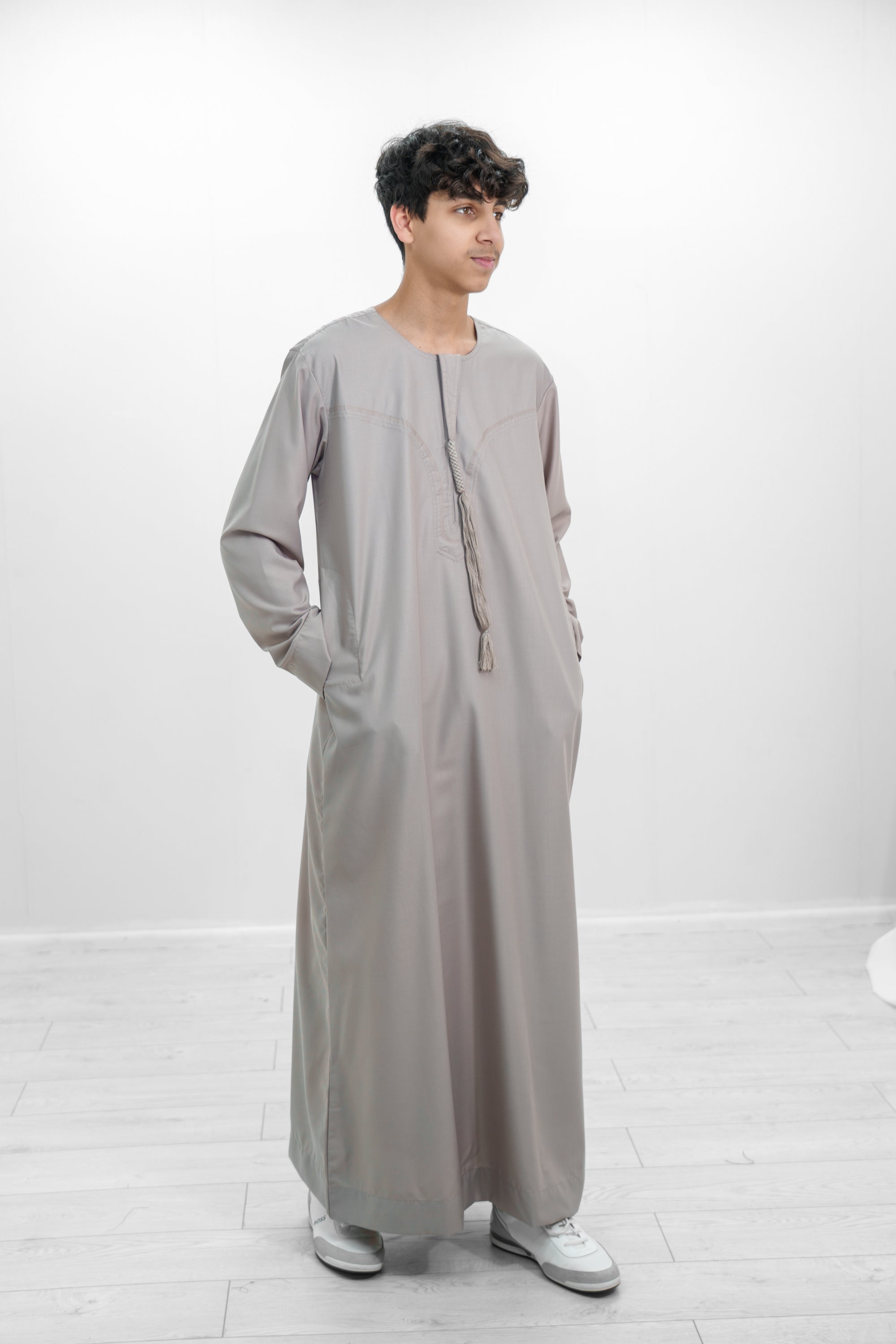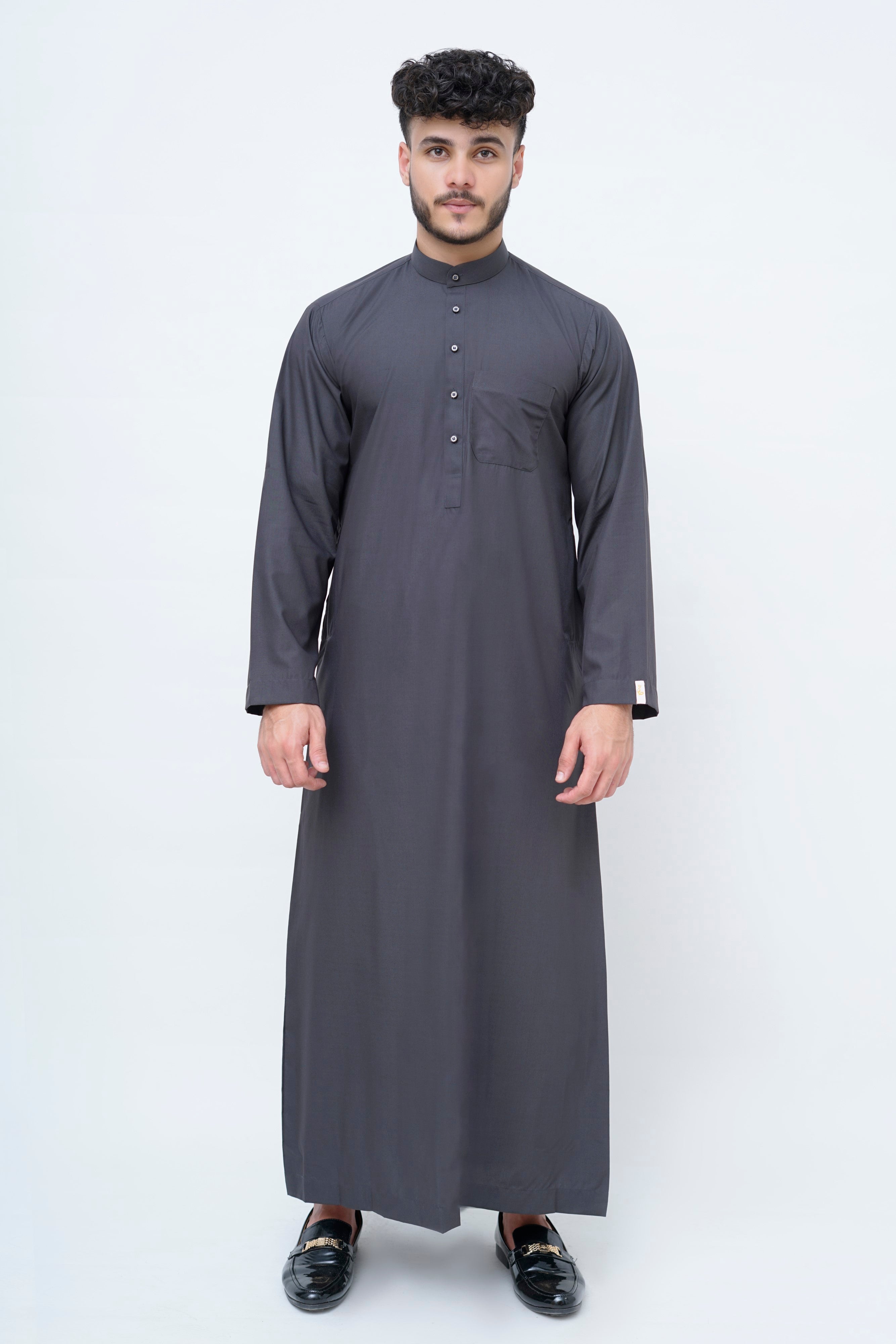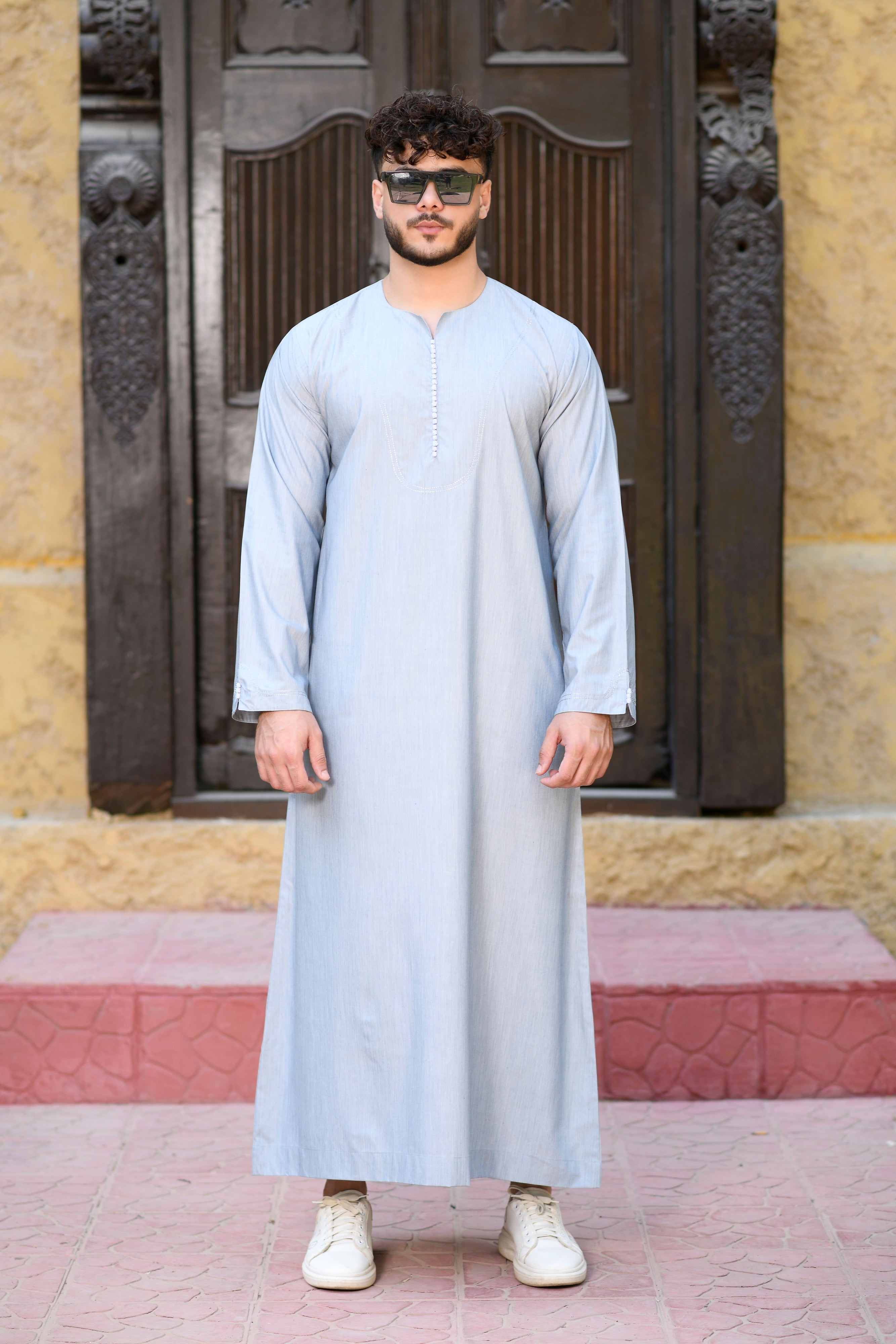 Grey Omani Zip Neck with V Neck Embroidery Design Jubba