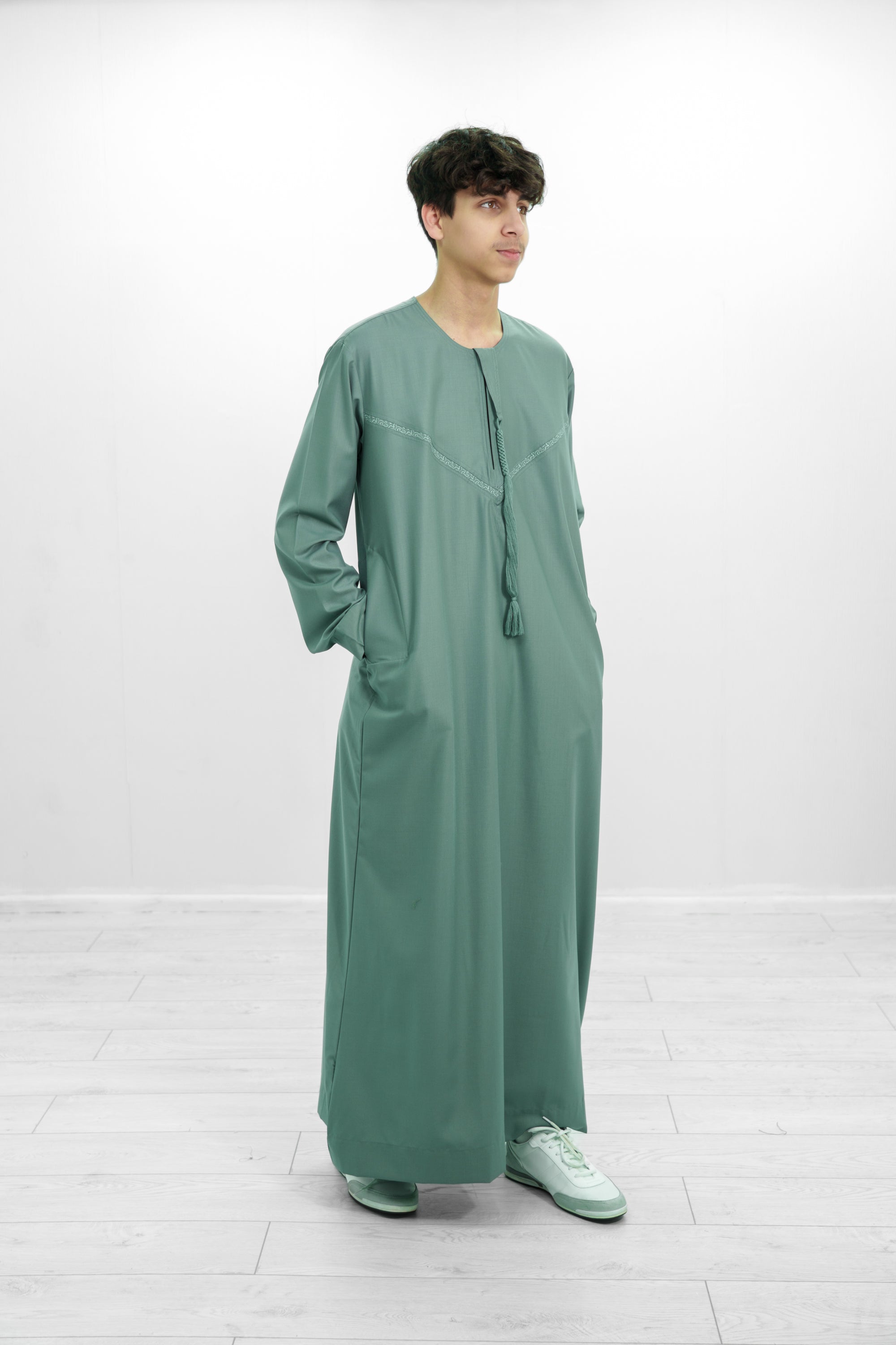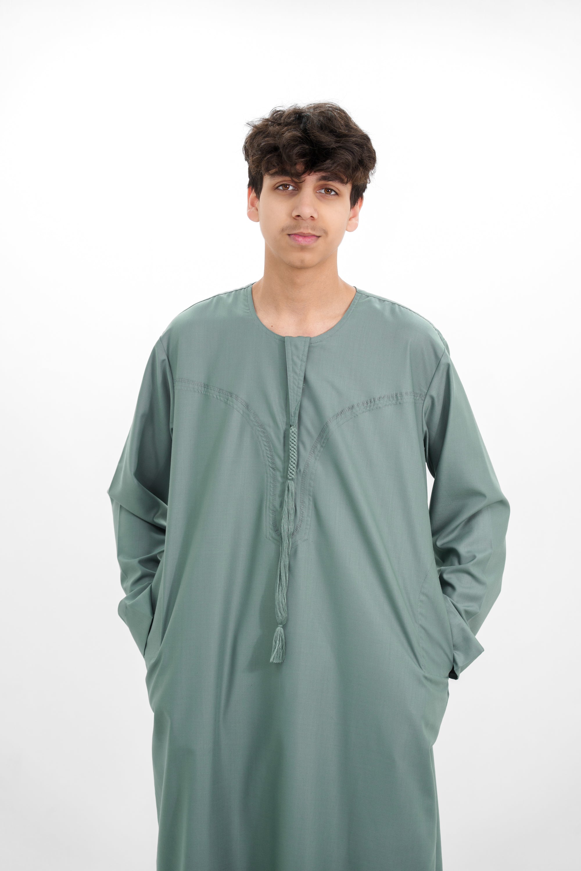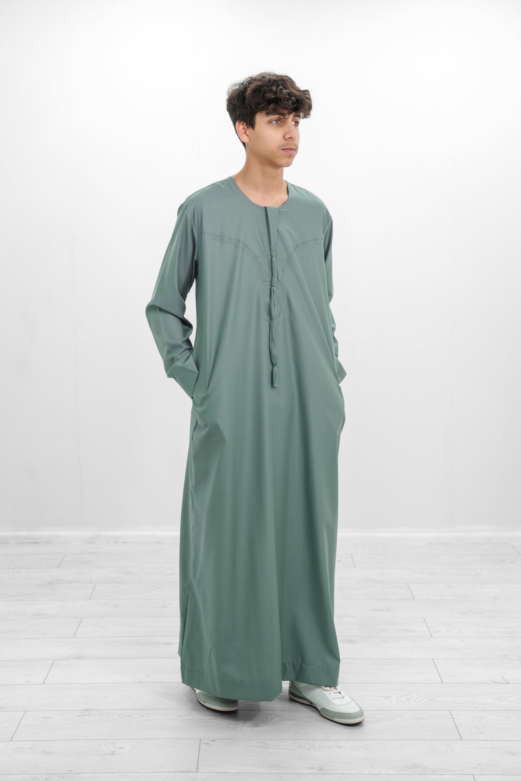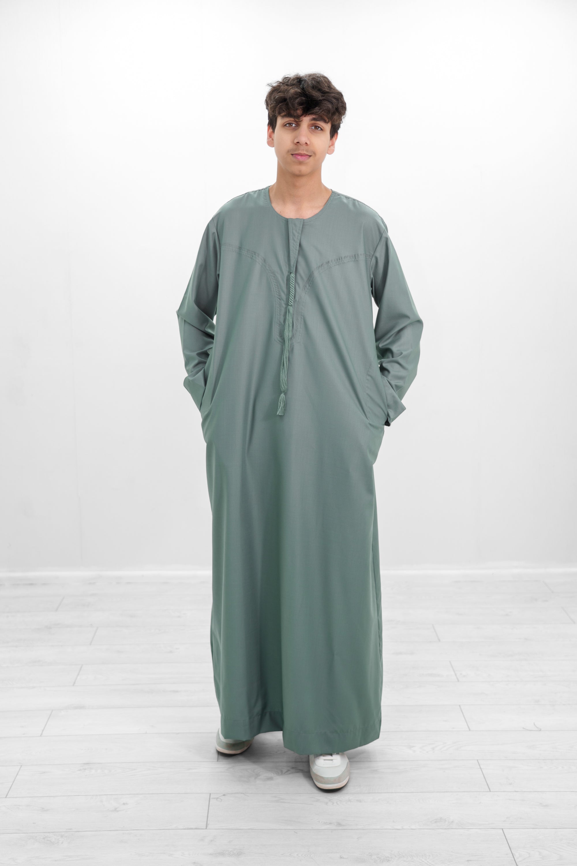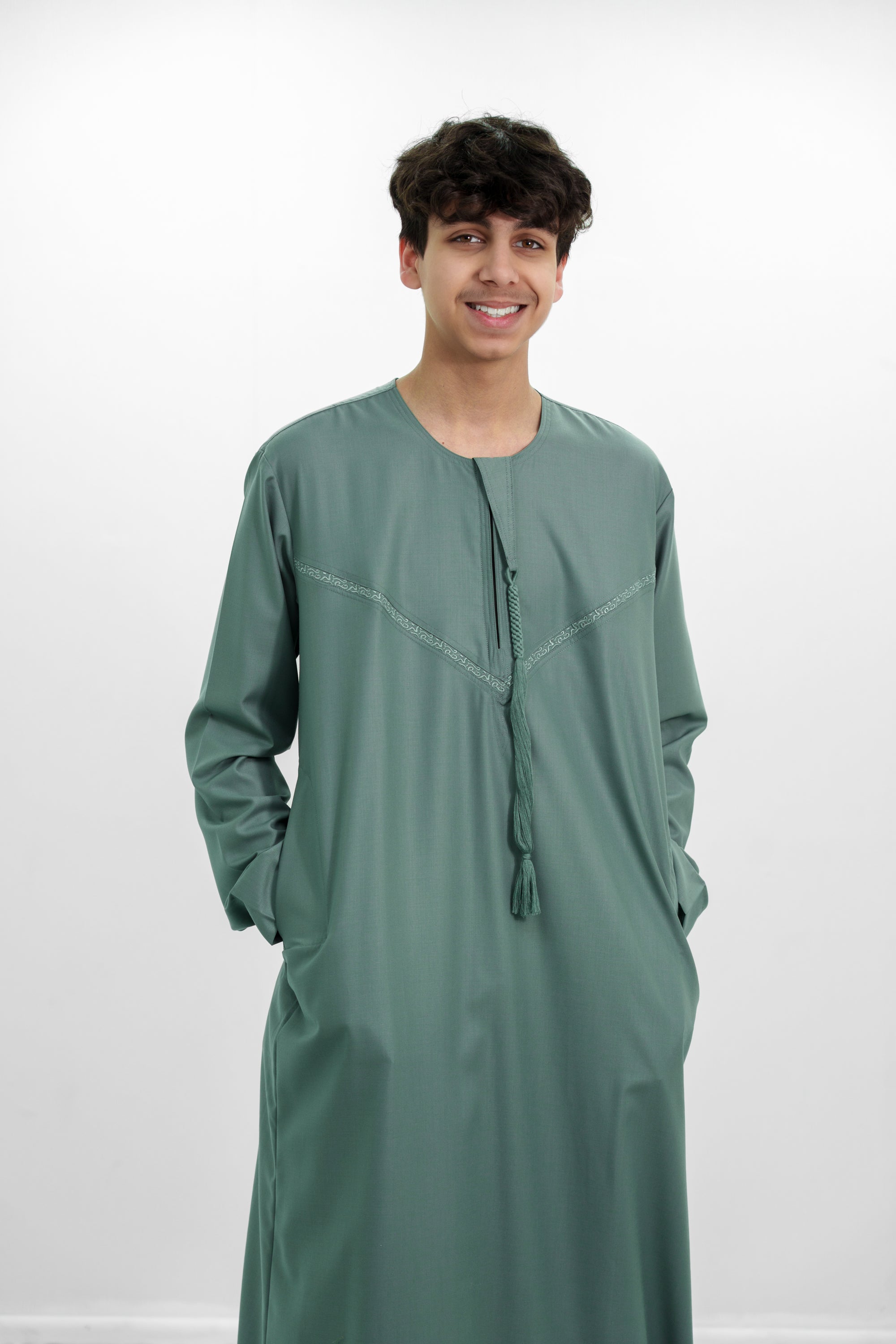 Grey Omani Zip Neck with V Neck Embroidery Design Jubba