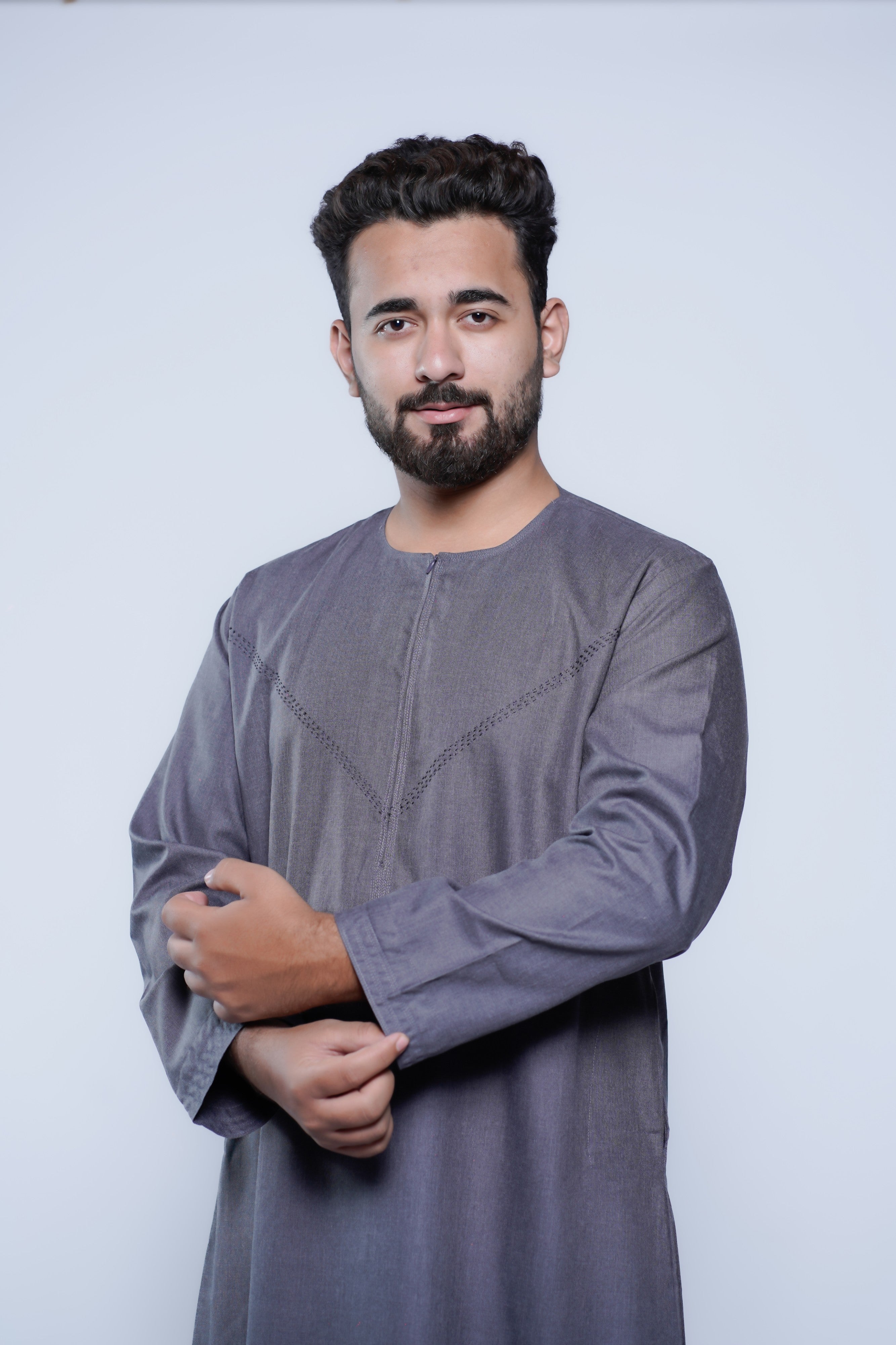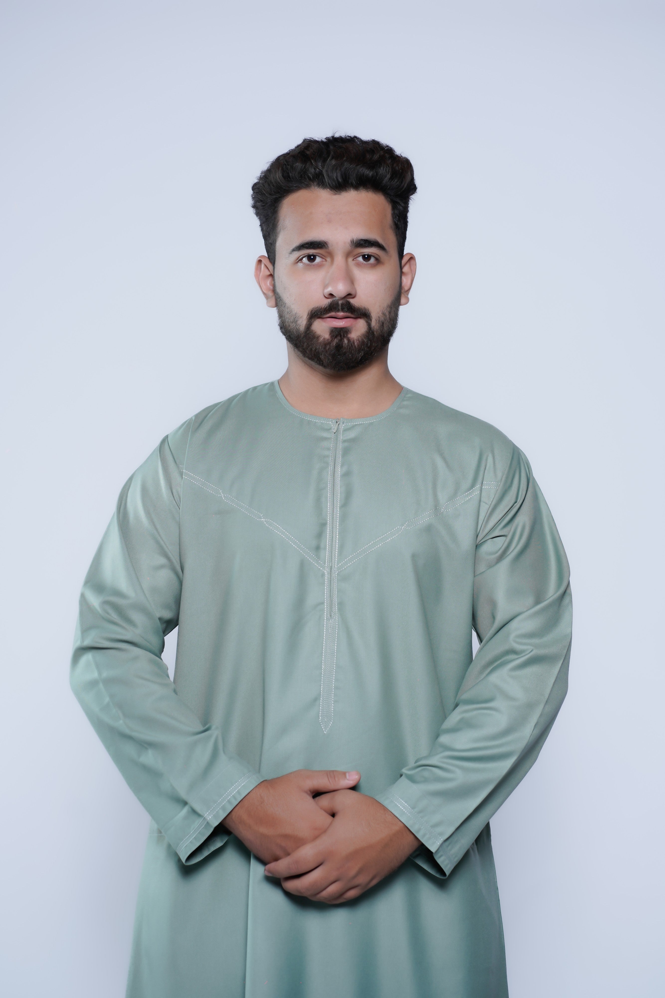 White Omani Round Neck Long Sleeve Jubba with Stitched Embroidery Design