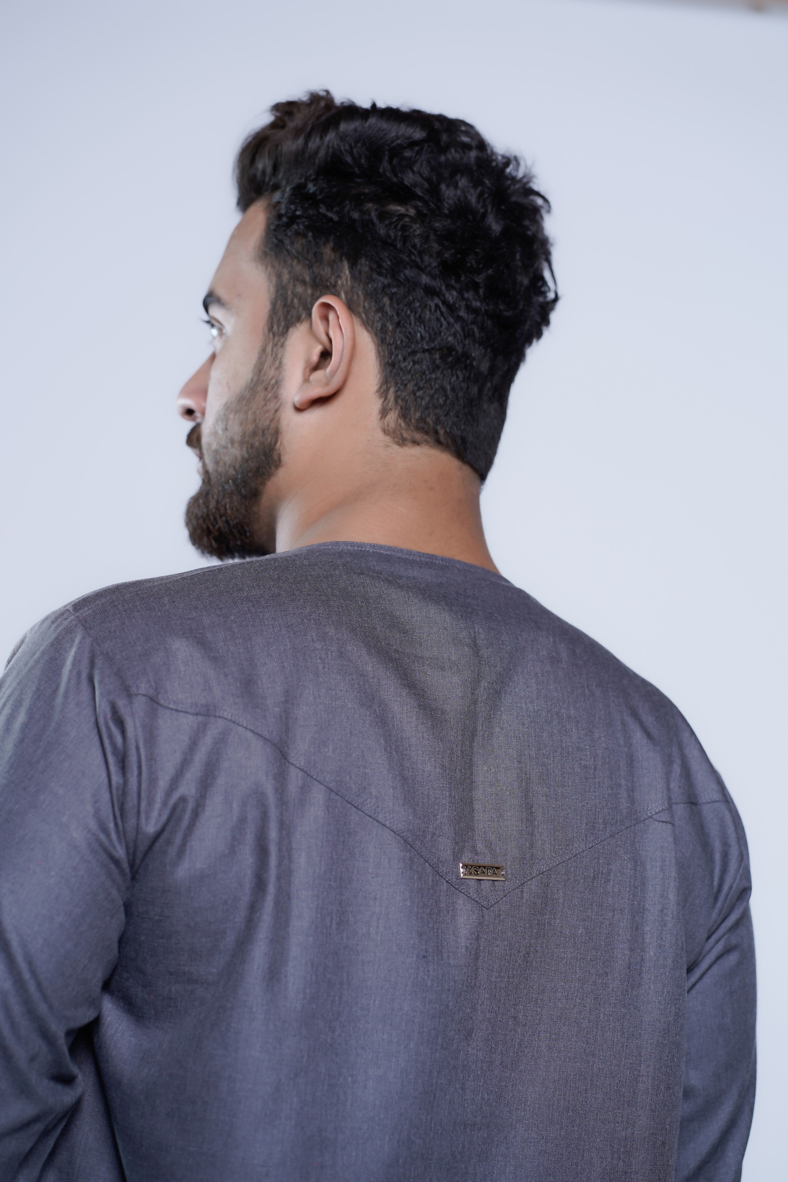 Grey Moroccan Half Sleeve Jubba with Knotted Bead Design