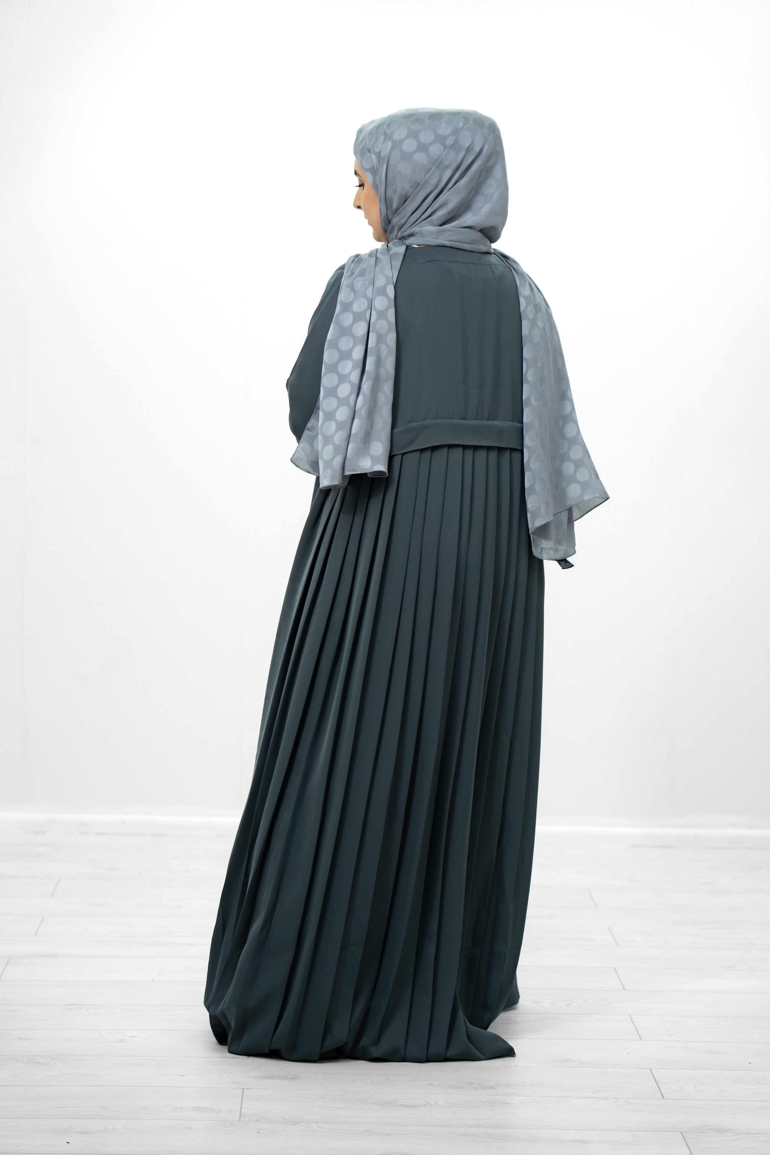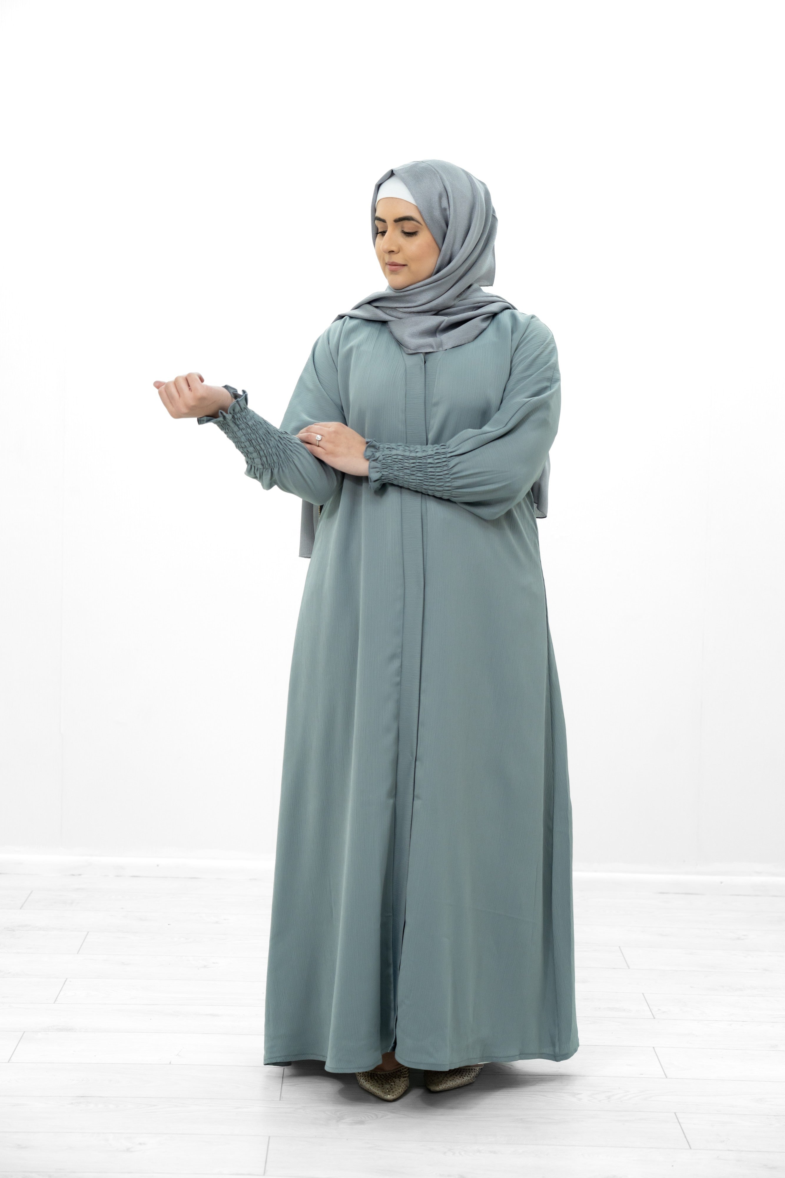 Grey Linen Cuffed Sleeve Abaya