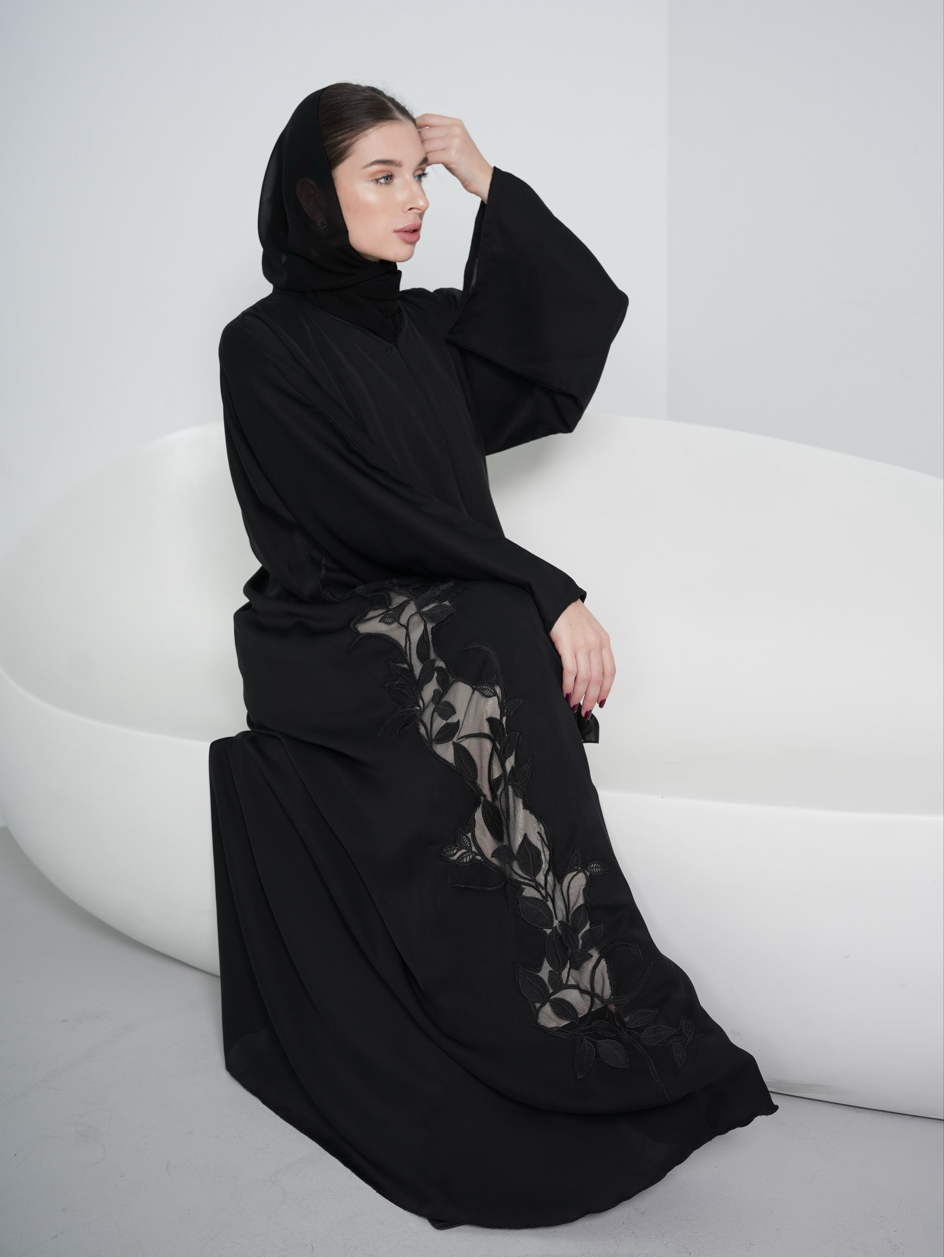 Black Floral Lace Abaya